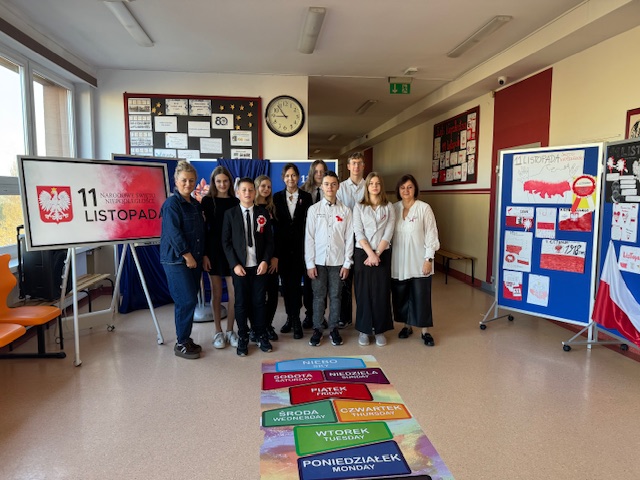 Podczas przerw na szkolnych korytarzach rozbrzmiewały piosenki patriotyczne, które wprowadzały wszystkich w podniosły nastrój. Uczniowie mogli również obejrzeć prezentację poświęconą historii odzyskania przez Polskę niepodległości, przygotowaną przez uczniów klas 7-8.