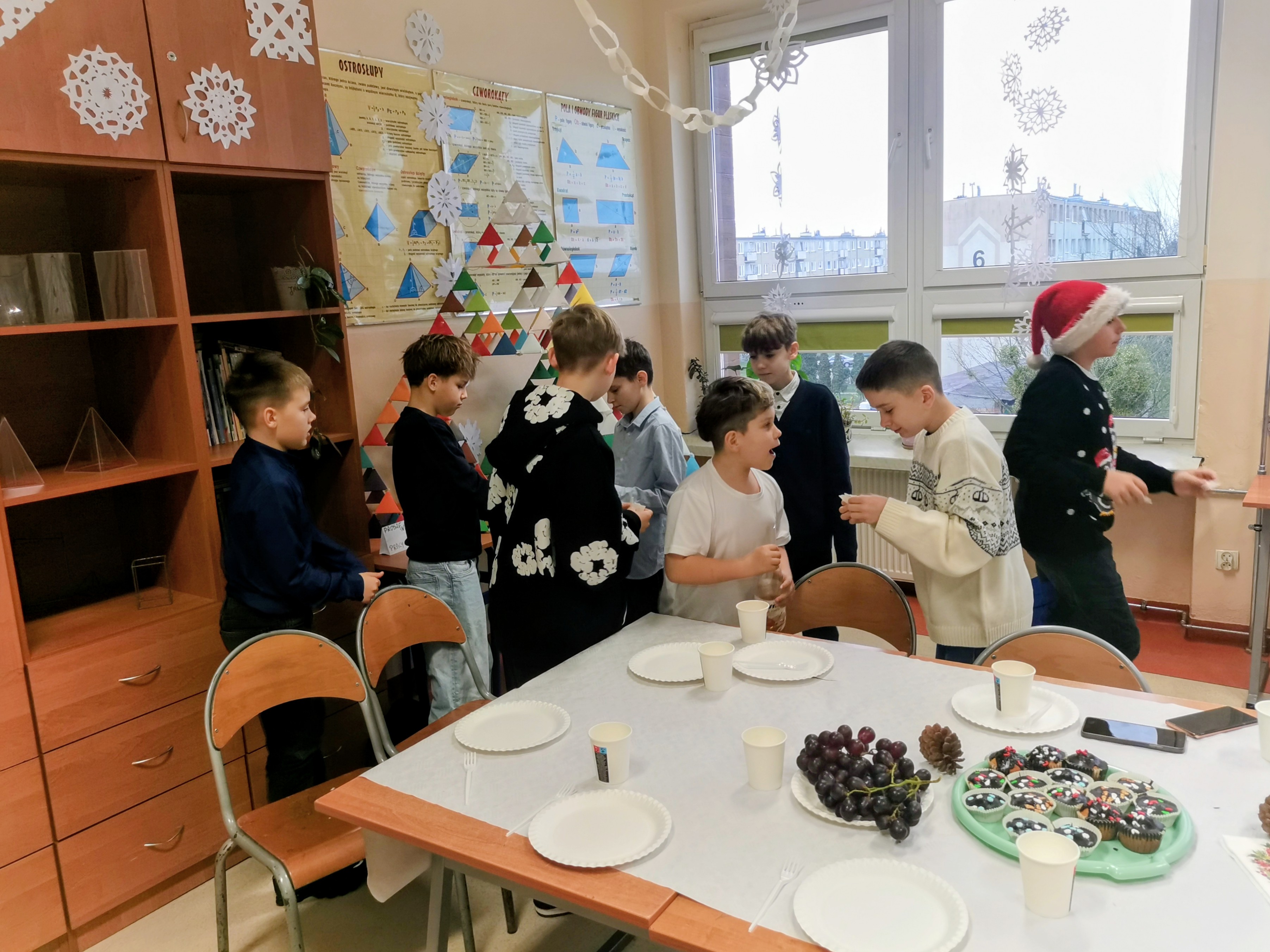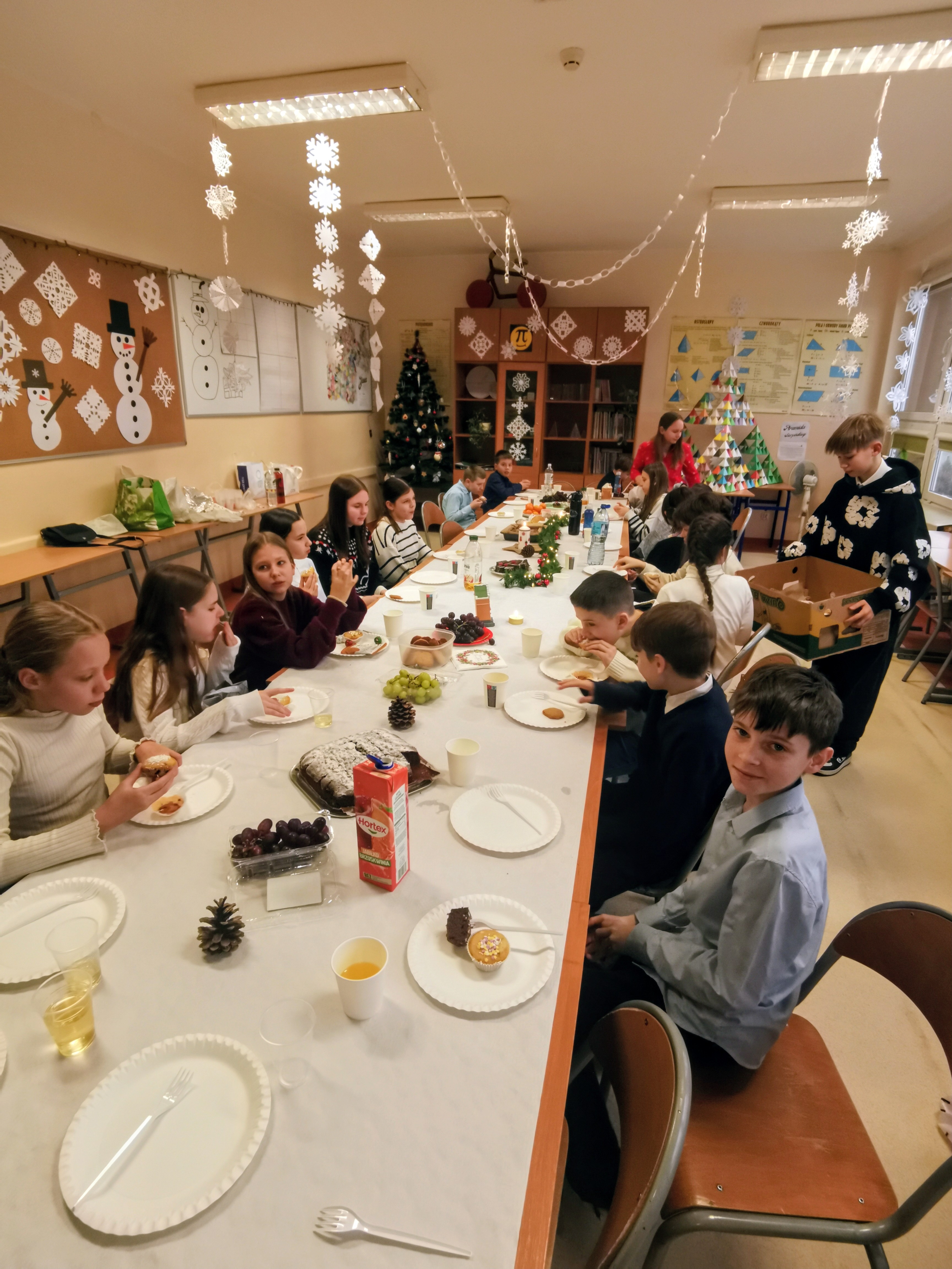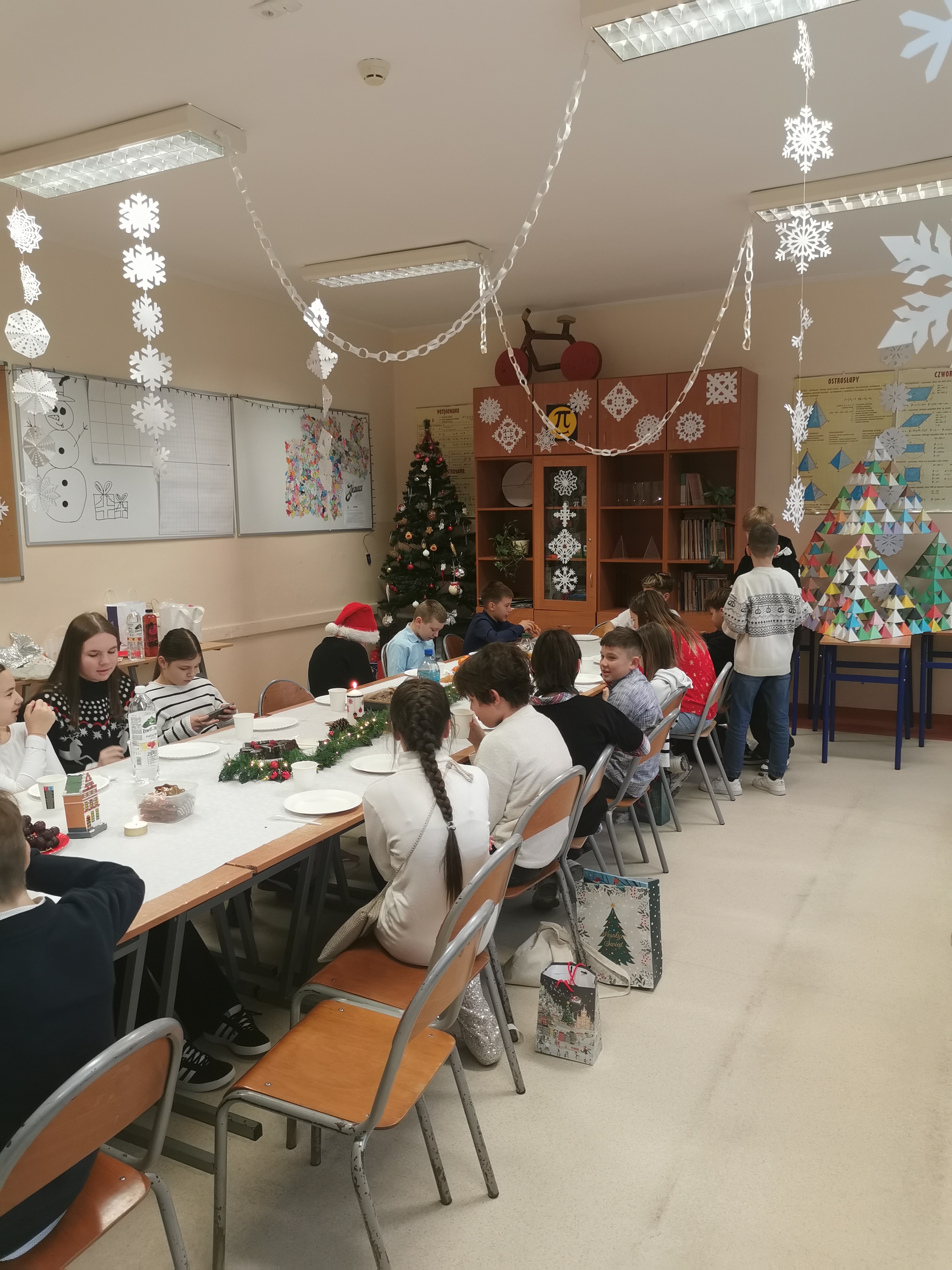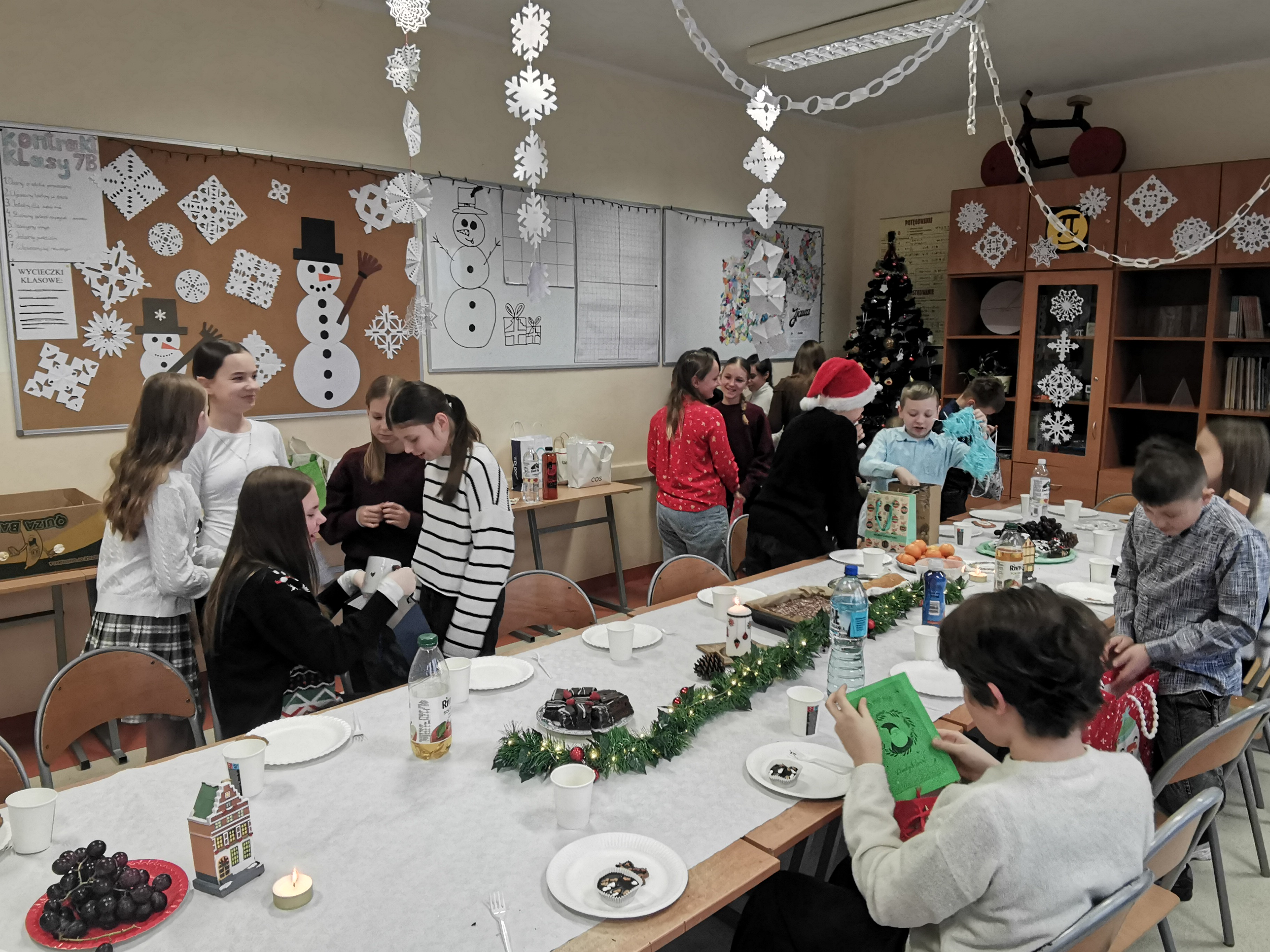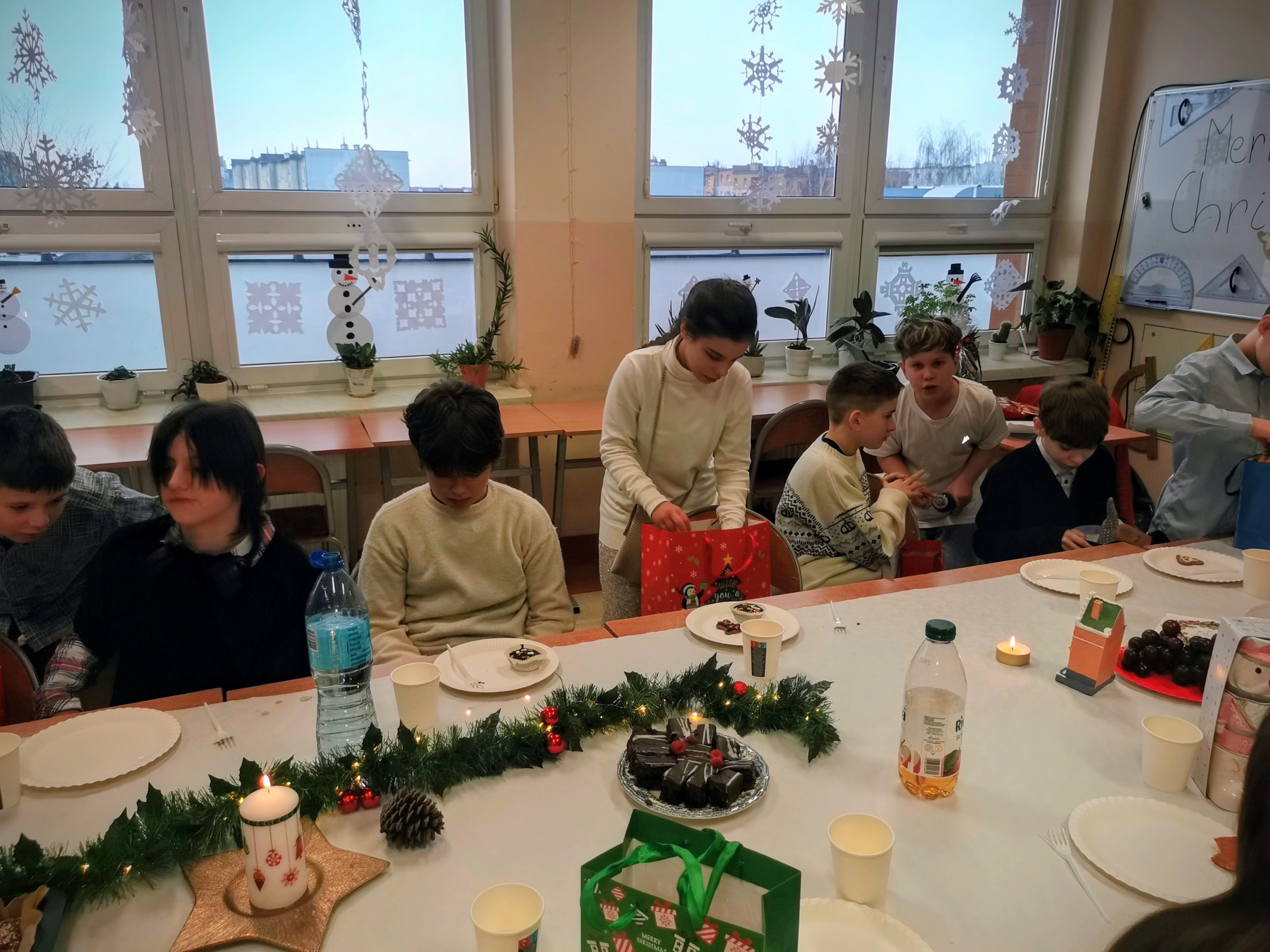 19 grudnia odbyła się nasza wigilia klasowa. Był to wyjątkowy i bardzo miły dzień. Na początku złożyliśmy sobie świąteczne życzenia, a następnie wymieniliśmy się prezentami, do których dołączone były własnoręcznie wykonane kartki z życzeniami. Ten moment był bardzo wzruszający i na pewno na długo zostanie w pamięci całej klasy.