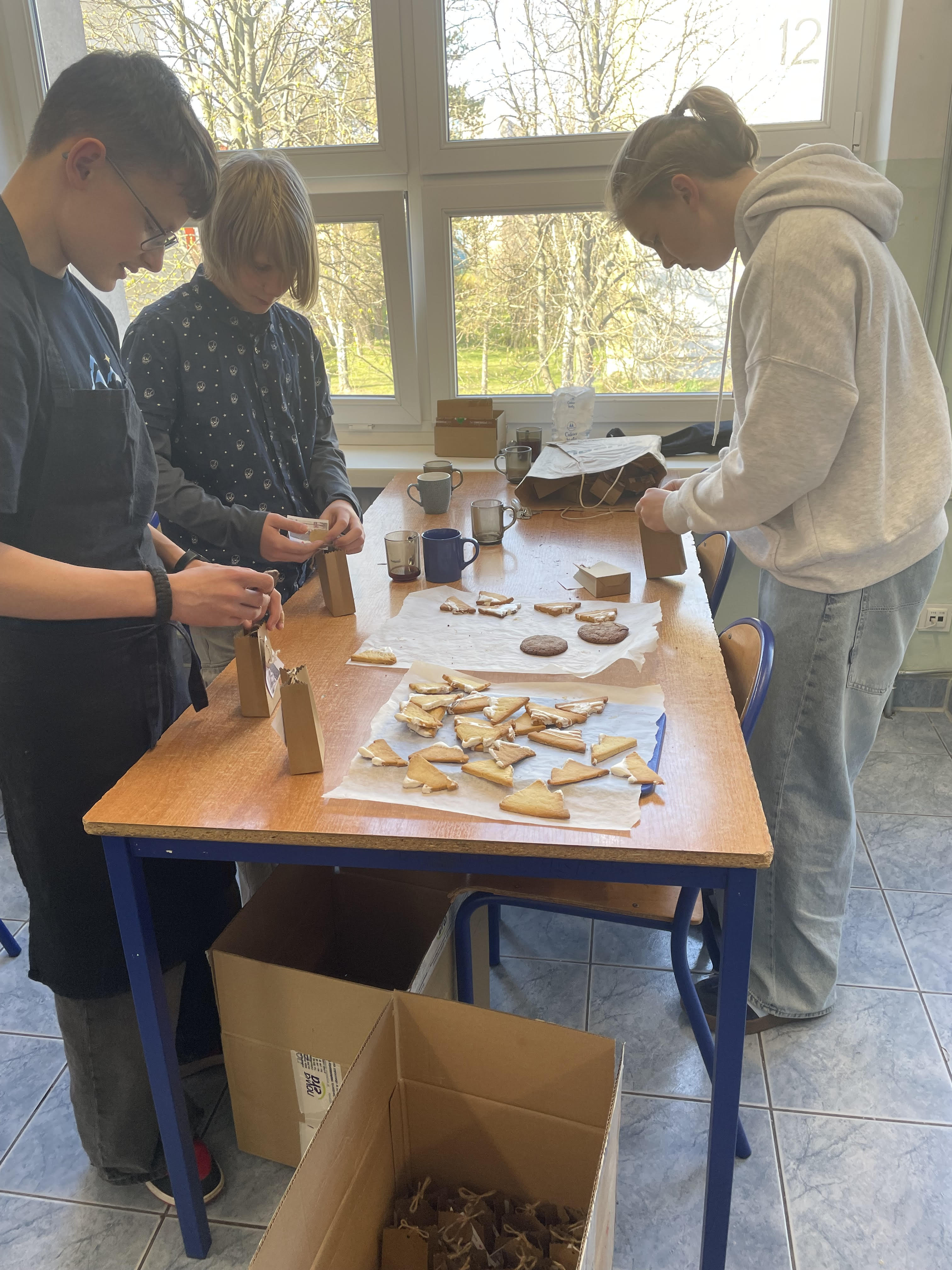 Nasze uczennice i uczniowie upiekli ciasteczka w kształcie gór, z których cały dochód został przeznaczony na pomoc dla naszej bohaterki. Zebraliśmy 564 zł, które zostały wpłacone do Fundacji Marzeny Figiel-Strzała - tegorocznej laureatki KOLOSÓW i nagrody publiczności.