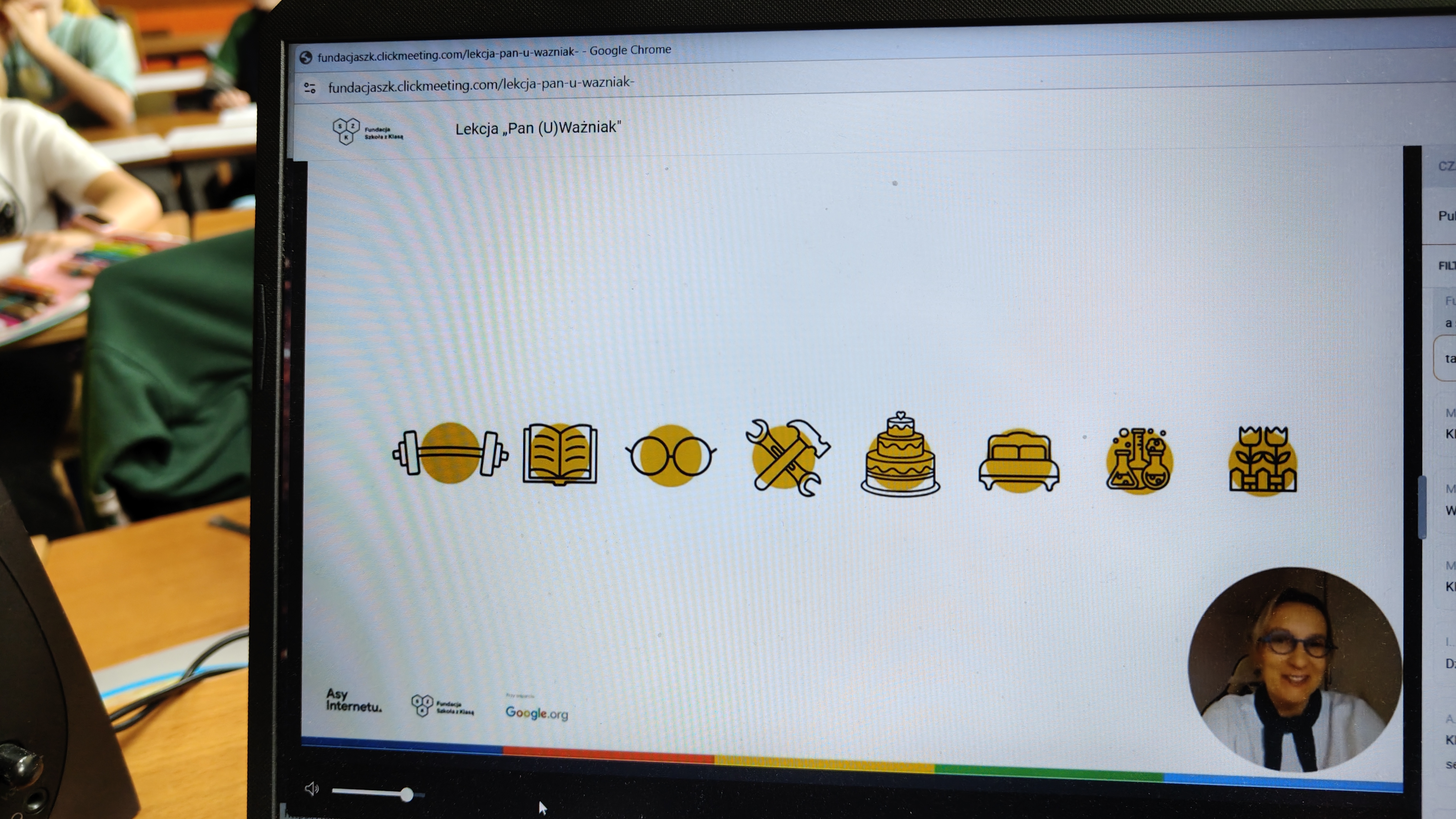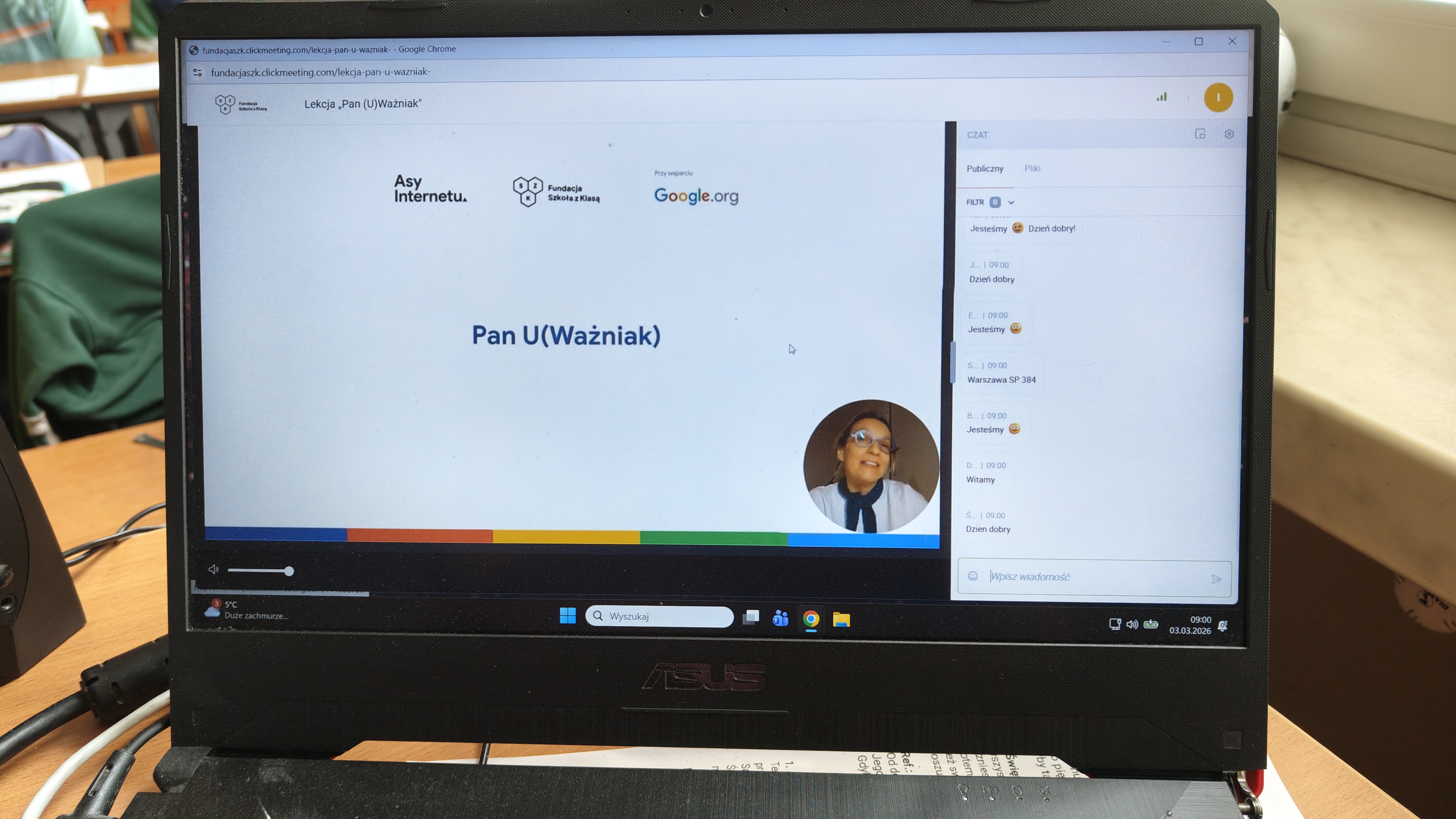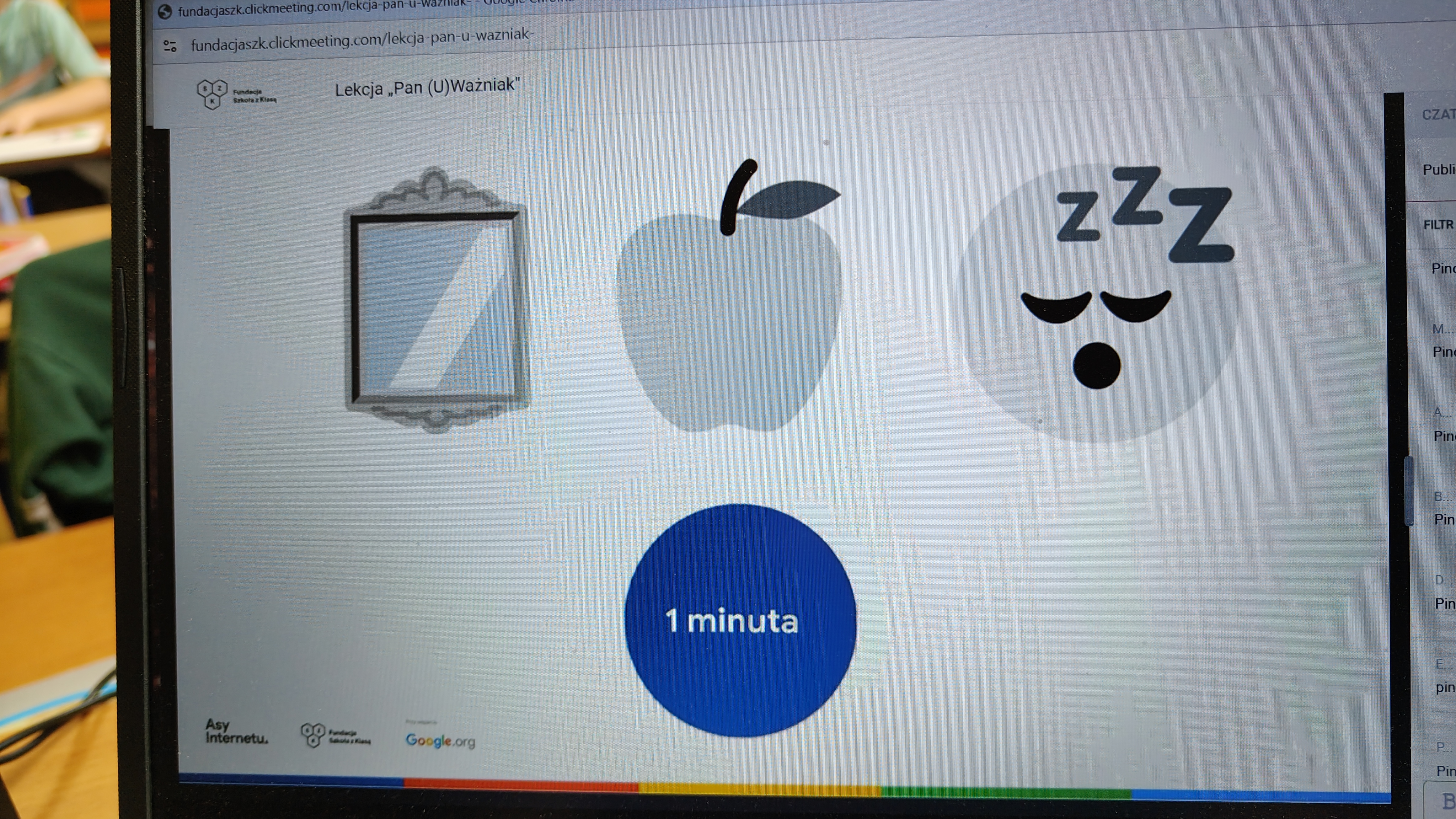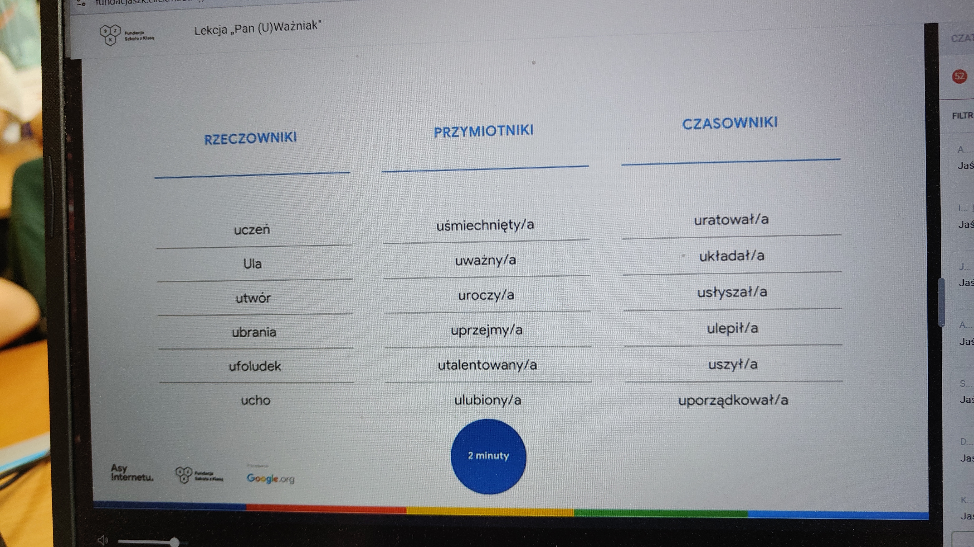 We wtorek 03.03. uczniowie klasy 2 a uczestniczyli w tegorocznej edycji Konferencji Asów Internetu, organizowanej przez Fundację Szkoła z Klasą! Wydarzenie realizowane jest w ramach programu Asy Internetu, który skupia się na kształtowaniu cyfrowego obywatelstwa i korzystania z internetu w sposób świadomy i odpowiedzialny. Program jest realizowany przy wsparciu Google.org. Zajęcia miały charakter online, a temat lekcji brzmiał: "Co to znaczy być uważnym w Internecie?". Bohaterem spotkania był Pan U(Ważniak), który w czasie huraganu zgubił literkę "U" i został przemądrzałym i nieuważnym Ważniakiem. Na szczęście dzięki pomocy uczniów, którzy z zapałem wykonywali interaktywne zadania, proponowane przez prowadzącą, nasz bohater odnalazł literkę "U" i wrócił do Interlandii -krainy Internetu, po której znów mógł poruszać się z uważnością, aby czuć się bezpiecznie. Z pewnością były to atrakcyjne, a zarazem pouczające zajęcia, dotyczące bezpiecznego korzystania z Internetu przez najmłodszych. Wych. Iwona Birunt