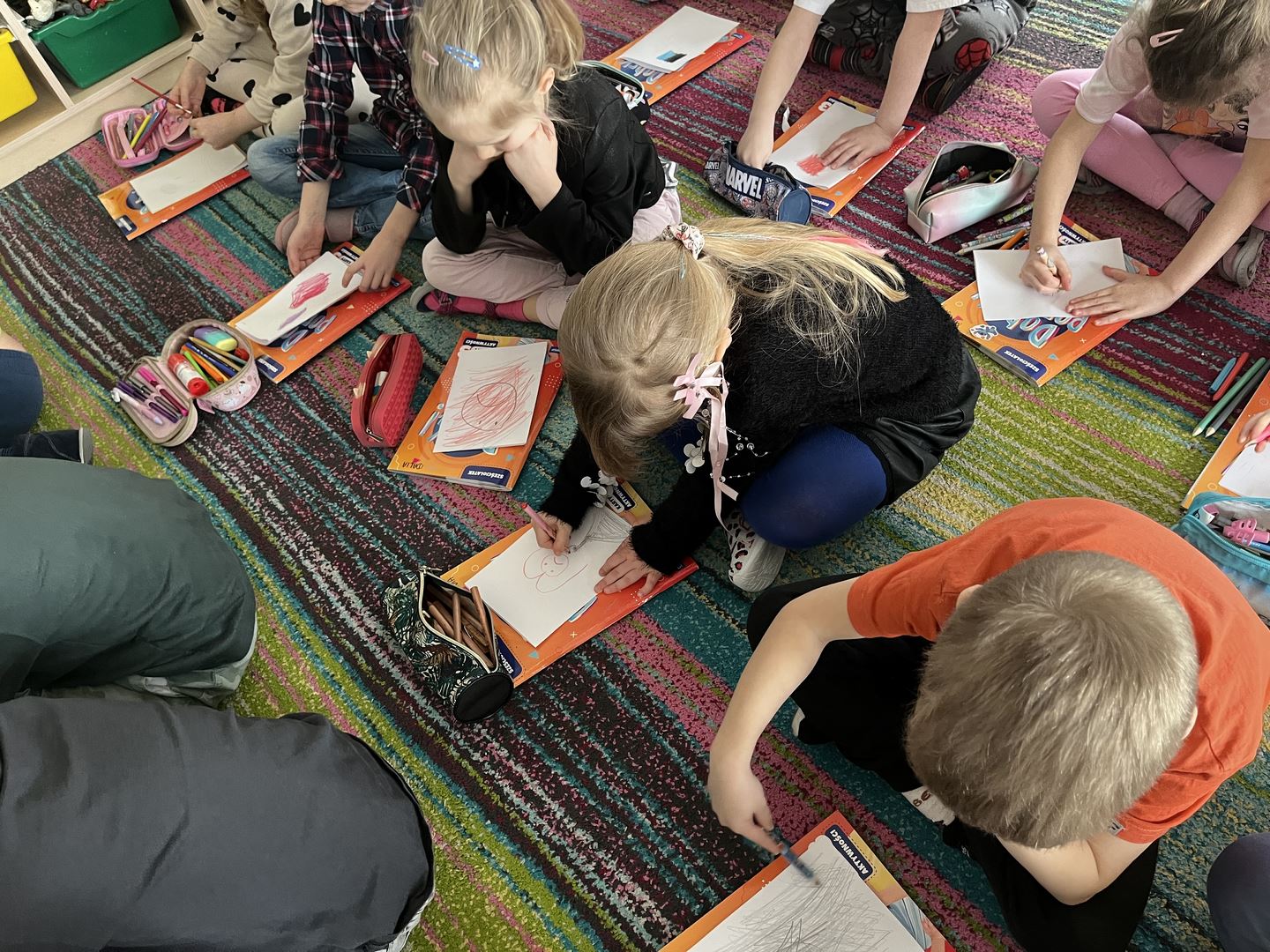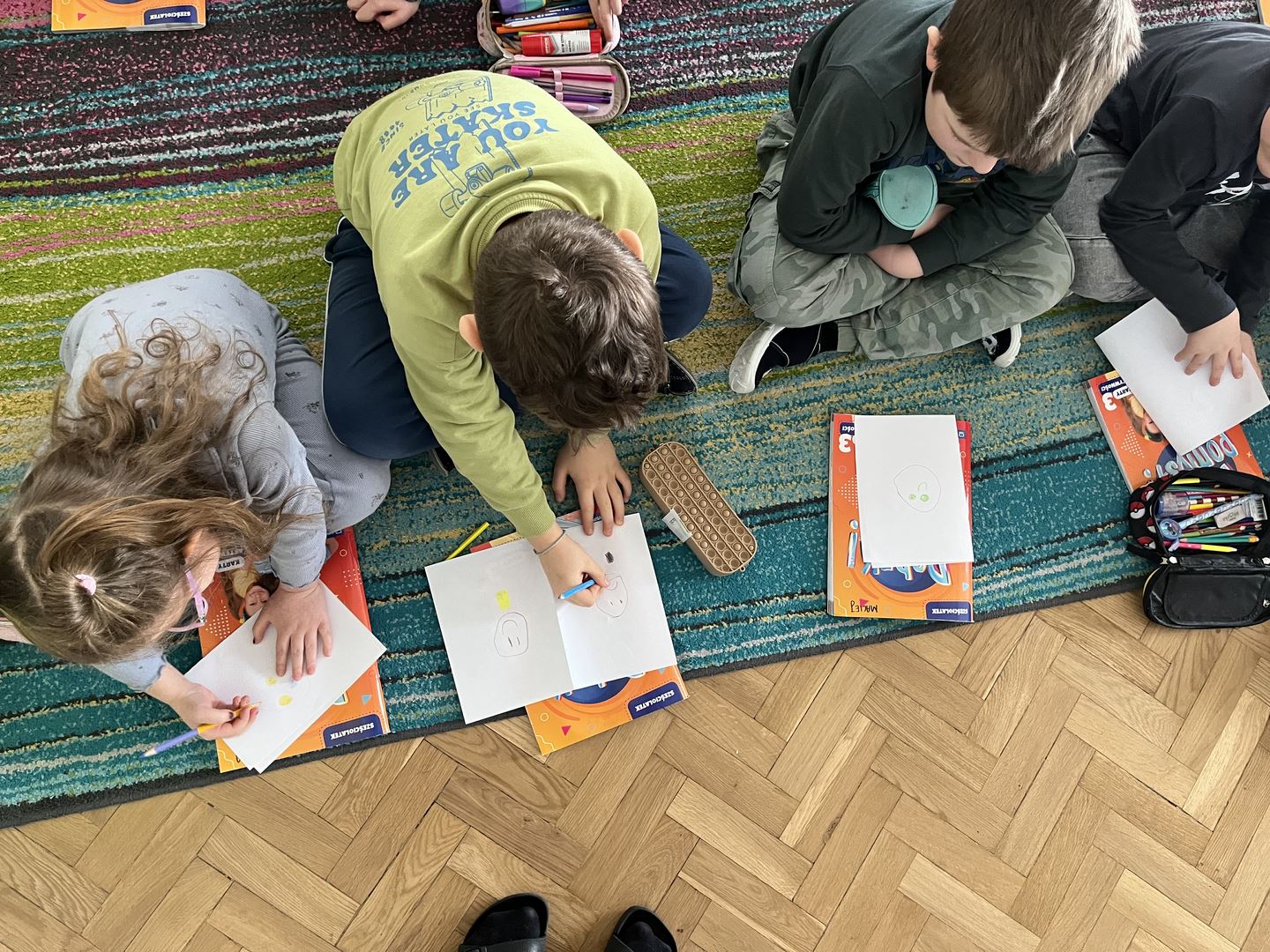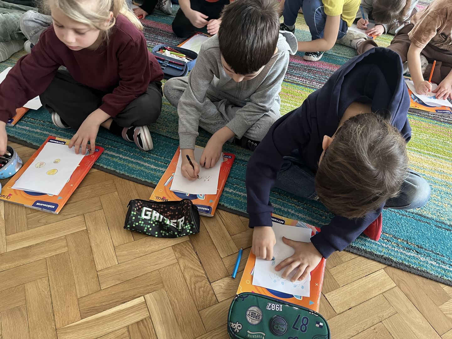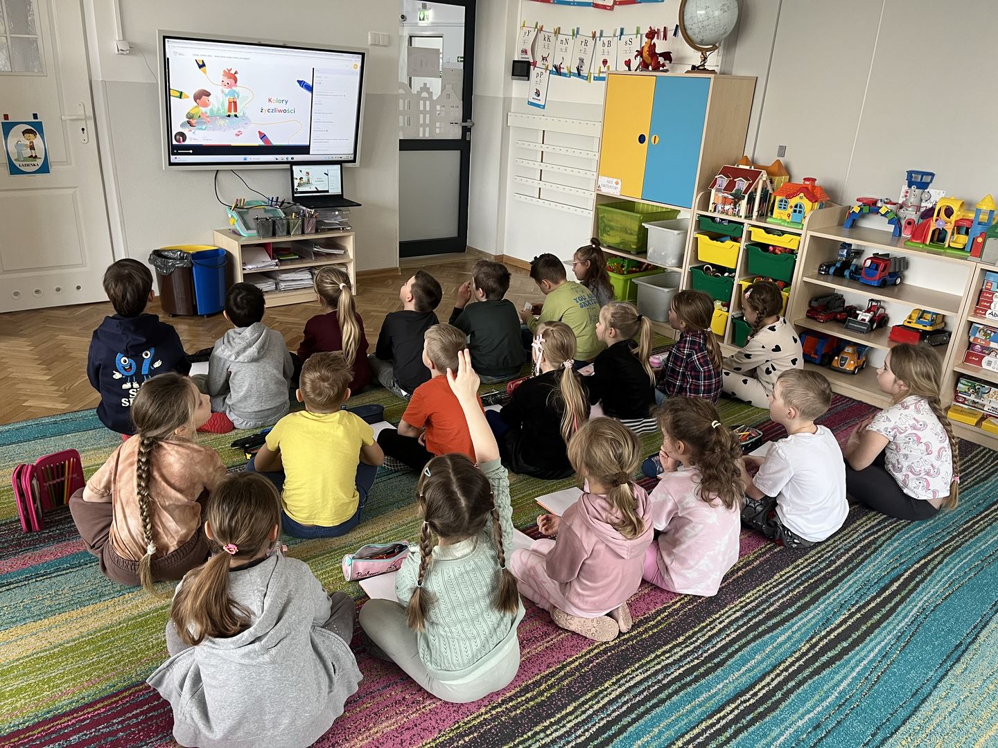 W ramach realizacji programu Asy Internetu grupa 0b brała udział w zajęcia online pt. „Kolory słów – kiedy słowa ranią, a kiedy pomagają”. Spotkanie rozpoczęło się od rozmowy o znaczeniu słów oraz o tym, jaki mają wpływ na nasze emocje. Dzieci opowiadały, jak czują się, gdy słyszą miłe i wspierające komunikaty, a jak wtedy, gdy ktoś mówi coś przykrego. Do części plastycznej dzieci wcześniej przygotowały kartki i kredki. Następnie wysłuchały opowiadania o słowach zmieniających kolory. W historii dobre, życzliwe słowa rozjaśniały świat jasnymi barwami, natomiast te raniące sprawiały, że kolory stawały się ciemne i smutne. Opowieść stała się inspiracją do dalszej rozmowy o emocjach oraz o tym, jak nasze wypowiedzi wpływają na innych. Dzieci chętnie podawały przykłady słów, które budują i pomagają, a także takich, które mogą sprawić komuś przykrość. W pracy plastycznej przedstawiły „kolory słów”, pokazując za pomocą barw emocje wywoływane przez dobre i złe komunikaty. Zajęcia uświadomiły dzieciom, że słowa mają ogromną moc – mogą ranić, ale mogą też wspierać, dodawać odwagi i sprawiać radość.
