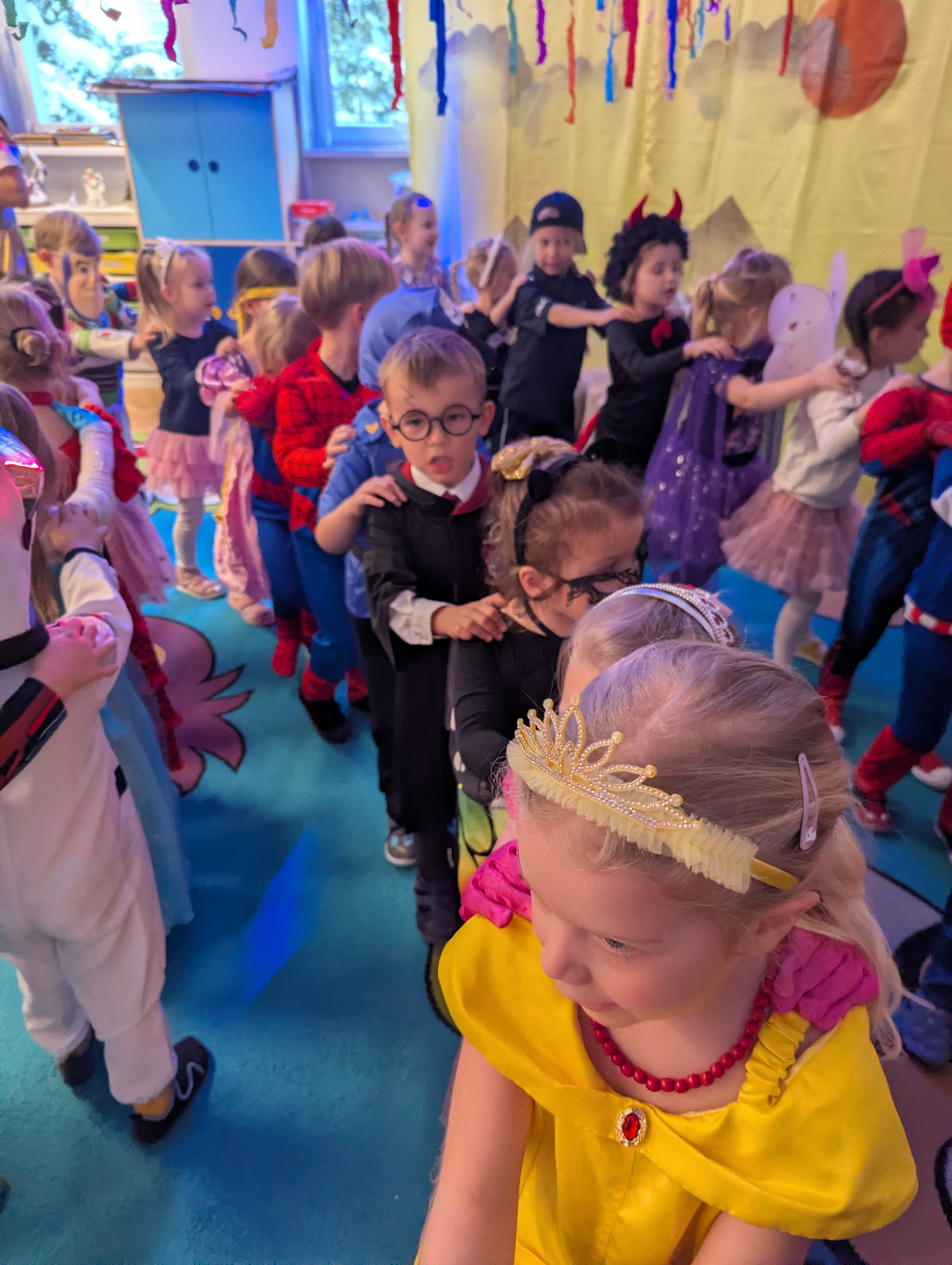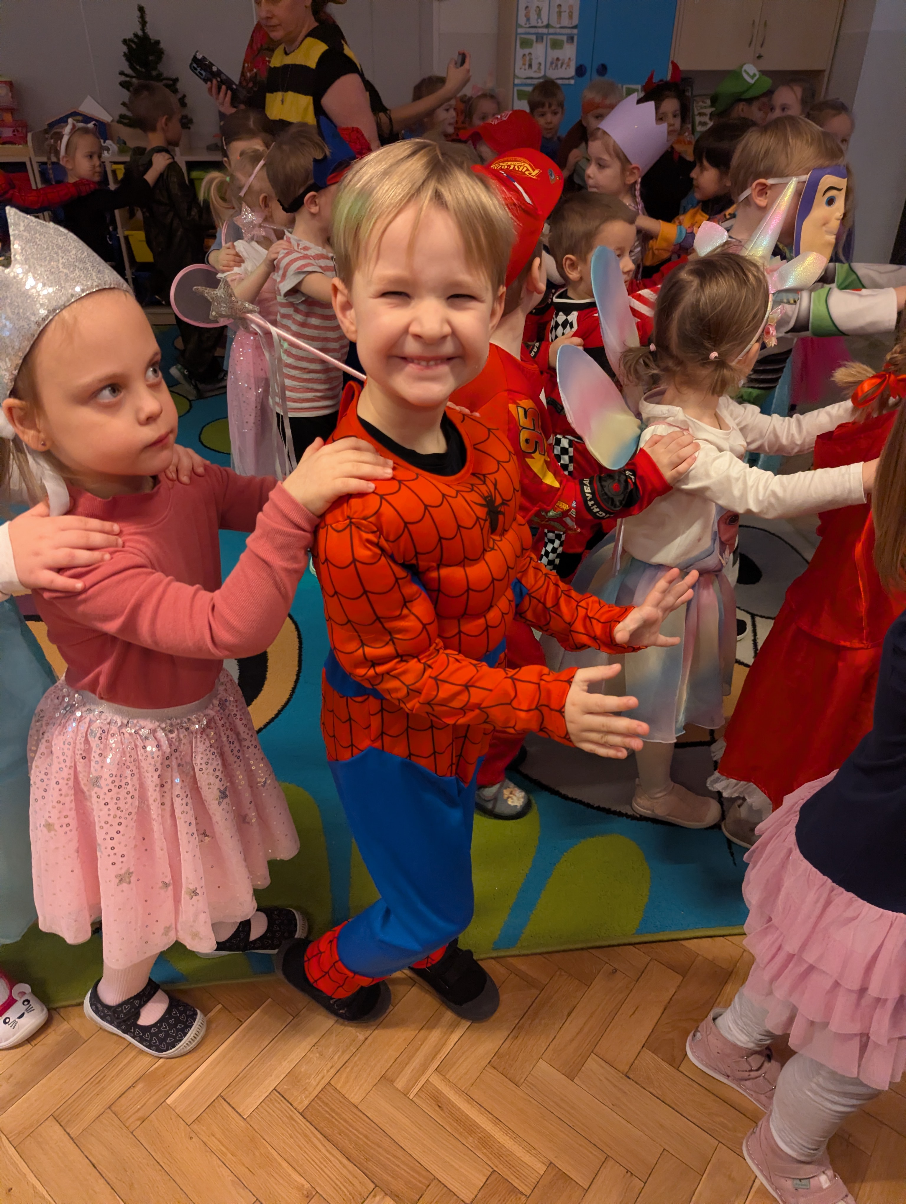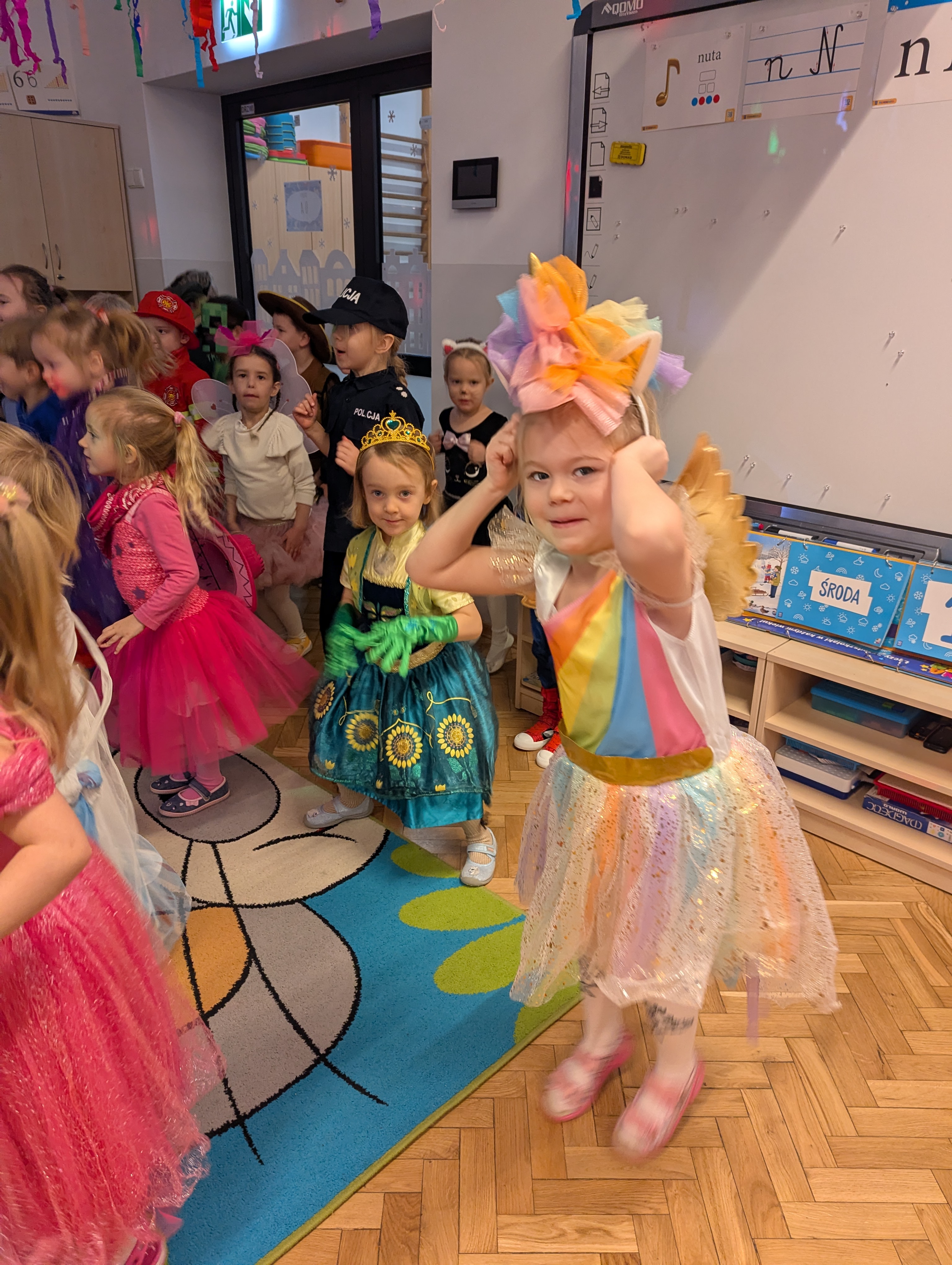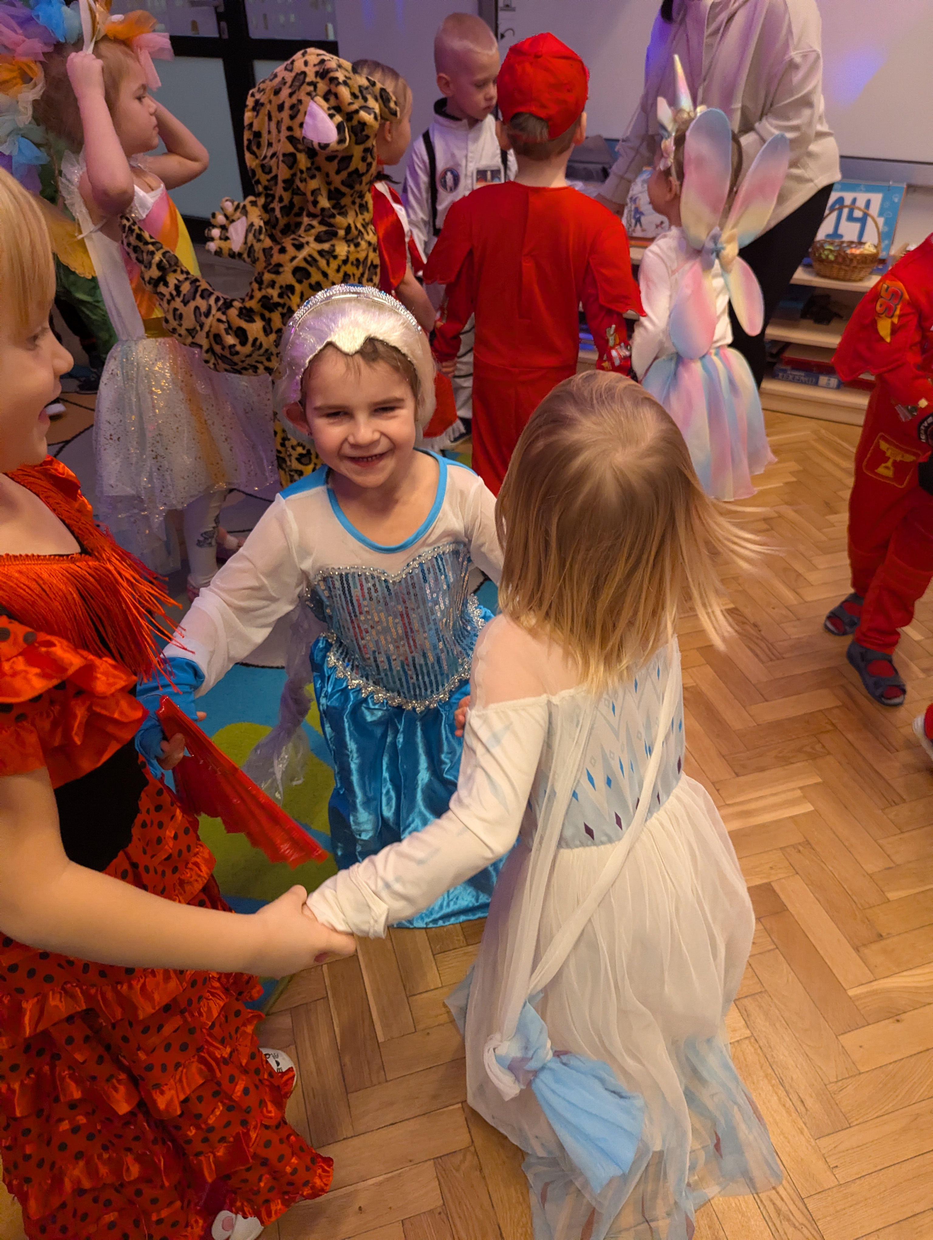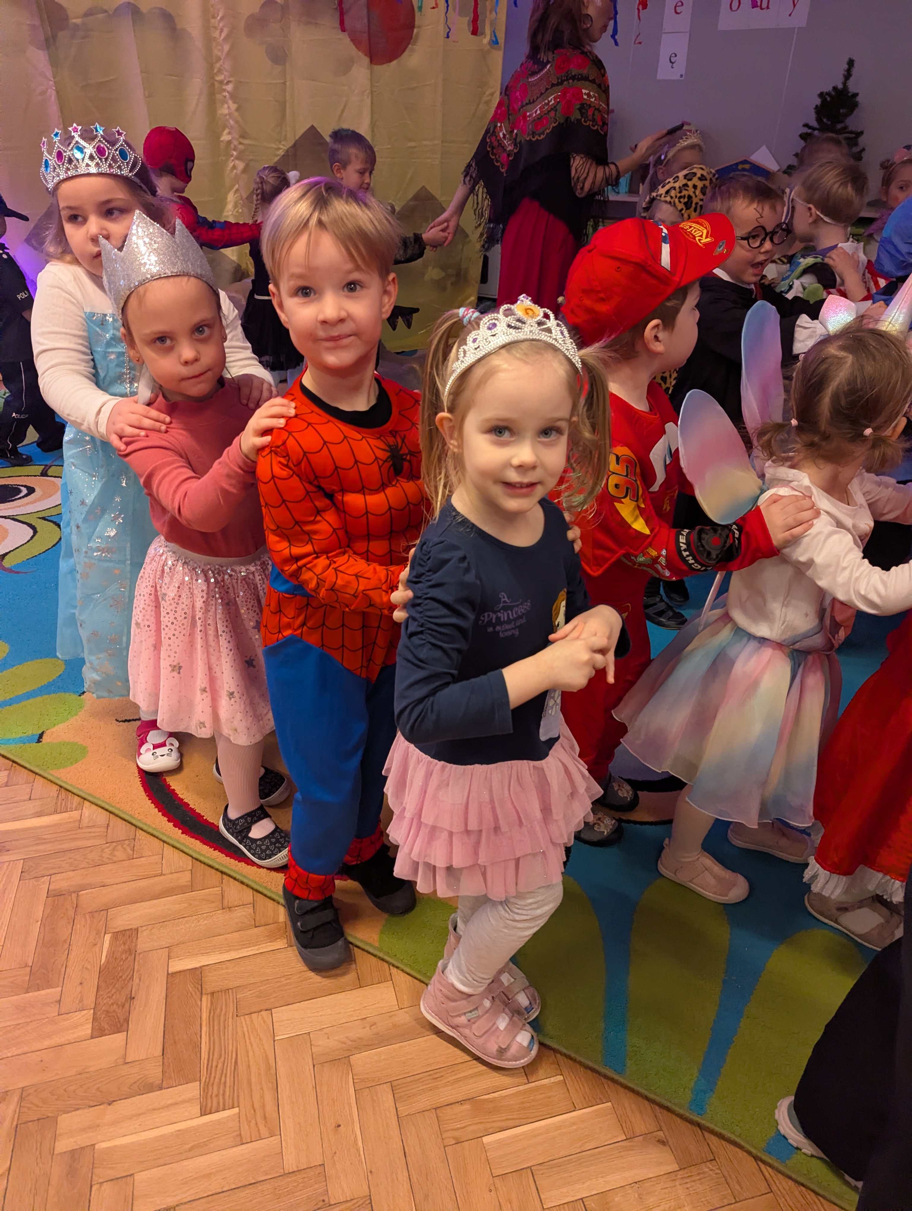 Przedszkolaki zachwyciły wszystkich barwnymi i pomysłowymi strojami. Z radością uczestniczyły w tańcach, zabawach animacyjnych oraz wesołych konkurencjach zespołowych. Towarzyszyła temu skoczna muzyka, mnóstwo śmiechu i niegasnące uśmiechy, dzięki czemu wydarzenie na długo pozostanie w pamięci dzieci.