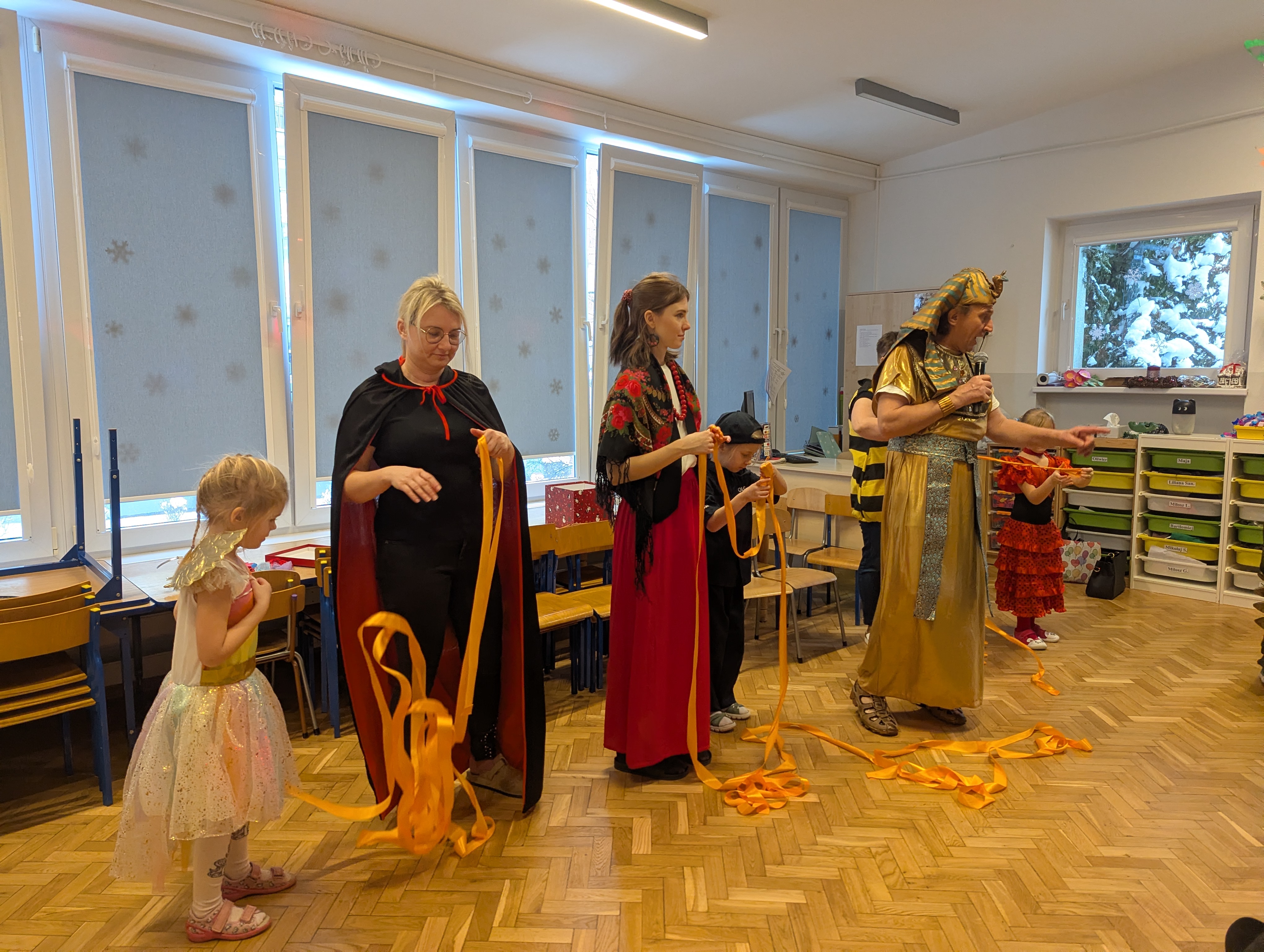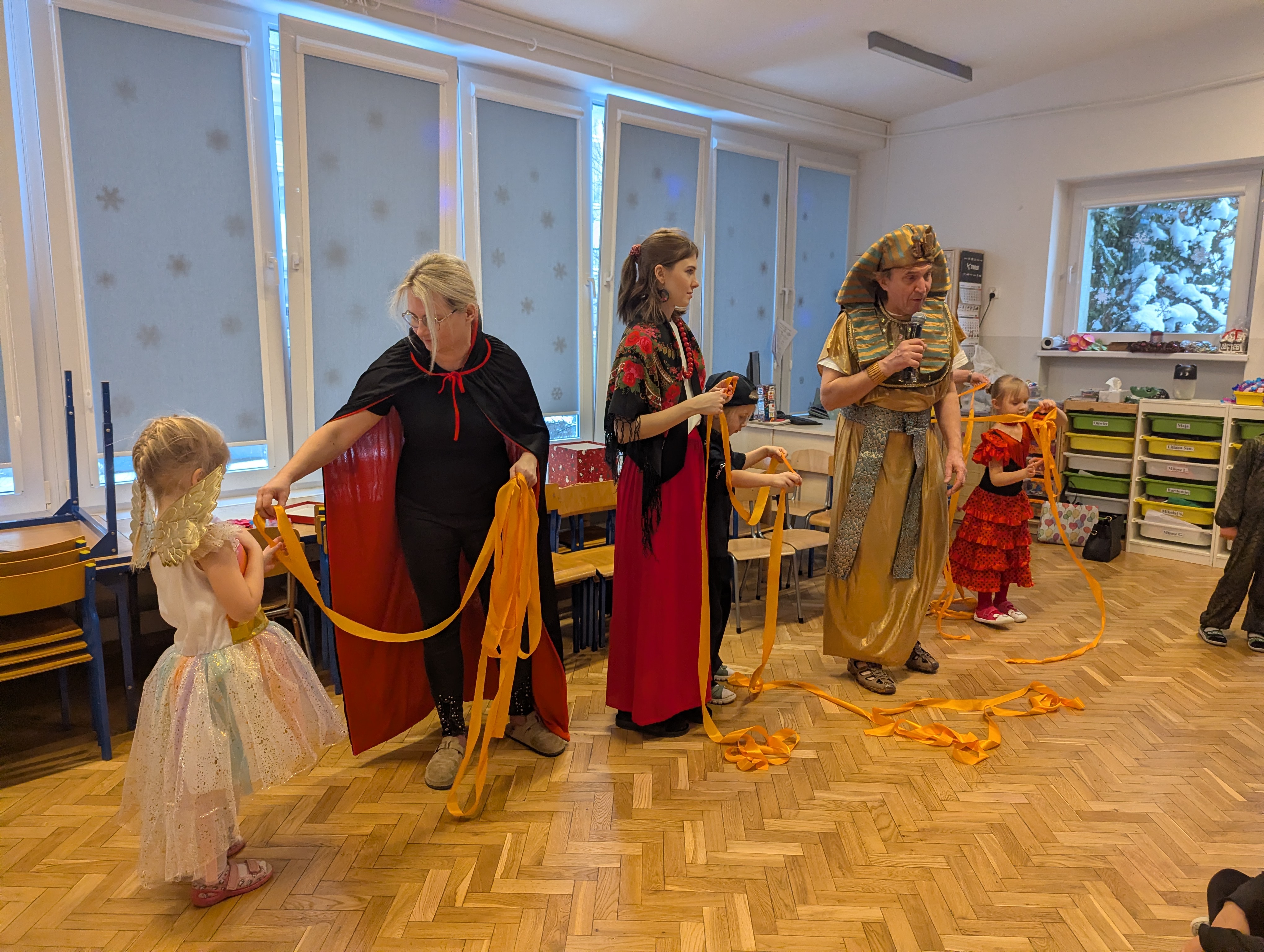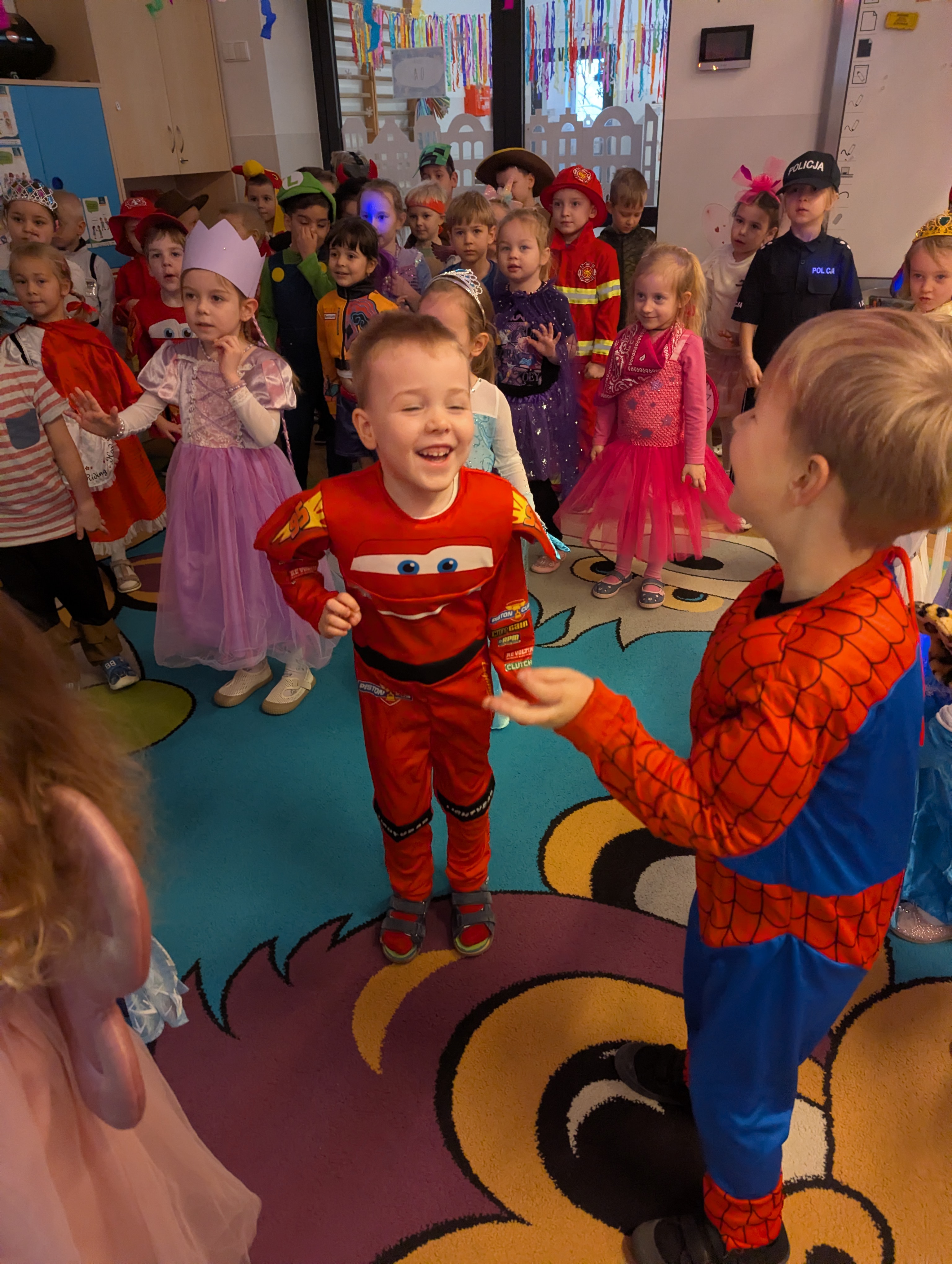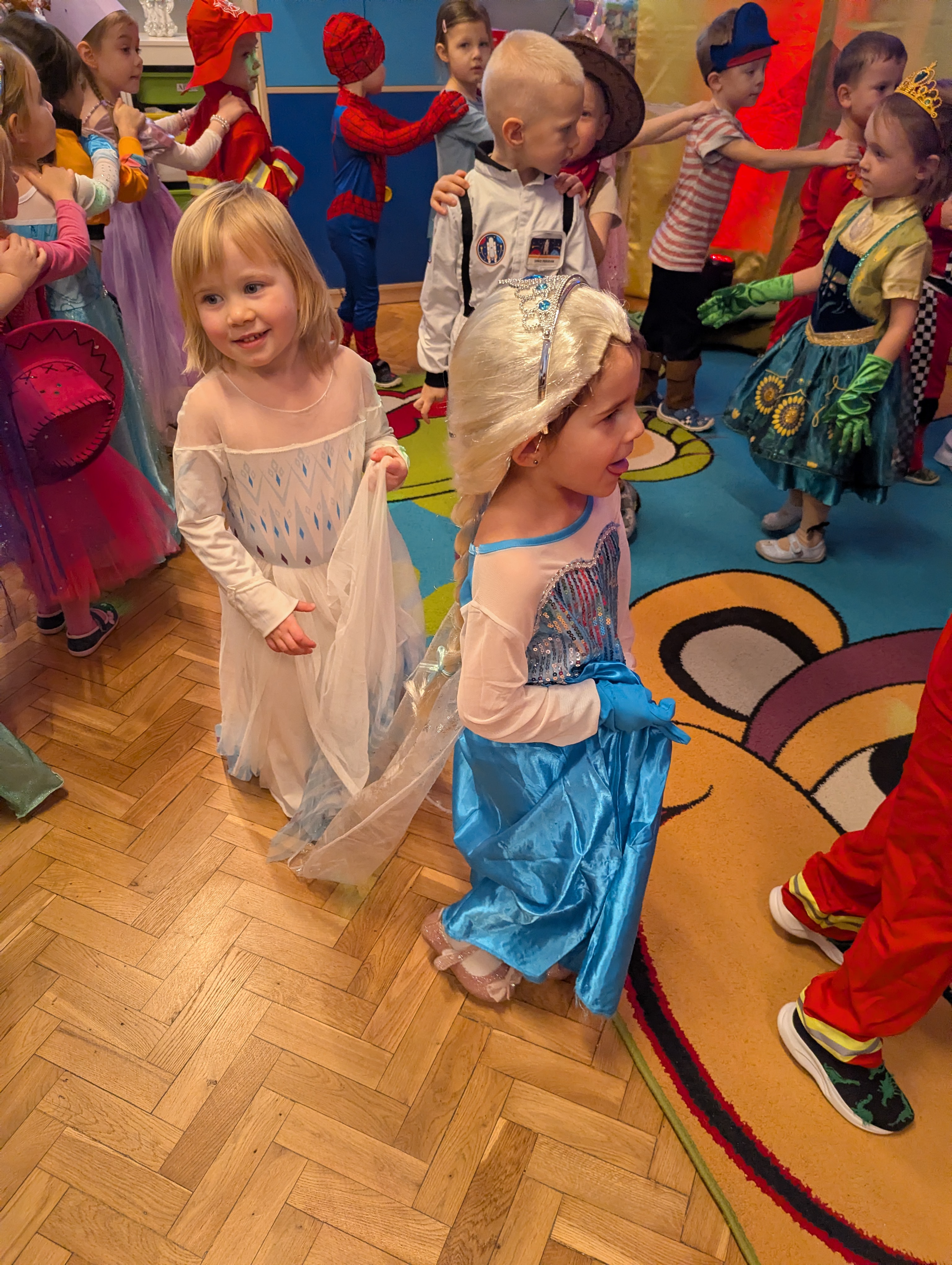 Przedszkolaki zachwyciły wszystkich barwnymi i pomysłowymi strojami. Z radością uczestniczyły w tańcach, zabawach animacyjnych oraz wesołych konkurencjach zespołowych. Towarzyszyła temu skoczna muzyka, mnóstwo śmiechu i niegasnące uśmiechy, dzięki czemu wydarzenie na długo pozostanie w pamięci dzieci.