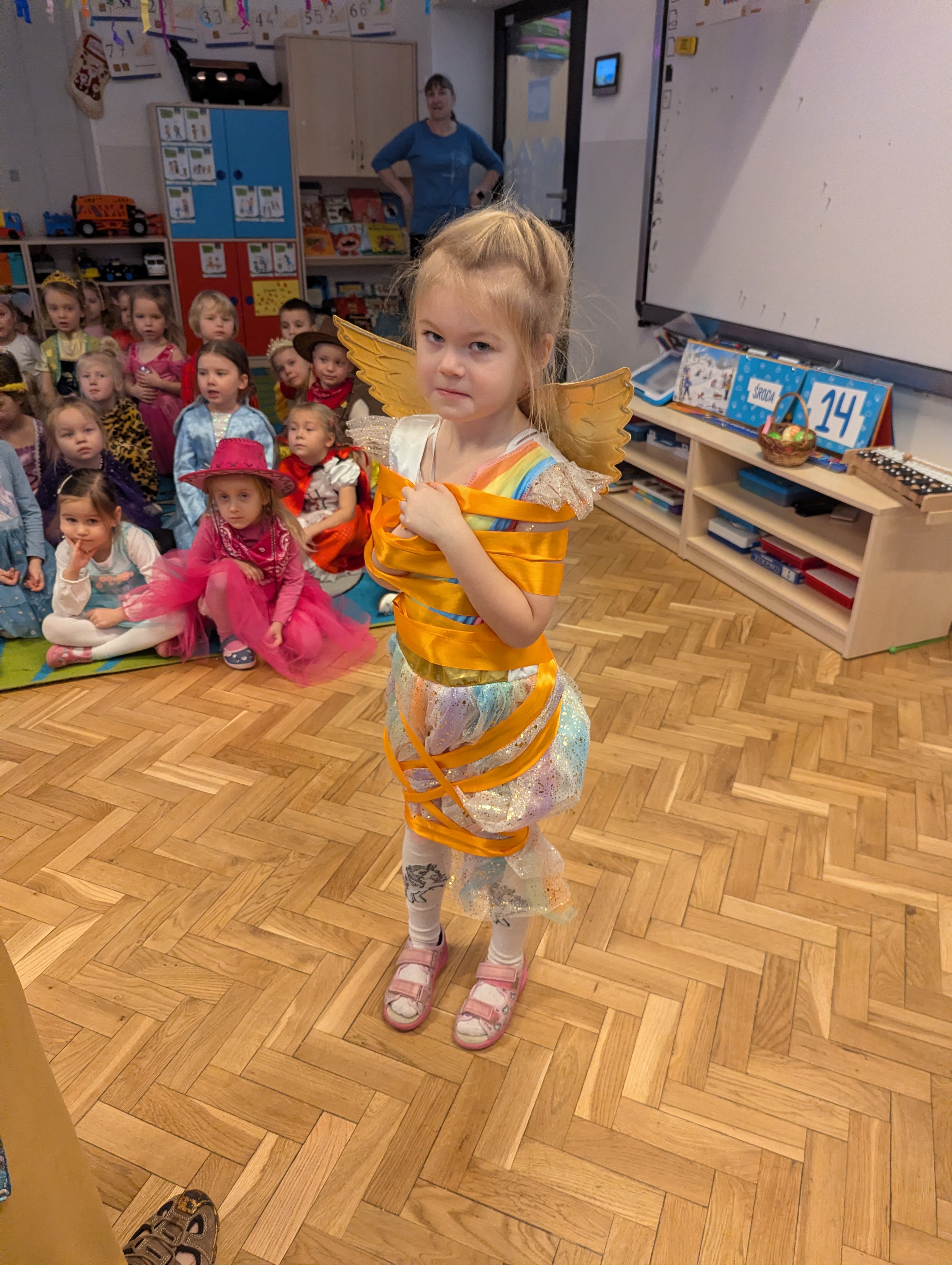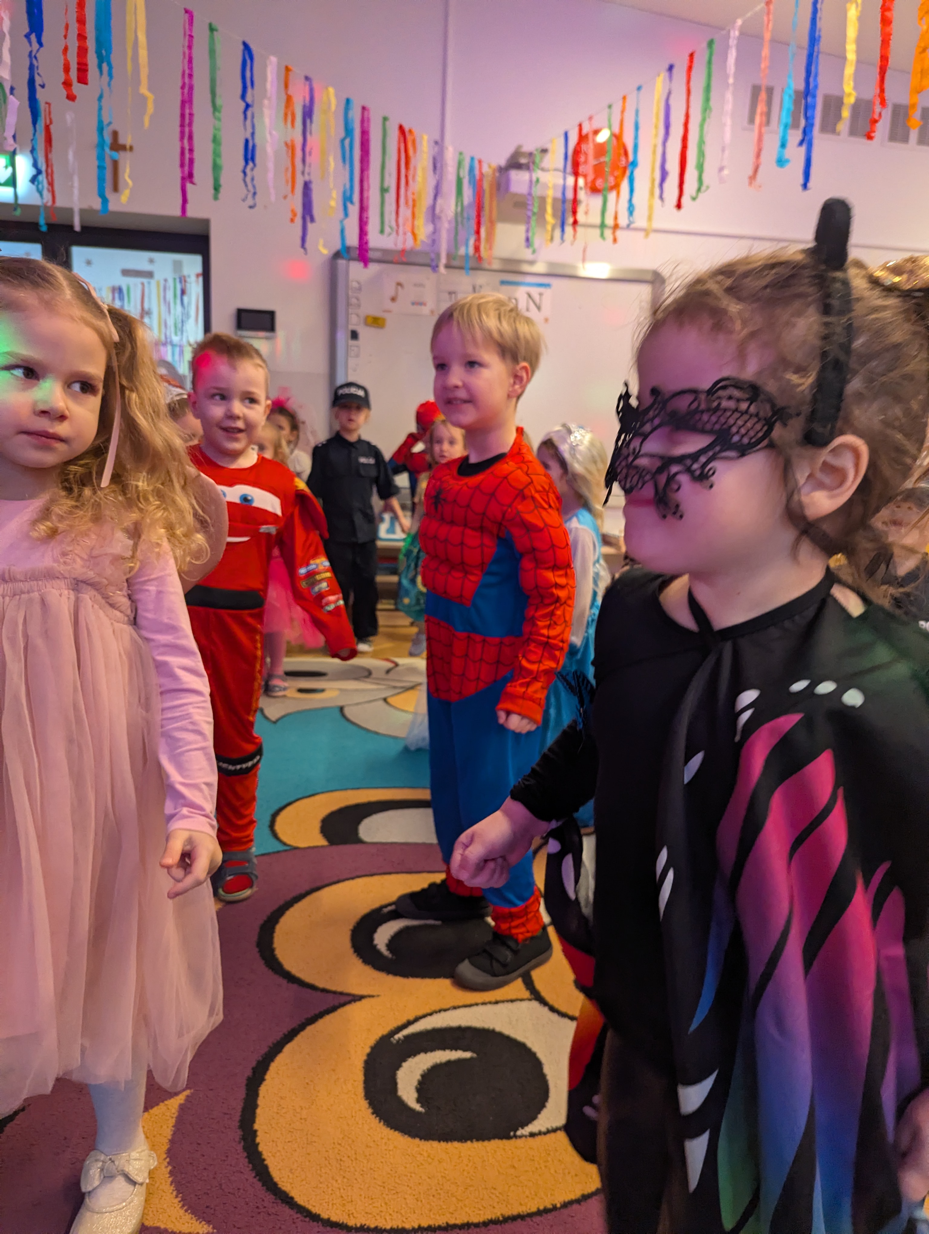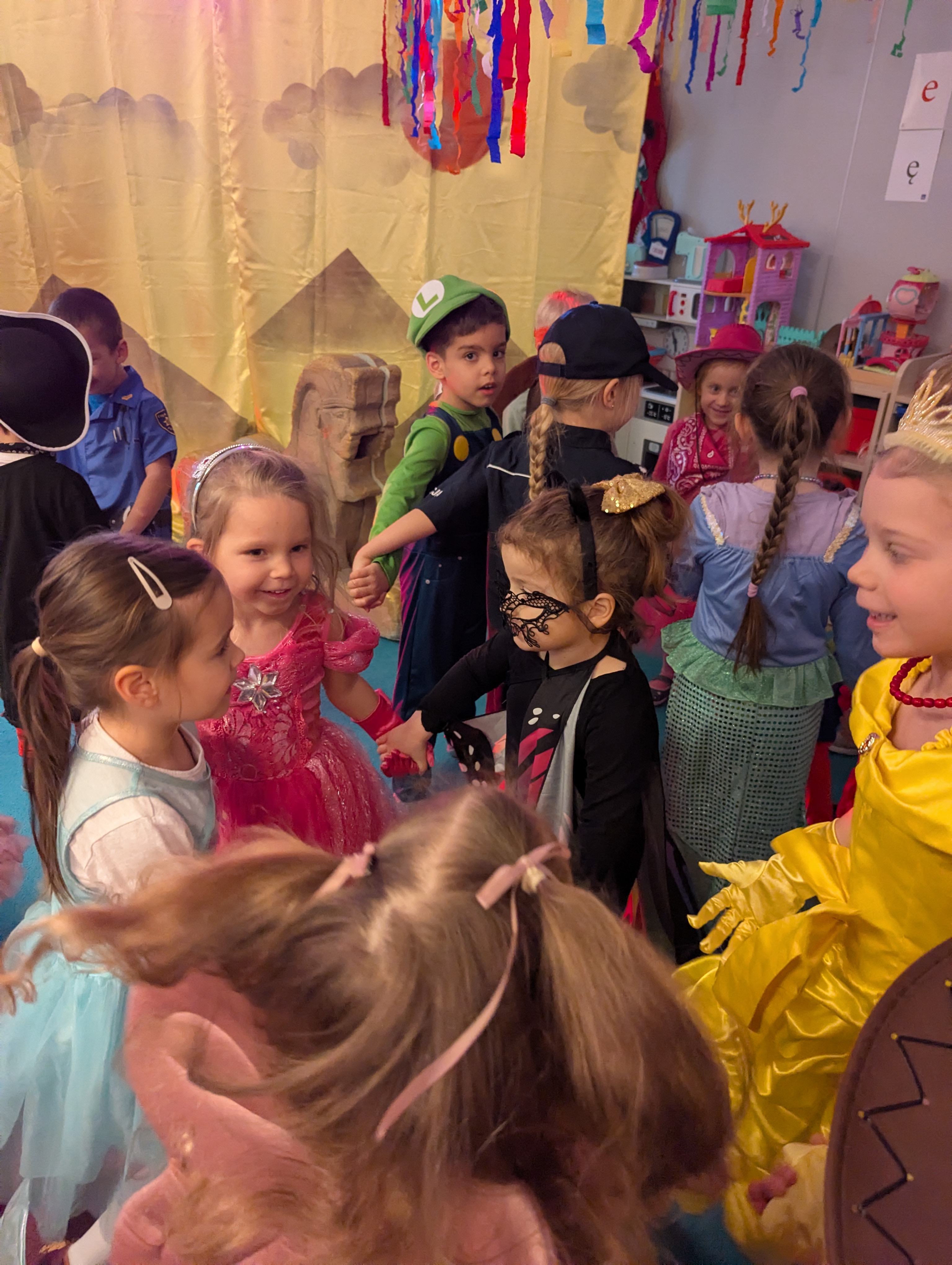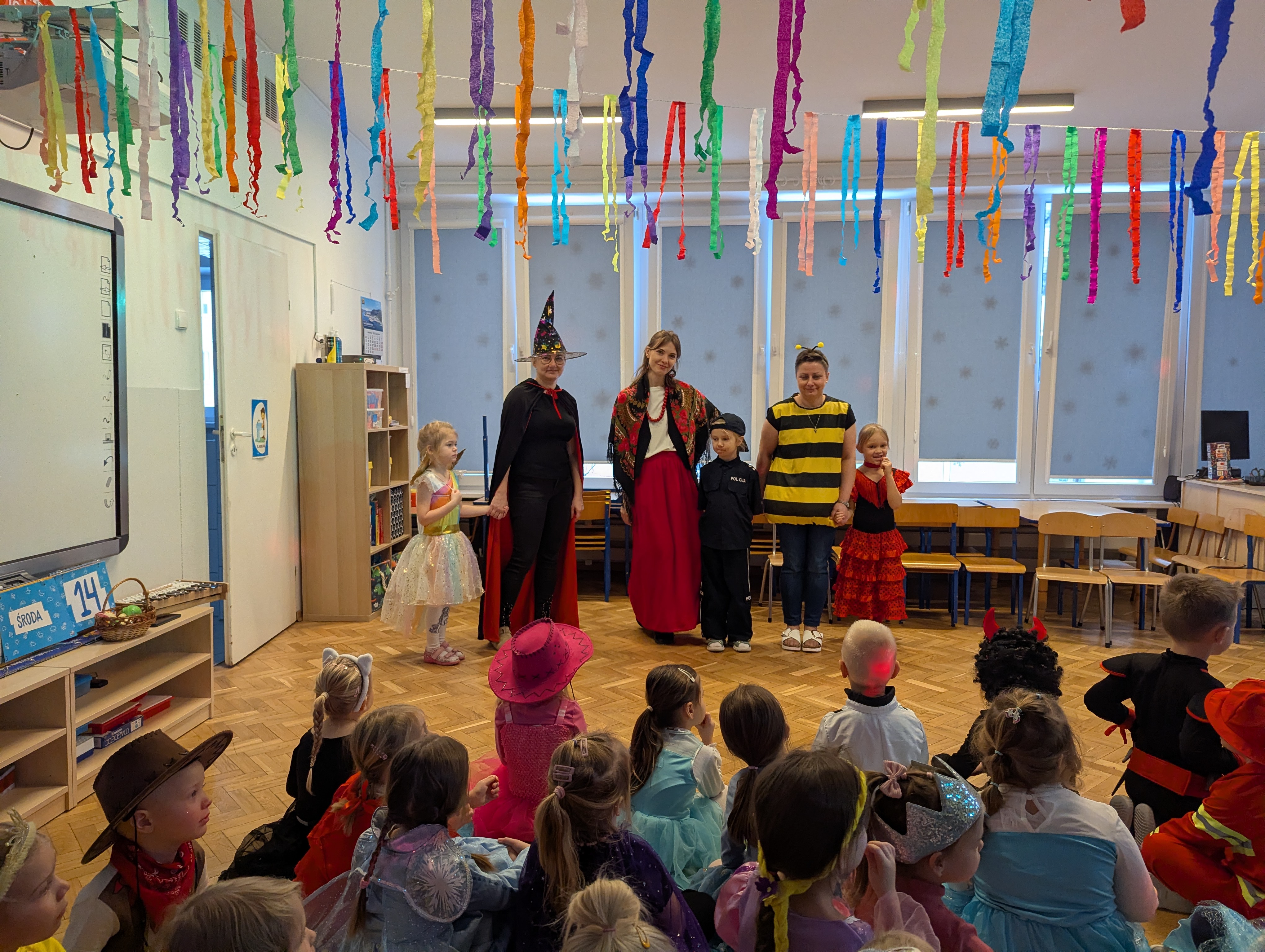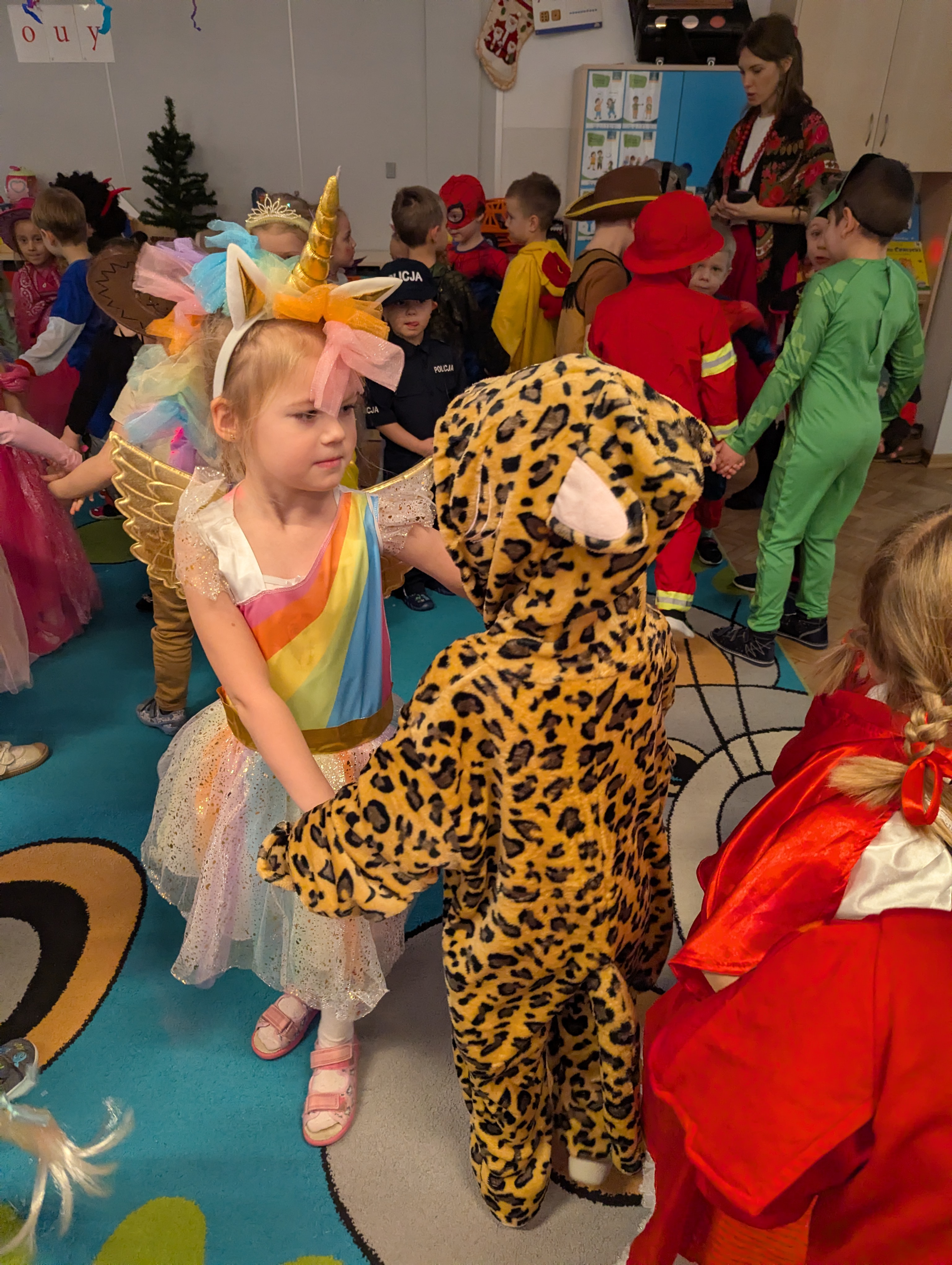 Przedszkolaki zachwyciły wszystkich barwnymi i pomysłowymi strojami. Z radością uczestniczyły w tańcach, zabawach animacyjnych oraz wesołych konkurencjach zespołowych. Towarzyszyła temu skoczna muzyka, mnóstwo śmiechu i niegasnące uśmiechy, dzięki czemu wydarzenie na długo pozostanie w pamięci dzieci.