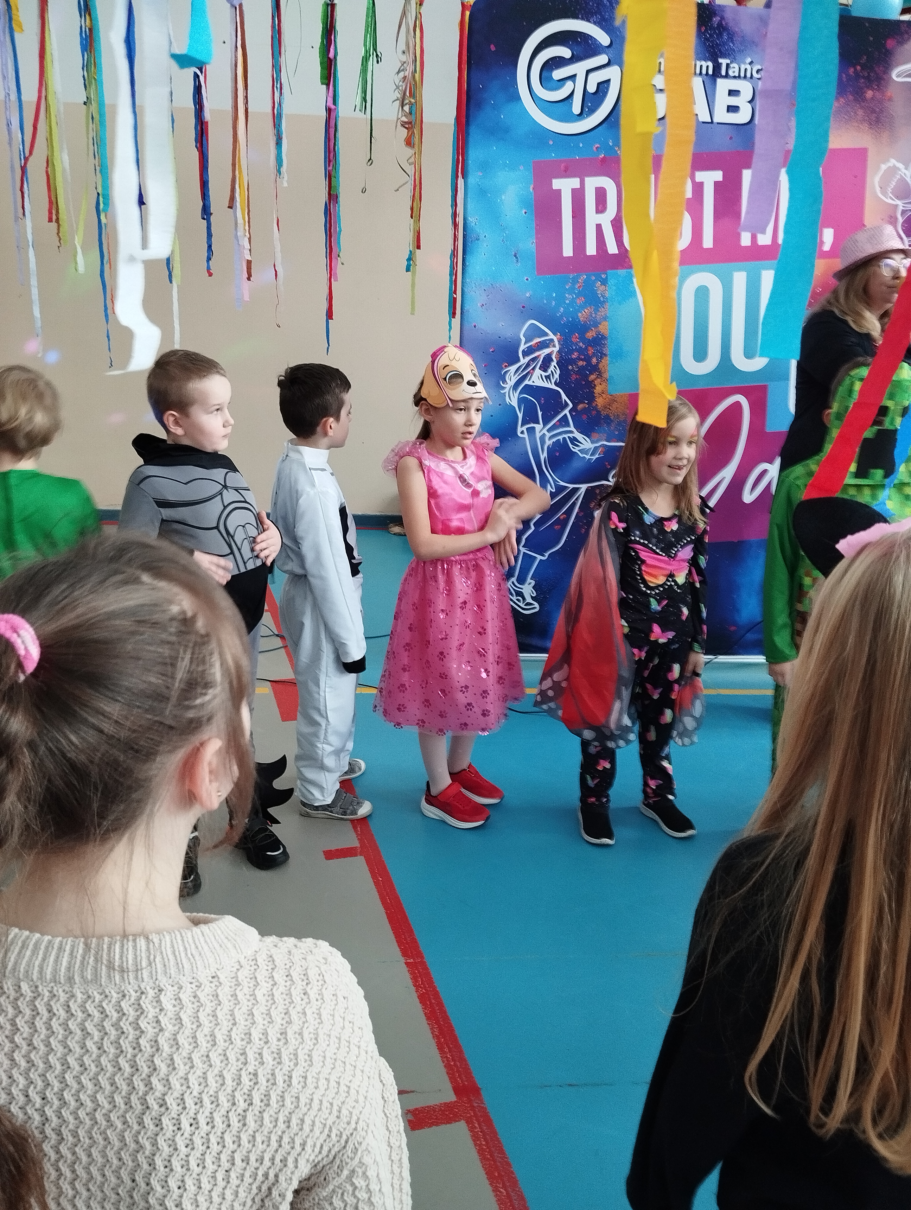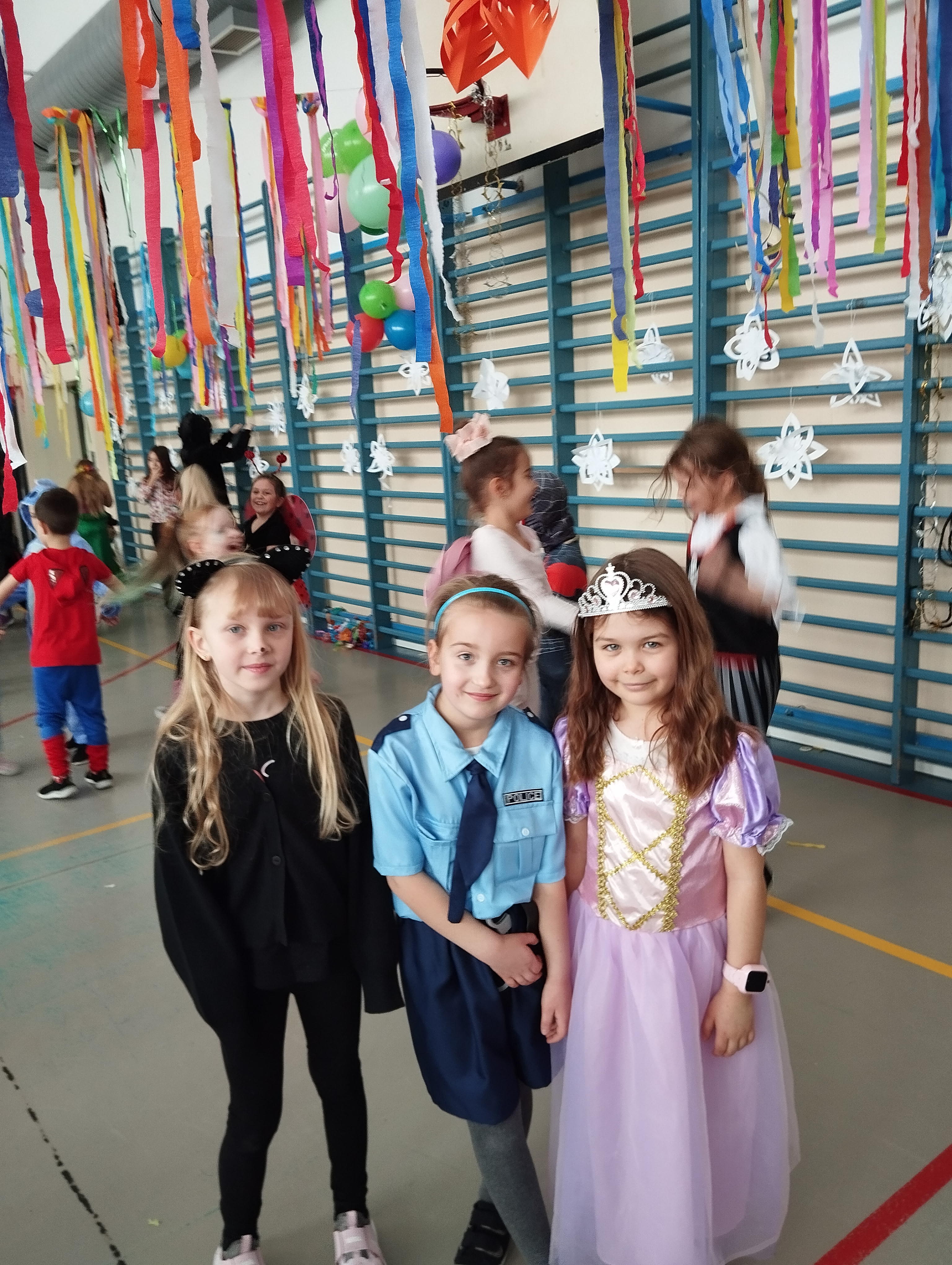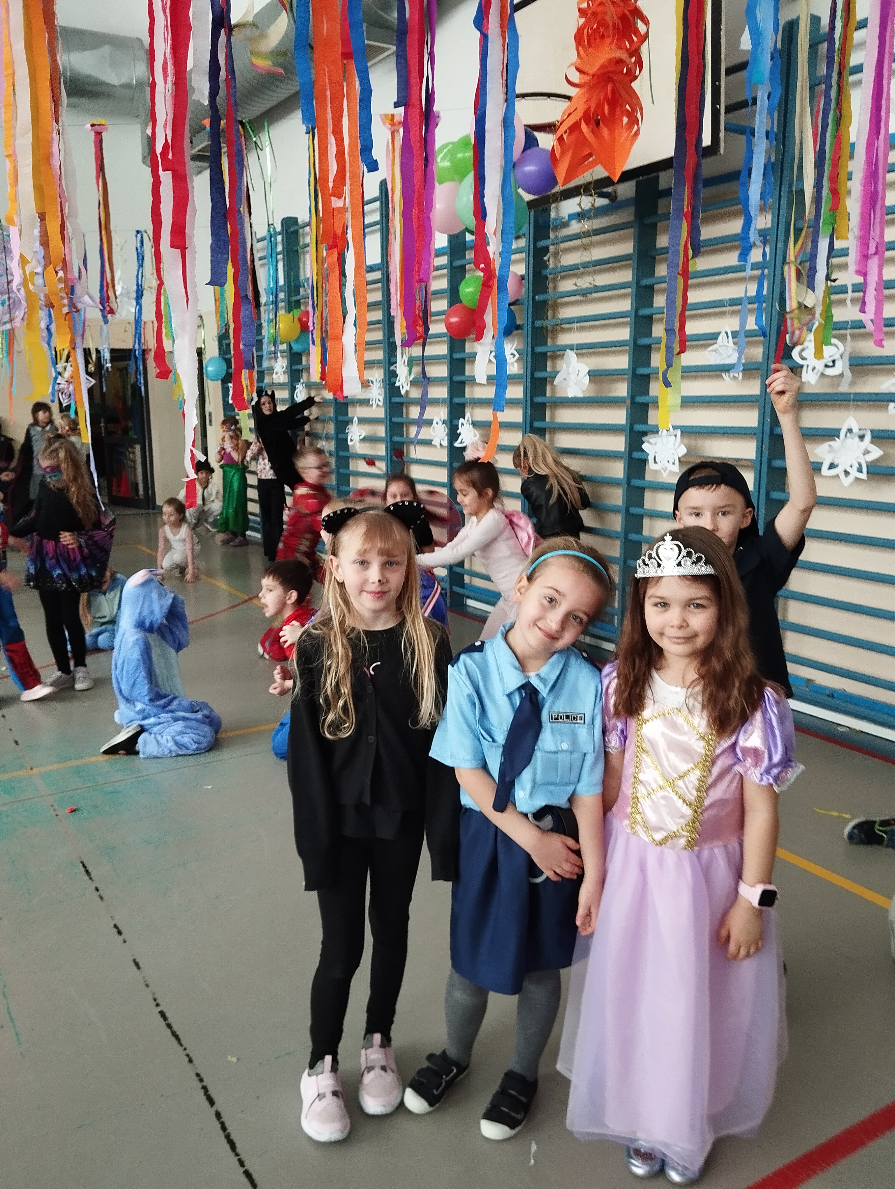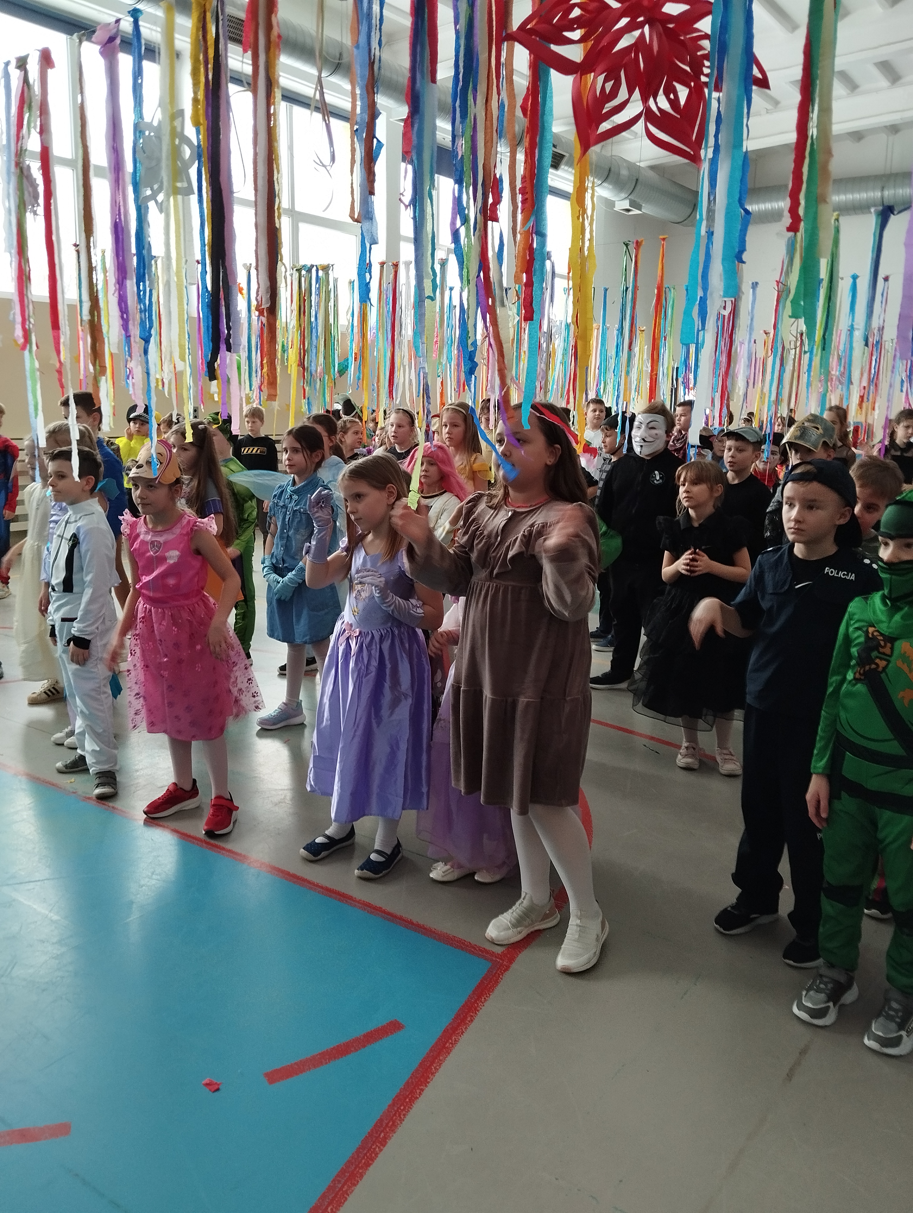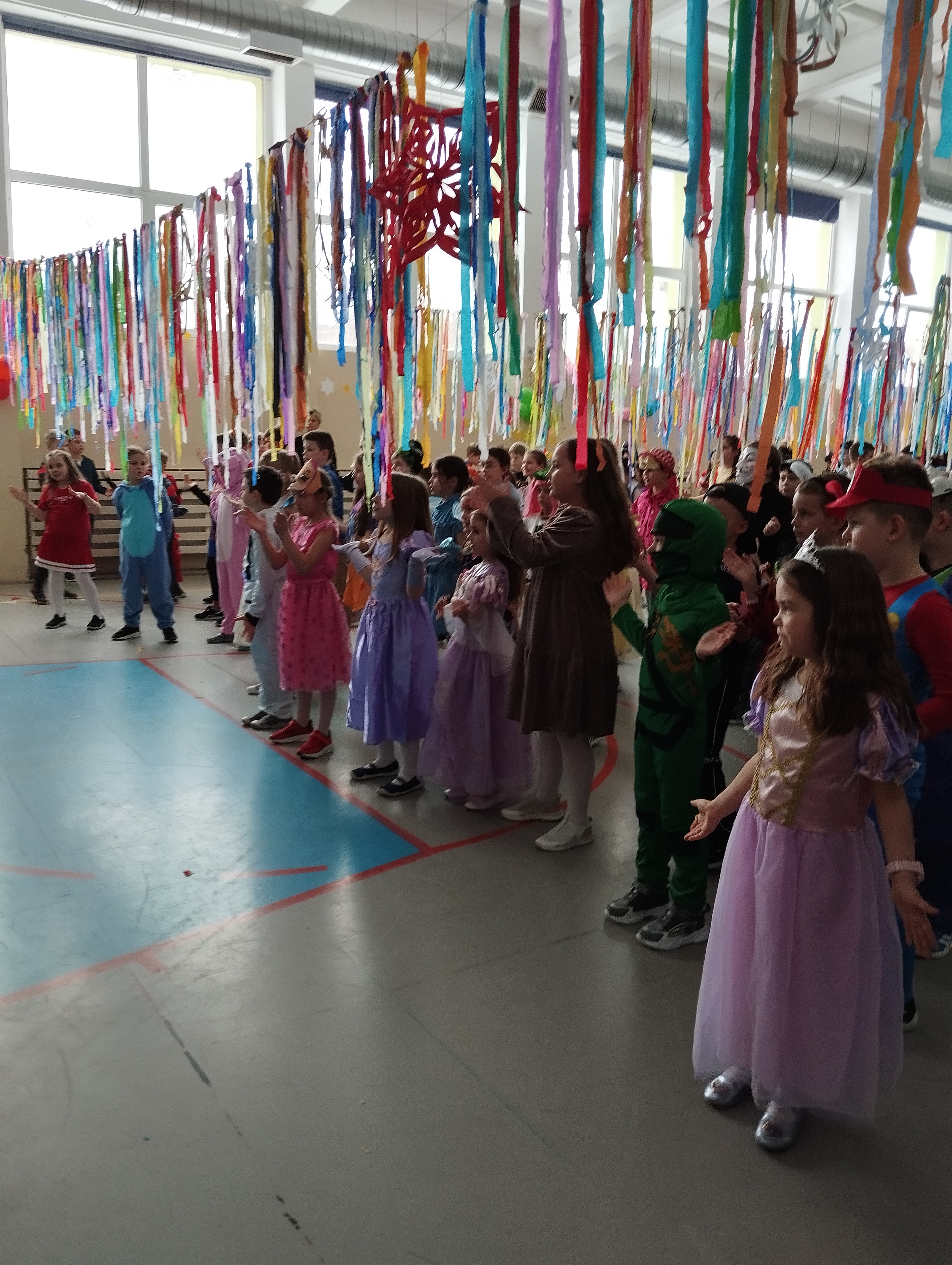 W naszej szkole odbył się radosny bal karnawałowy, na który uczniowie przybyli w pięknych i pomysłowych strojach. Sala gimnastyczna zamieniła się w kolorową salę balową pełną muzyki, tańca i uśmiechu. Dzieci chętnie brały udział w zabawach i konkursach, prezentując swoje kostiumy oraz taneczne umiejętności. Wspólna zabawa dostarczyła wszystkim wielu pozytywnych emocji i niezapomnianych wrażeń.