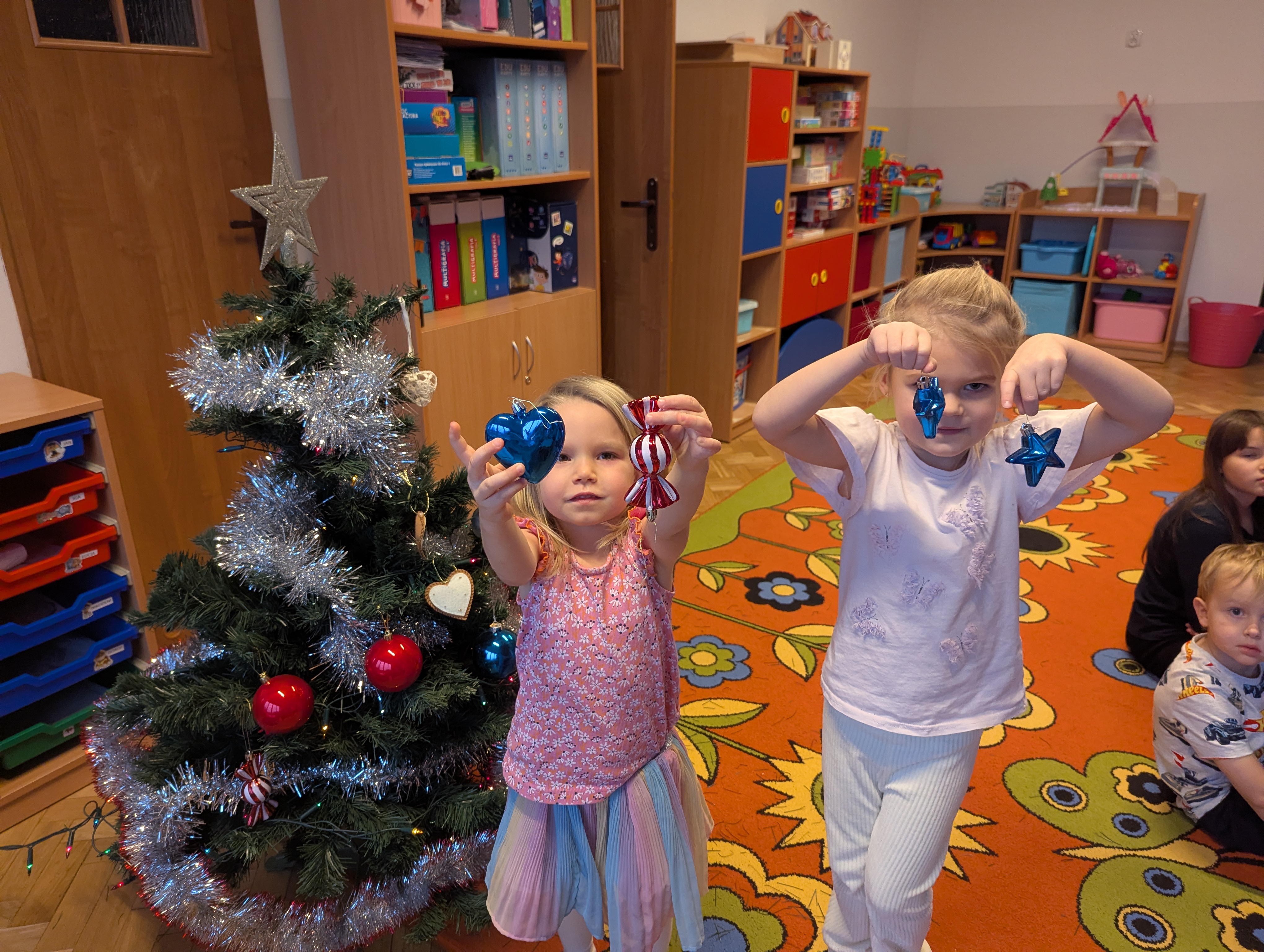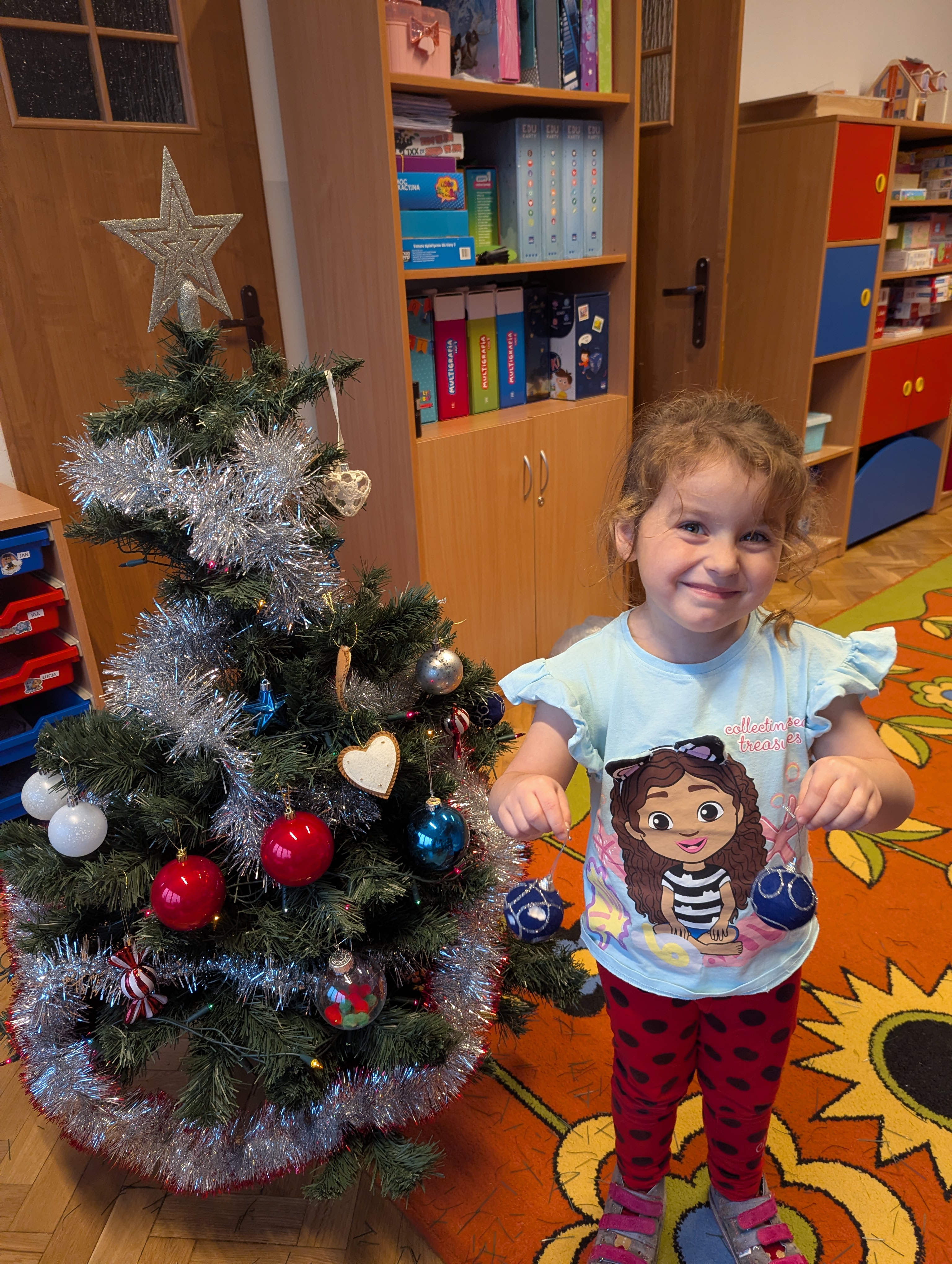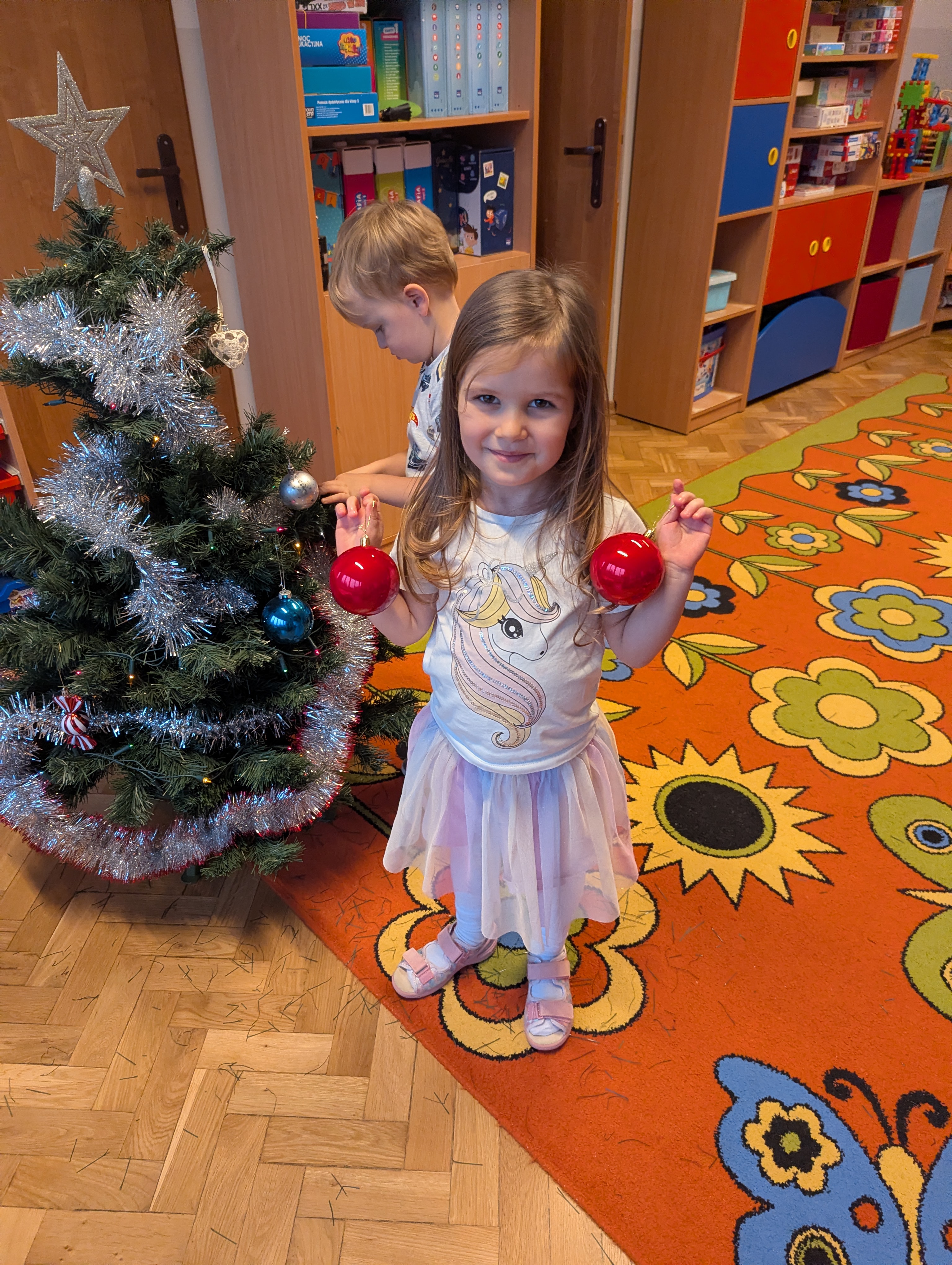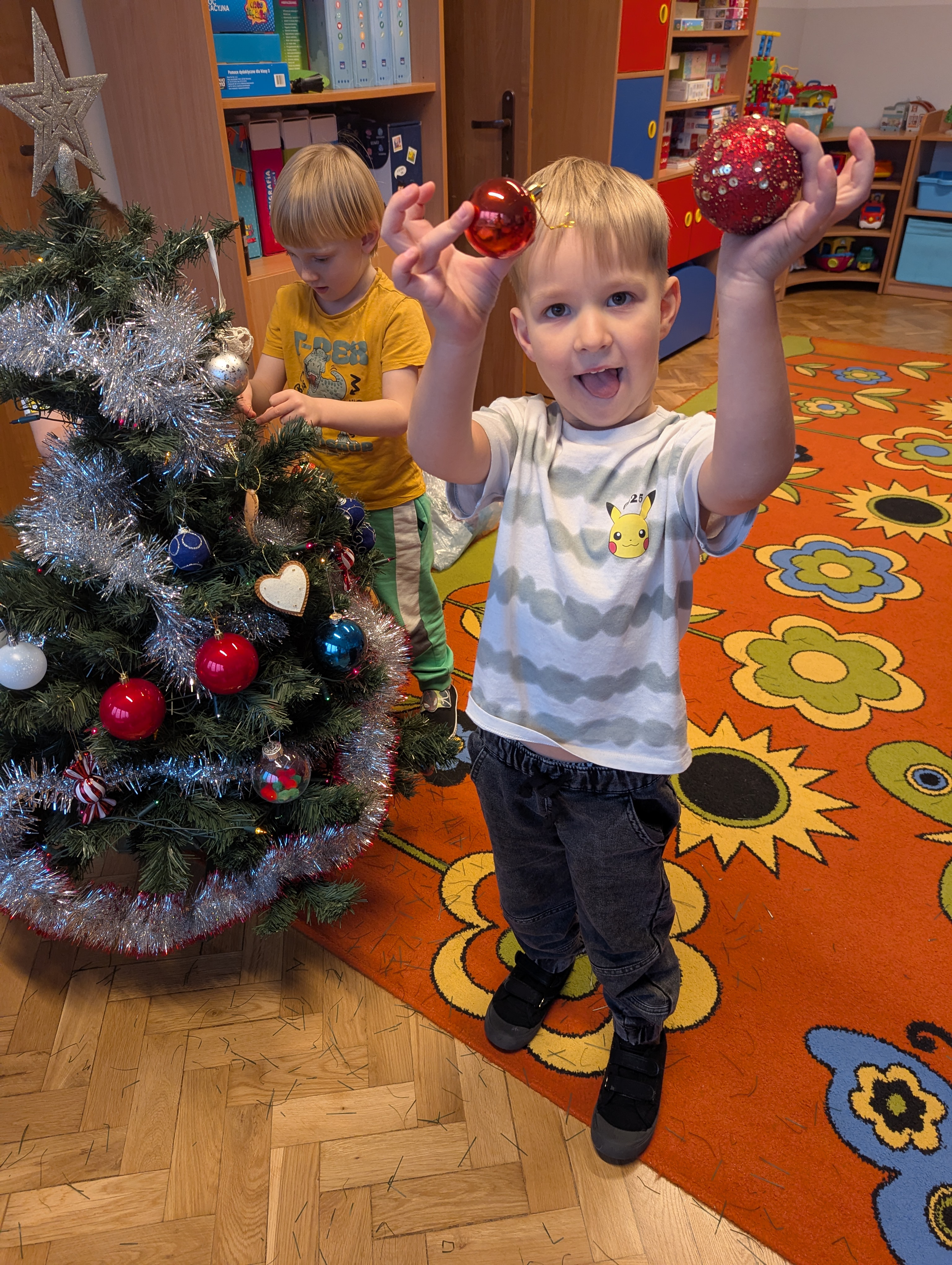 Dzieci z wielkim zaangażowaniem i radością uczestniczyły w ubieraniu choinki. Każdy przedszkolak miał okazję zawiesić wybraną ozdobę, a wspólna praca wywołała mnóstwo uśmiechów i pięknych emocji. Razem stworzyliśmy wyjątkowe, kolorowe drzewko, które będzie nam towarzyszyło przez cały świąteczny czas. To był dzień pełen współpracy, kreatywności i magii, którą potrafią stworzyć tylko dzieci!