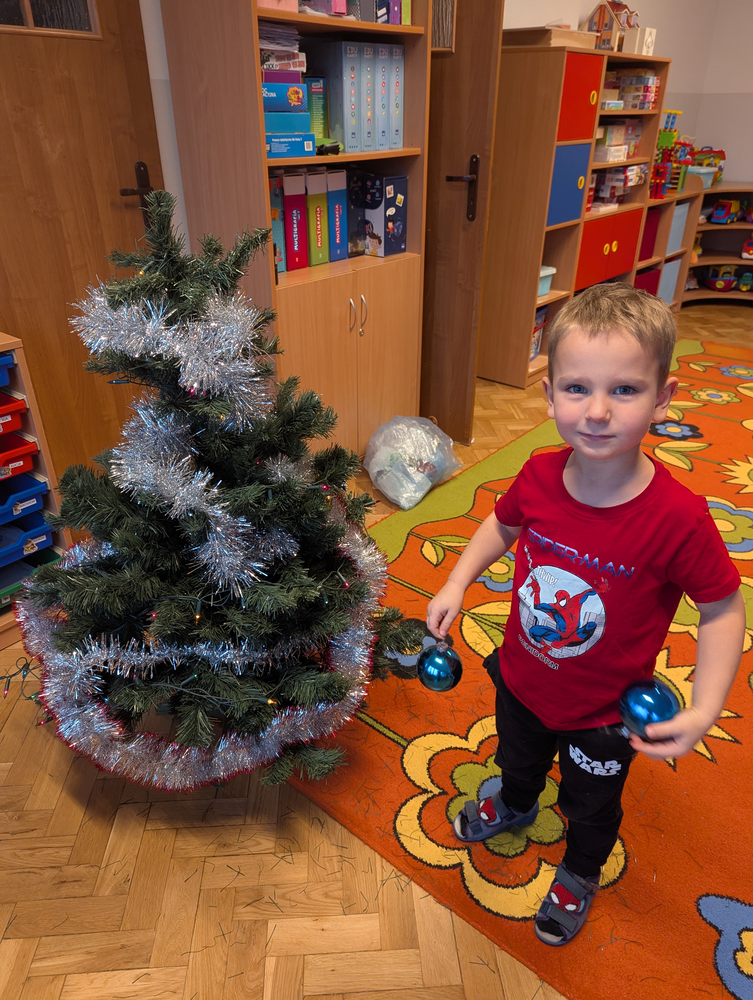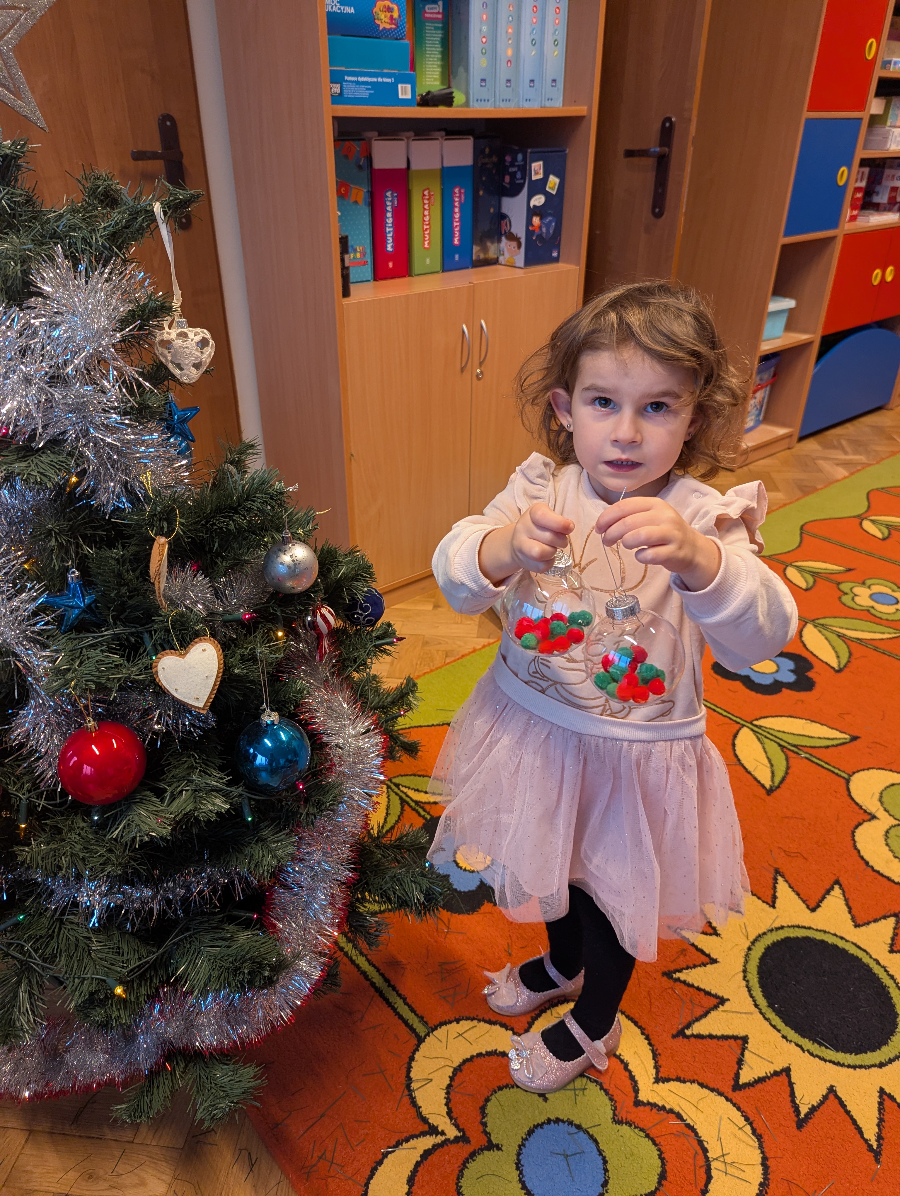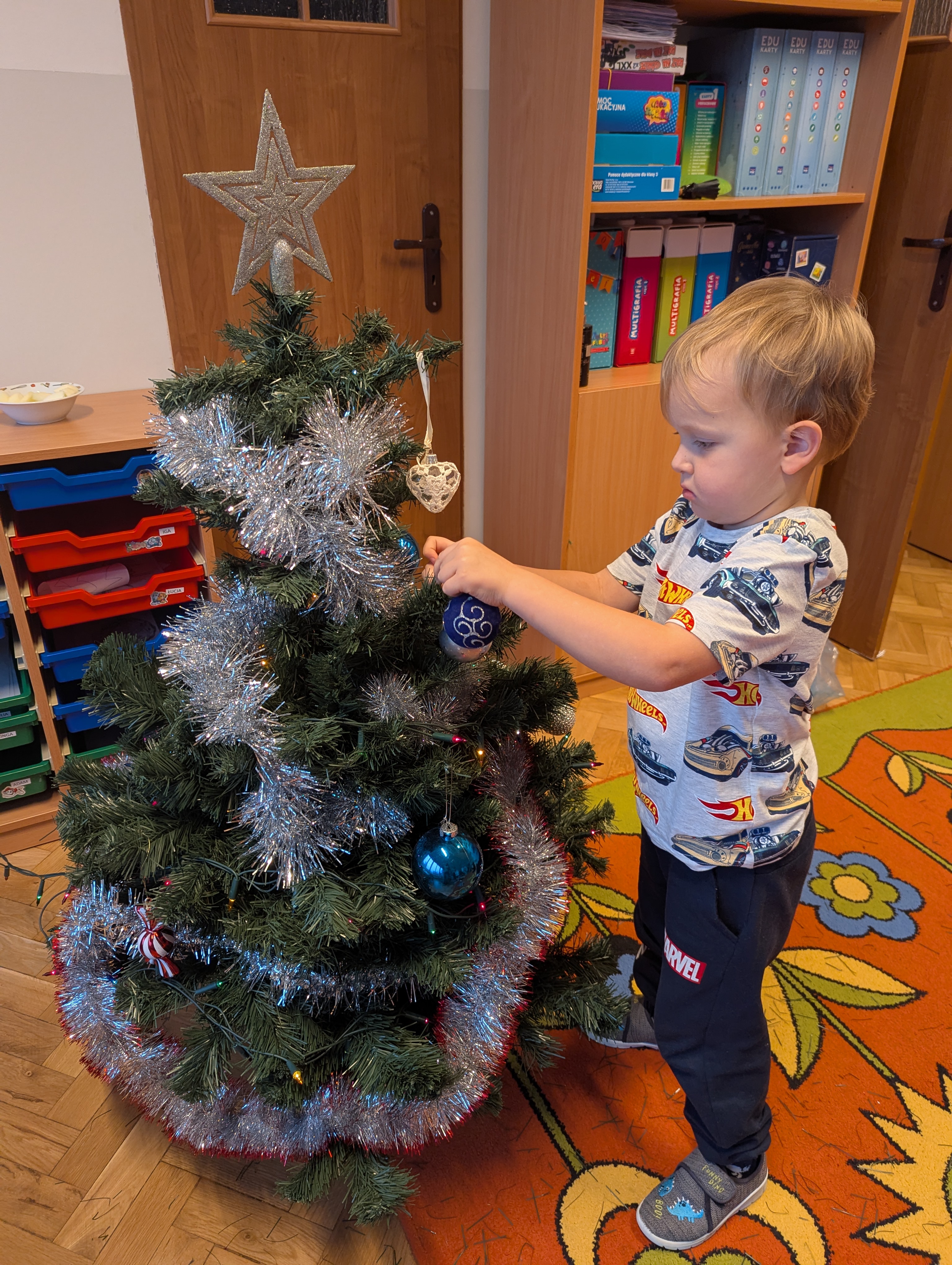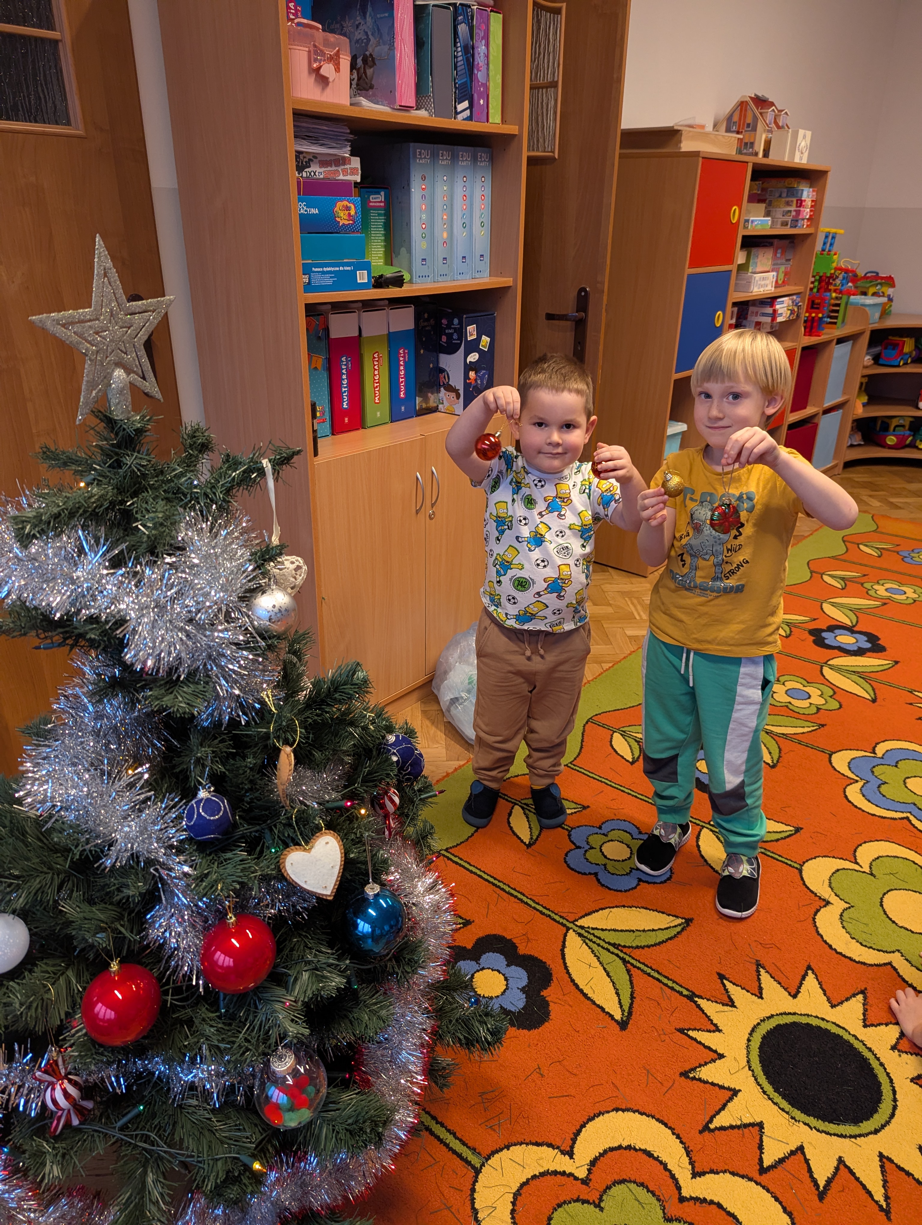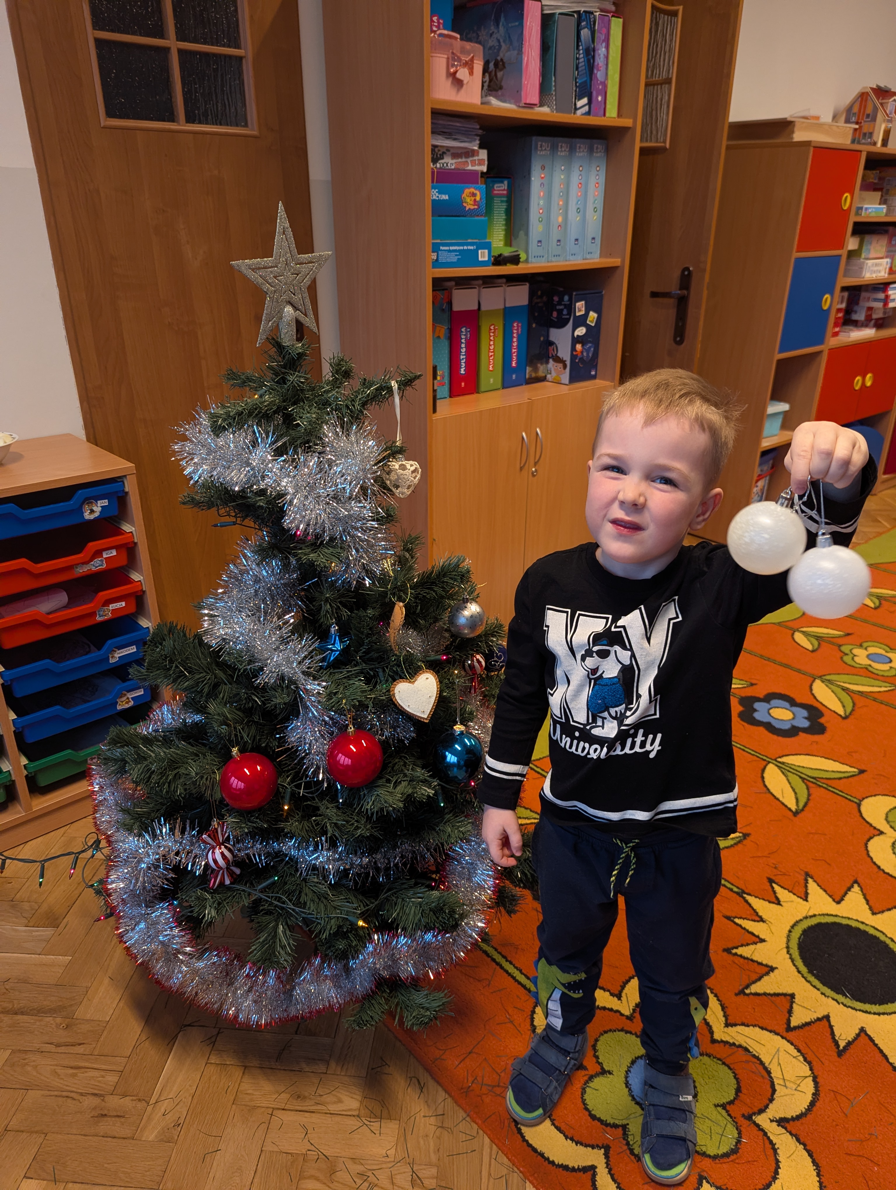 Dzieci z wielkim zaangażowaniem i radością uczestniczyły w ubieraniu choinki. Każdy przedszkolak miał okazję zawiesić wybraną ozdobę, a wspólna praca wywołała mnóstwo uśmiechów i pięknych emocji. Razem stworzyliśmy wyjątkowe, kolorowe drzewko, które będzie nam towarzyszyło przez cały świąteczny czas. To był dzień pełen współpracy, kreatywności i magii, którą potrafią stworzyć tylko dzieci!