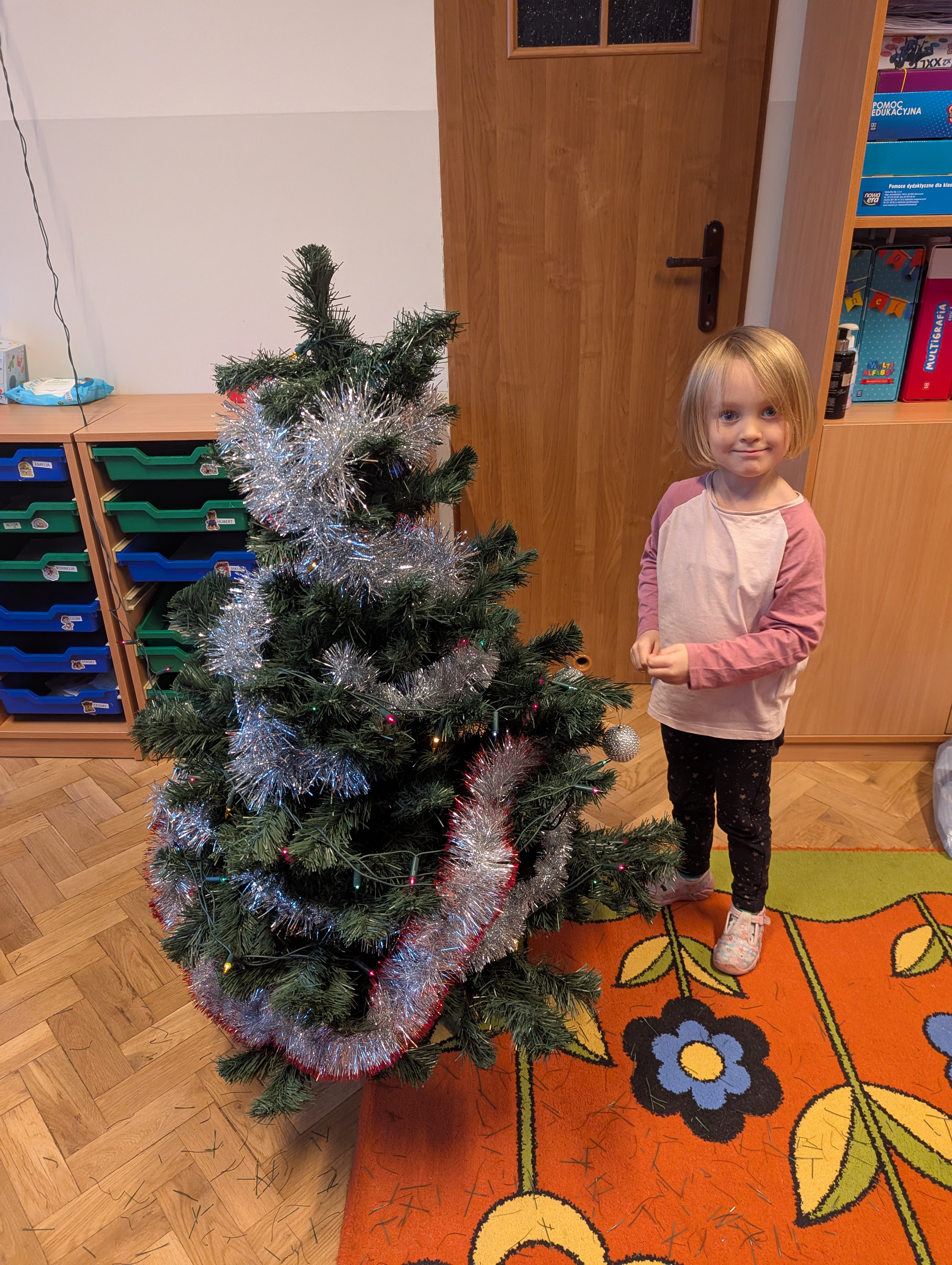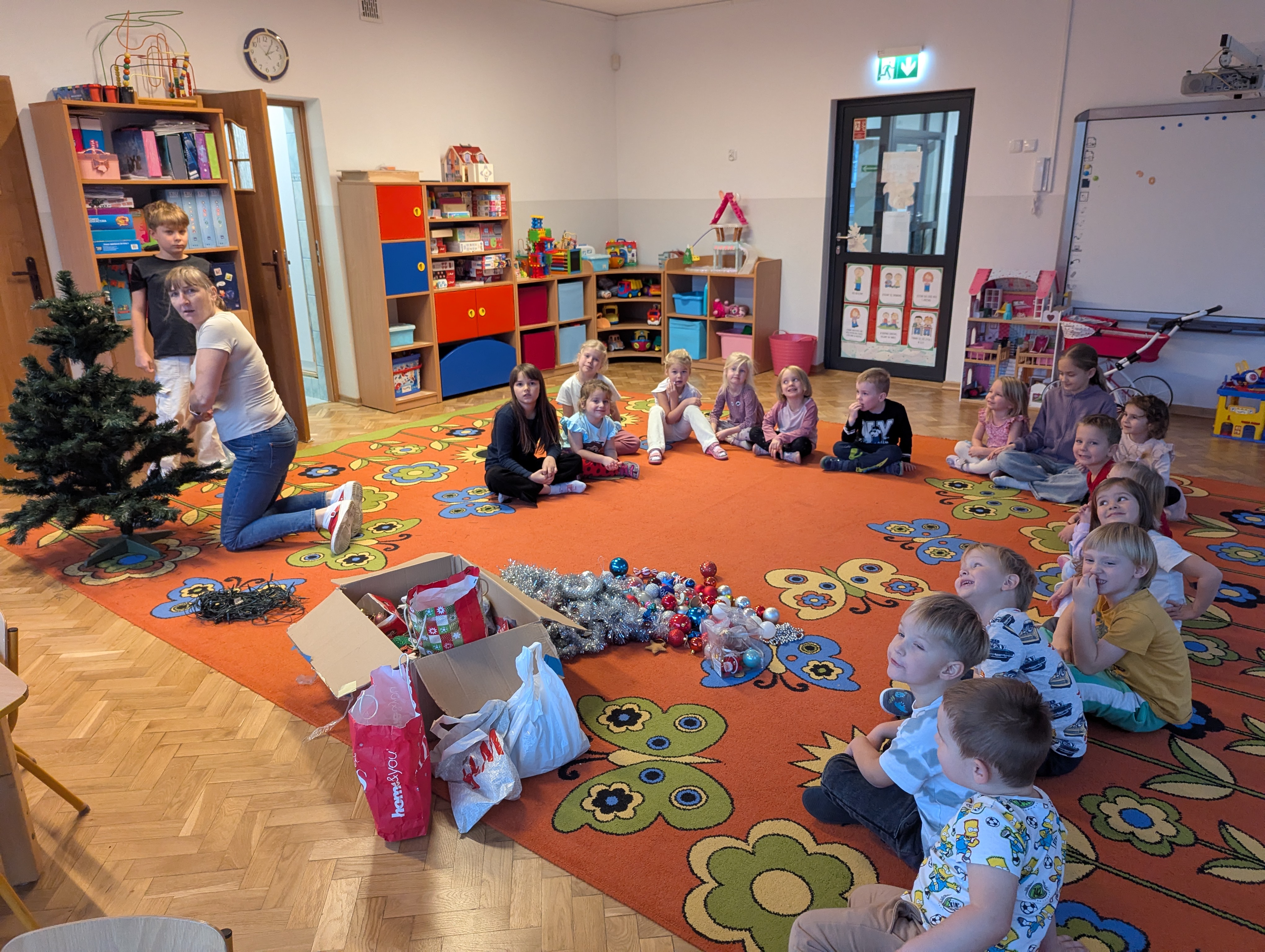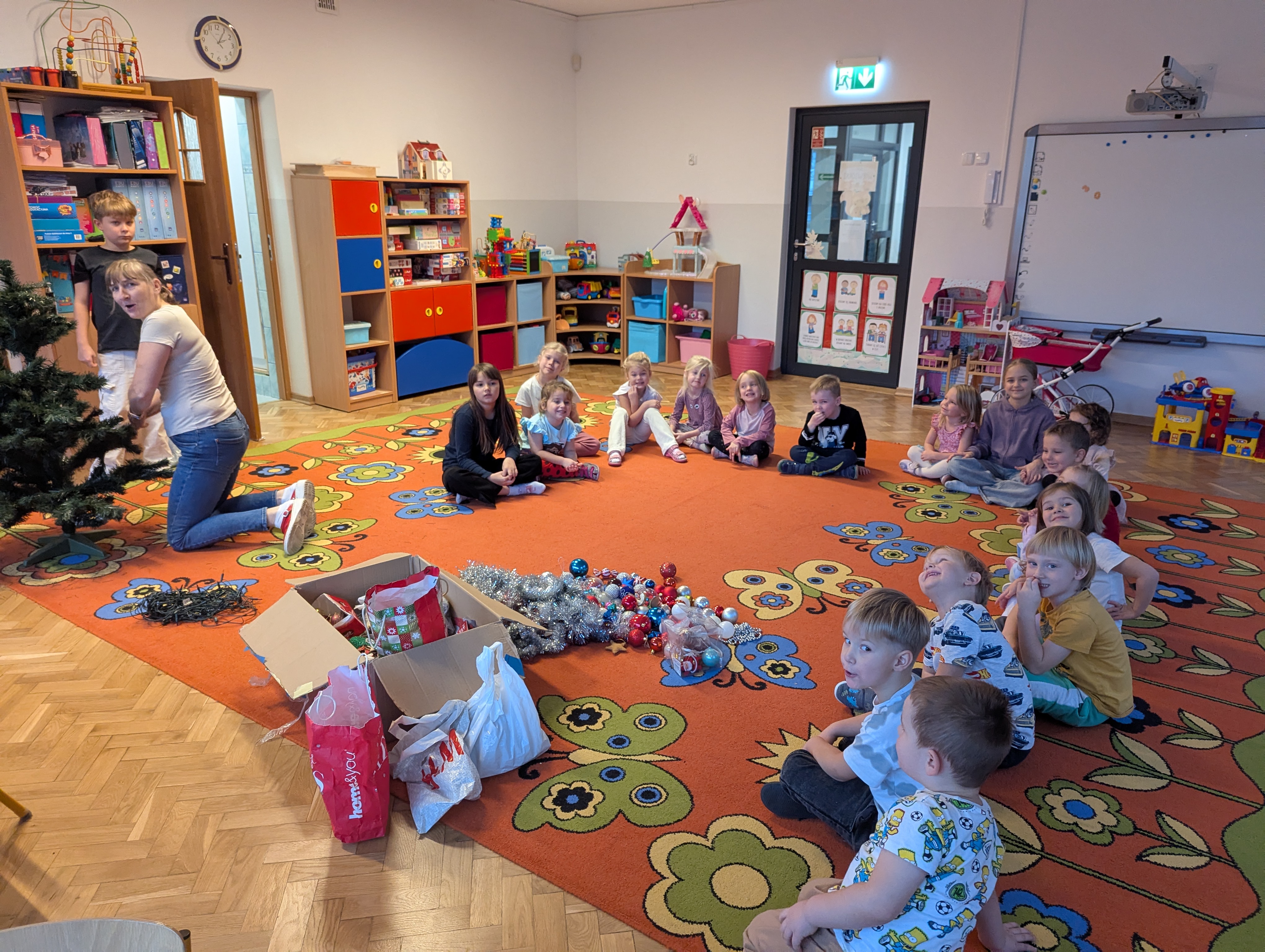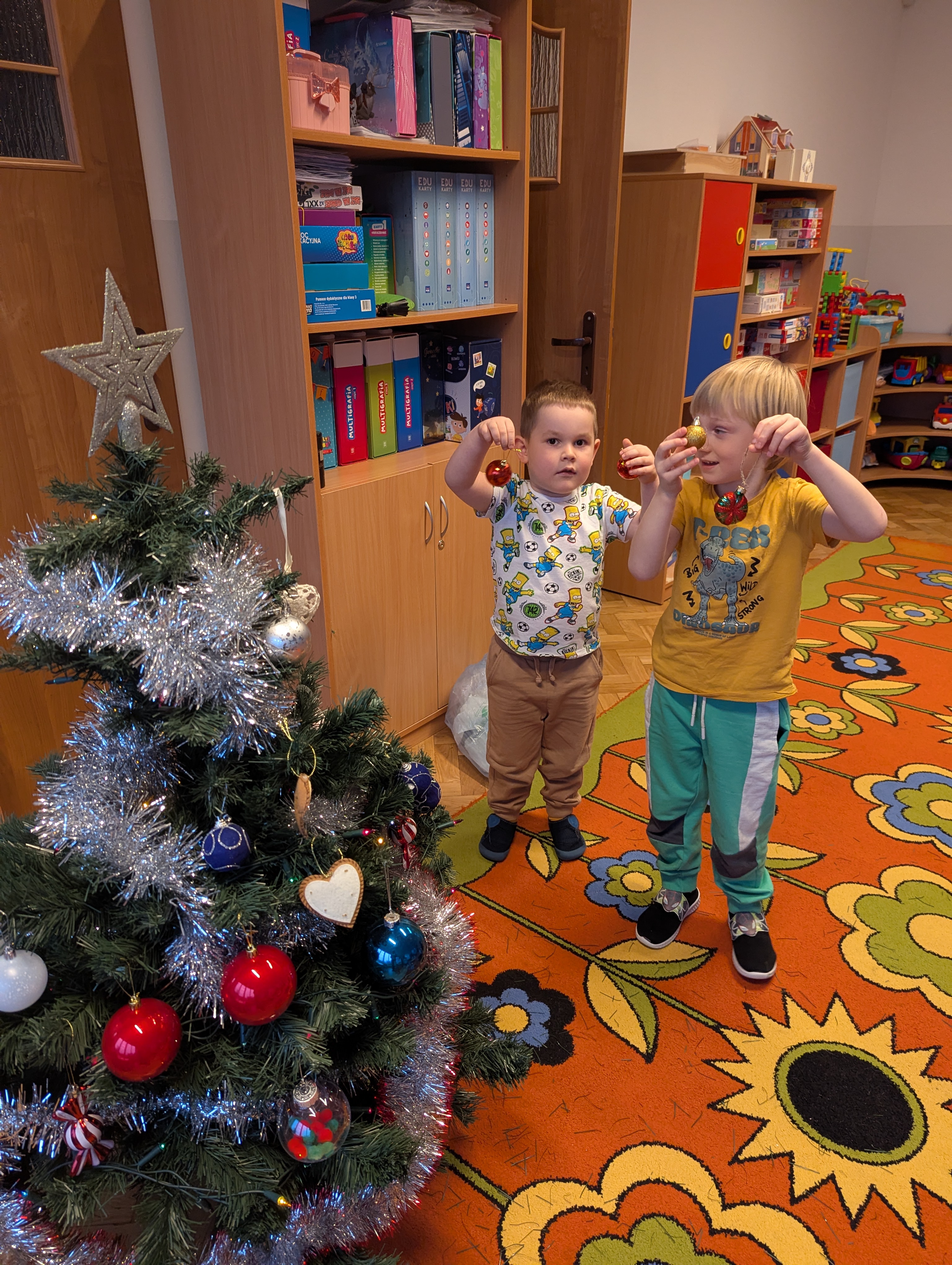 Dzieci z wielkim zaangażowaniem i radością uczestniczyły w ubieraniu choinki. Każdy przedszkolak miał okazję zawiesić wybraną ozdobę, a wspólna praca wywołała mnóstwo uśmiechów i pięknych emocji. Razem stworzyliśmy wyjątkowe, kolorowe drzewko, które będzie nam towarzyszyło przez cały świąteczny czas. To był dzień pełen współpracy, kreatywności i magii, którą potrafią stworzyć tylko dzieci!