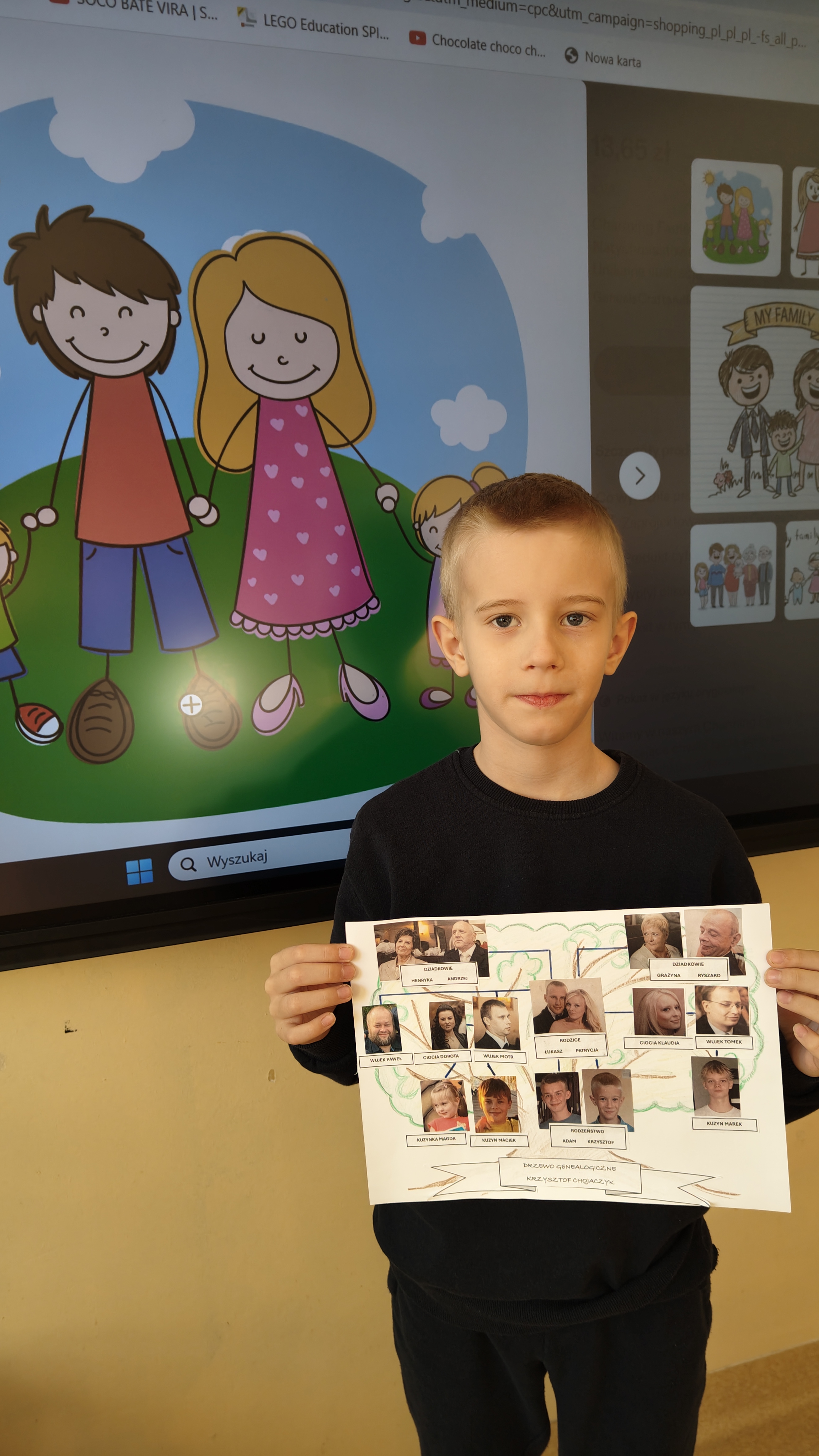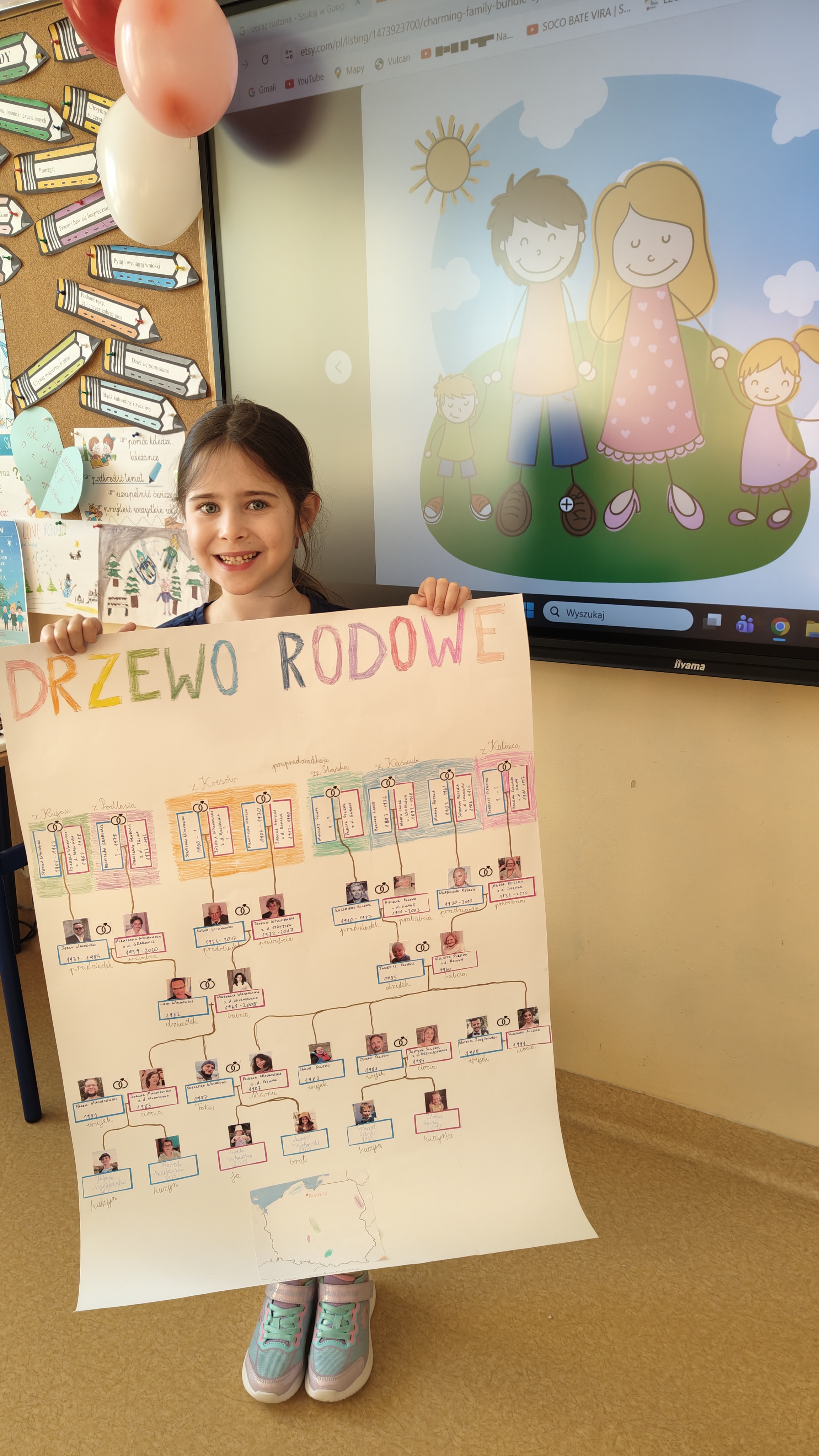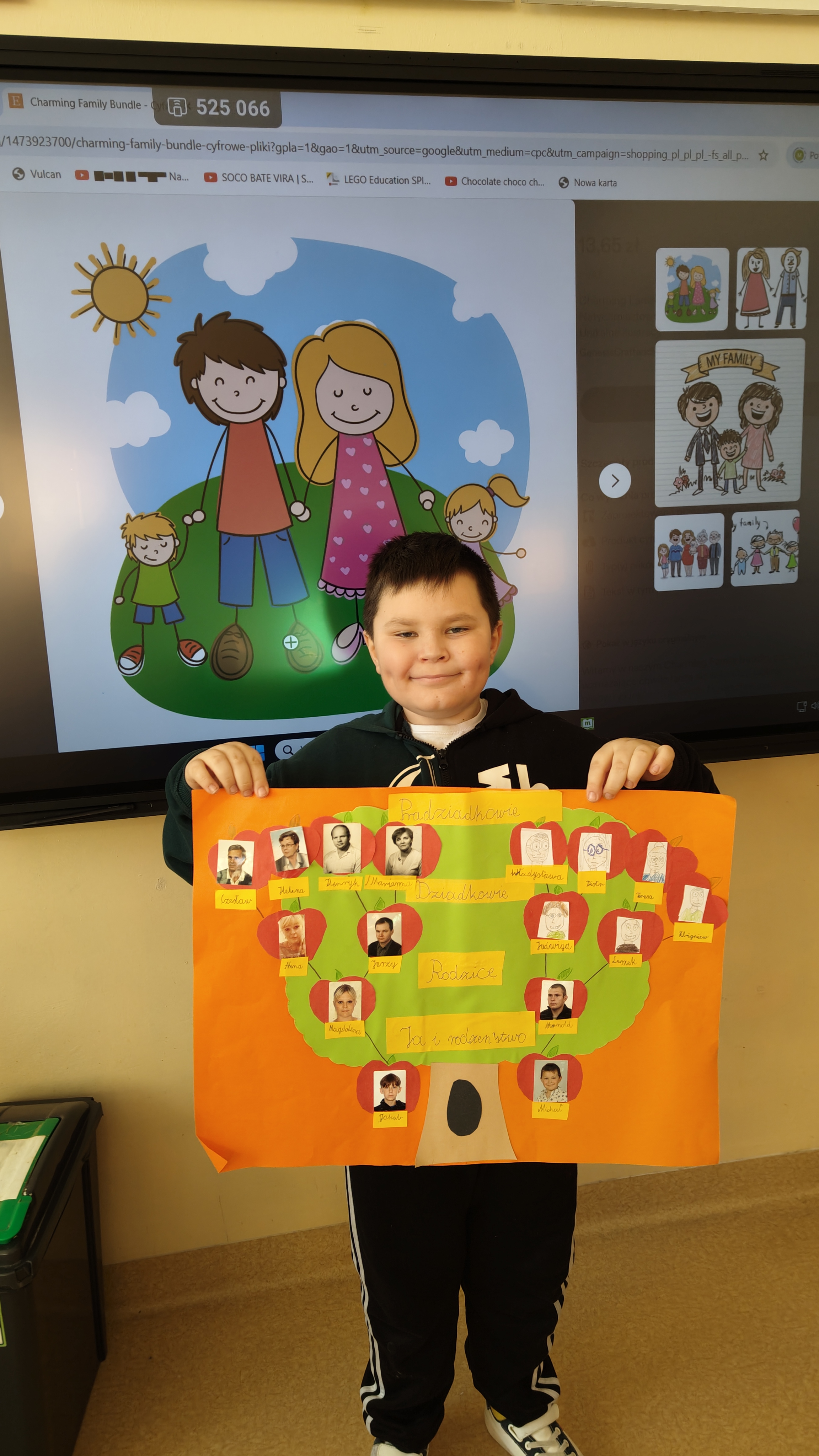 "Szukamy przodka -lata lecą i czas płynie. Kto był kim w naszej rodzinie? Szukaj z nami, z rodzicami, z pradziadkami i dziadkami: Kto był z kim i skąd pochodził? Gdzie się uczył? Gdzie urodził? A powstanie z tego śliczne DRZEWO GENEALOGICZNE." (M. Przewoźniak). Aby się tego dowiedzieć, uczniowie -przy wsparciu rodziców i dziadków -stworzyli drzewo genealogiczne. Uczniowie bardzo chętnie podeszli do tej inicjatywy -powstały kreatywne i bardzo pomysłowe pace. To świetny sposób na poznanie swoich przodków i krewnych, jak też idealny pretekst do wspólnie spędzonego czasu z bliskimi i wzmacnianie więzi rodzinnych.