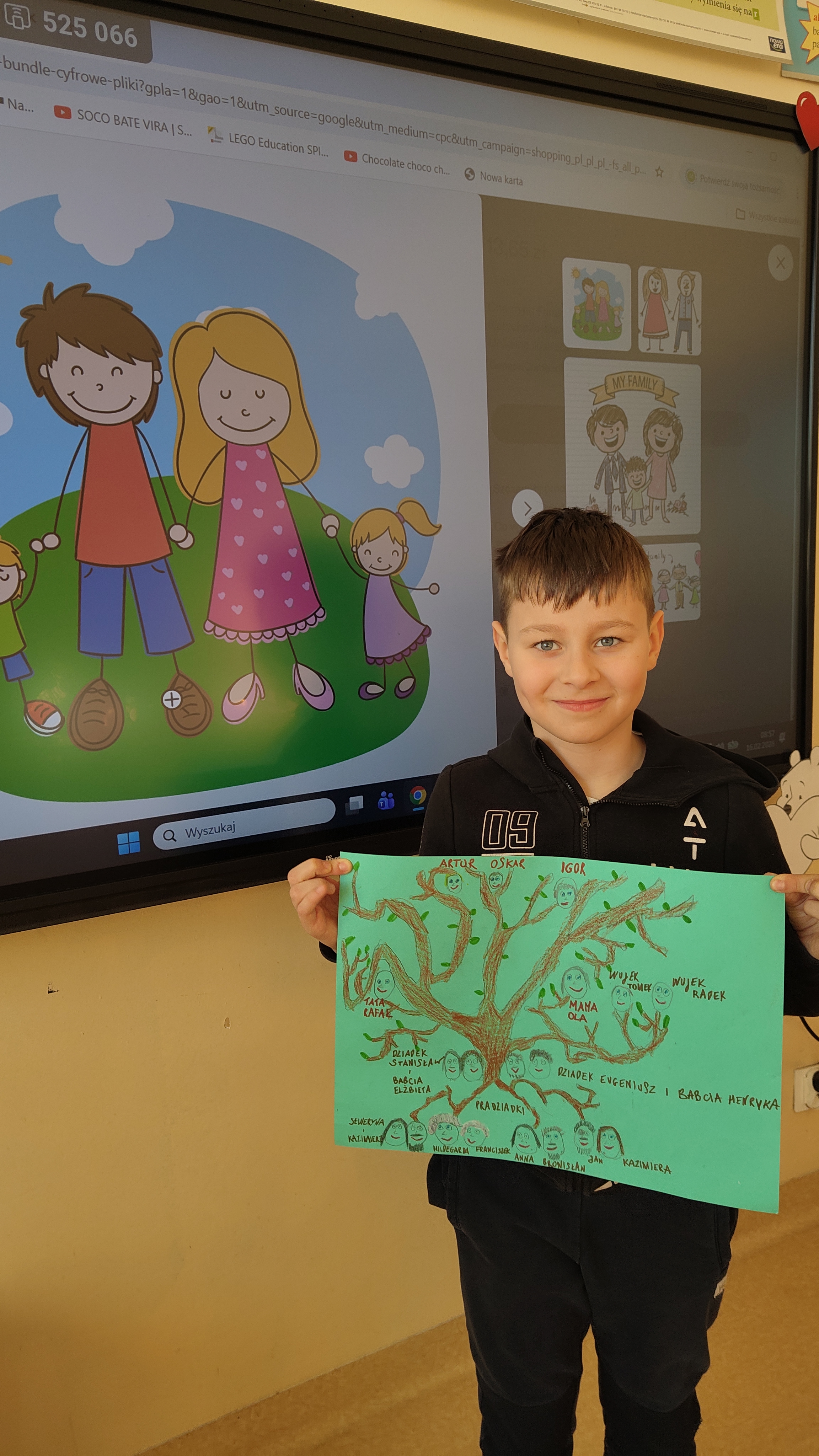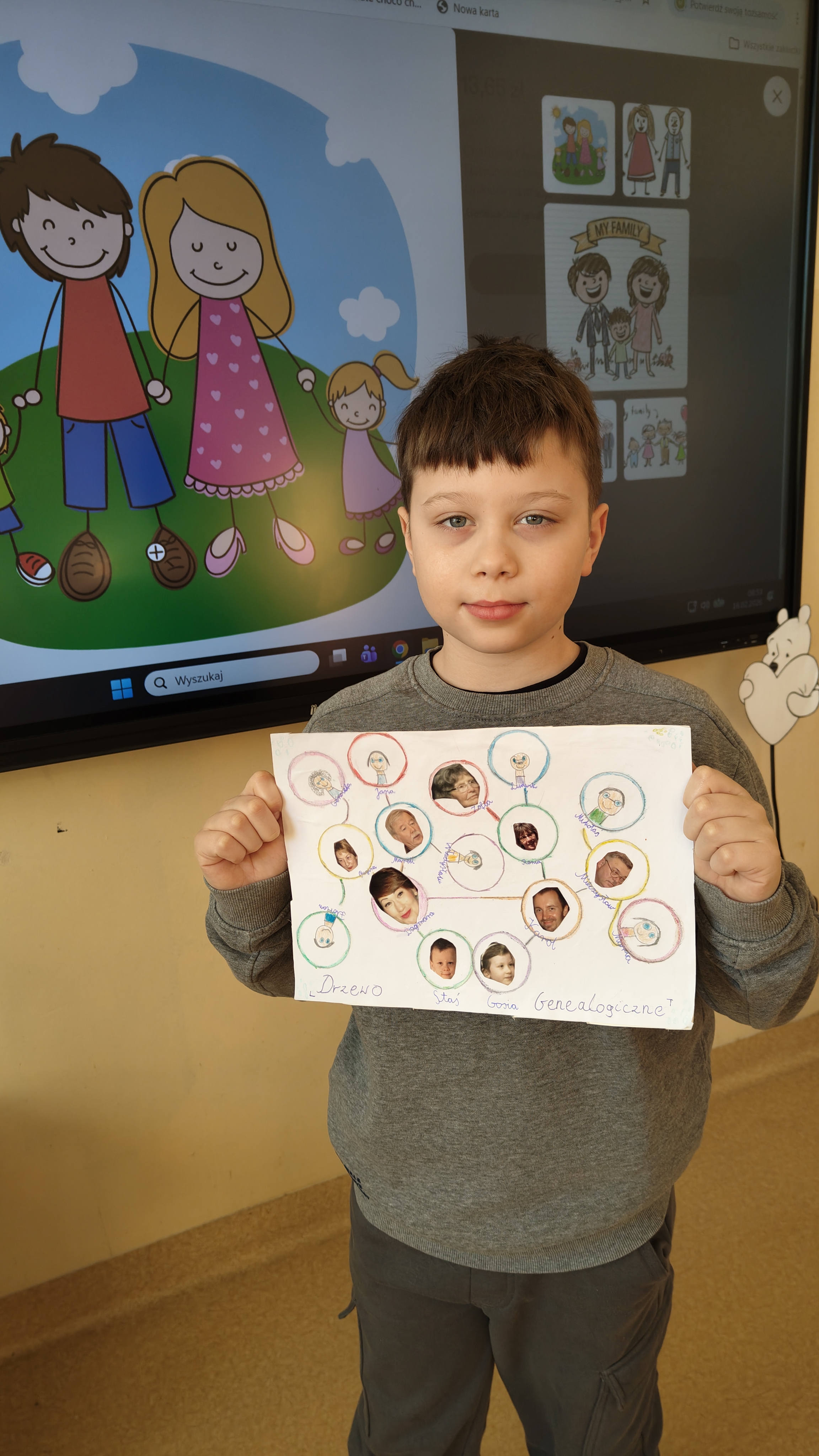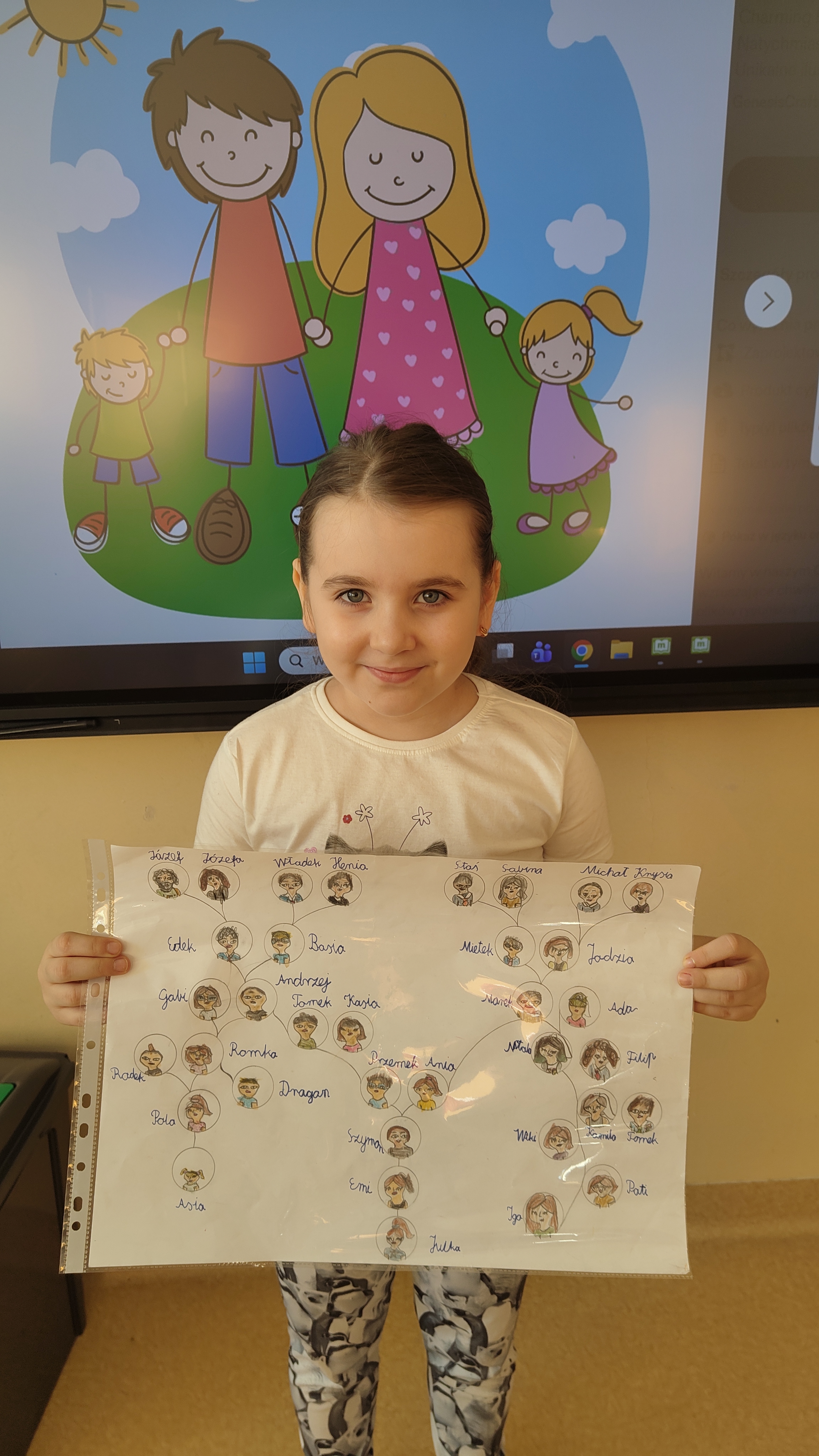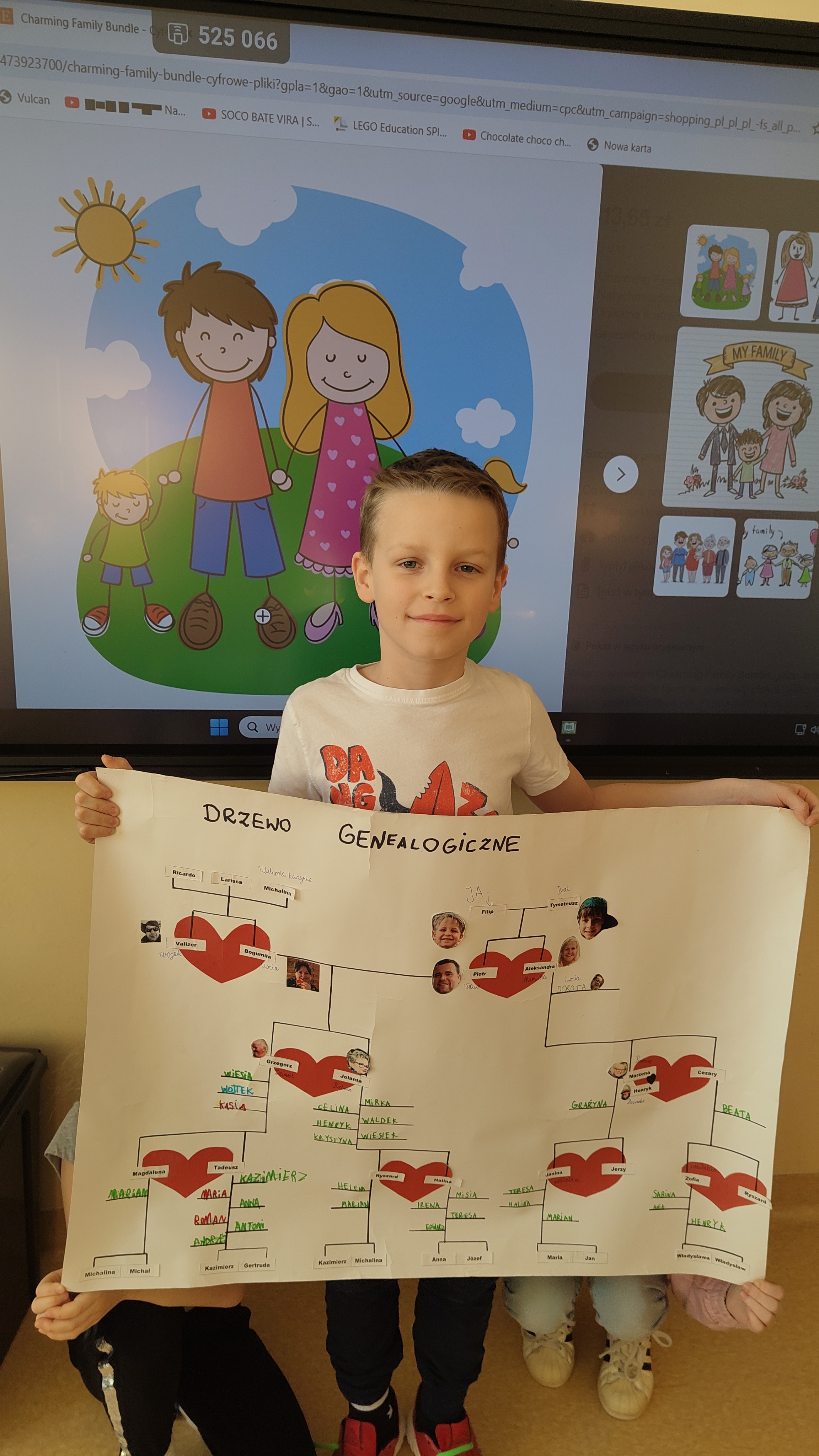 "Szukamy przodka -lata lecą i czas płynie. Kto był kim w naszej rodzinie? Szukaj z nami, z rodzicami, z pradziadkami i dziadkami: Kto był z kim i skąd pochodził? Gdzie się uczył? Gdzie urodził? A powstanie z tego śliczne DRZEWO GENEALOGICZNE." (M. Przewoźniak). Aby się tego dowiedzieć, uczniowie -przy wsparciu rodziców i dziadków -stworzyli drzewo genealogiczne. Uczniowie bardzo chętnie podeszli do tej inicjatywy -powstały kreatywne i bardzo pomysłowe pace. To świetny sposób na poznanie swoich przodków i krewnych, jak też idealny pretekst do wspólnie spędzonego czasu z bliskimi i wzmacnianie więzi rodzinnych.