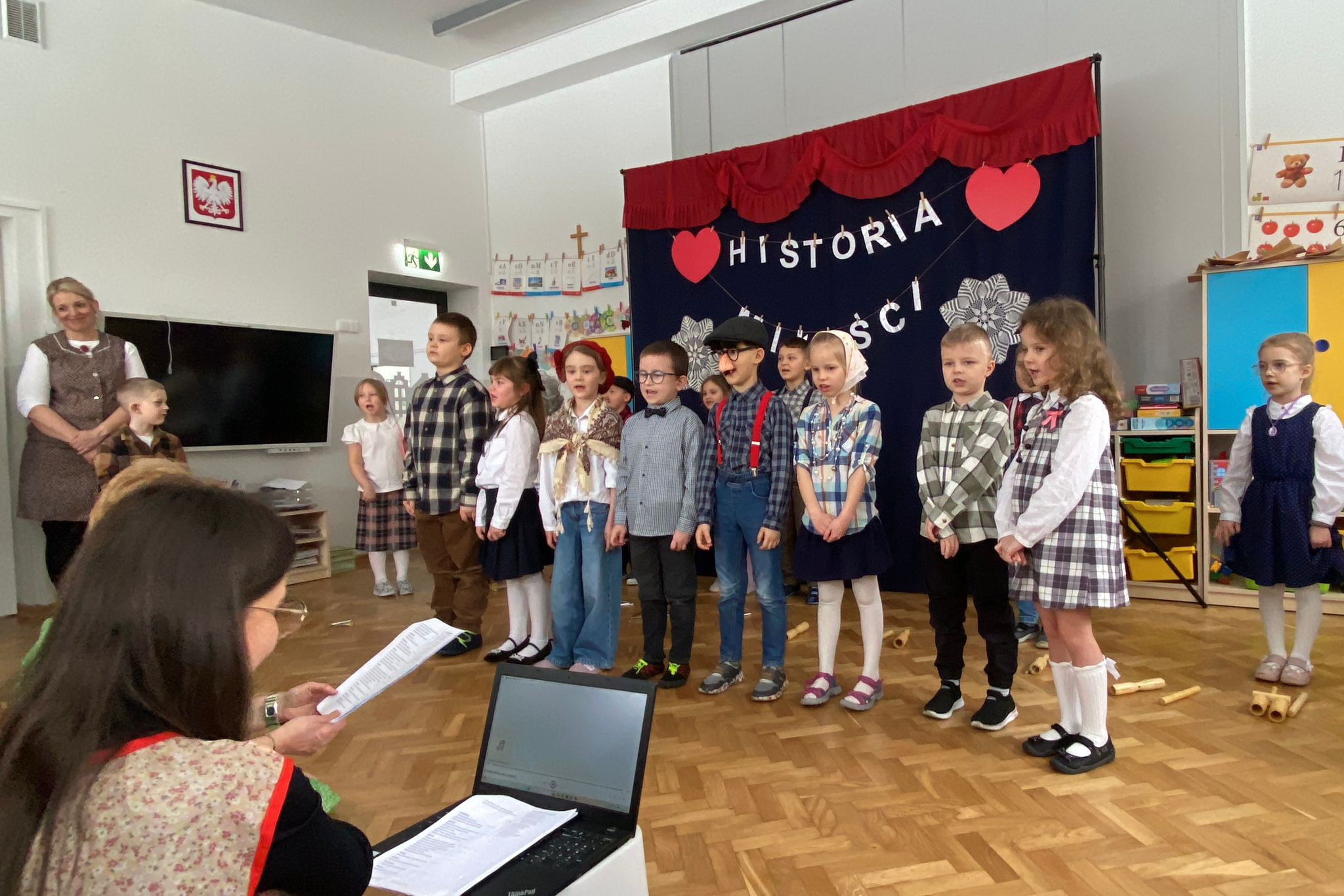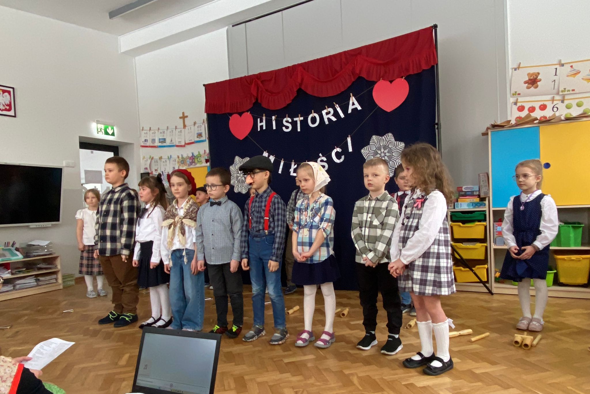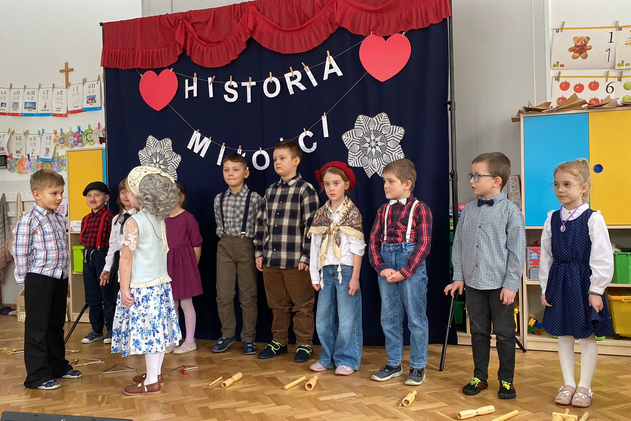 Tegoroczny występ z kazji Dnia Babci i Dziadka, przeniósł naszych wspaniałych Gości w czasy PRL-u. Dzieci z ogromnym zaangażowaniem i radością przedstawiły historię miłości Babci i Dziadka sprzed lat – pełną ciepła, humoru i wzruszeń. Nie zabrakło klimatycznych strojów, rekwizytów oraz pięknych piosenek, które dopełniły wyjątkową atmosferę.