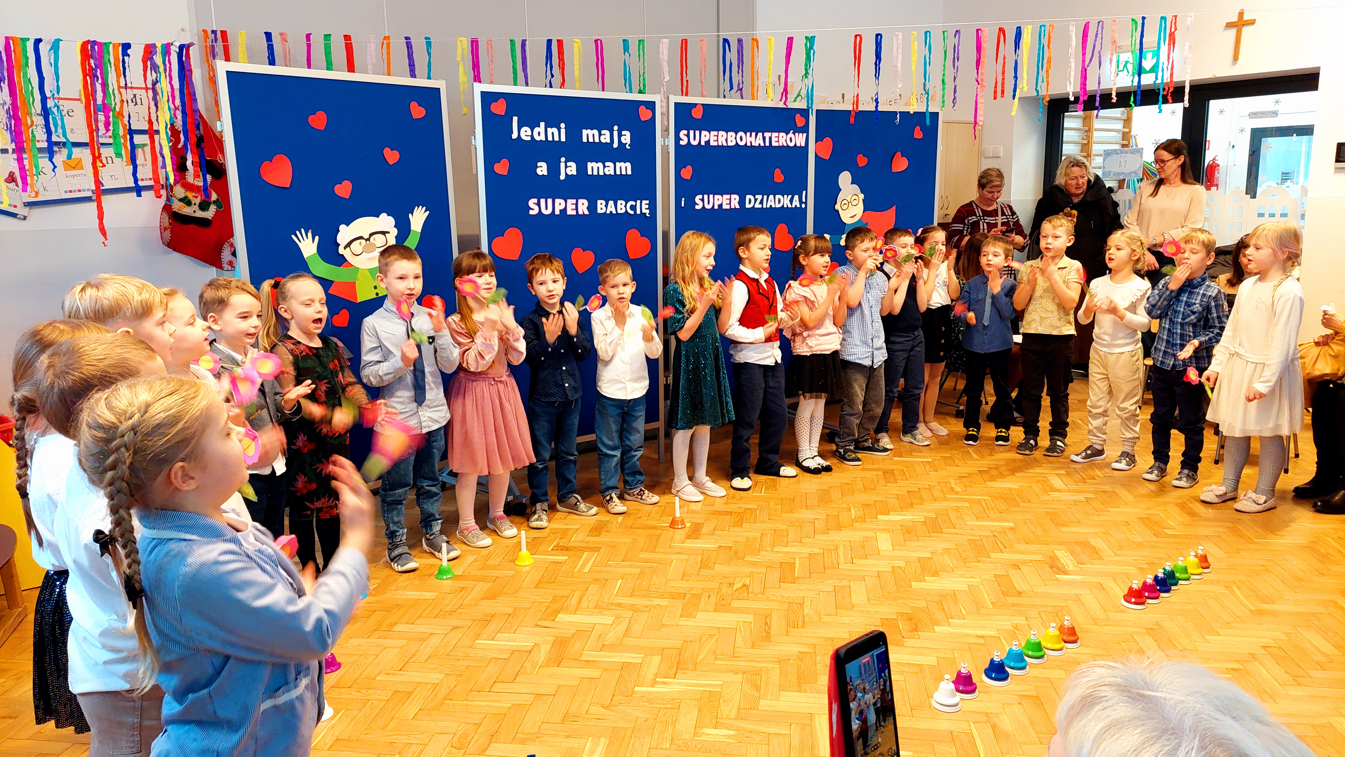 Kreciki wystąpiły z pięknymi jasełkami, 0b zabrała gości w sentymentalną podróż do czasów PRL-u w przedstawieniu o miłości Babci i Dziadka, 0a po swoim występie zaprosiła gości do wspólnych, kreatywnych warsztatów, a Wiewiórki i Liski zachwyciły wierszami, piosenkami i laurkami. To zawsze niezwykle wzruszający moment – pełen uśmiechów, dumy i ciepłych uścisków. Dziękujemy wszystkim Babciom i Dziadkom za obecność, dobre słowo i miłość, którą obdarzają swoje wnuki każdego dnia...