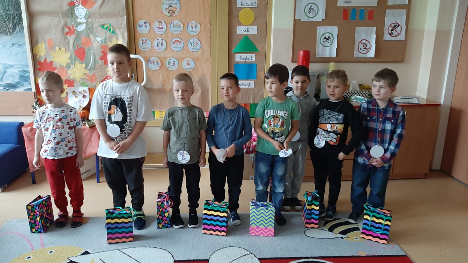 30 września świętowaliśmy w naszej grupie Dzień Chłopaka. Z tej okazji chłopcy otrzymali od dziewczynek medale „Super Chłopak”, a od rodziców – upominki, które sprawiły im wiele radości.