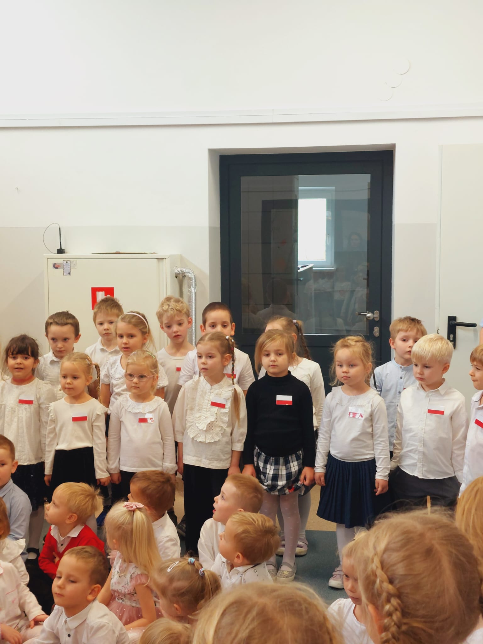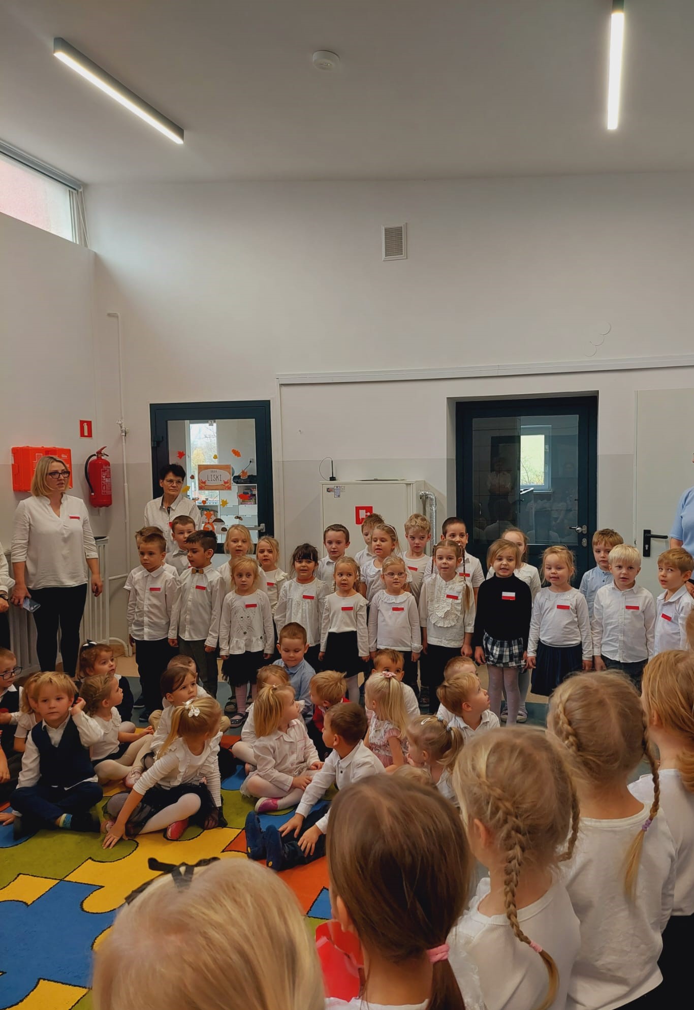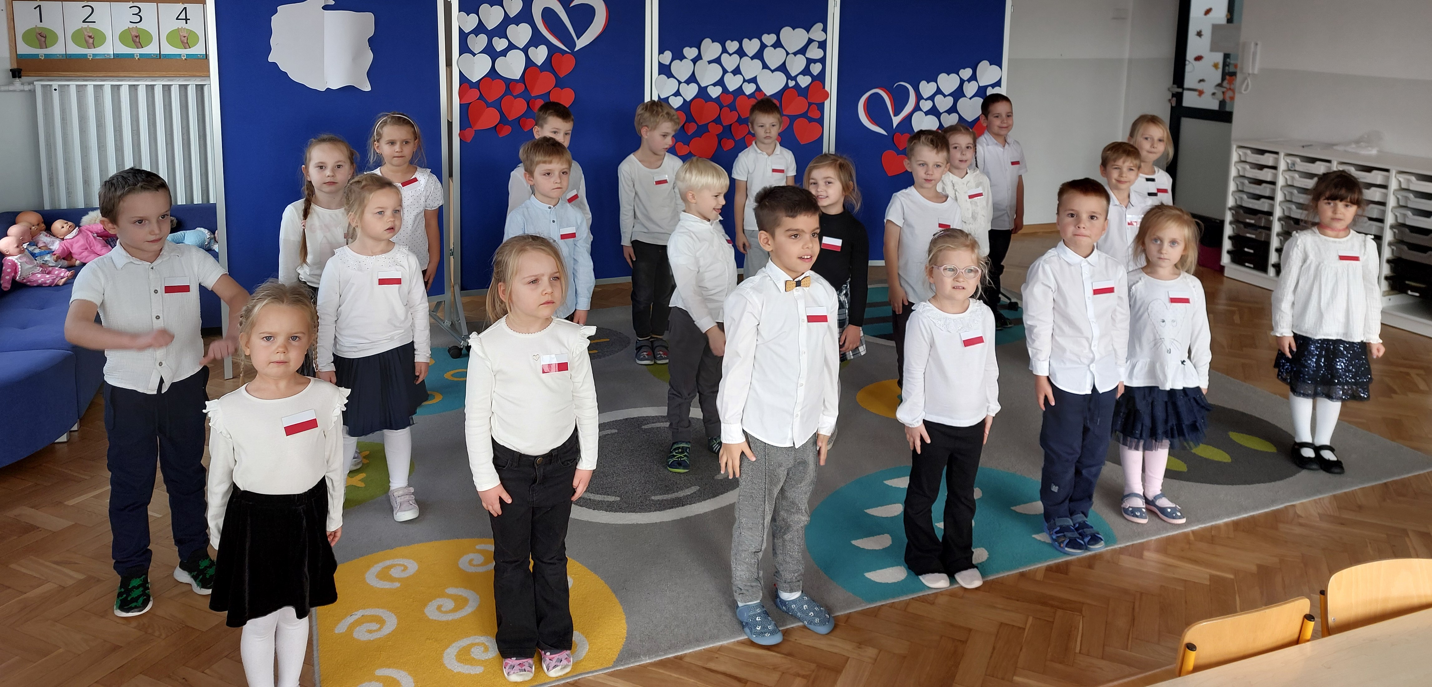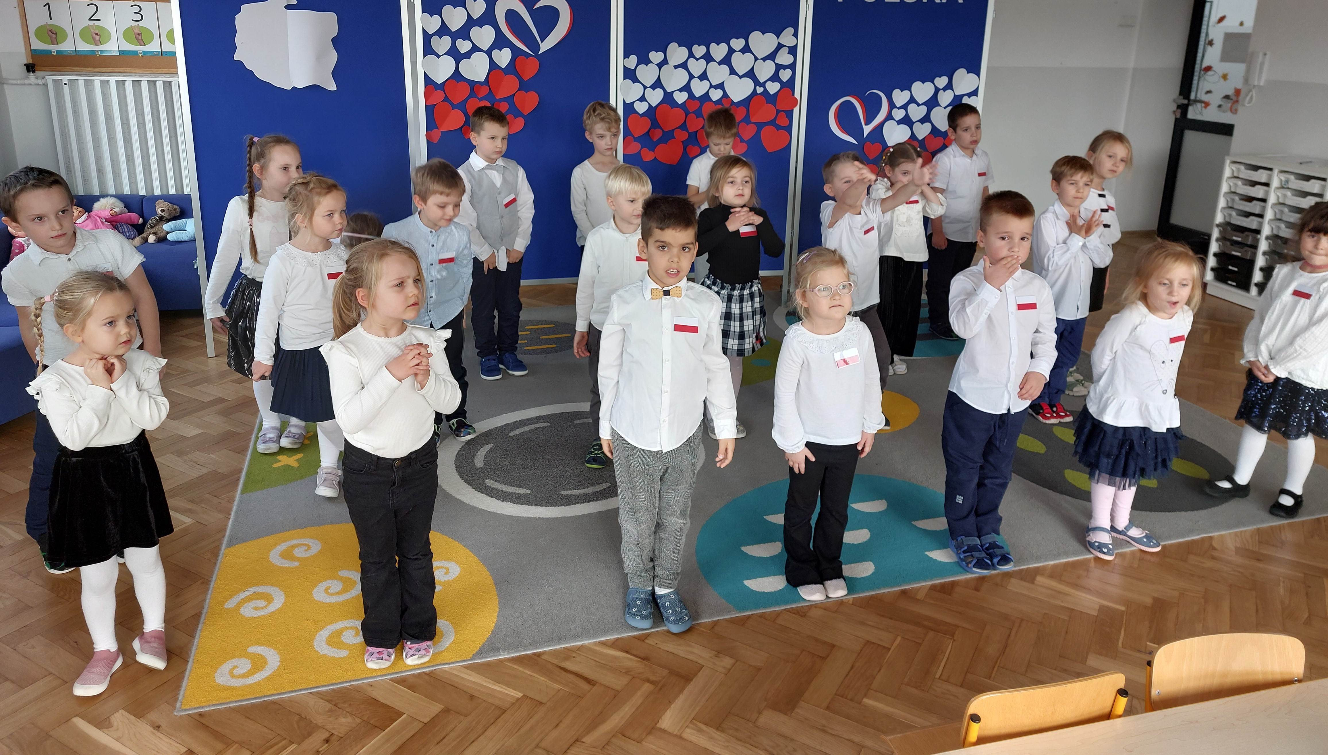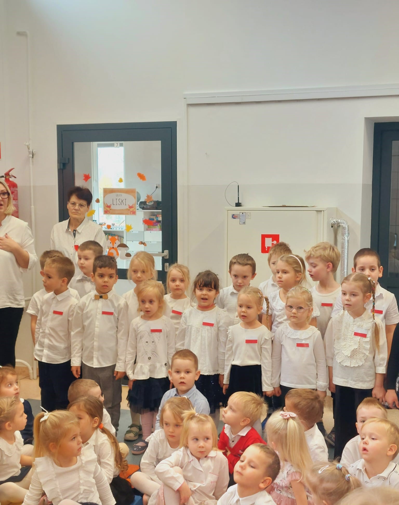 7 listopada o godzinie 11:11 nasze przedszkolaki z dumą uczciły zbliżające się Święto Niepodległości. Tego dnia wszyscy zgromadziliśmy się na korytarzu, aby wspólnie odśpiewać hymn Polski. Każda grupa zaprezentowała także wybraną piosenkę patriotyczną. Aby podkreślić wagę tego wydarzenia, dzieci przyszły do przedszkola odświętnie ubrane, a panie zadbały o akcenty w barwach narodowych. Przedszkolaki z ogromnym zaangażowaniem uczestniczyły w przygotowaniach, poznając symbole narodowe i znaczenie tego ważnego dnia. Był to piękny i wzruszający moment, który przypomniał nam, jak ważna jest miłość do Ojczyzny i pielęgnowanie tradycji.