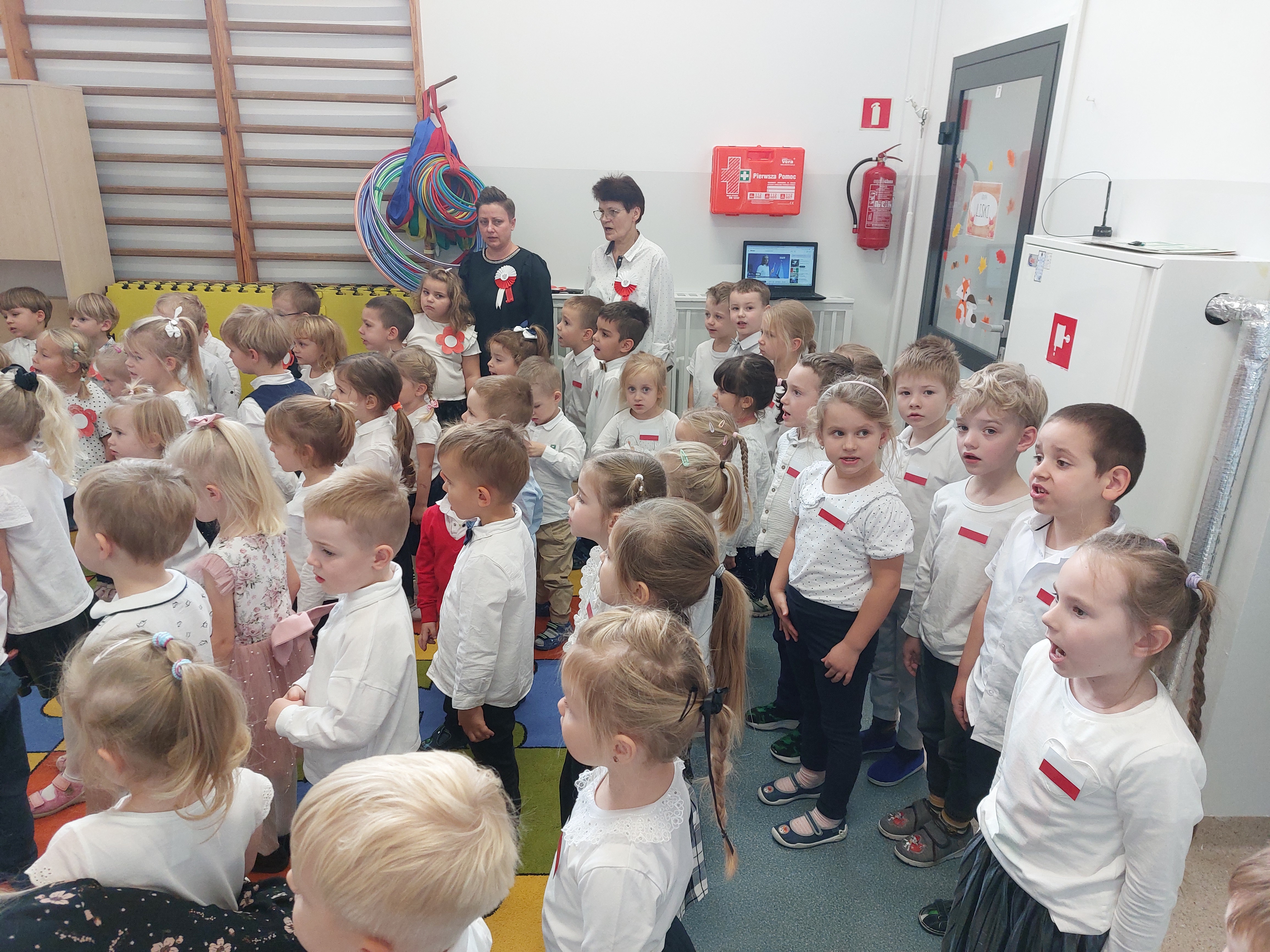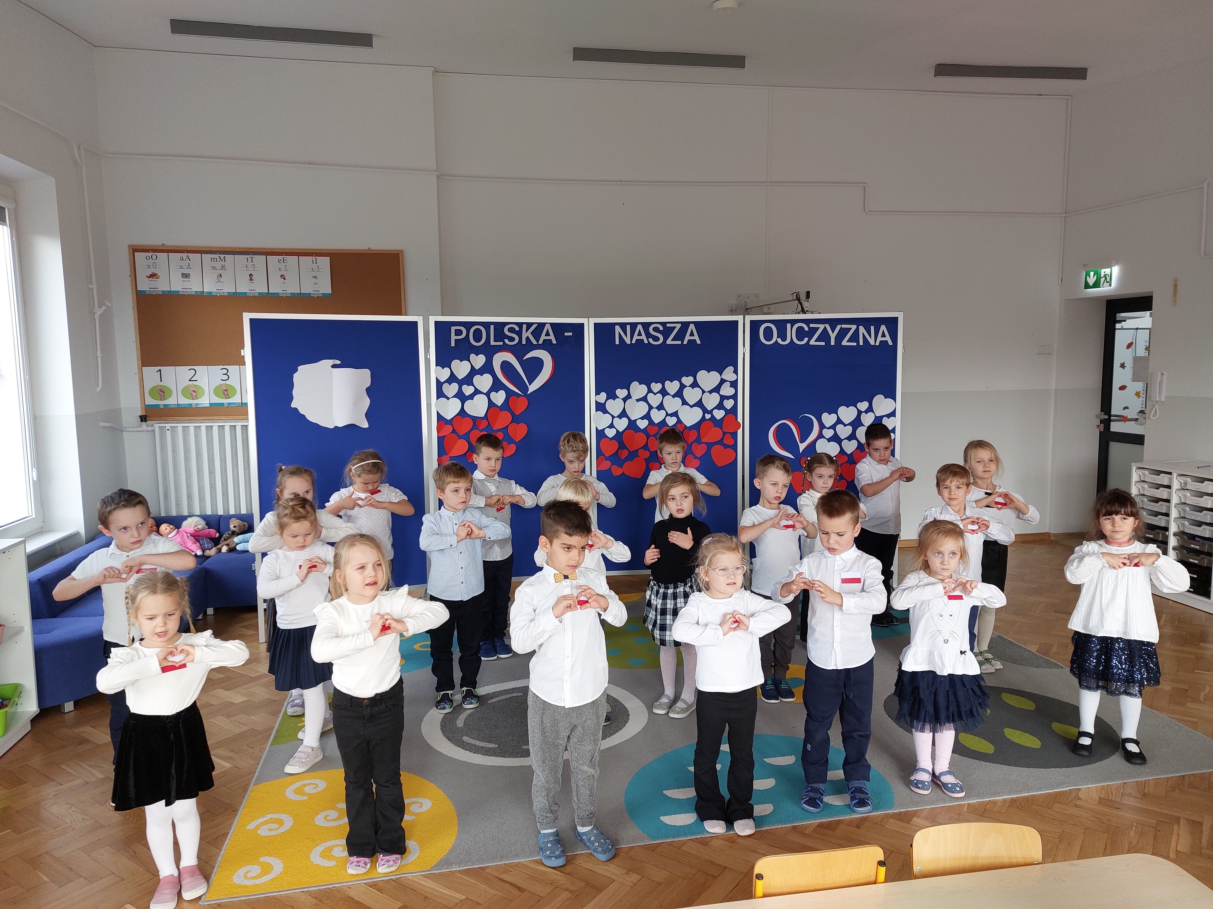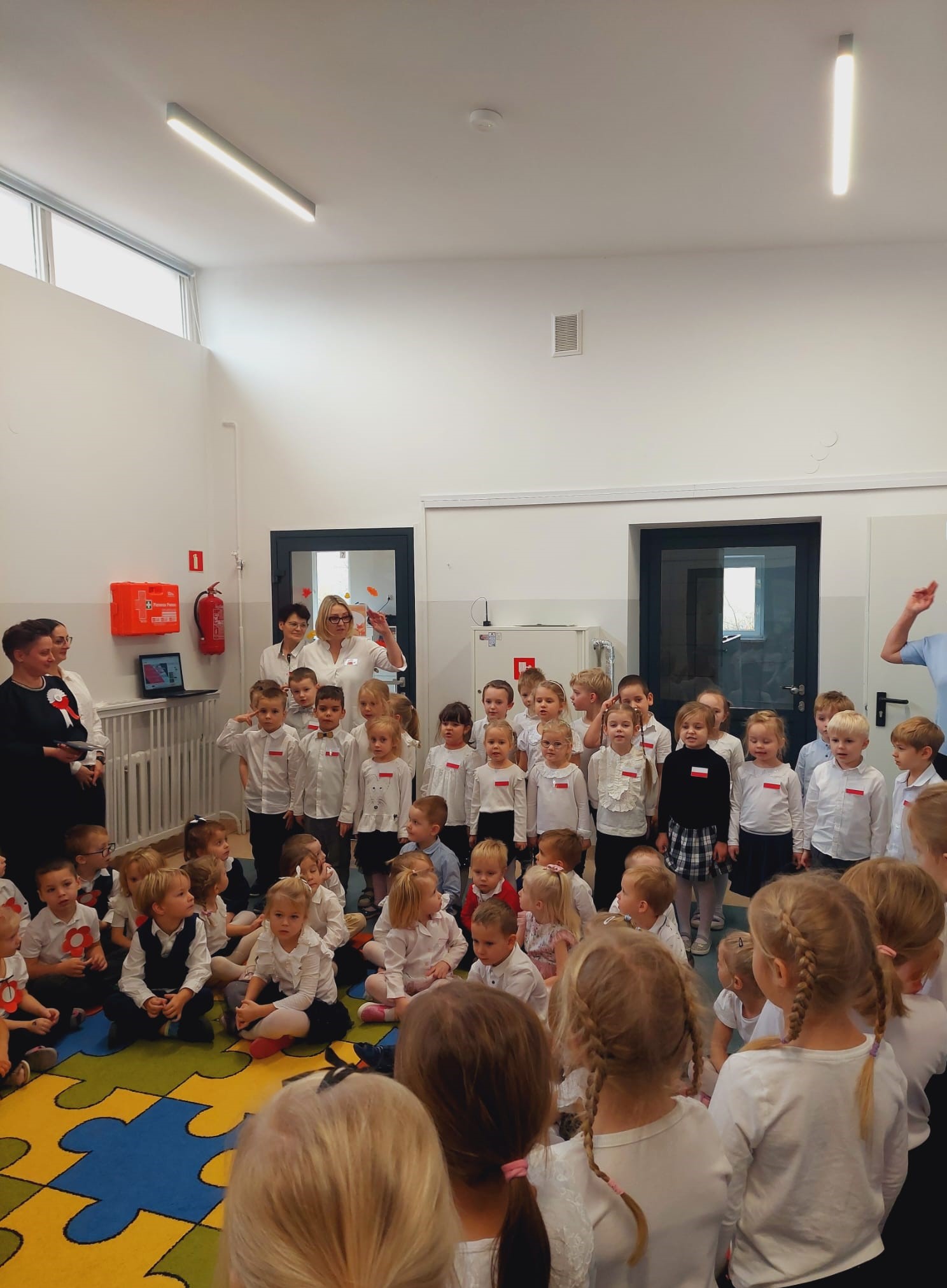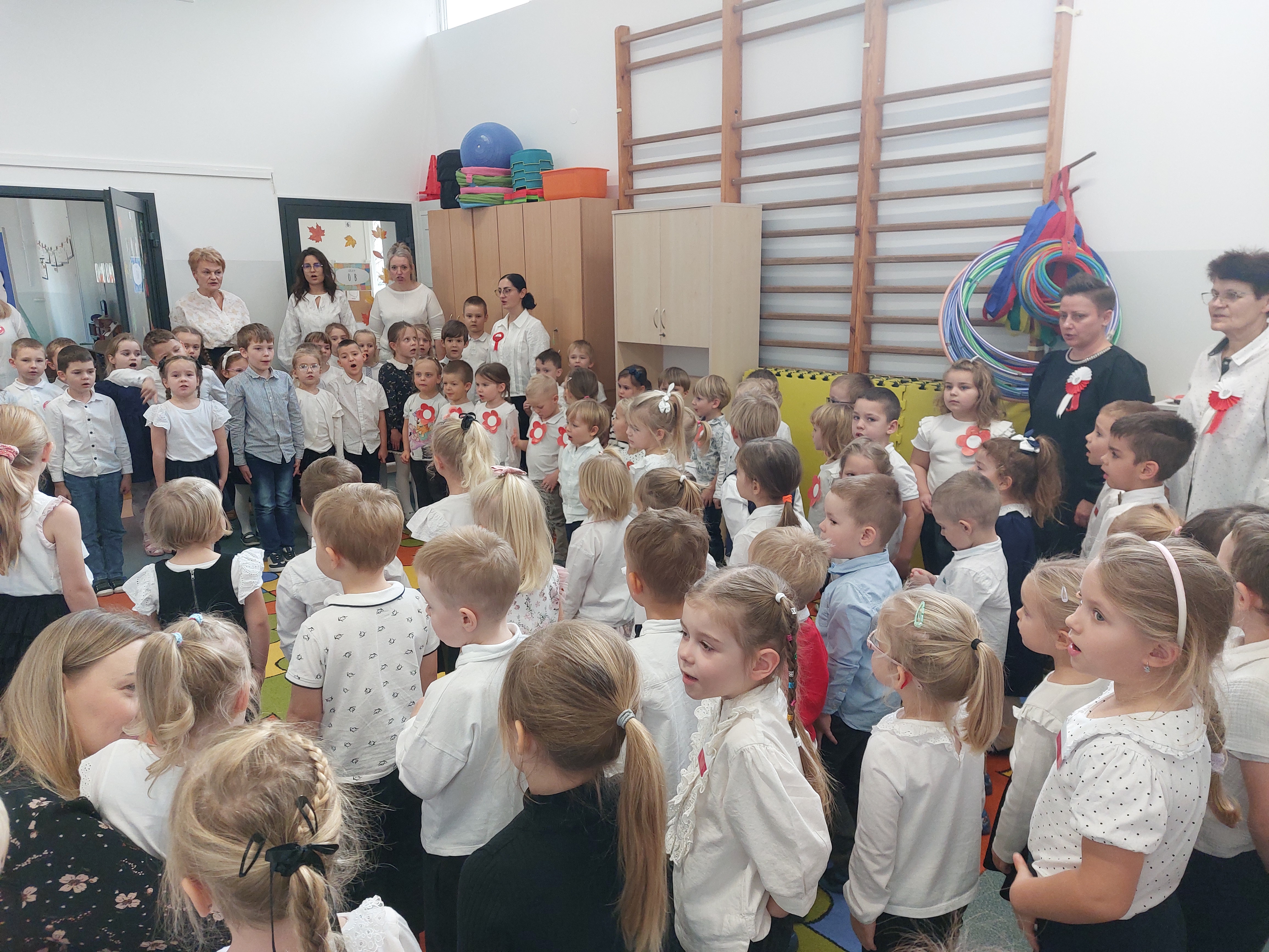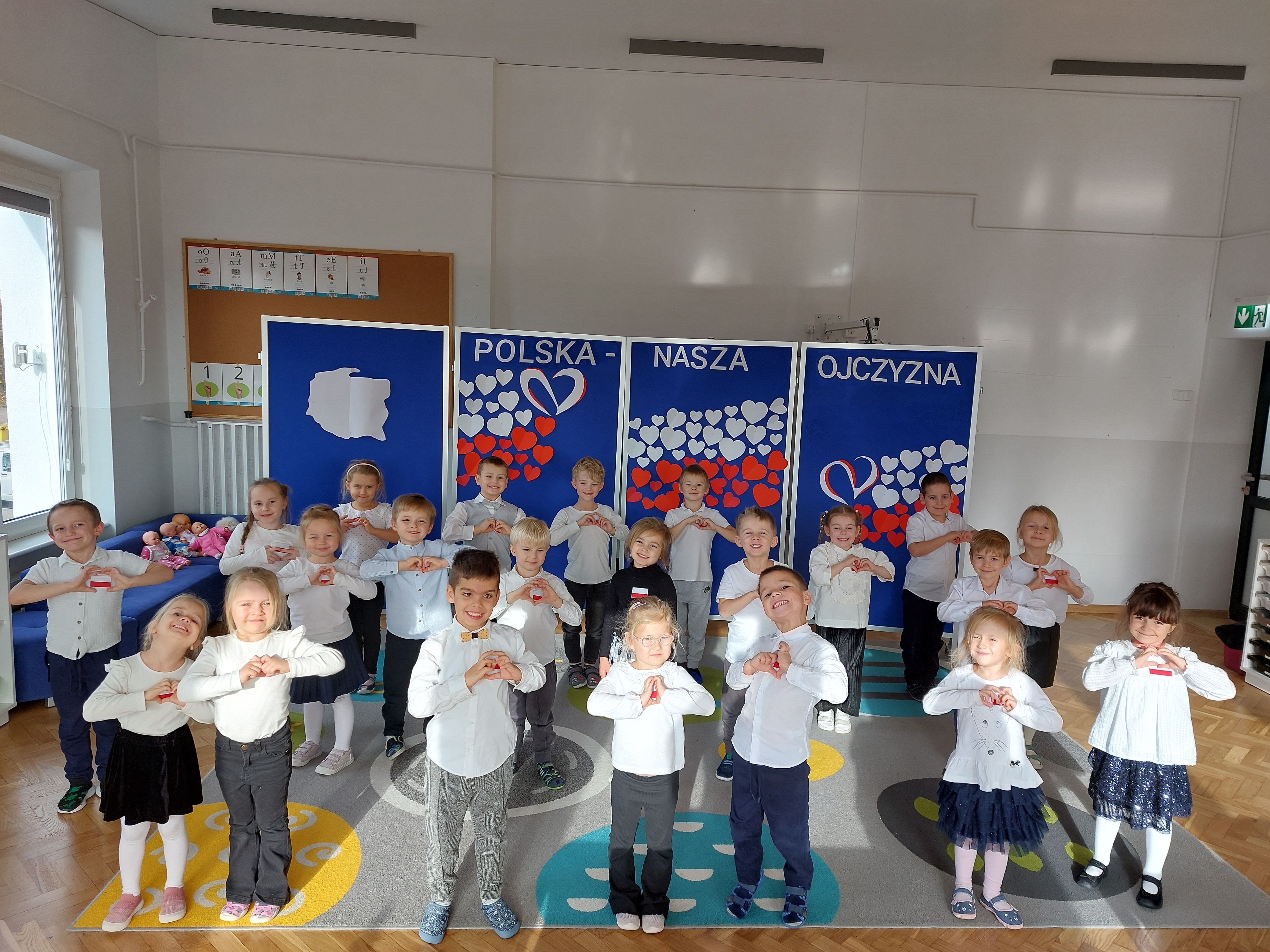 7 listopada o godzinie 11:11 nasze przedszkolaki z dumą uczciły zbliżające się Święto Niepodległości. Tego dnia wszyscy zgromadziliśmy się na korytarzu, aby wspólnie odśpiewać hymn Polski. Każda grupa zaprezentowała także wybraną piosenkę patriotyczną. Aby podkreślić wagę tego wydarzenia, dzieci przyszły do przedszkola odświętnie ubrane, a panie zadbały o akcenty w barwach narodowych. Przedszkolaki z ogromnym zaangażowaniem uczestniczyły w przygotowaniach, poznając symbole narodowe i znaczenie tego ważnego dnia. Był to piękny i wzruszający moment, który przypomniał nam, jak ważna jest miłość do Ojczyzny i pielęgnowanie tradycji.