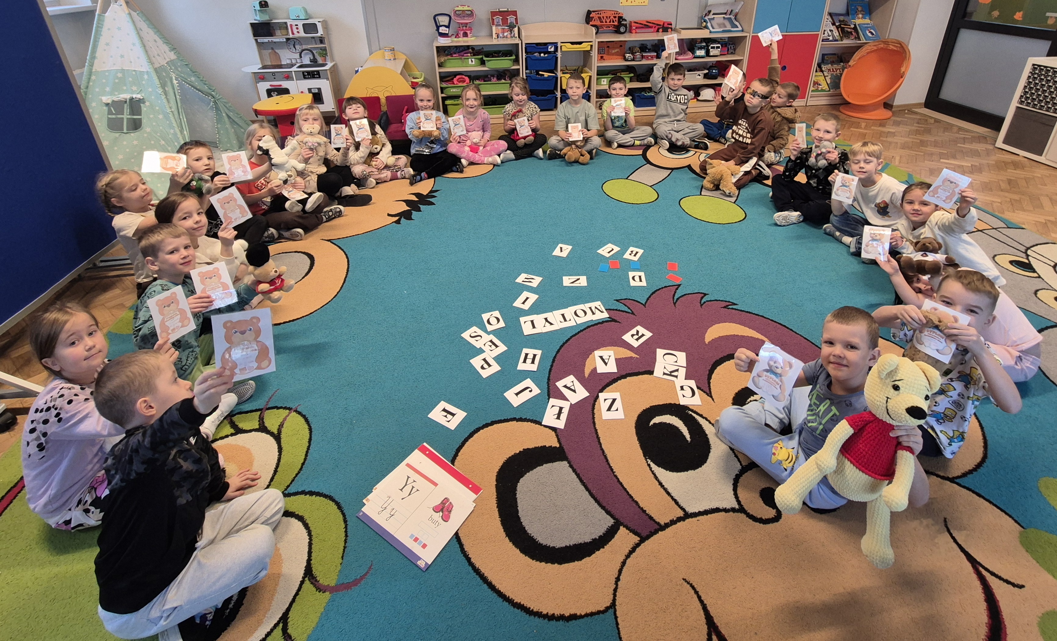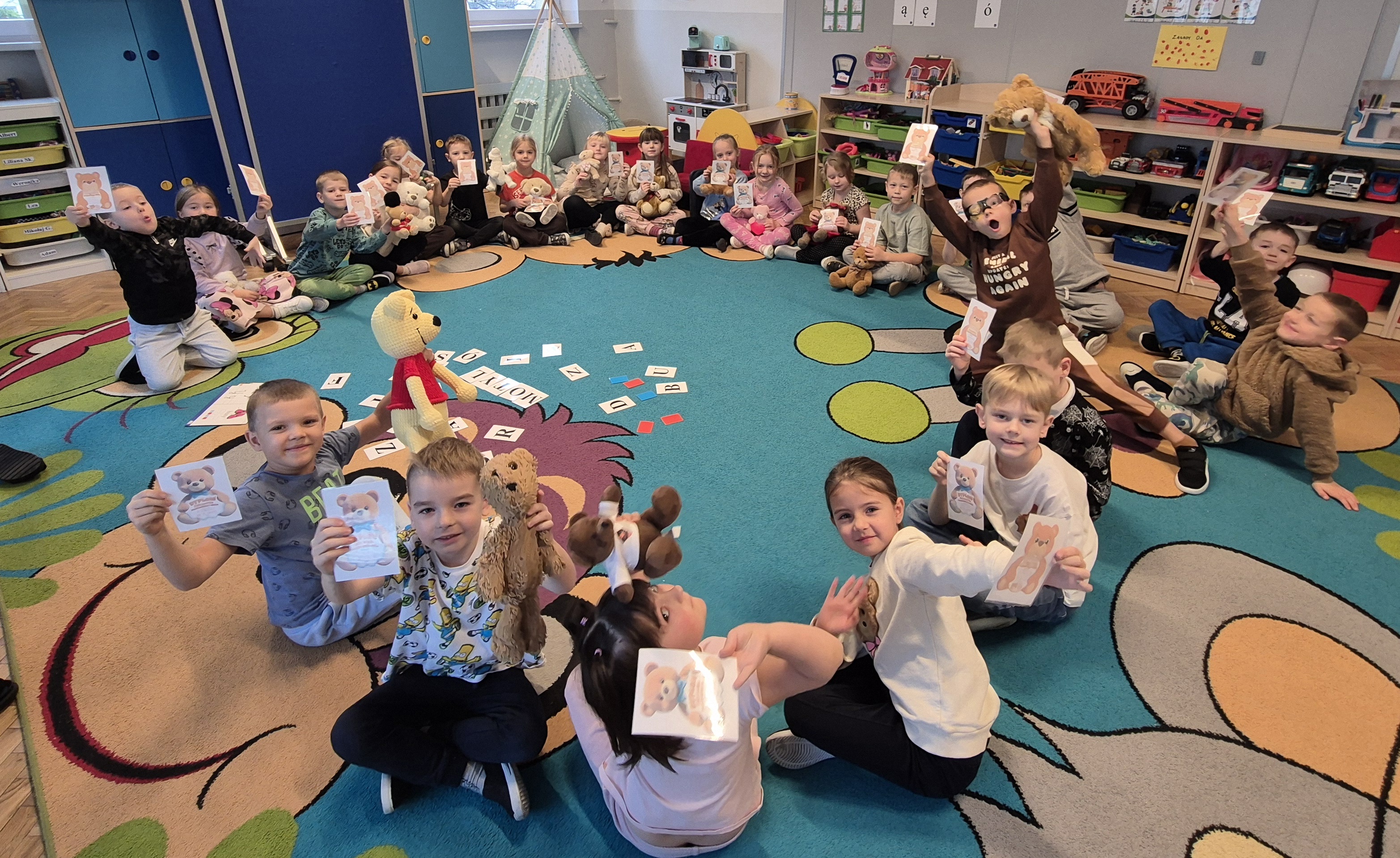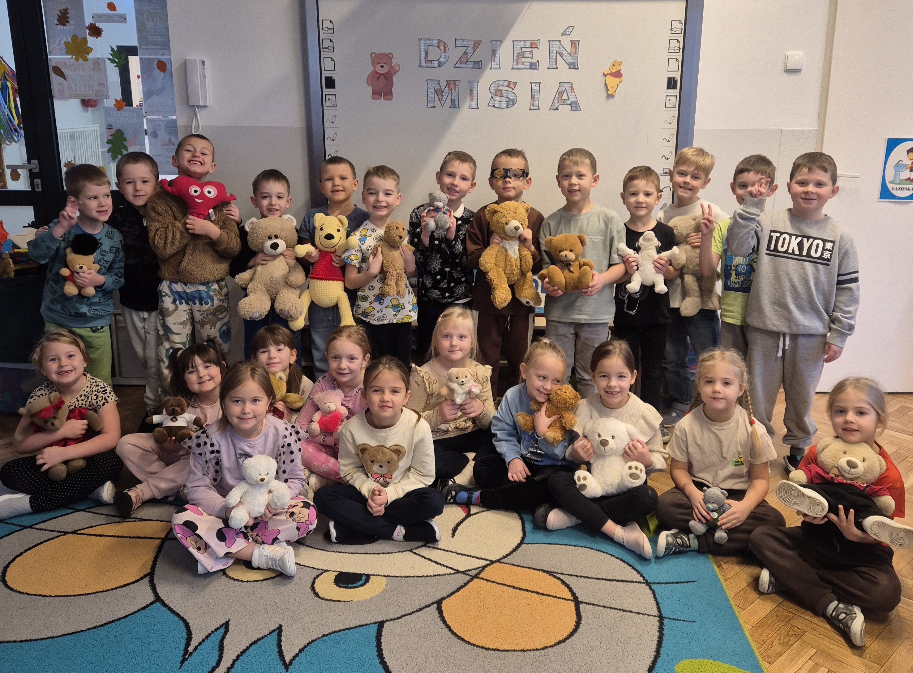 25 listopada w naszej grupie odbył się Dzień Pluszowego Misia. Tego dnia każde dziecko przyniosło swojego ulubionego pluszowego misia lub innego pluszaka, który towarzyszył nam podczas zajęć i zabaw.