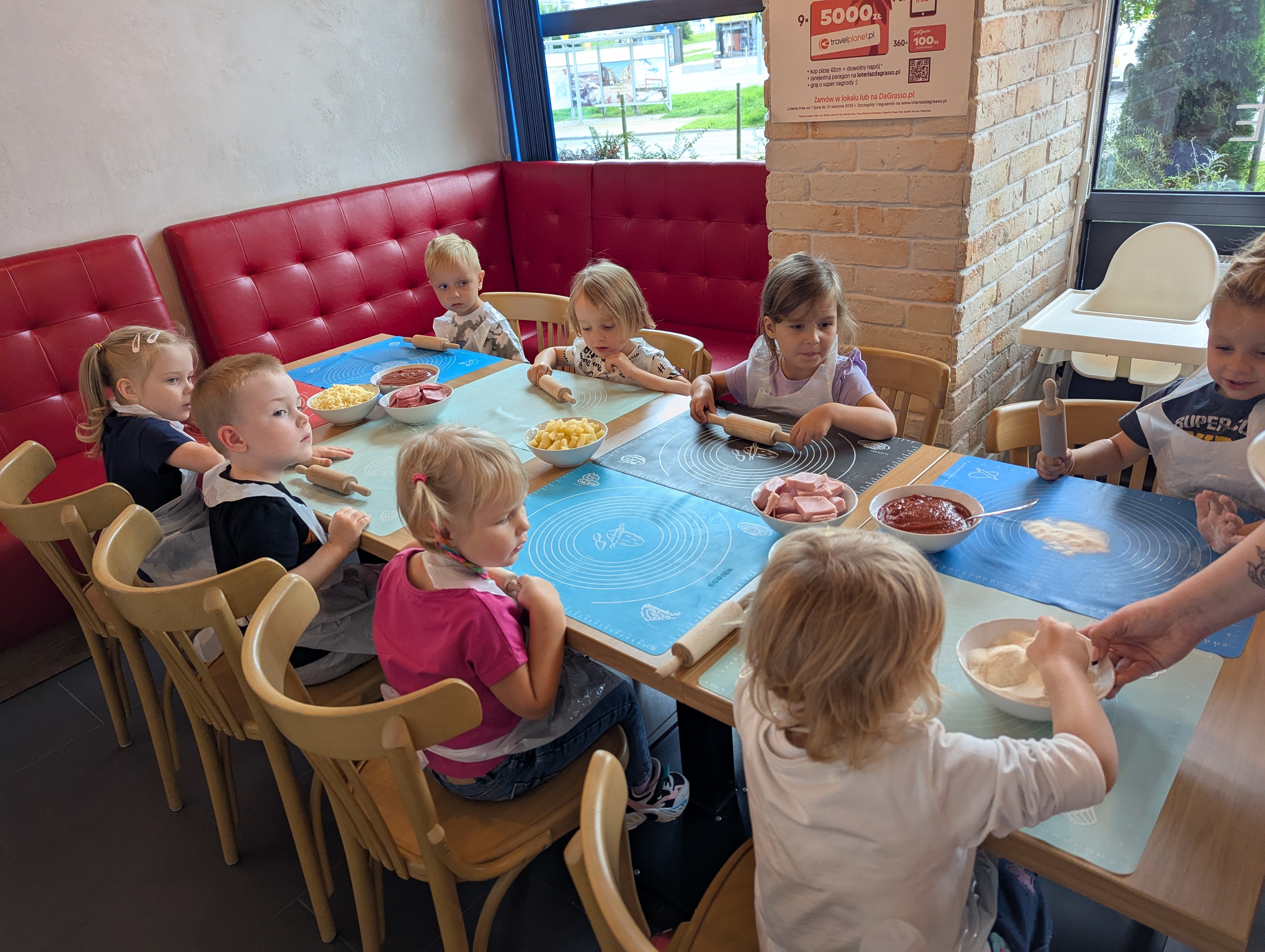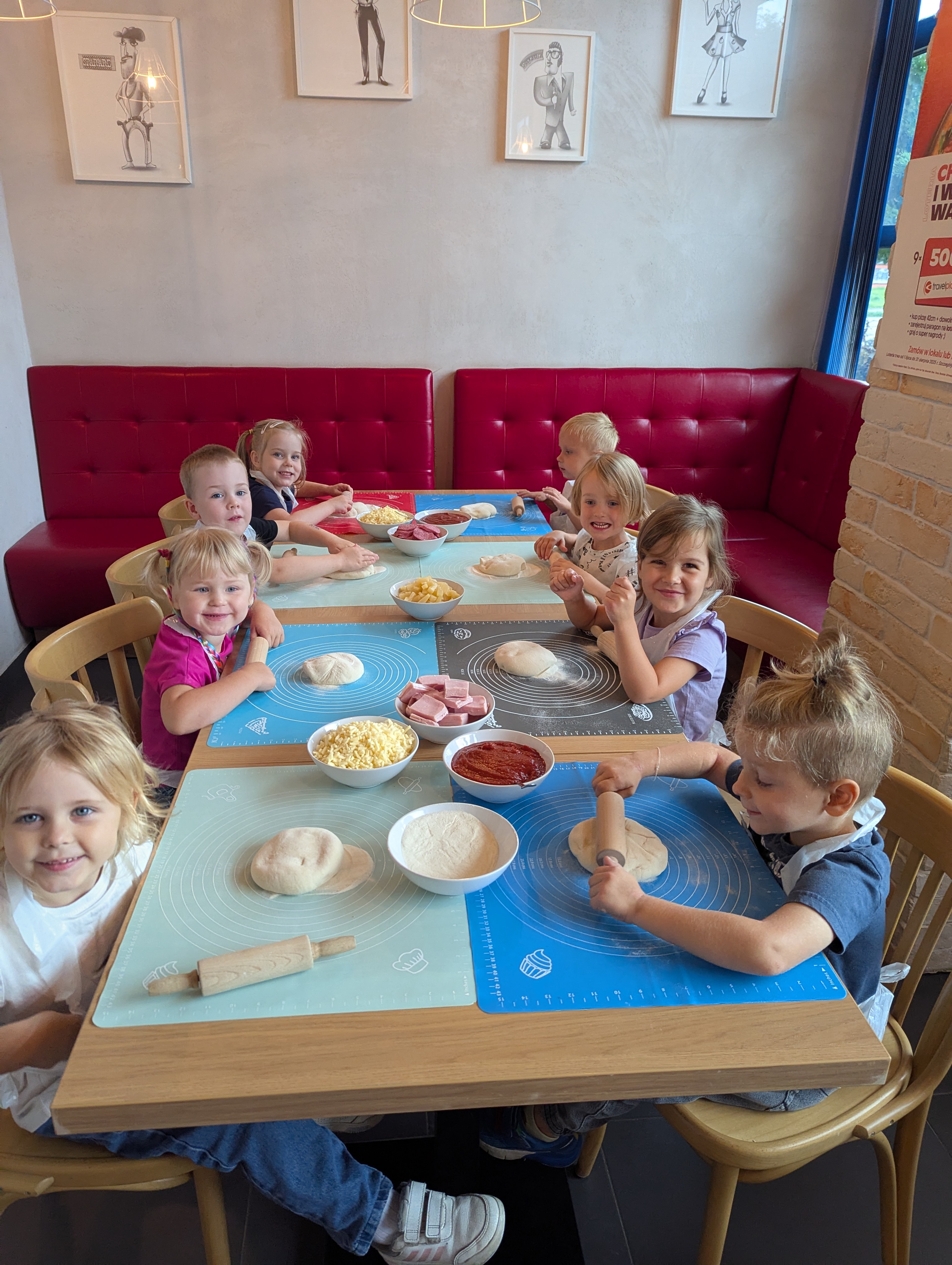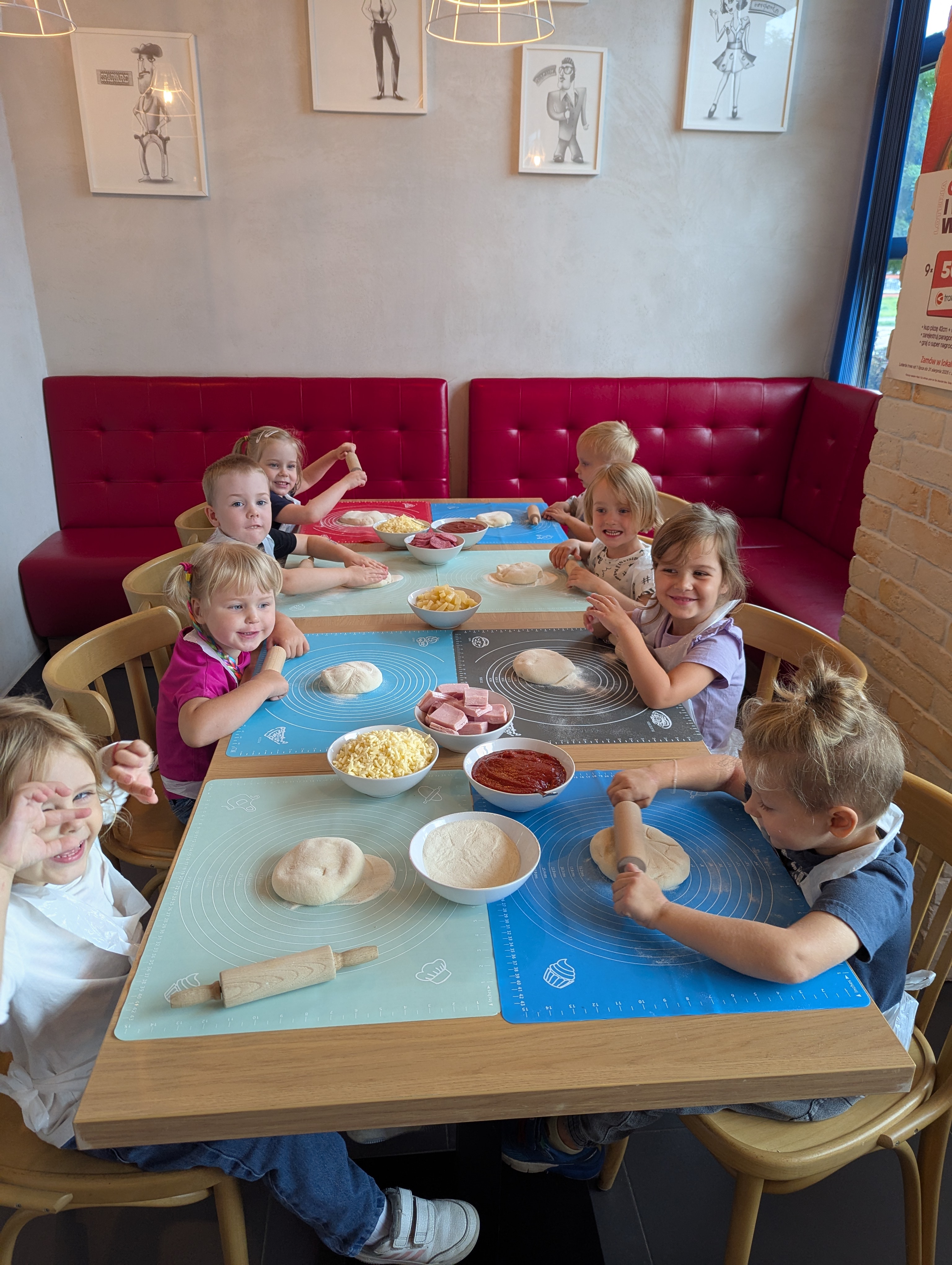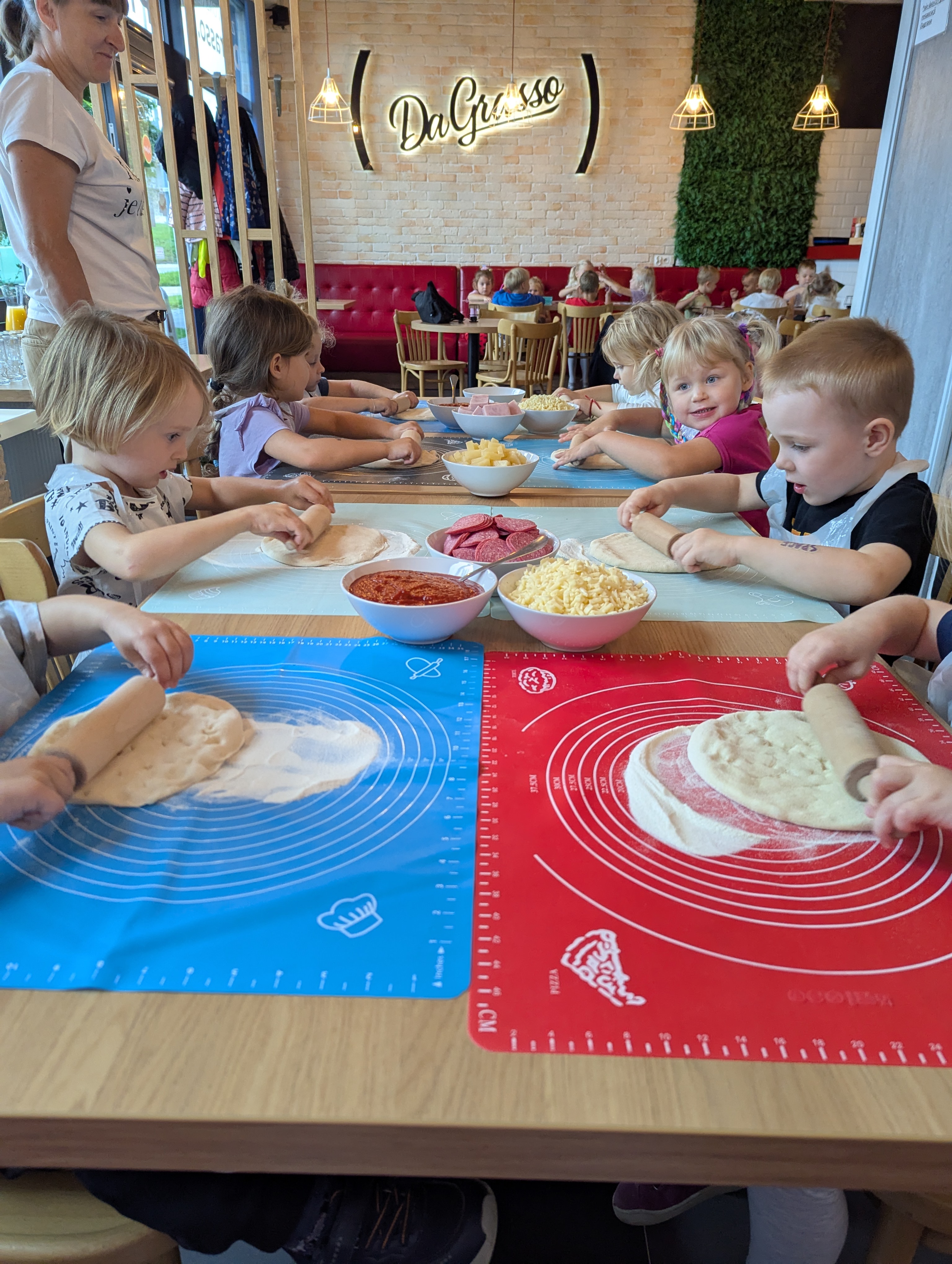 Z okazji Dnia Przedszkolaka "Wiewiórki" uczestniczyły w warsztatach kulinarnych w pizzerii DaGrasso w Pruszczu Gdańskim. Była to świetna okazja do rozwijania umiejętności manualnych i nauki zasad higieny. Dzieci wałkowały ciasto, dobierały ulubione składniki i wspólnie degustowały swoje dzieła. Na koniec warsztatów otrzymaliśmy certyfikat zdobytej wiedzy oraz mały upominek.