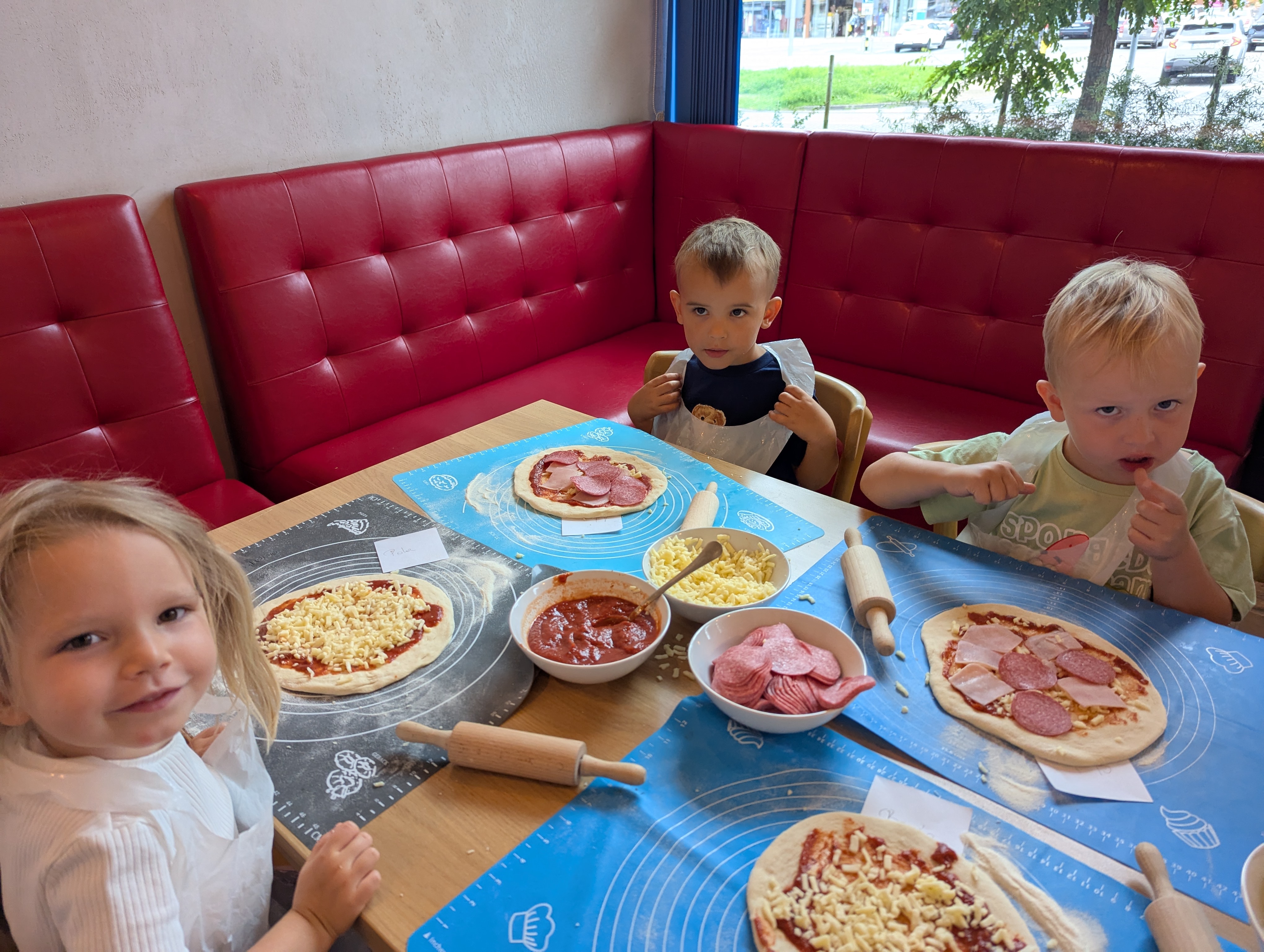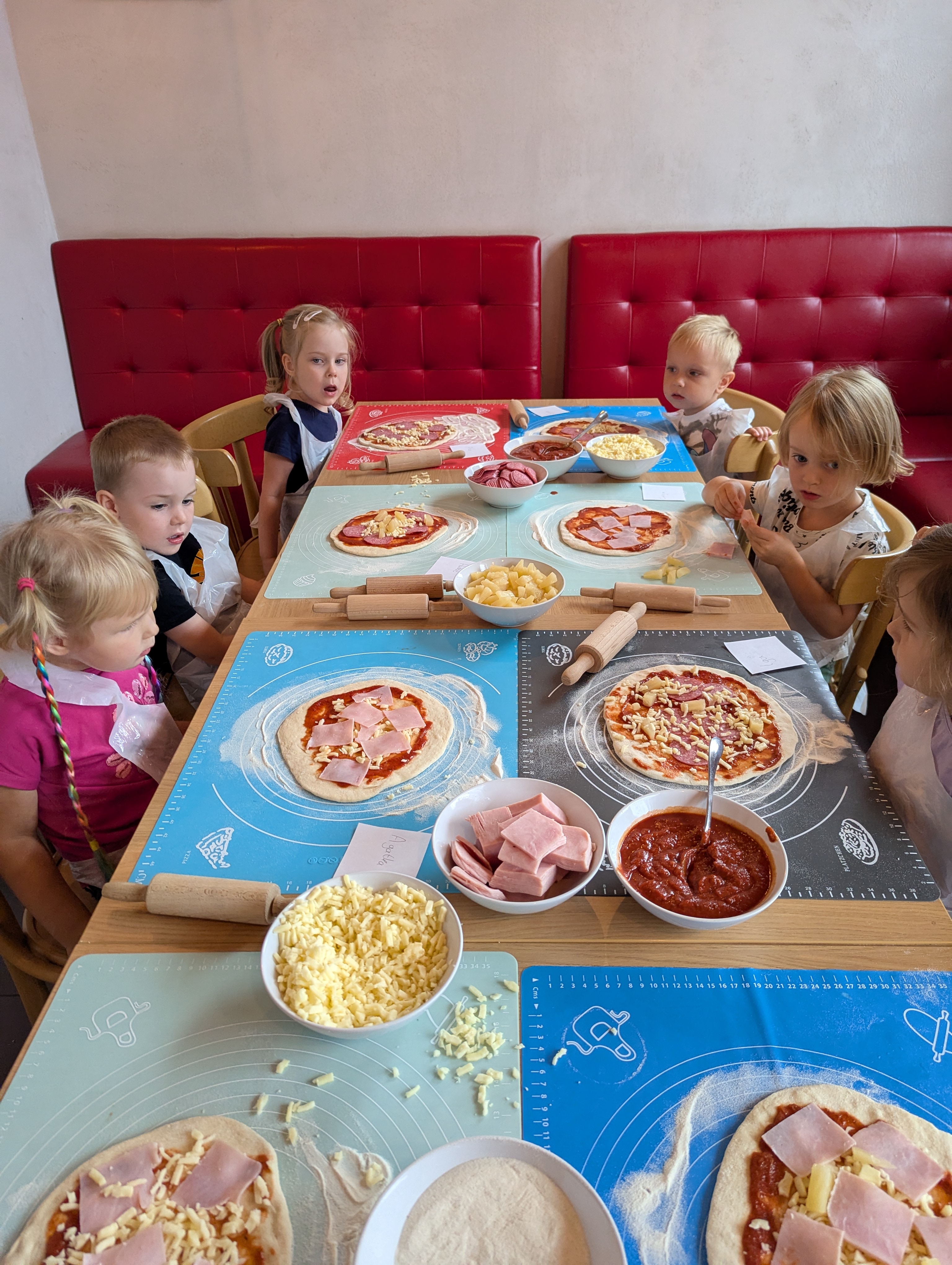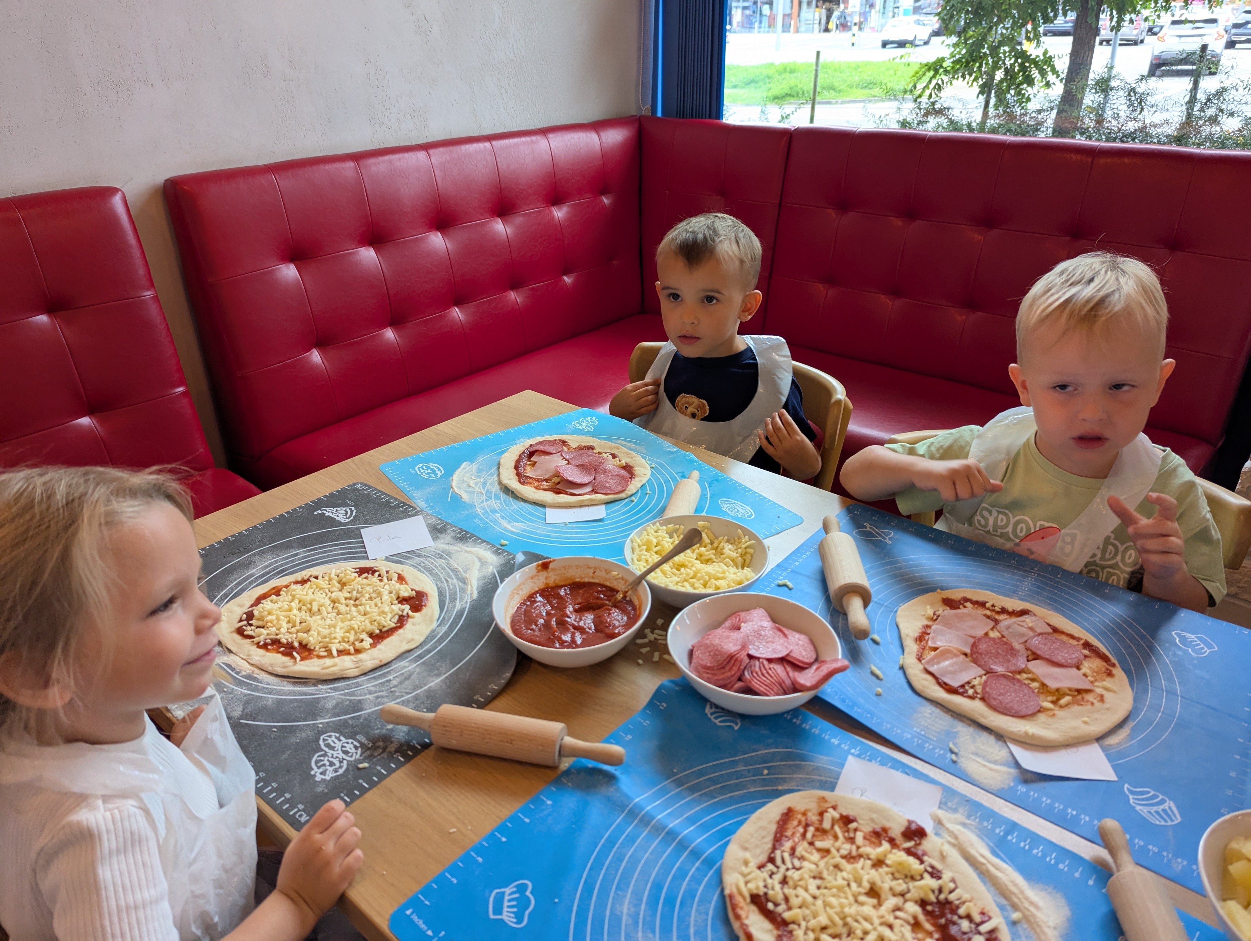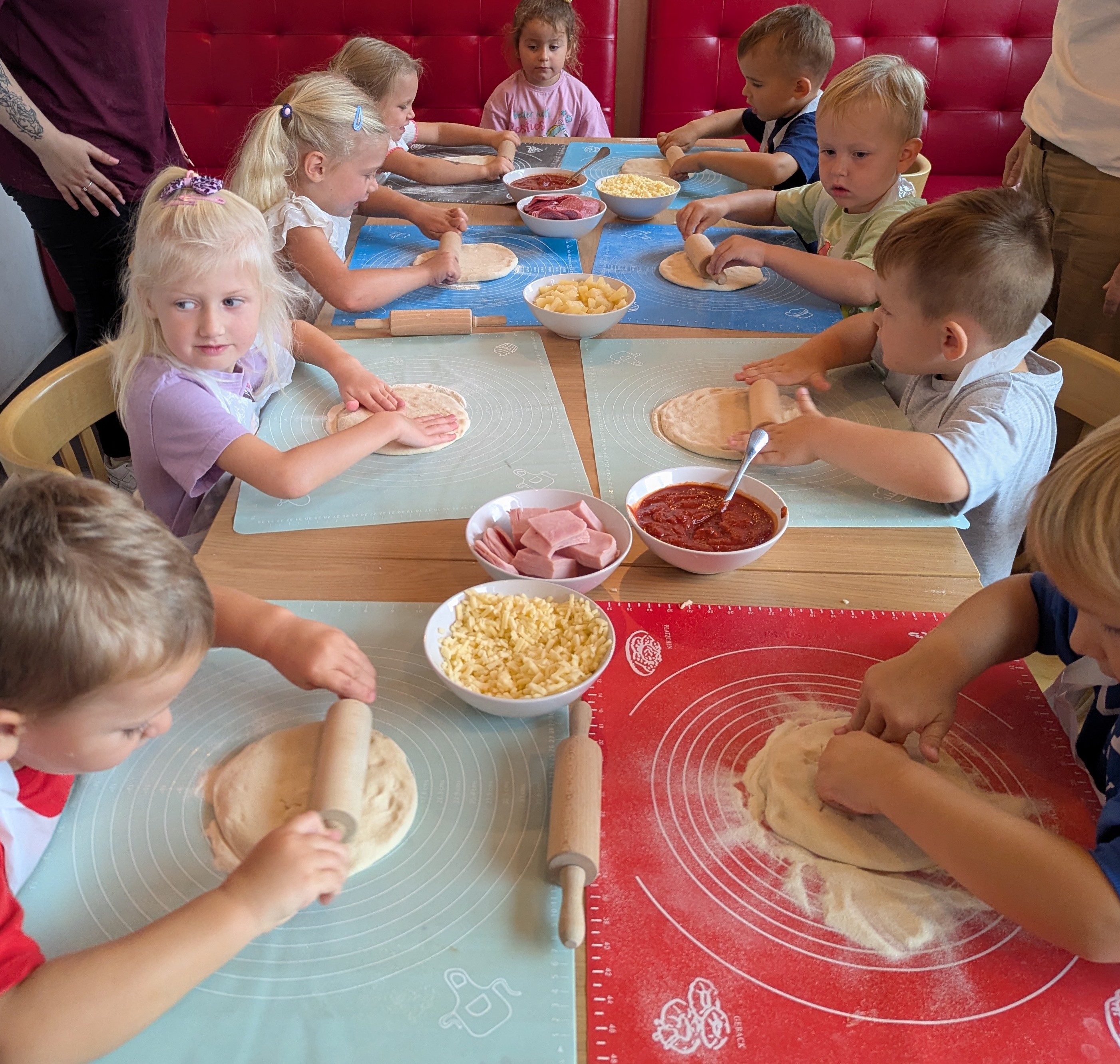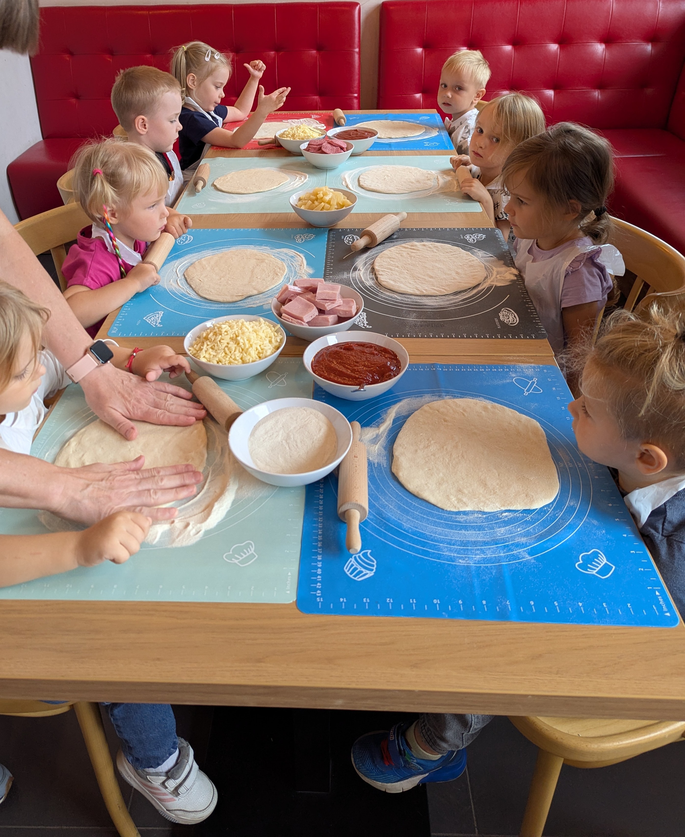 Z okazji Dnia Przedszkolaka "Wiewiórki" uczestniczyły w warsztatach kulinarnych w pizzerii DaGrasso w Pruszczu Gdańskim. Była to świetna okazja do rozwijania umiejętności manualnych i nauki zasad higieny. Dzieci wałkowały ciasto, dobierały ulubione składniki i wspólnie degustowały swoje dzieła. Na koniec warsztatów otrzymaliśmy certyfikat zdobytej wiedzy oraz mały upominek.
