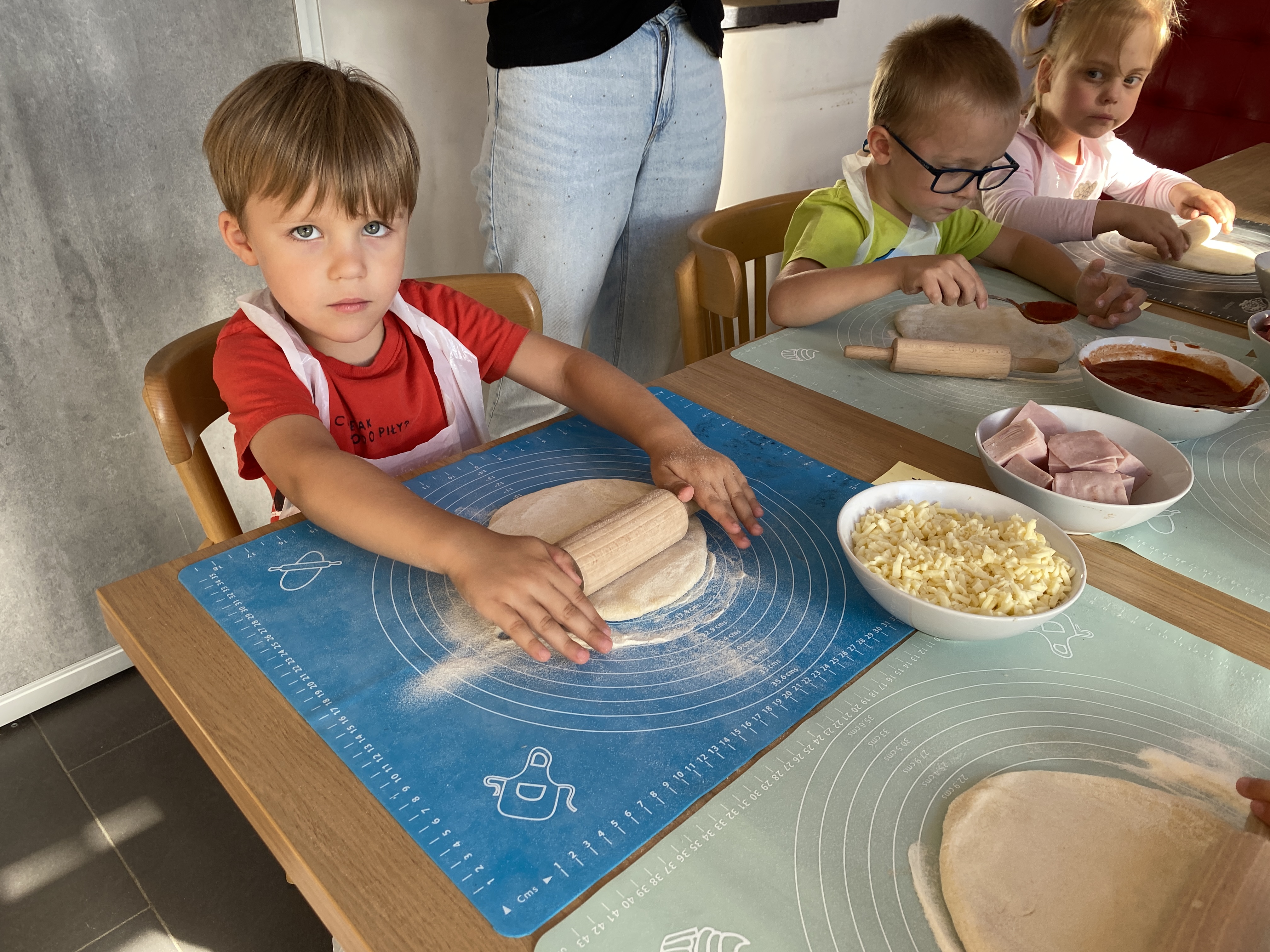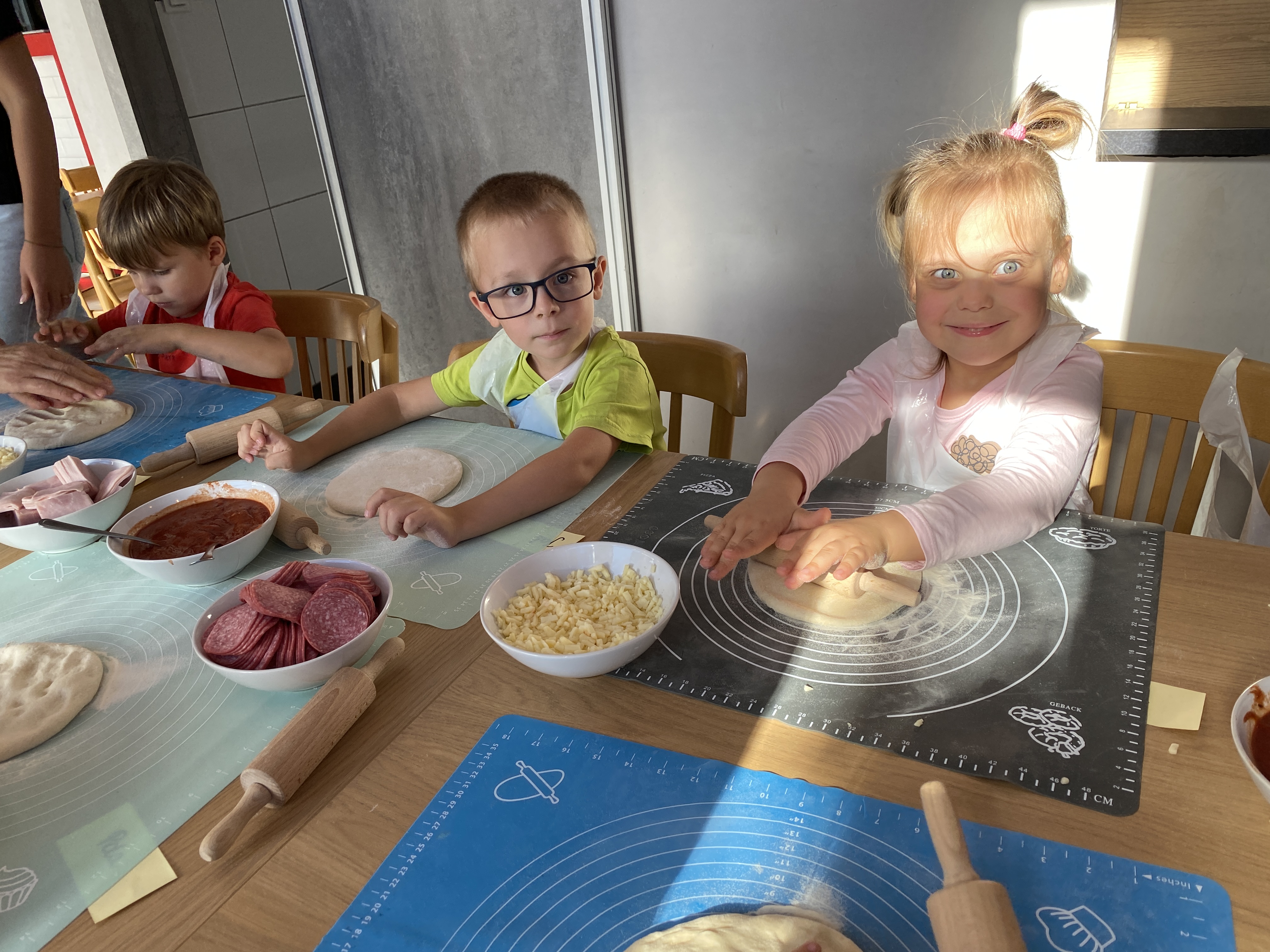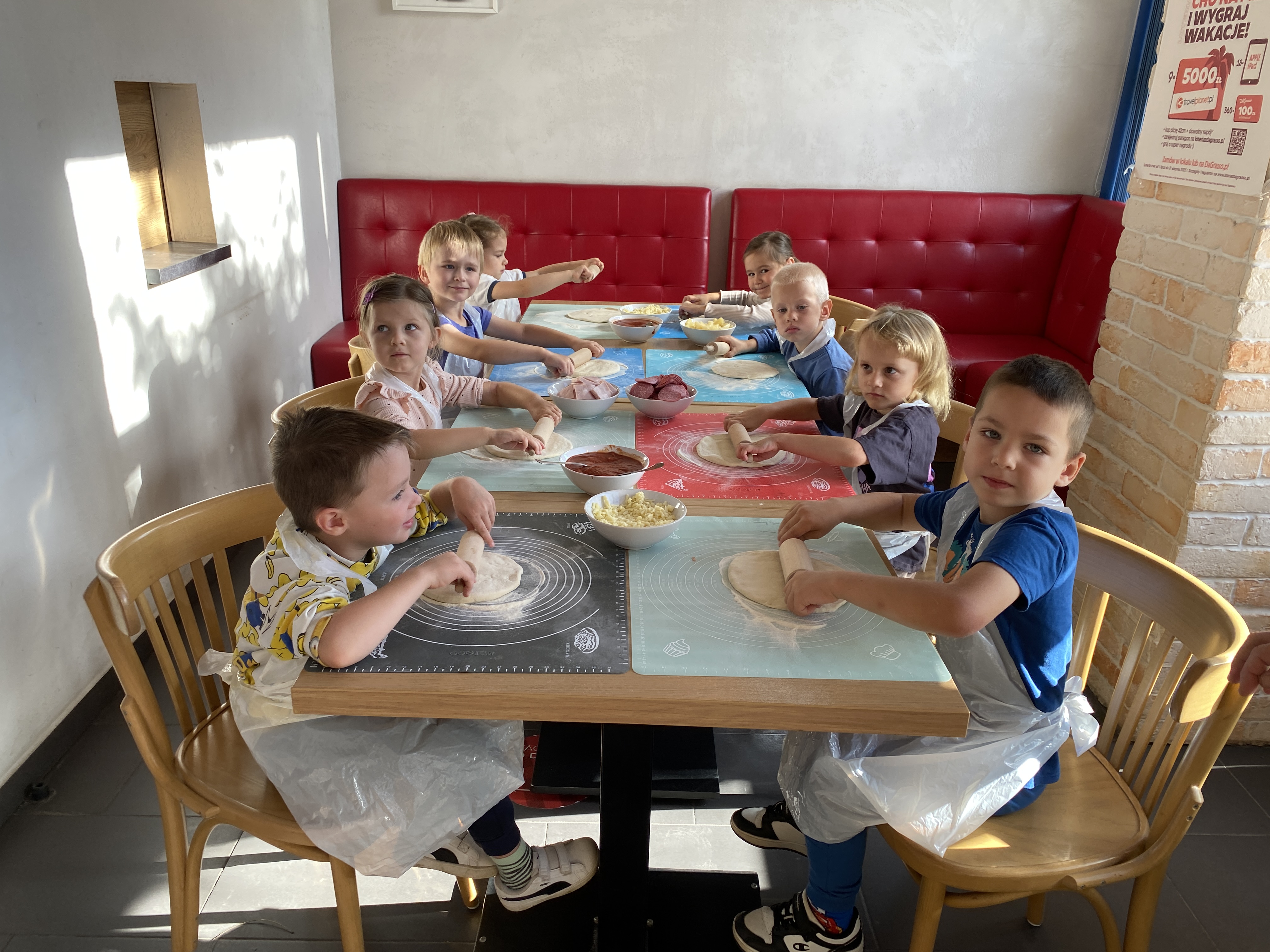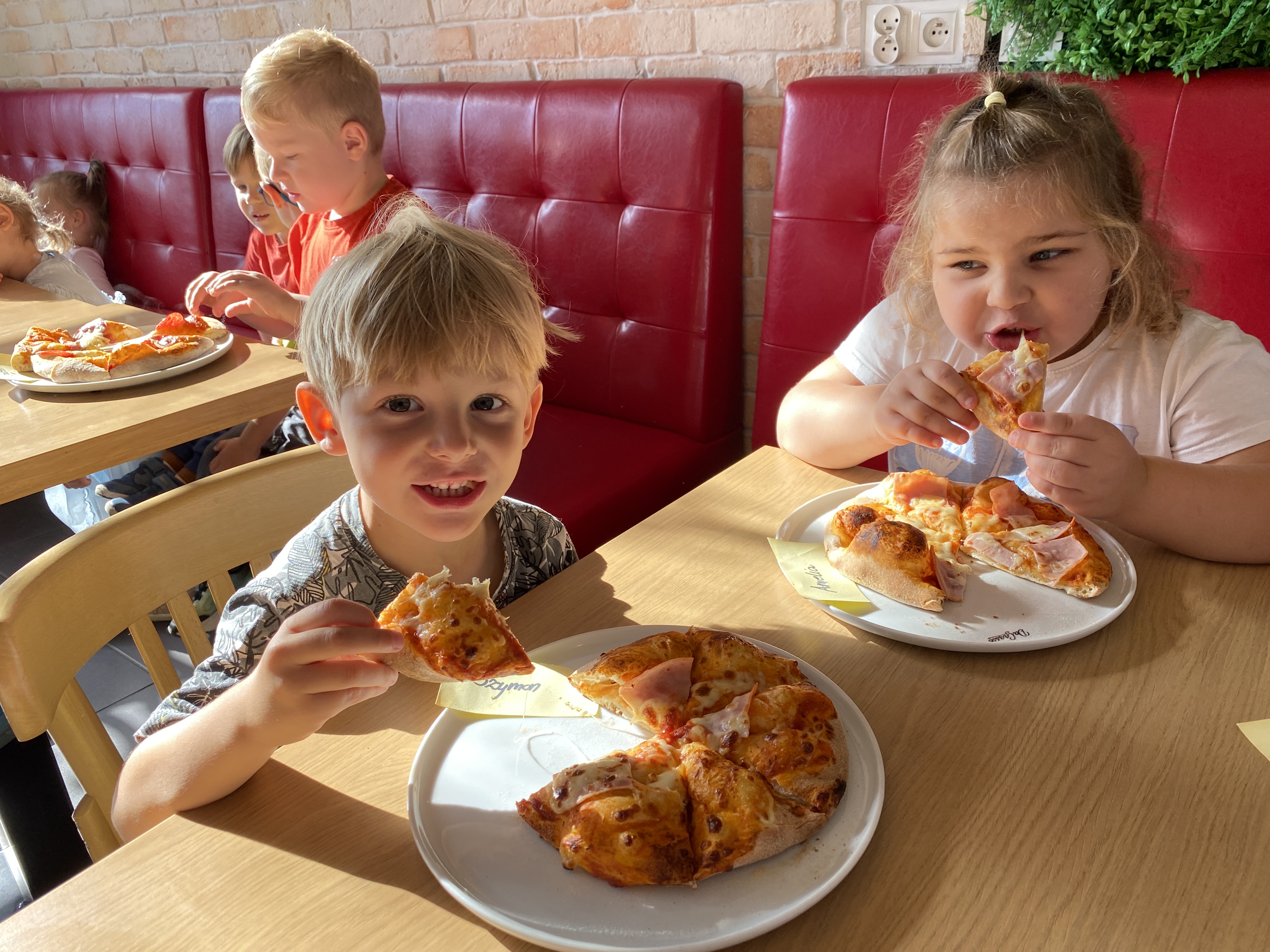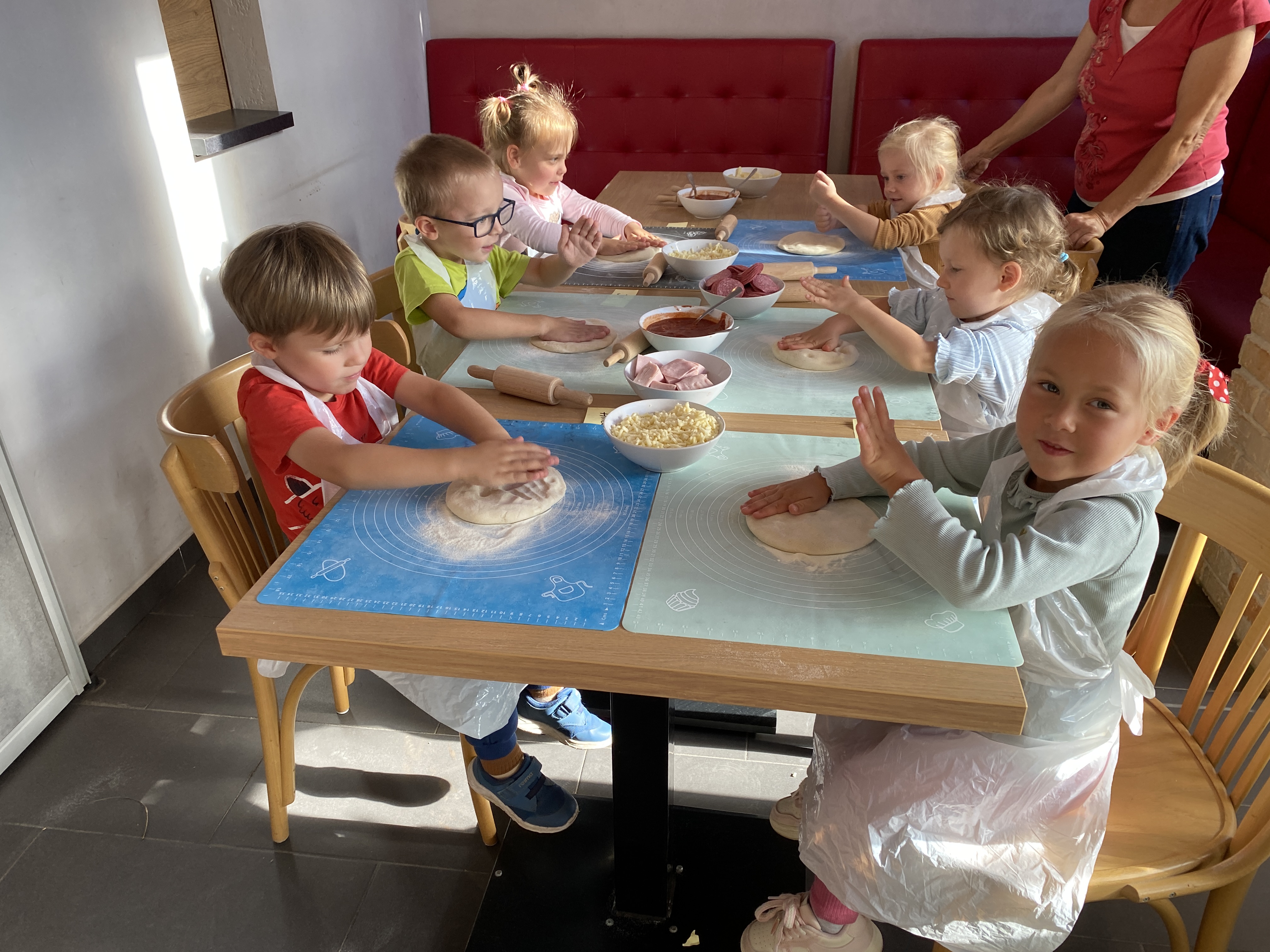 Z okazji Dnia Przedszkolaka Kreciki uczestniczyły w warsztatach kulinarnych w pizzeri DaGrasso. Była to świetna okazja do rozwijania umiejętności manualnych, nauki zasad higieny i pracy zespołowej poprzez tworzenie własnych, wymyślonych przez dzieci pizz. Dzieci wałkowały ciasto, dobierały ulubione składniki i wspólnie degustowały swoje dzieła. Na koniec warsztatów otrzymaliśmy certyfikat zdobytej wiedzy oraz mały upominek. Bardzo nam się podobało.