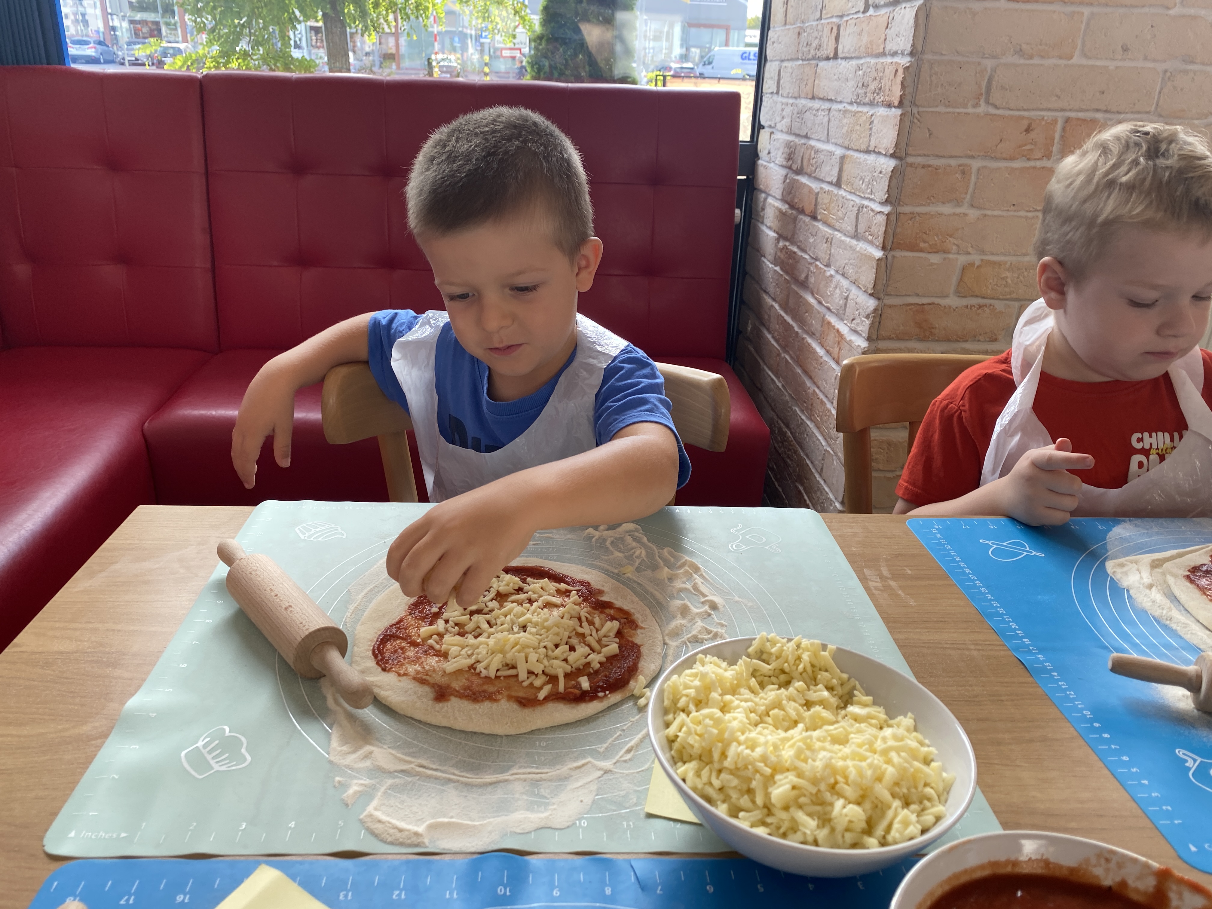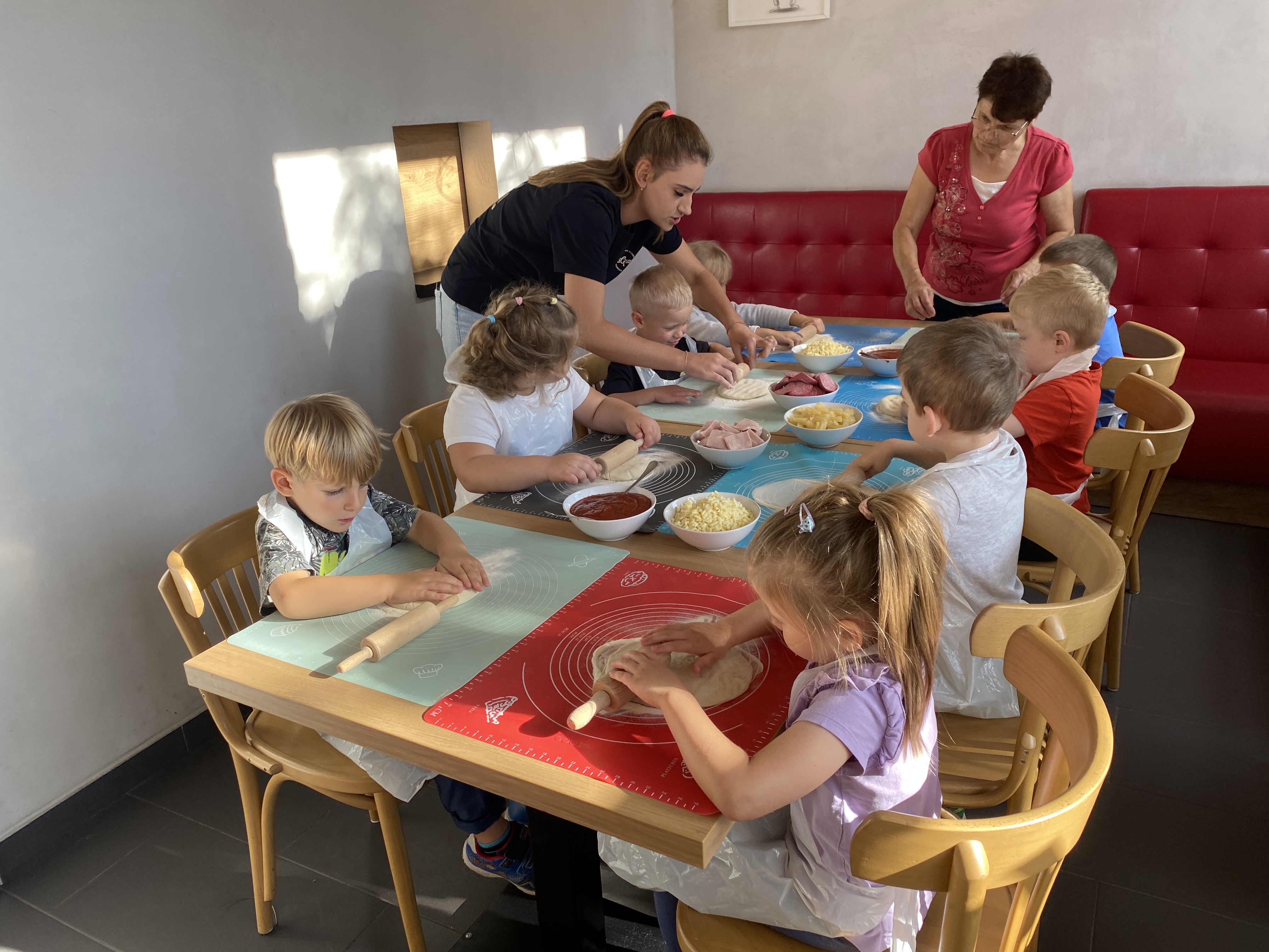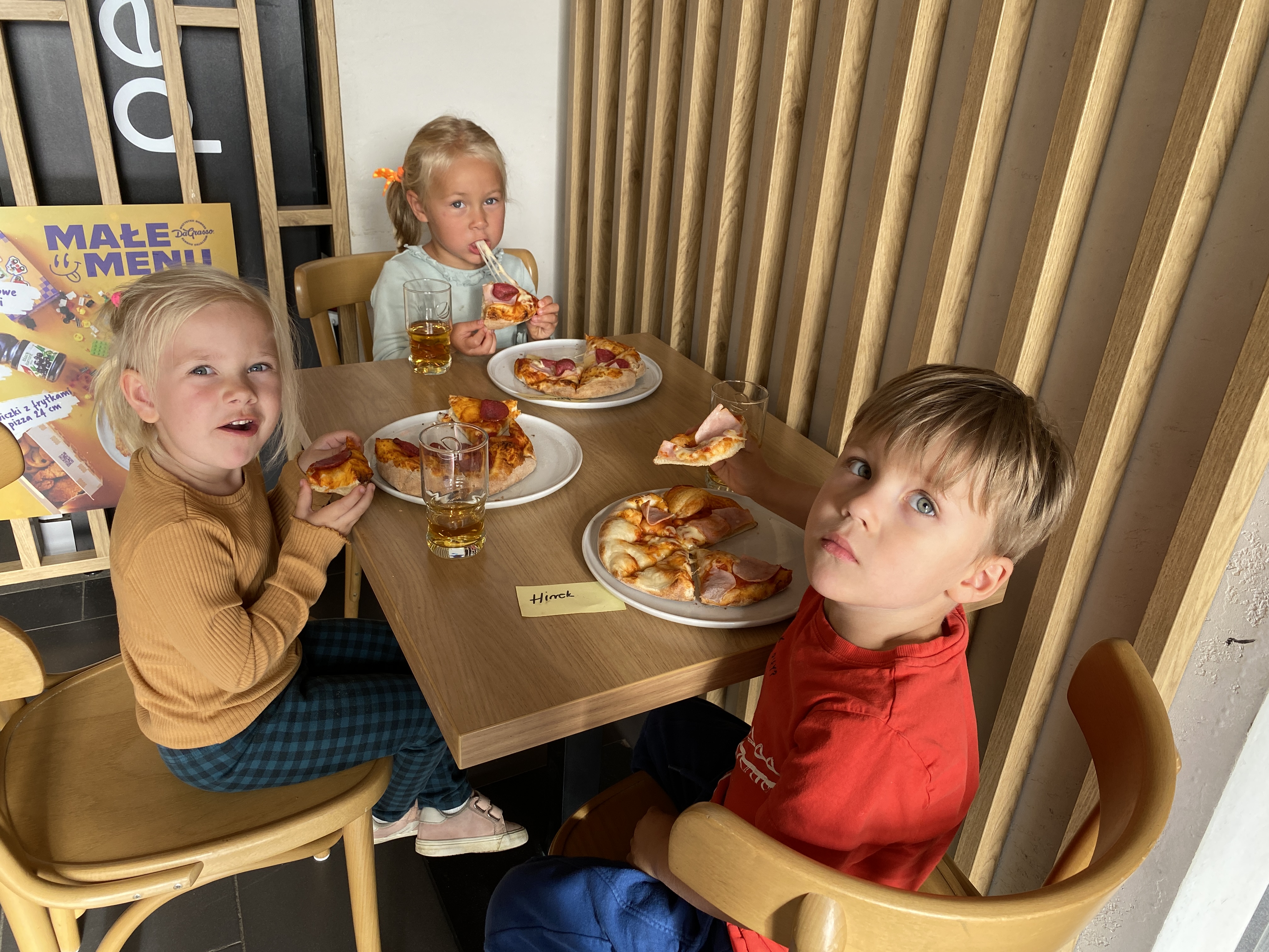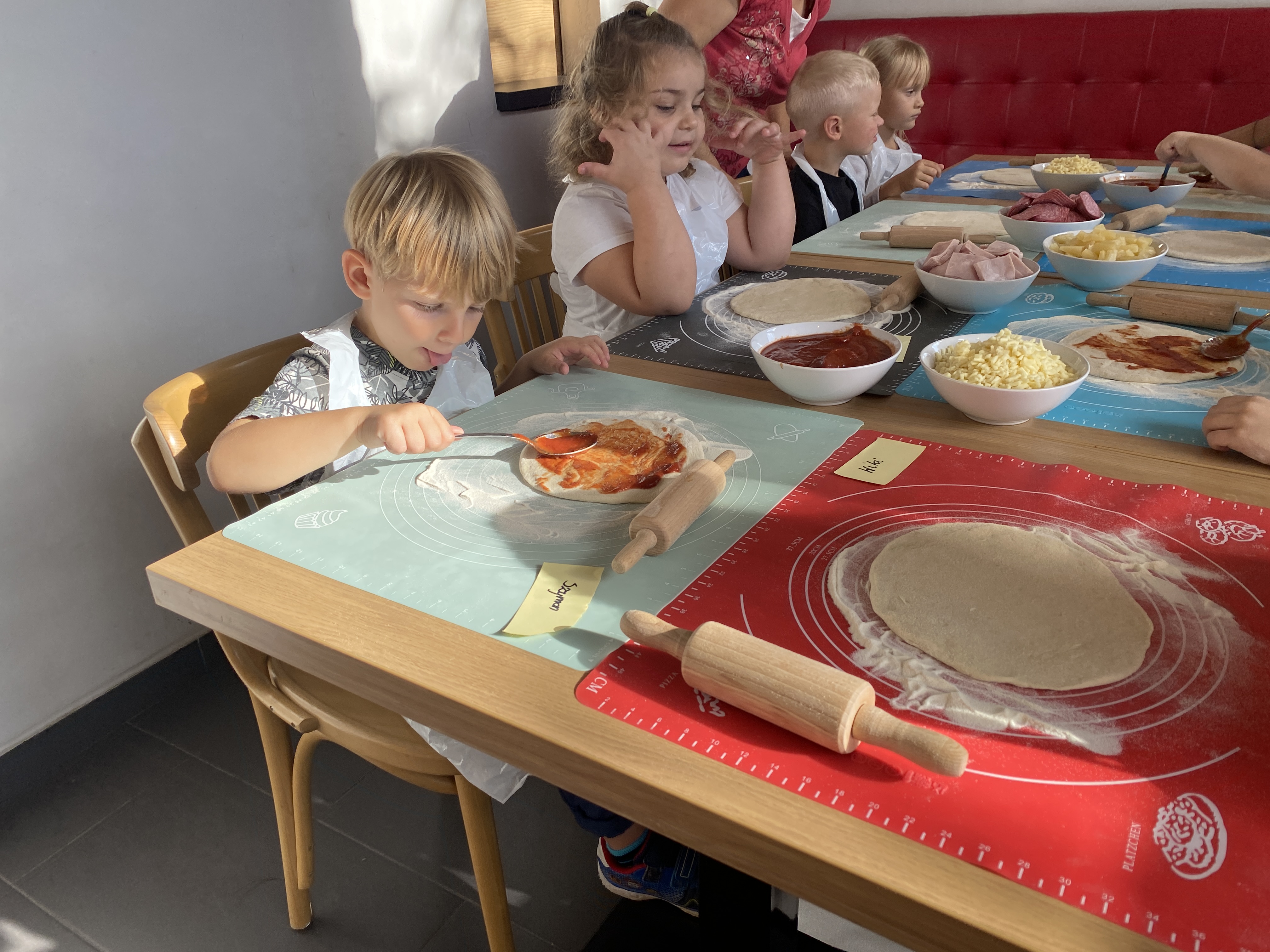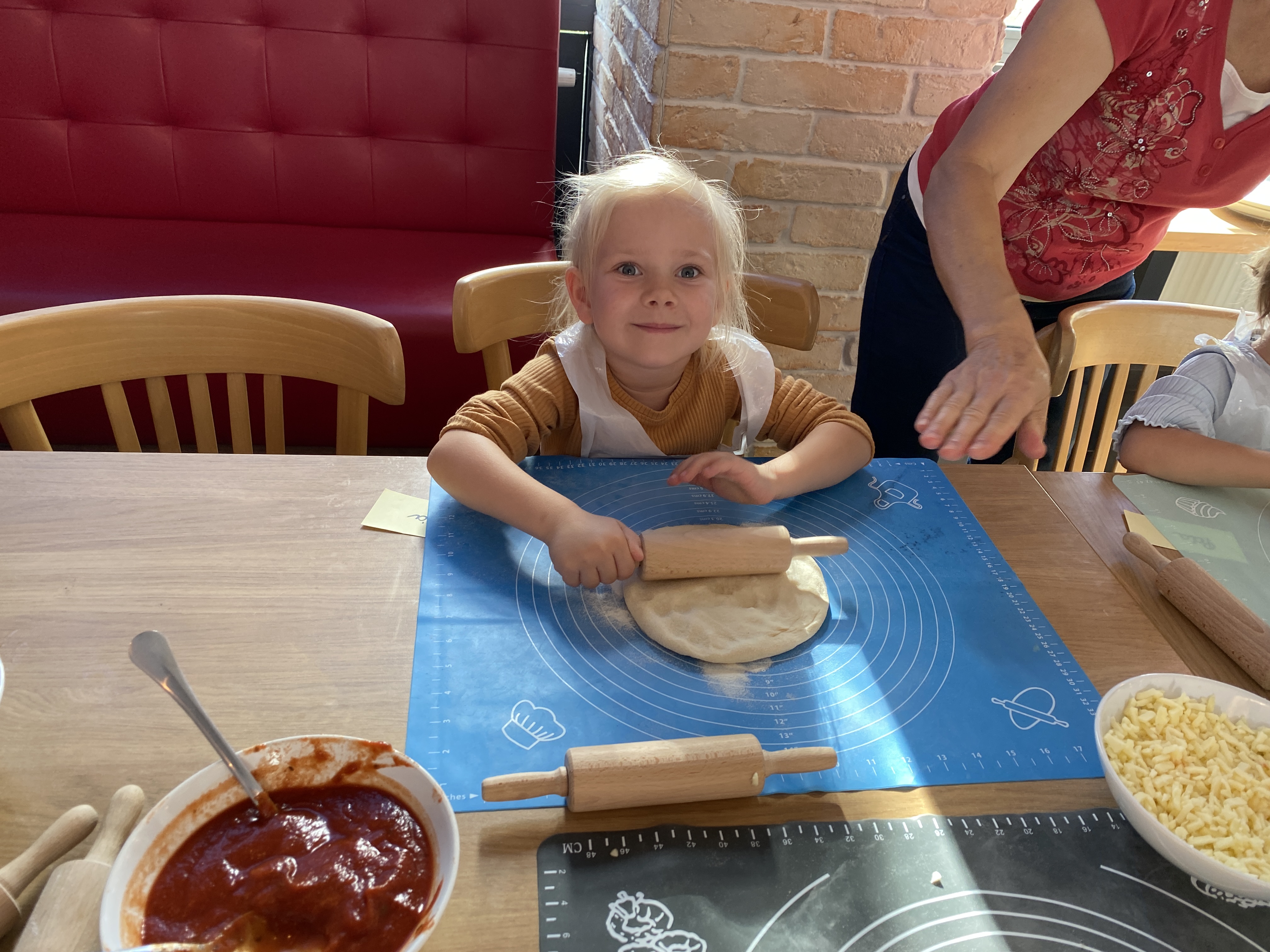 Z okazji Dnia Przedszkolaka Kreciki uczestniczyły w warsztatach kulinarnych w pizzeri DaGrasso. Była to świetna okazja do rozwijania umiejętności manualnych, nauki zasad higieny i pracy zespołowej poprzez tworzenie własnych, wymyślonych przez dzieci pizz. Dzieci wałkowały ciasto, dobierały ulubione składniki i wspólnie degustowały swoje dzieła. Na koniec warsztatów otrzymaliśmy certyfikat zdobytej wiedzy oraz mały upominek. Bardzo nam się podobało.