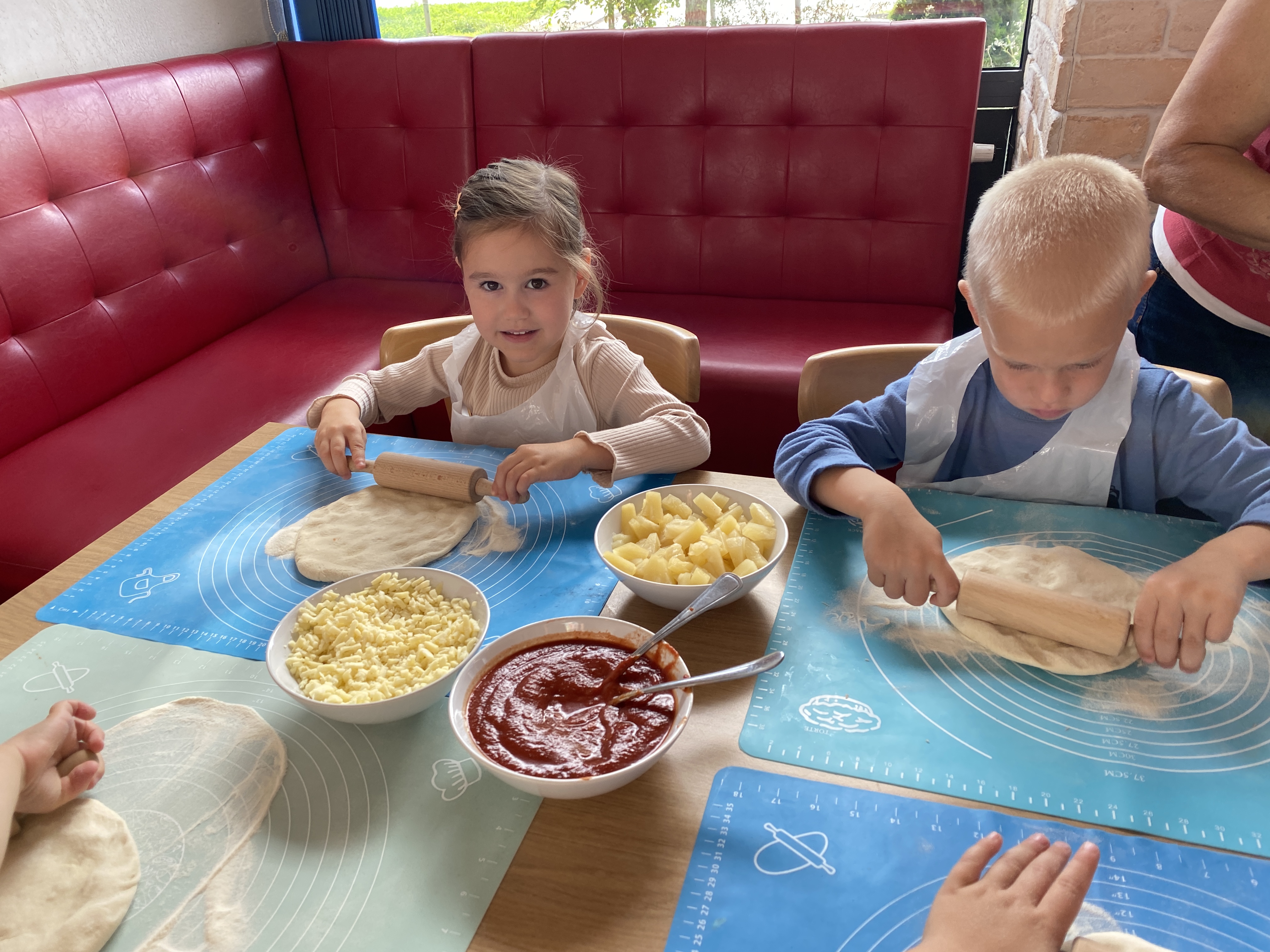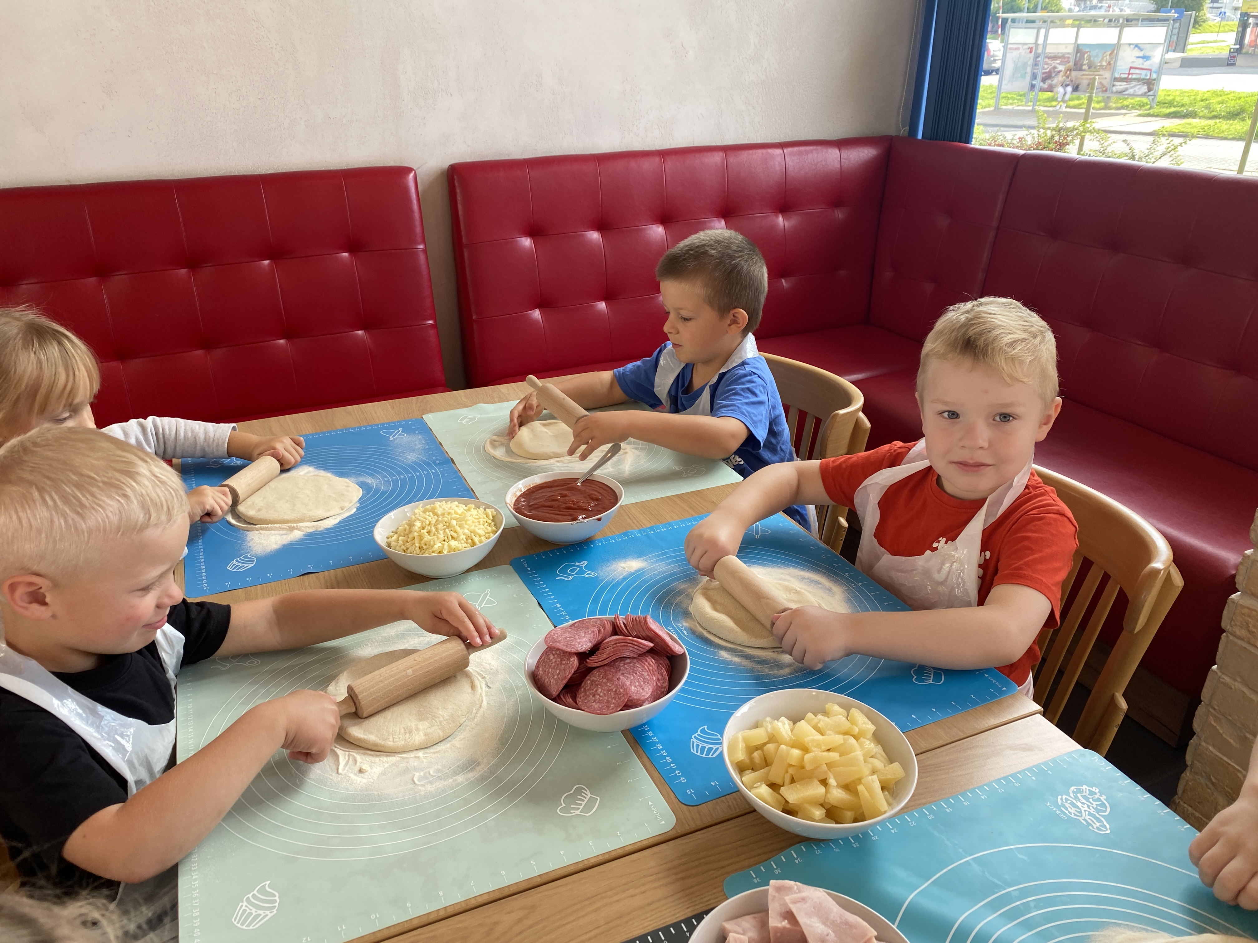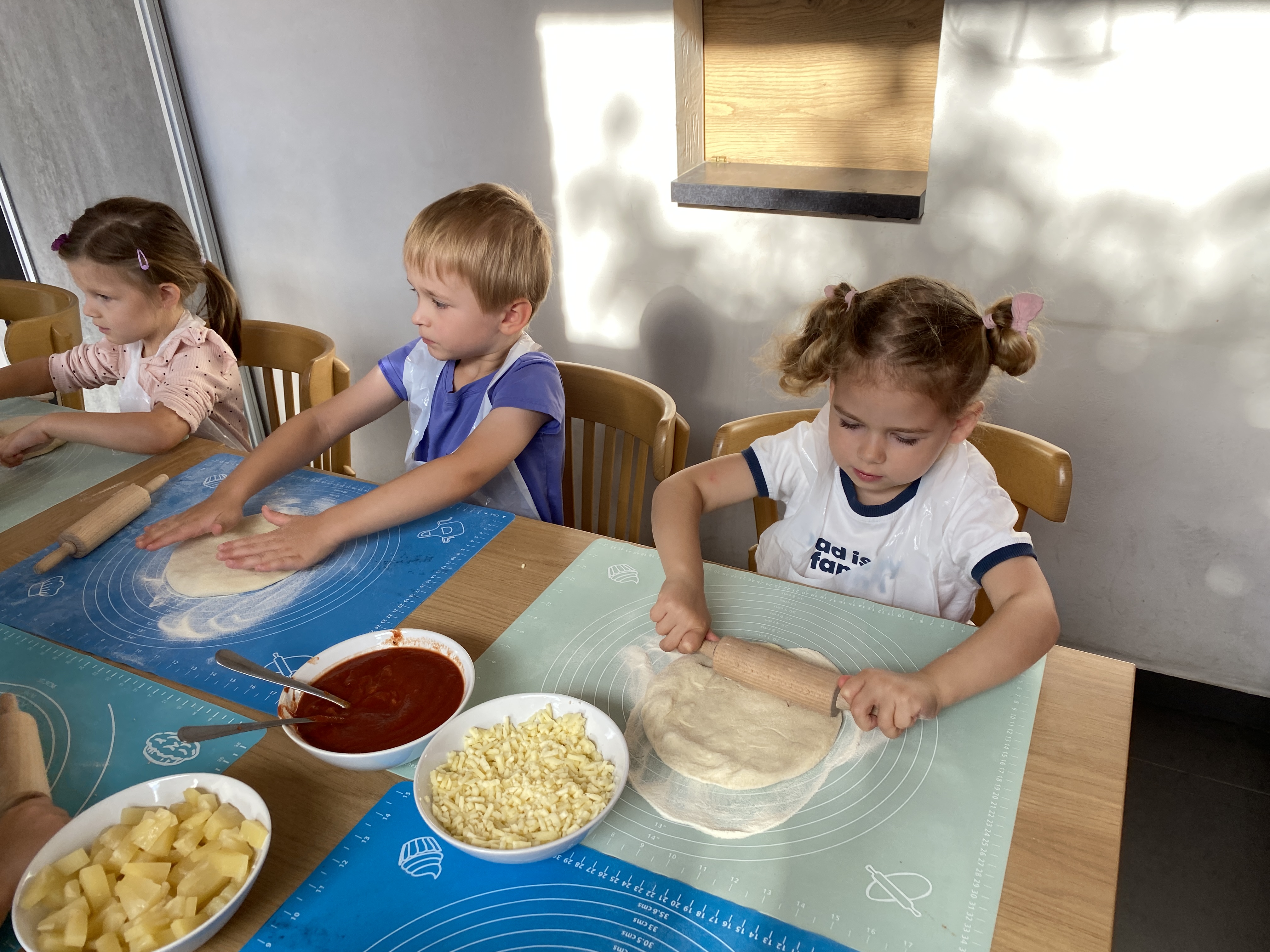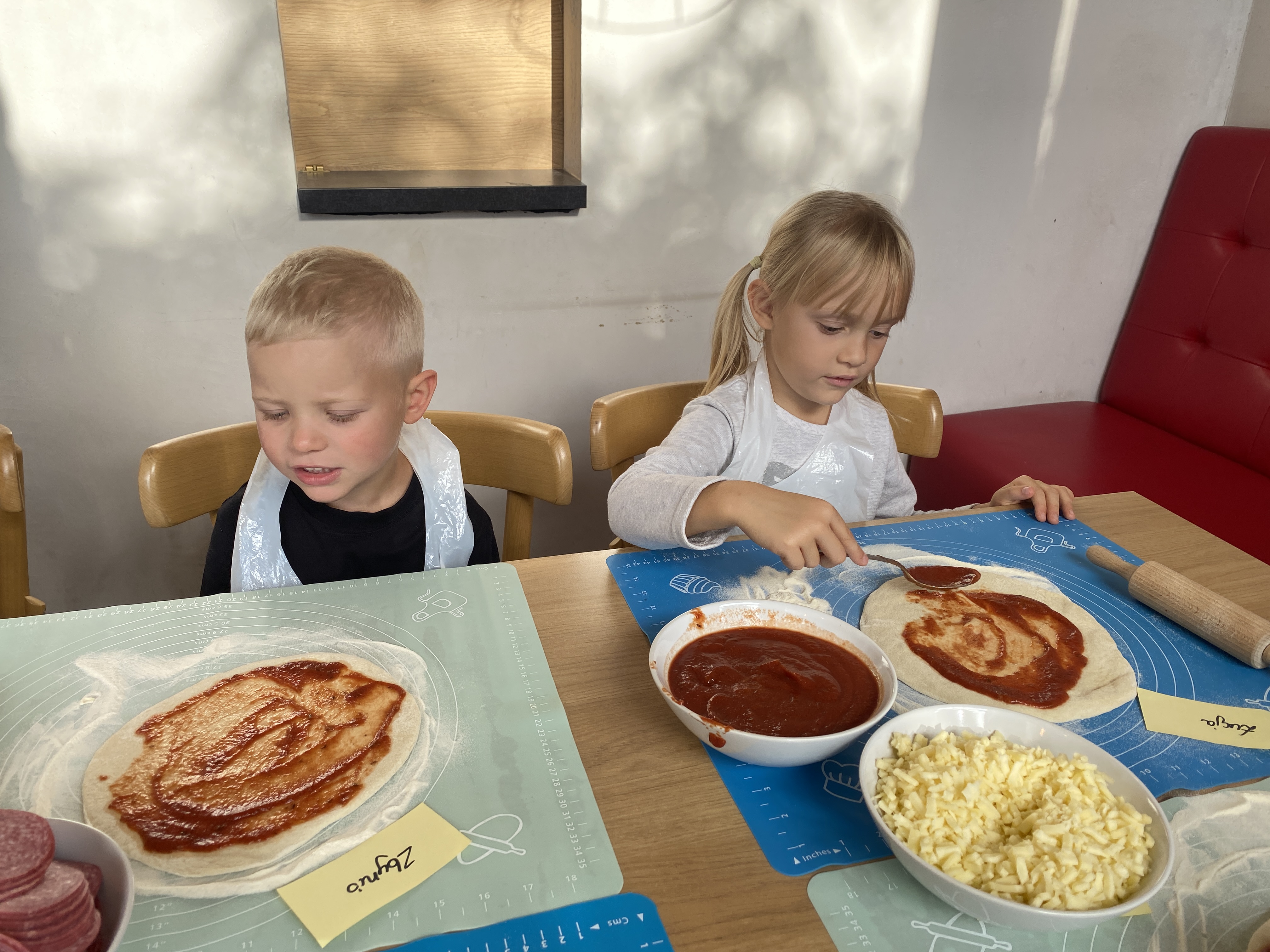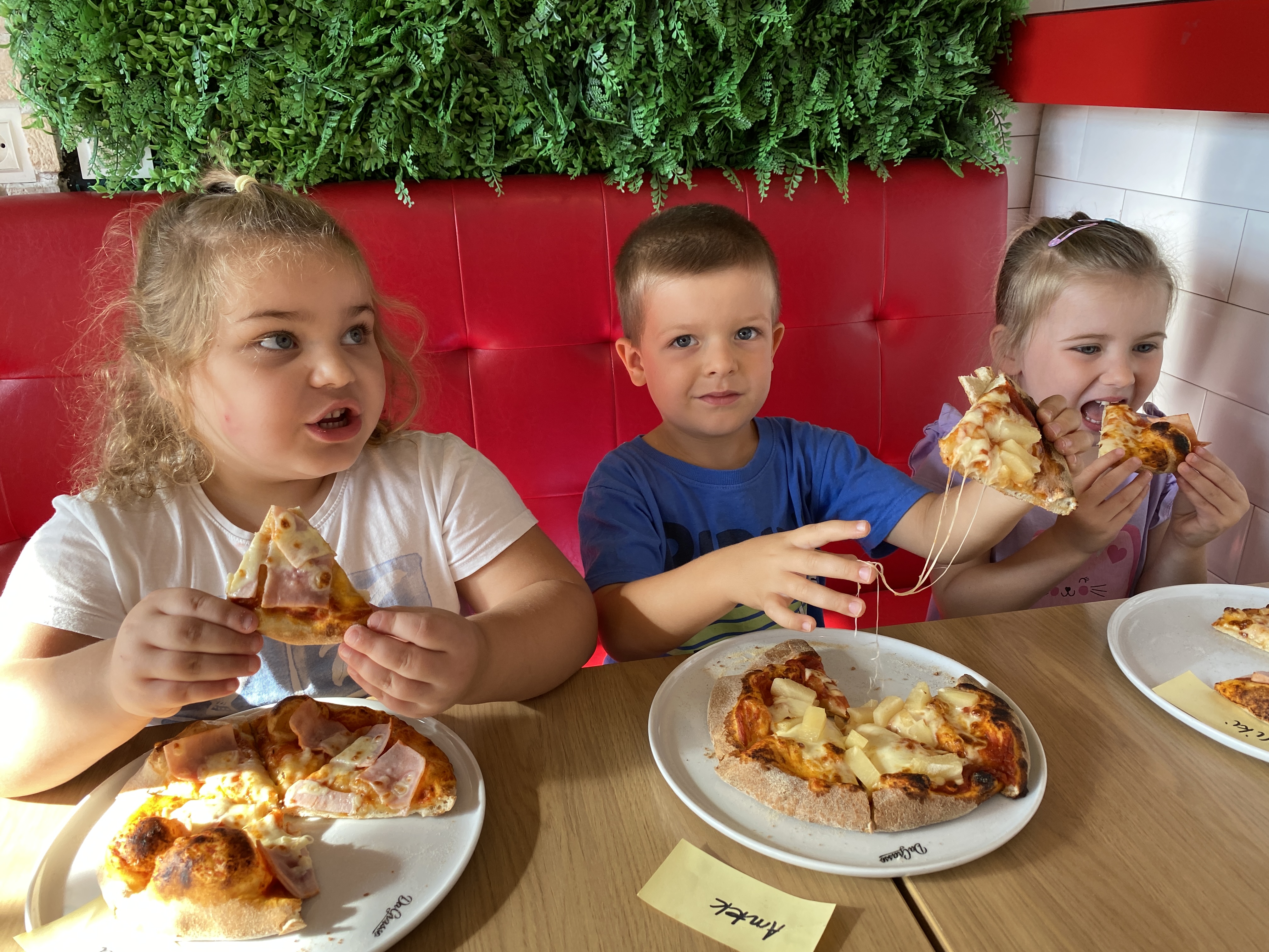 Z okazji Dnia Przedszkolaka Kreciki uczestniczyły w warsztatach kulinarnych w pizzeri DaGrasso. Była to świetna okazja do rozwijania umiejętności manualnych, nauki zasad higieny i pracy zespołowej poprzez tworzenie własnych, wymyślonych przez dzieci pizz. Dzieci wałkowały ciasto, dobierały ulubione składniki i wspólnie degustowały swoje dzieła. Na koniec warsztatów otrzymaliśmy certyfikat zdobytej wiedzy oraz mały upominek. Bardzo nam się podobało.