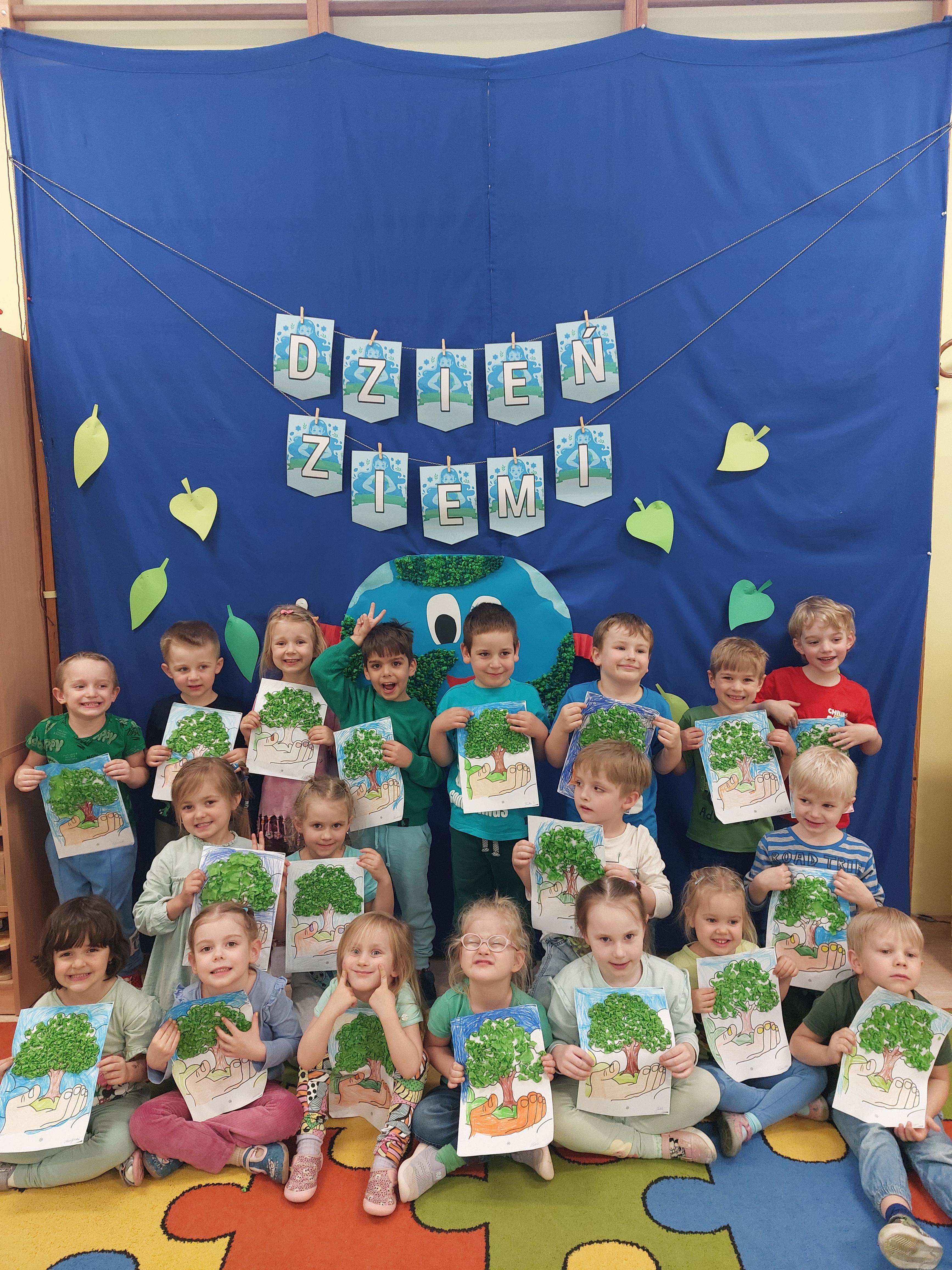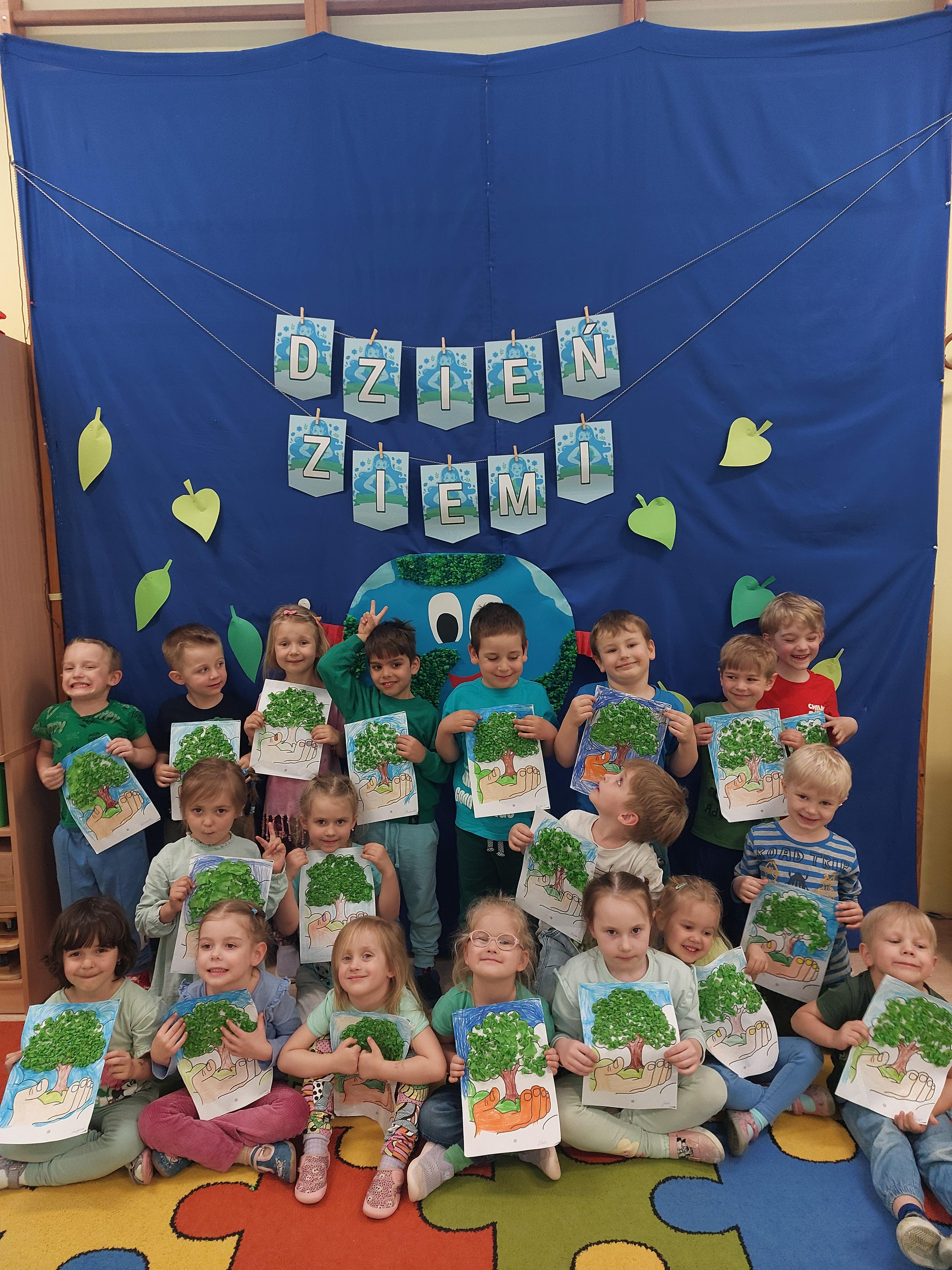 23 kwietnia obchodziliśmy w naszym przedszkolu Dzień Ziemi. Z tej okazji dzieci przyszły ubrane tego dnia w kolorach Ziemi - niebieskim i zielonym. Dzięki wspólnej nauce i zabawie przedszkolaki rozwijały świadomość ekologiczną i troskę o środowisko. Rozmawialiśmy o tym, jak dbać o naszą planetę i stworzyliśmy piękne prace plastyczne.