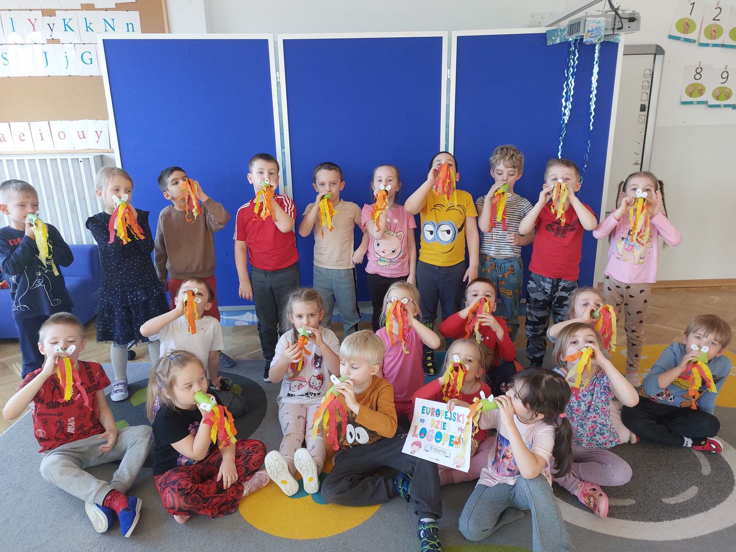 6 marca obchodzimy Europejski Dzień Logopedy. Święto to ma na celu zwiększenie świadomości społecznej na temat zaburzeń mowy oraz podkreślenie istoty profilaktyki logopedycznej. Z tej okazji naszą grupę odwiedziła Pani Agata, nasza przedszkolna logopedka, która przeprowadziła z dziećmi ciekawe zajęcia. Ćwiczyliśmy nasze buzie oraz języki, a także wykonaliśmy papierowe smoki, które są świetną pomocą do ćwiczeń prawidłowego toru oddechowego.