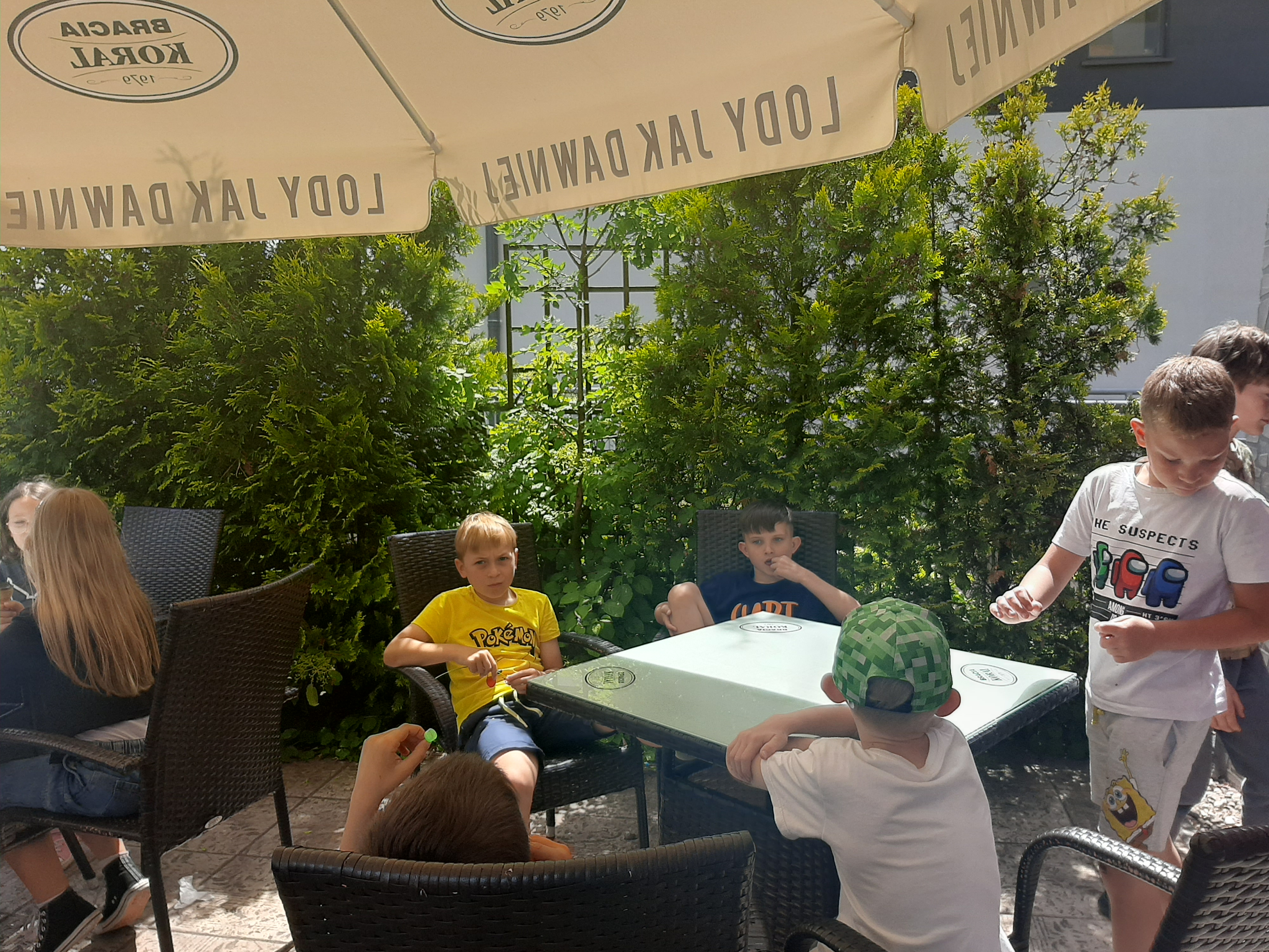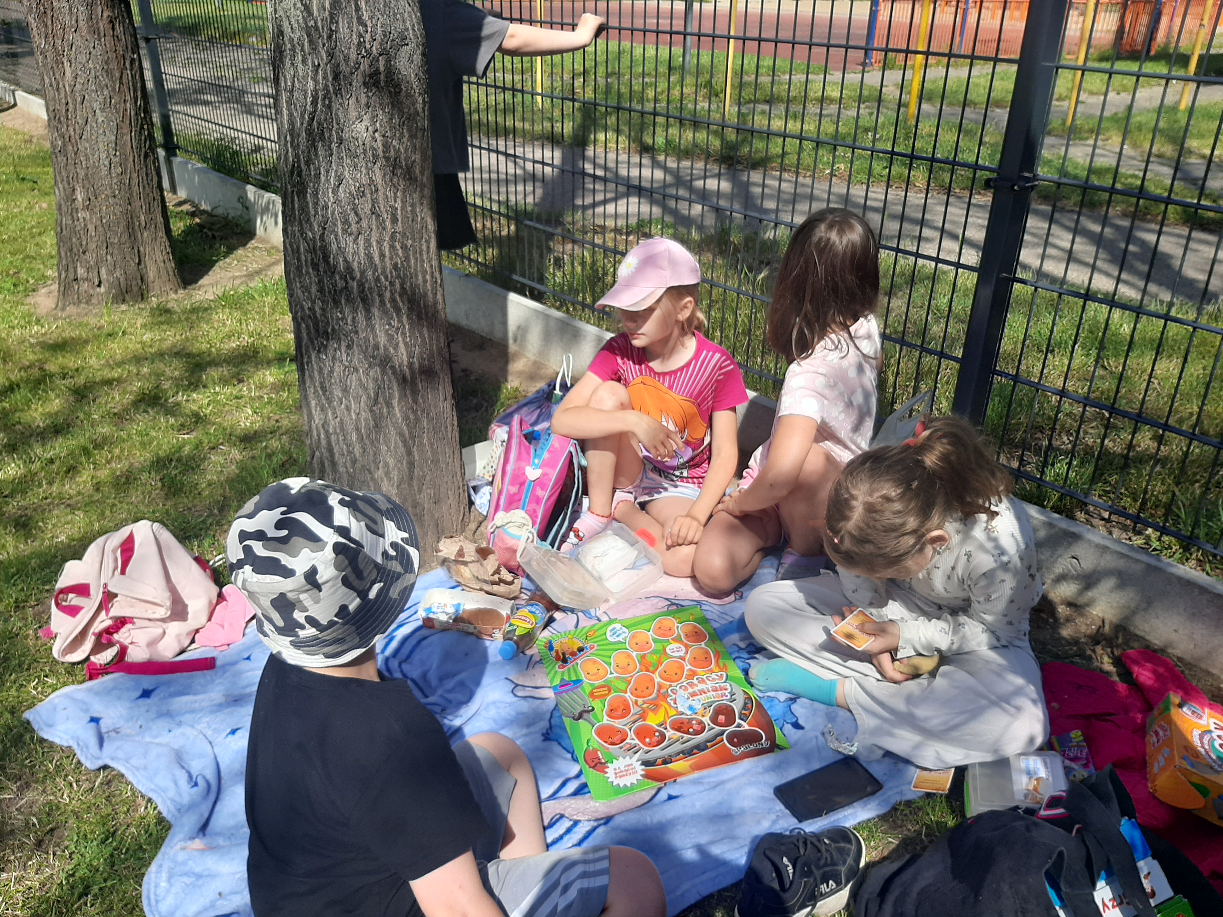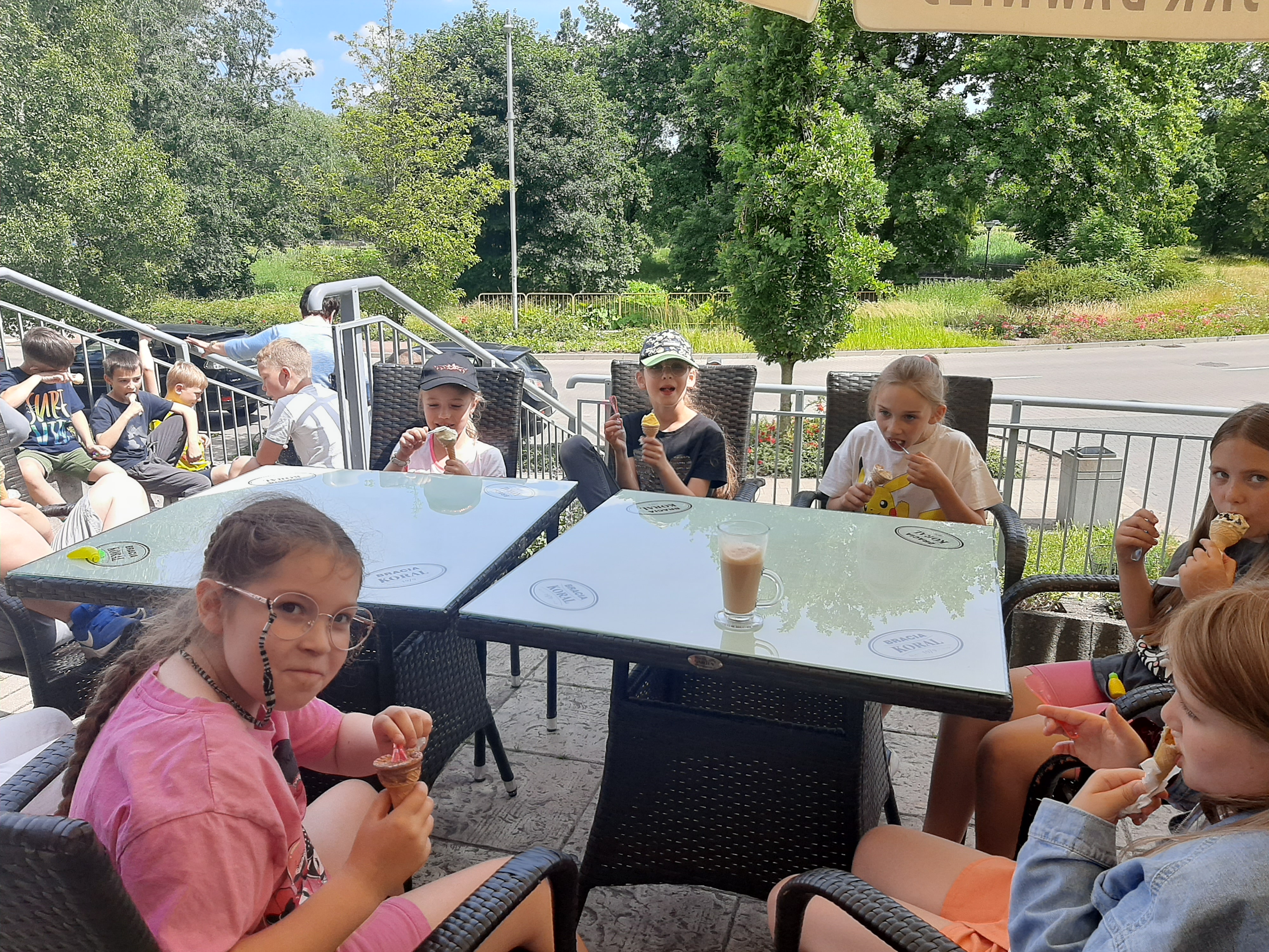 Dużą radość sprawiały dzieciom zabawy integracyjne na świeżym powietrzu, które wspierają rozwój fizyczny i emocjonalny dzieci. Wspólne gry, zawody sportowe oraz zadania zespołowe wzmacniały poczucie wspólnoty i uczyły zasad fair play. Uczniowie mieli także okazję wyjść wspólnie na lody. Dzięki takim aktywnościom uczniowie z radością spędzali czas razem, ucząc się współpracy i wzajemnego szacunku. Po miesiącach nauki, wspólnych wyzwań i zabawy, dzieci z uśmiechem zakończyły rok szkolny odbierając świadectwa, dyplomy i nagrody.