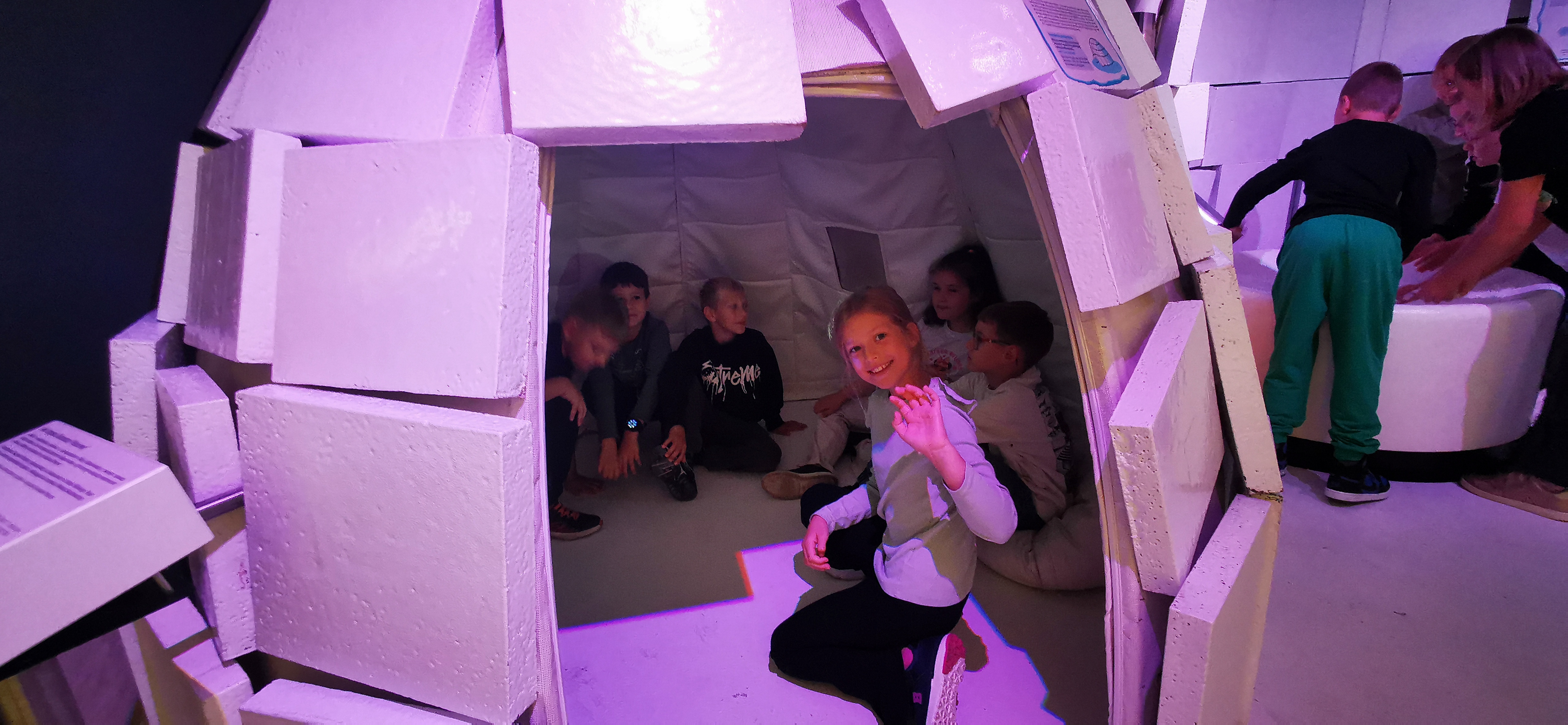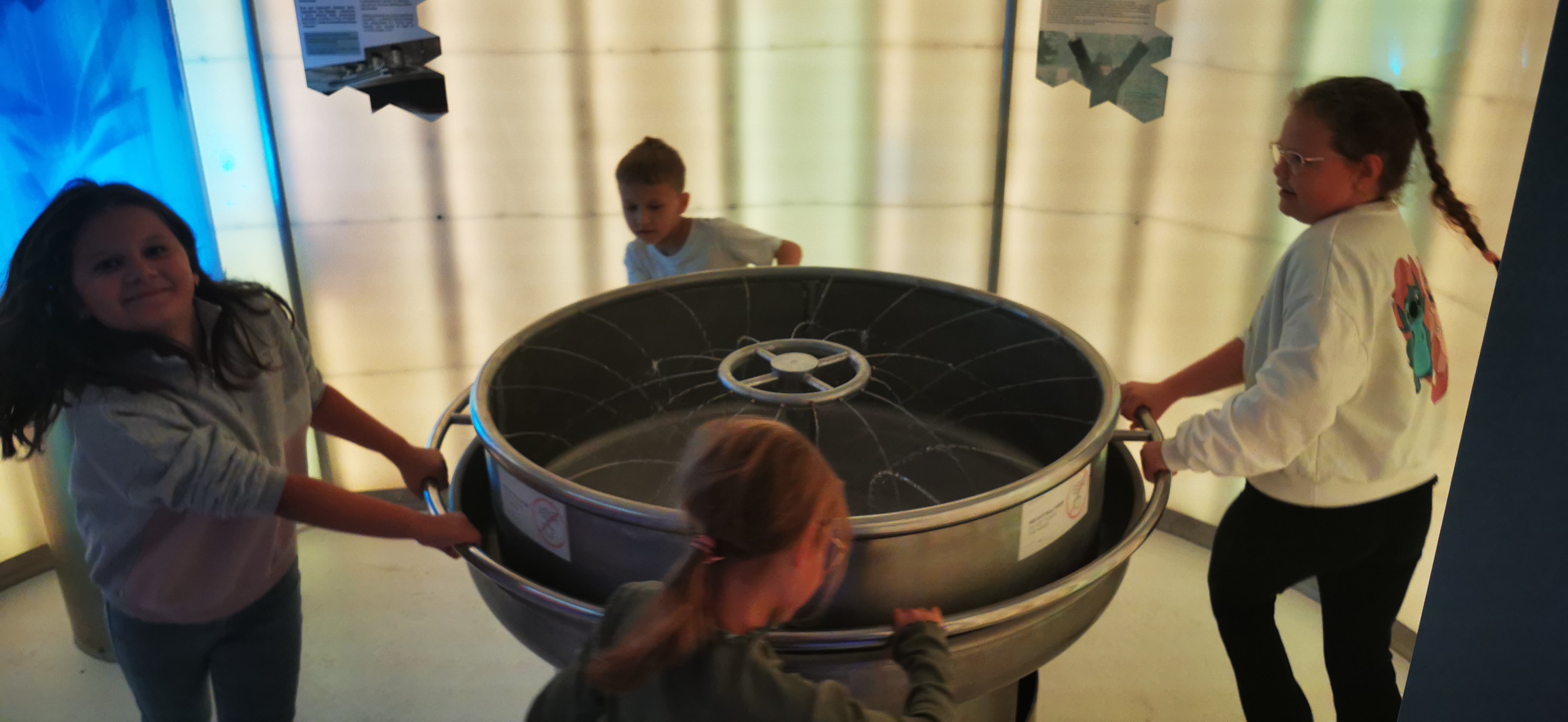 Miejsce to w niezwykły sposób łączy naukę z zabawą. Zwiedziliśmy interaktywną wystawę ,,Dookoła świata". Trzecioklasiści byli zachwyceni mnogością eksponatów, które wyjaśniały wiele zjawisk przyrodniczych, atmosferycznych. Uczniowie mogli poprzez wszystkie zmysły dostrzec piękno otaczającego świata oraz poznać ciekawostki naszej planety.