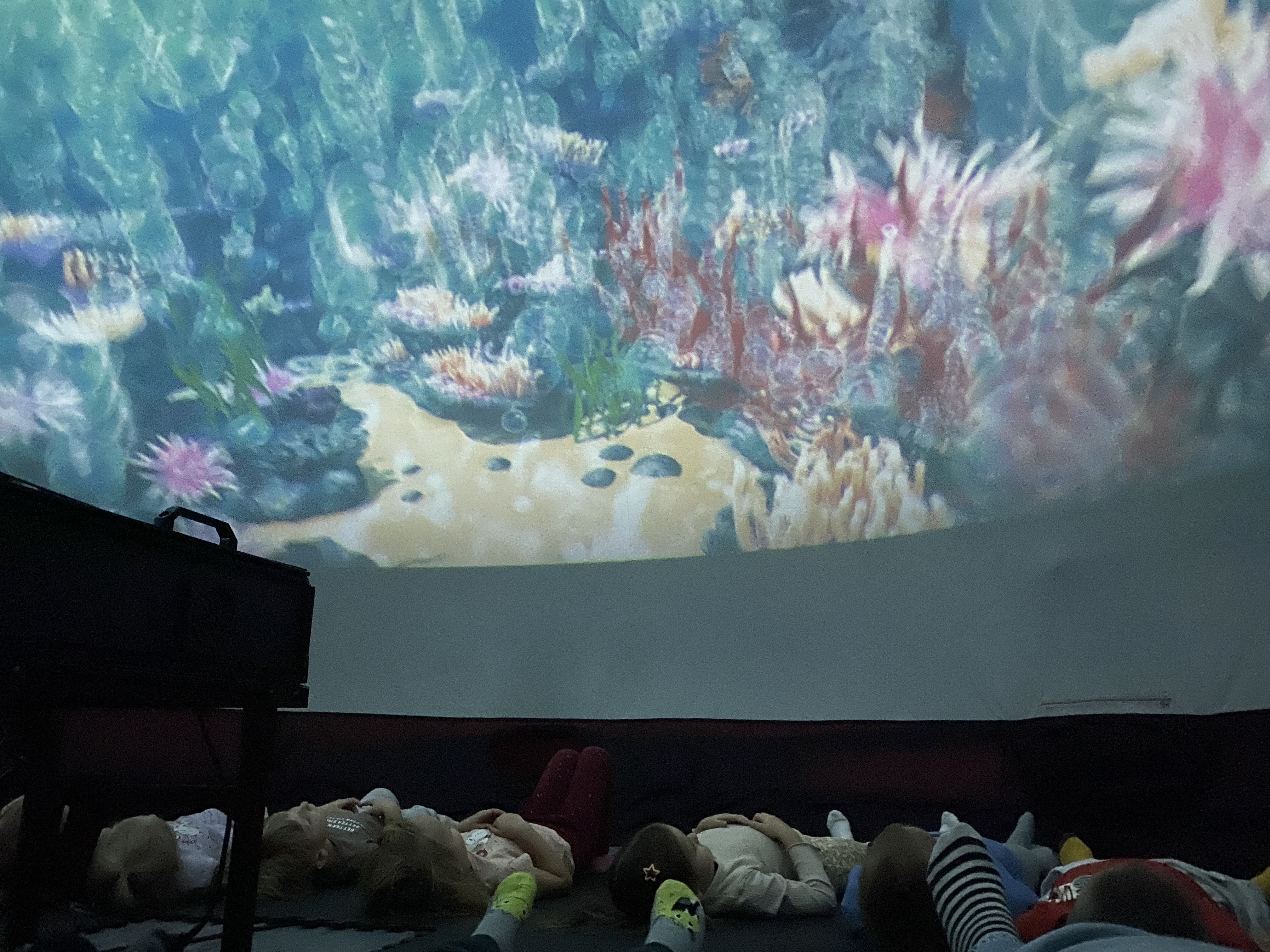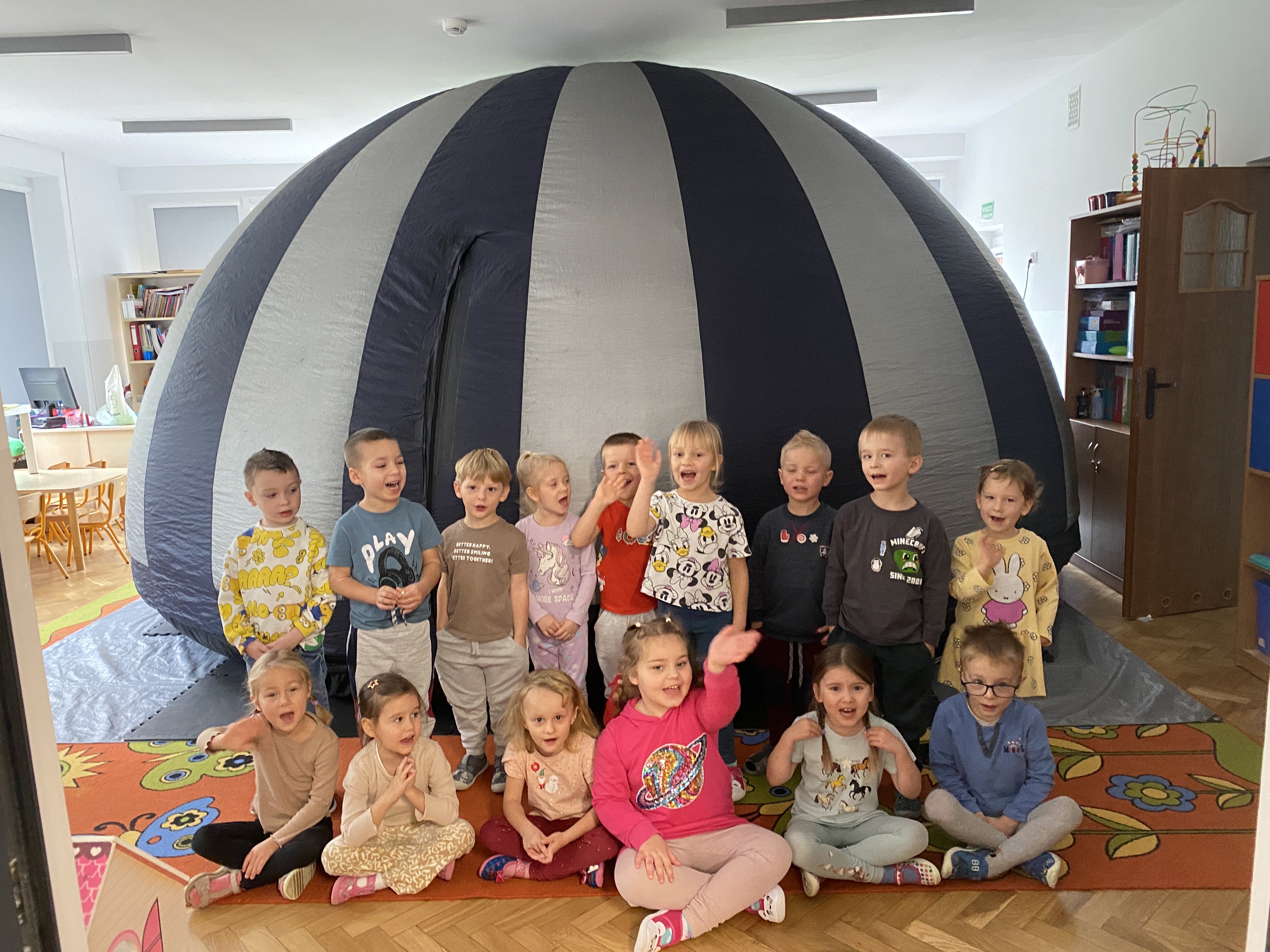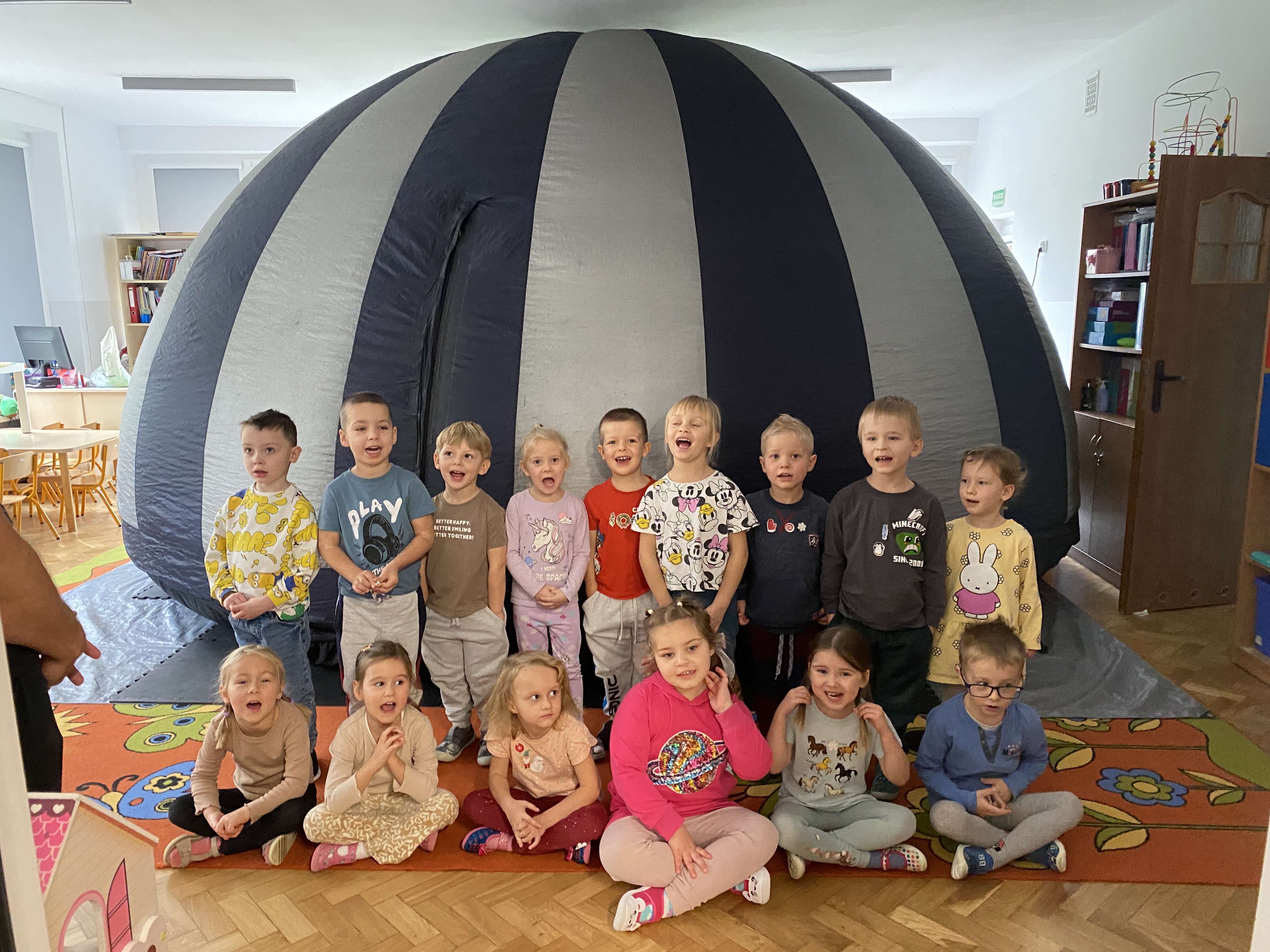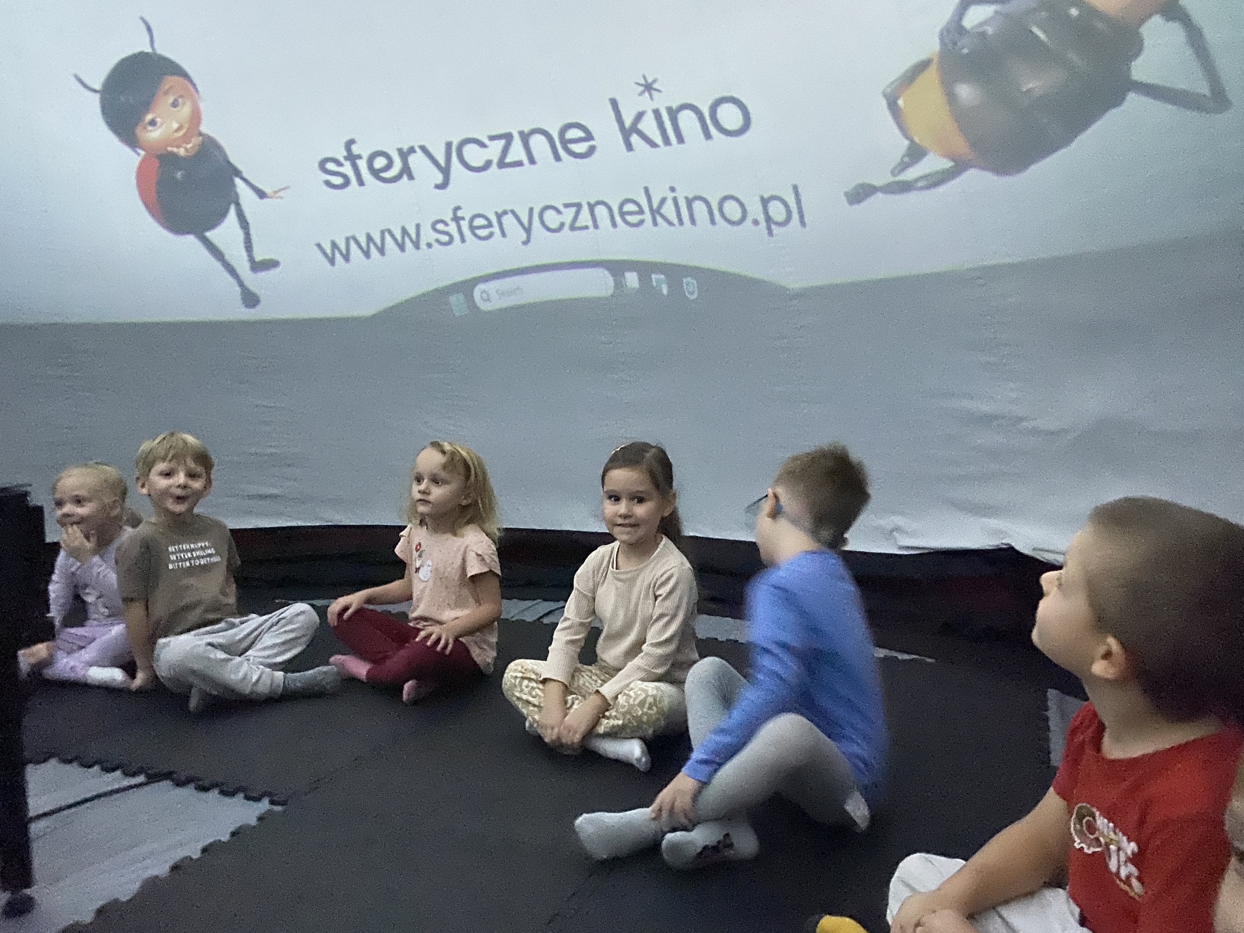 28 listopada nasze przedszkole odwiedziło kino sferyczme. Dzieci miały okazję wejść do specjalnej kopuły projekcyjnej i obejrzeć bajkę o fascynującym podwodnym świecie. Przedszkolaki z zaciekawieniem obserwowały morskie stworzenia, zanurzały się w kolorowe rafy i przeżywały niezwykłą przygodę „w głębinach oceanu”. To była wspaniała, angażująca i pełna emocji podróż, która dostarczyła dzieciom wielu wrażeń i pobudziła ich wyobraźnię. Następnie dzieci przeniosły się do wioski Świętego Mikołaja i mogły podziwiać śnieżne krajobrazy. To doświadczenie z pewnością na długo zostanie w ich pamięci!