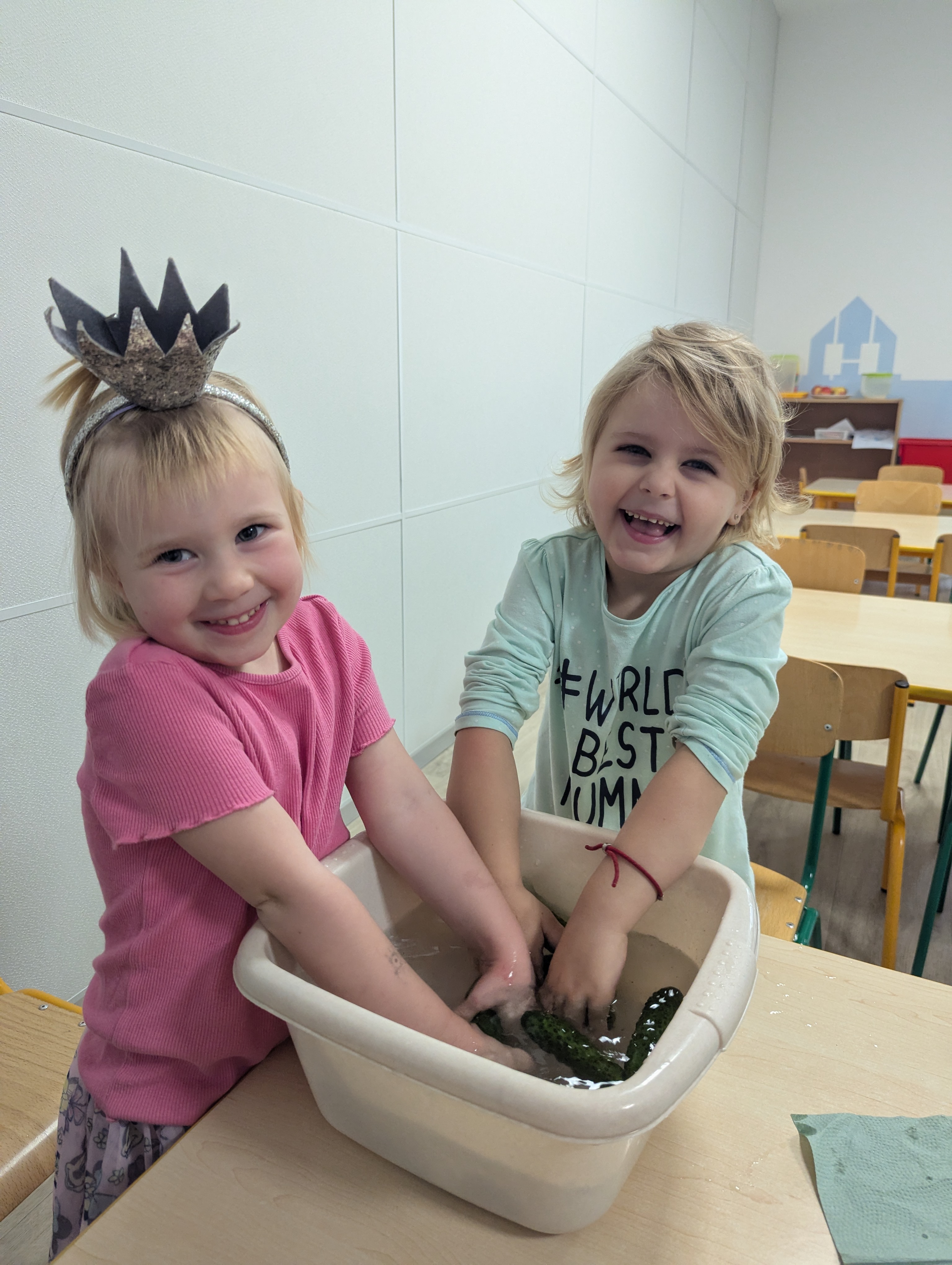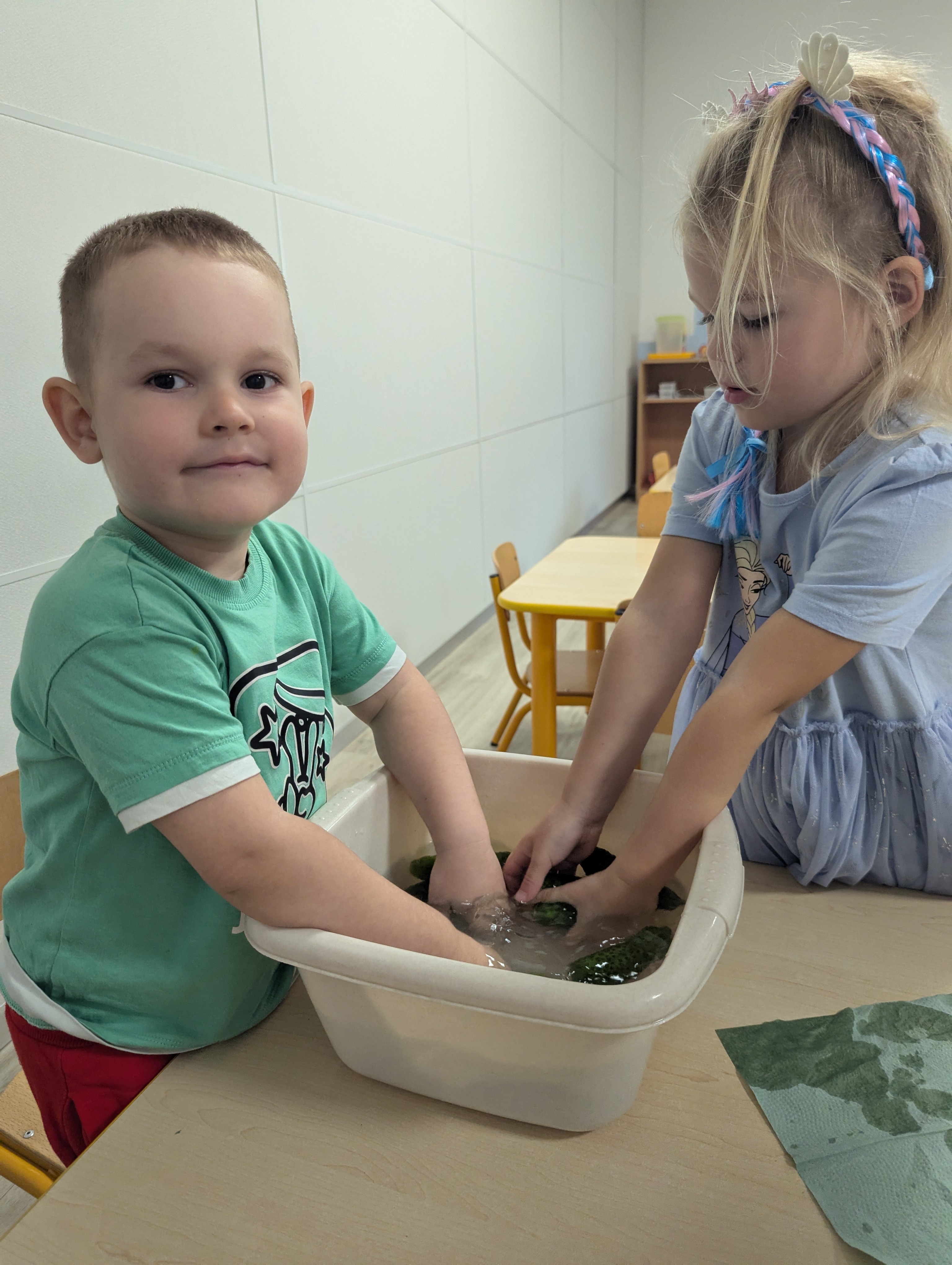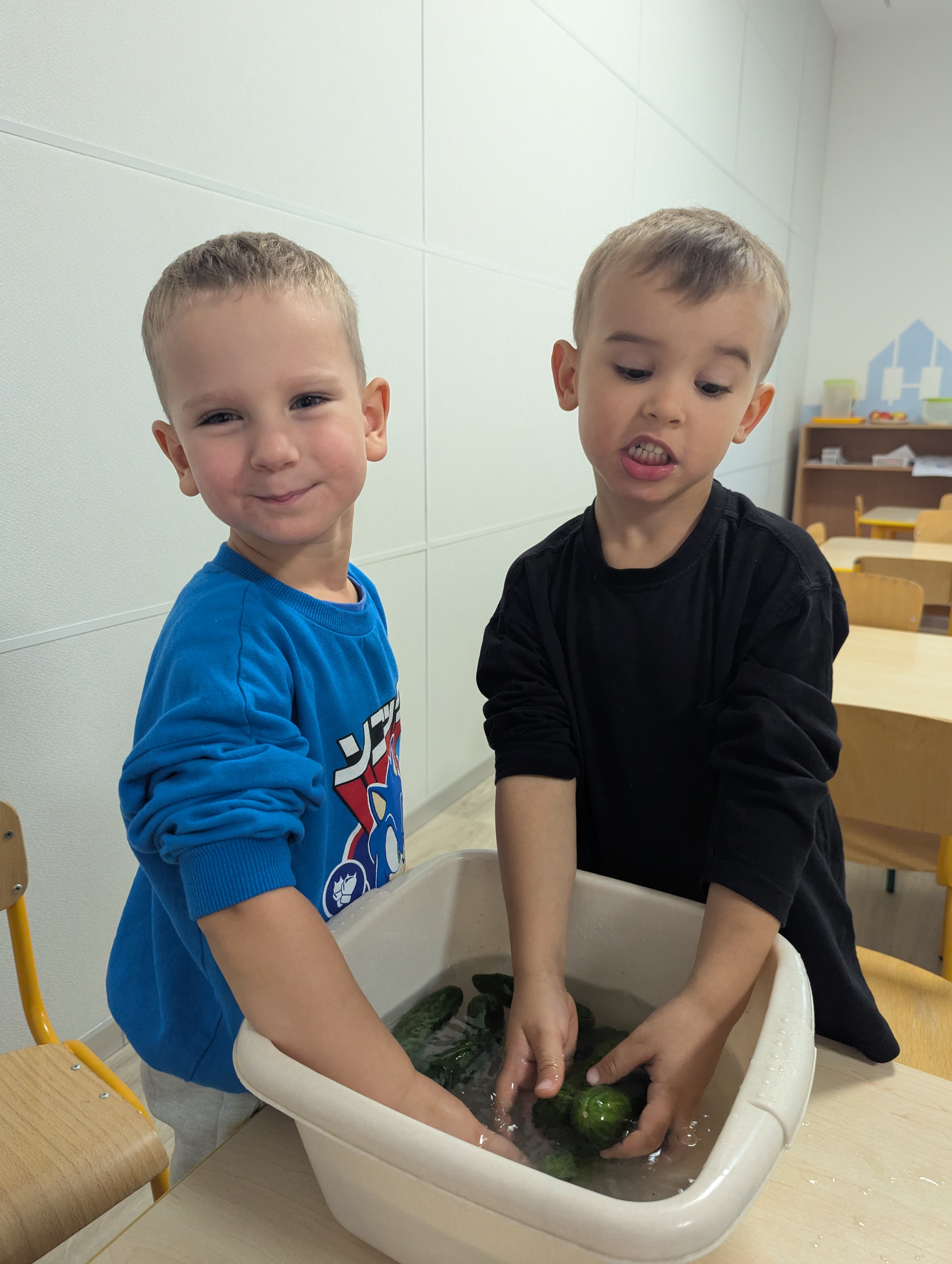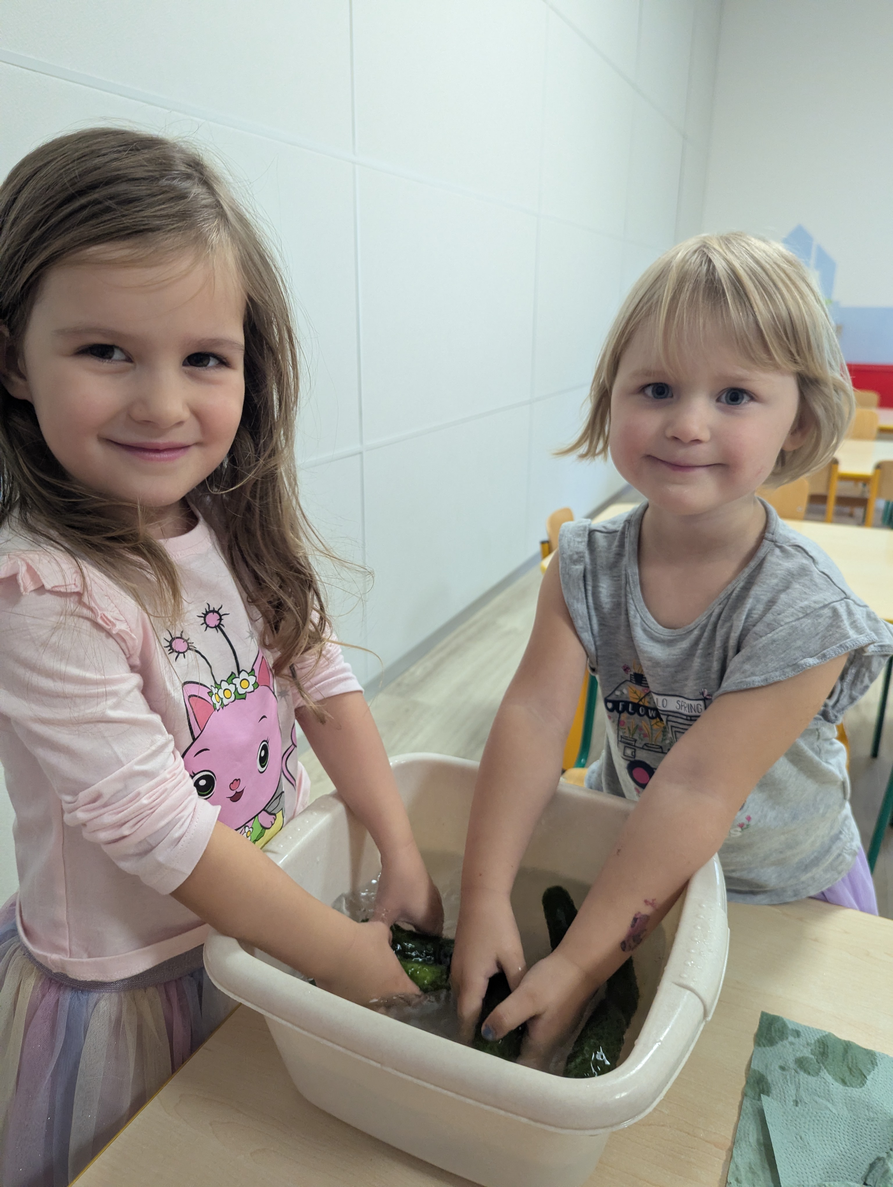 Dzieci poznały cały proces przygotowywania ogórków do kiszenia – od dokładnego mycia, przez dodawanie aromatycznych przypraw, aż po staranne włożenie ich do słoików. Każdy miał swój ważny udział, a uśmiechy towarzyszyły nam na każdym etapie pracy.
