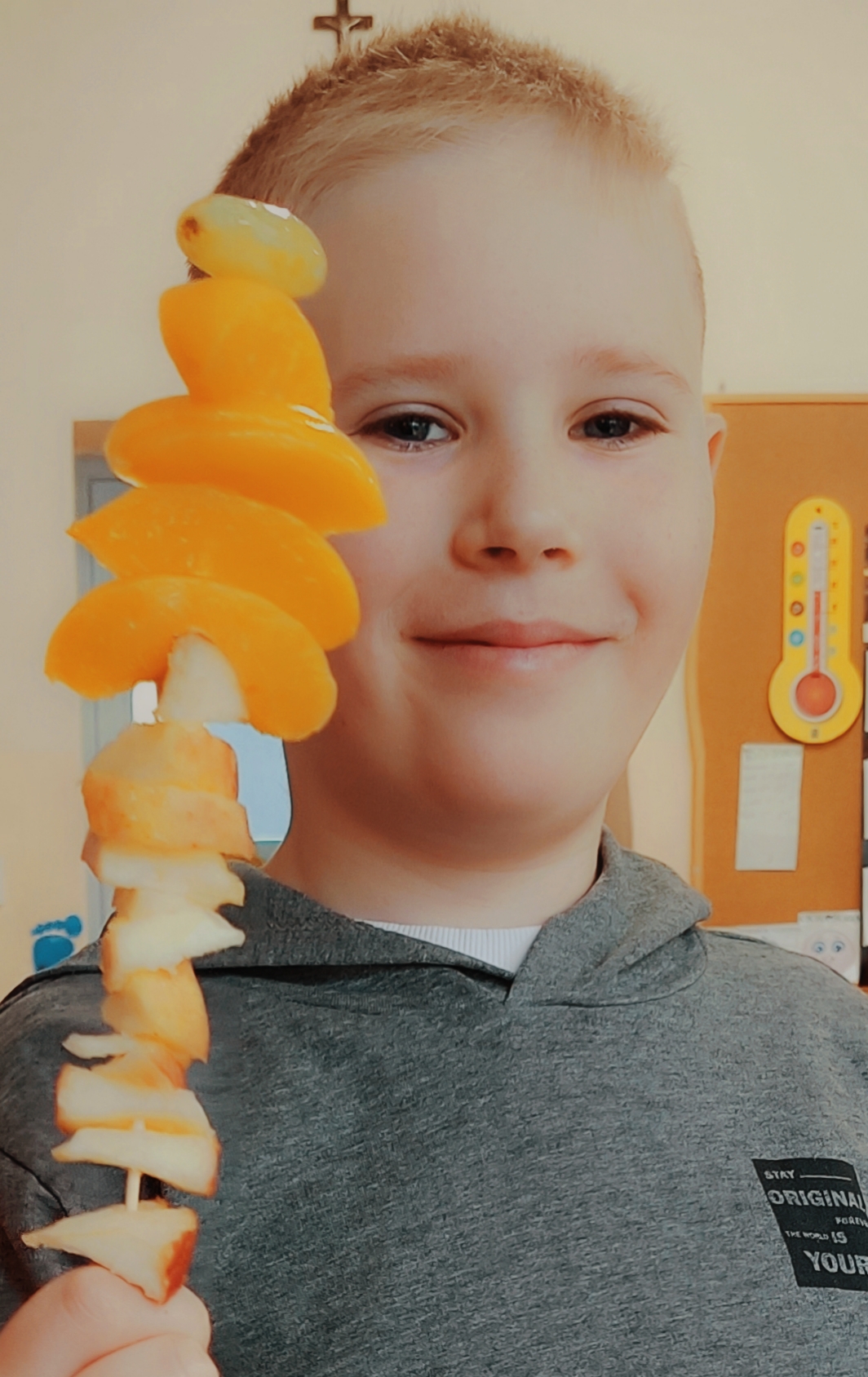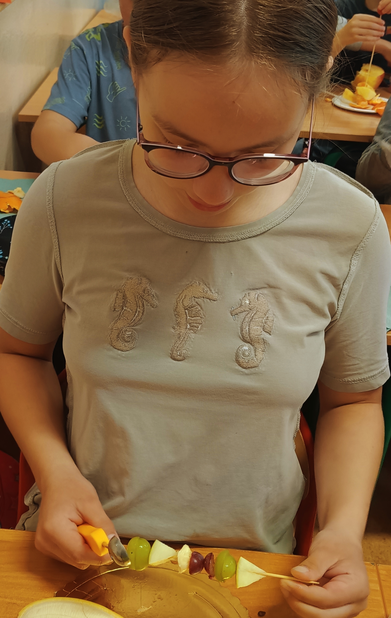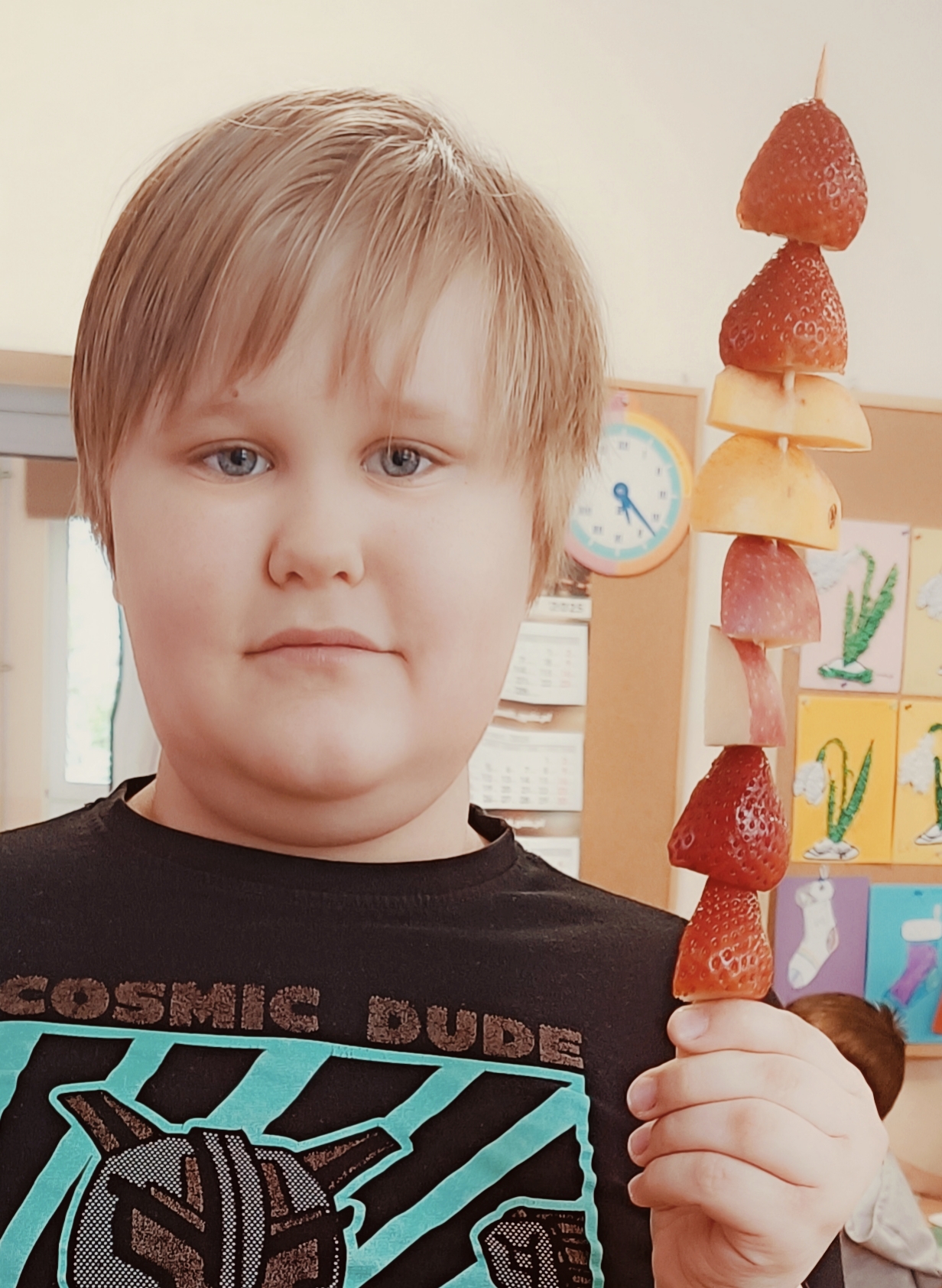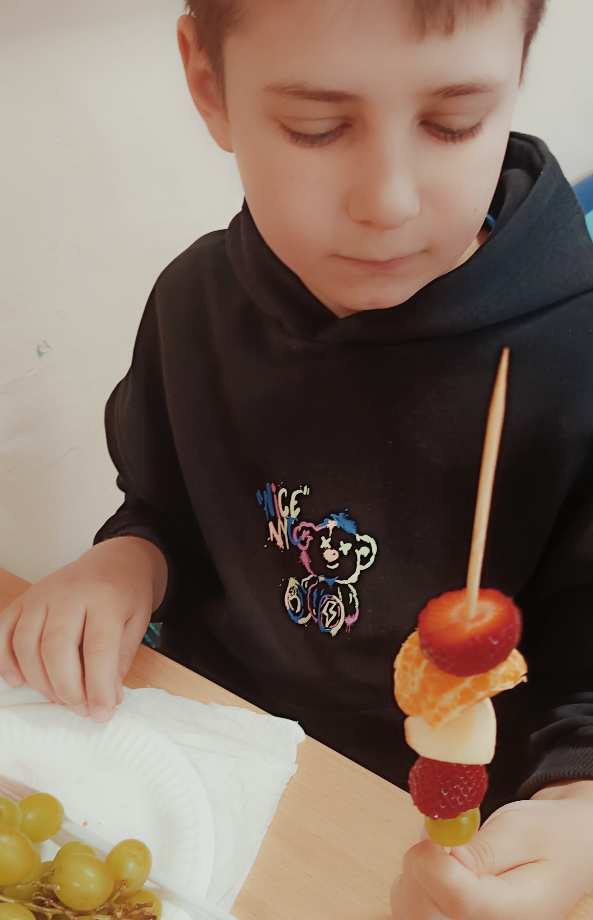 Uczniowie wzięli udział w wyjątkowych zajęciach kulinarnych, podczas których przygotowywali zdrowe i kolorowe szaszłyki owocowe. Dzieci samodzielnie dobierały owoce, kroiły je na kawałki i układały na patyczkach, tworząc pyszne, pełne witamin przekąski.
