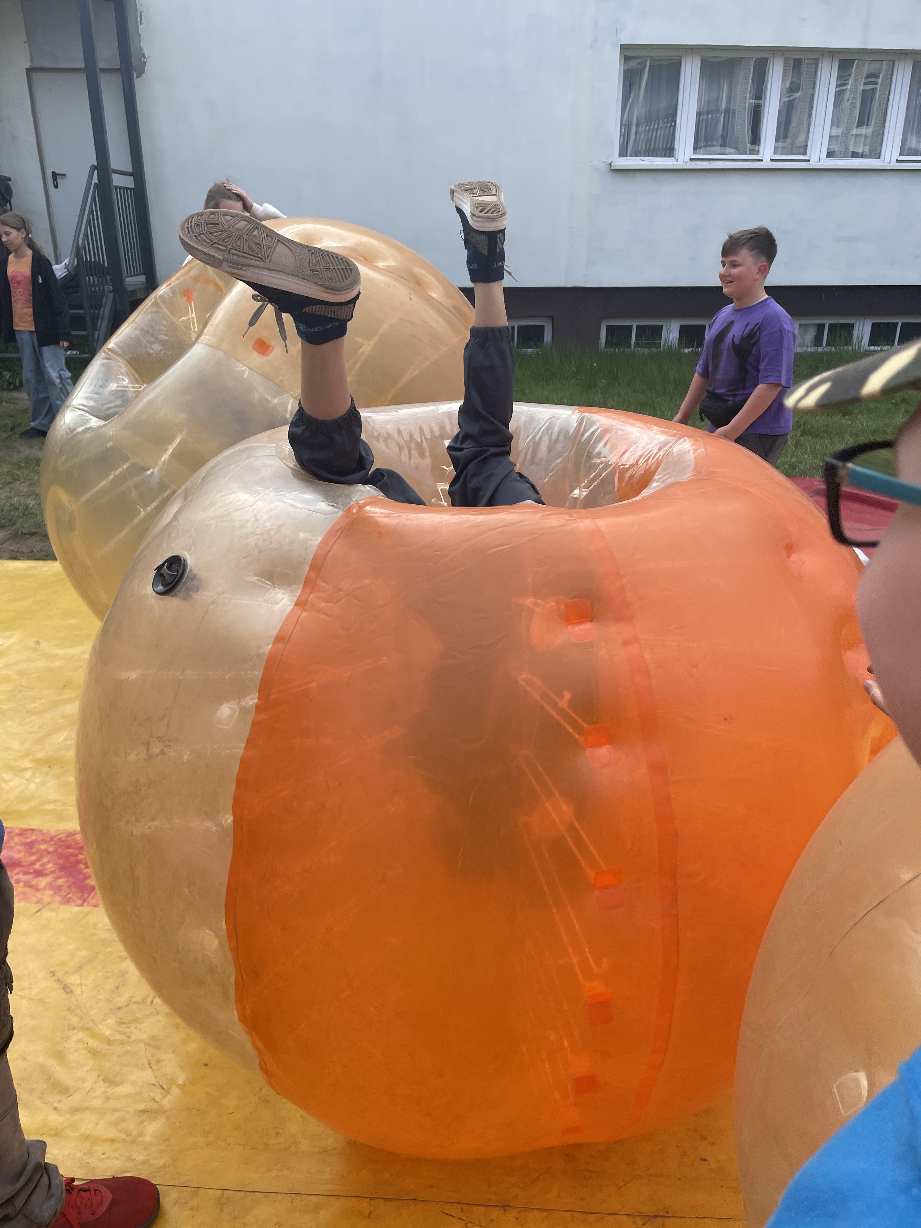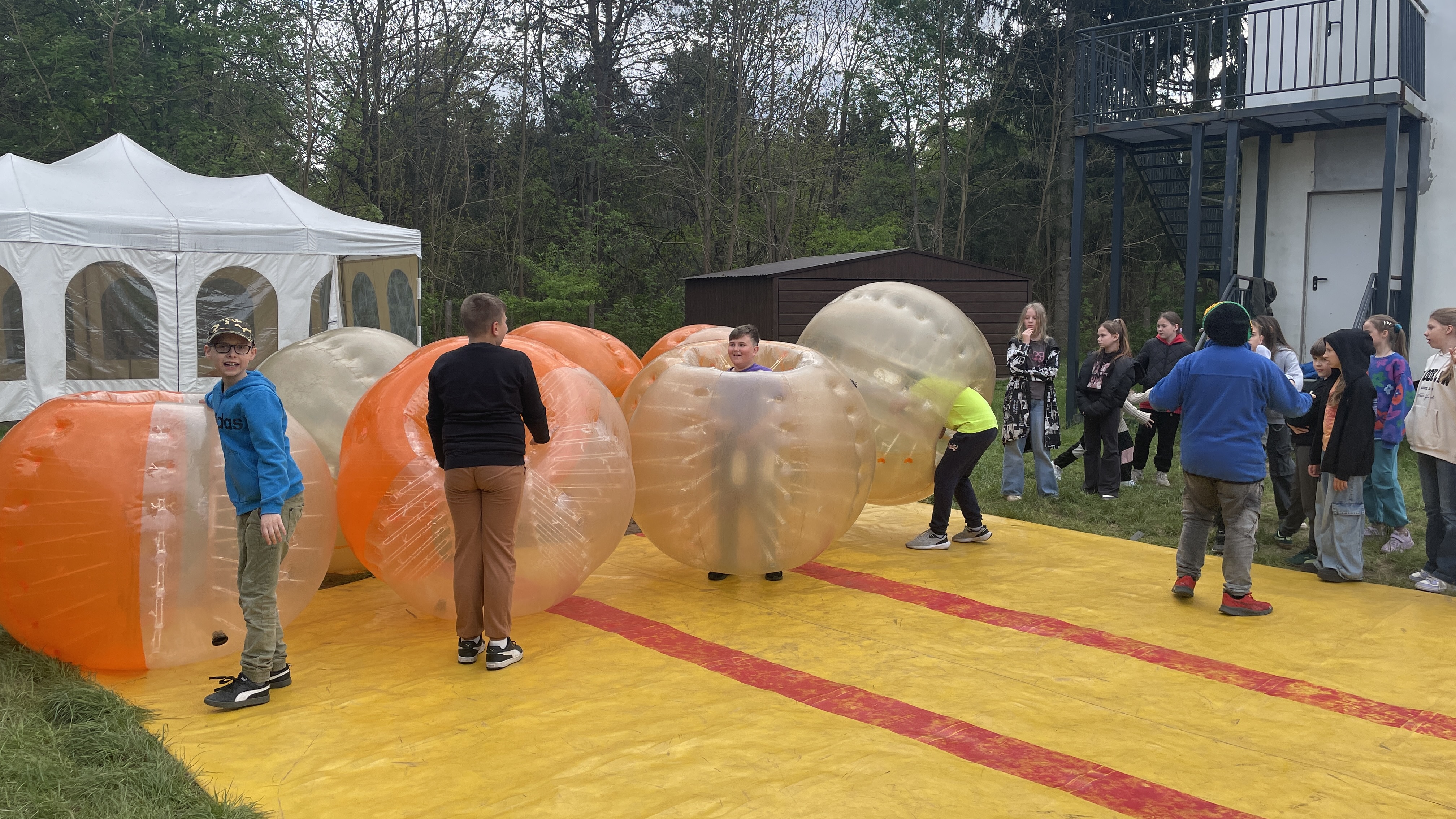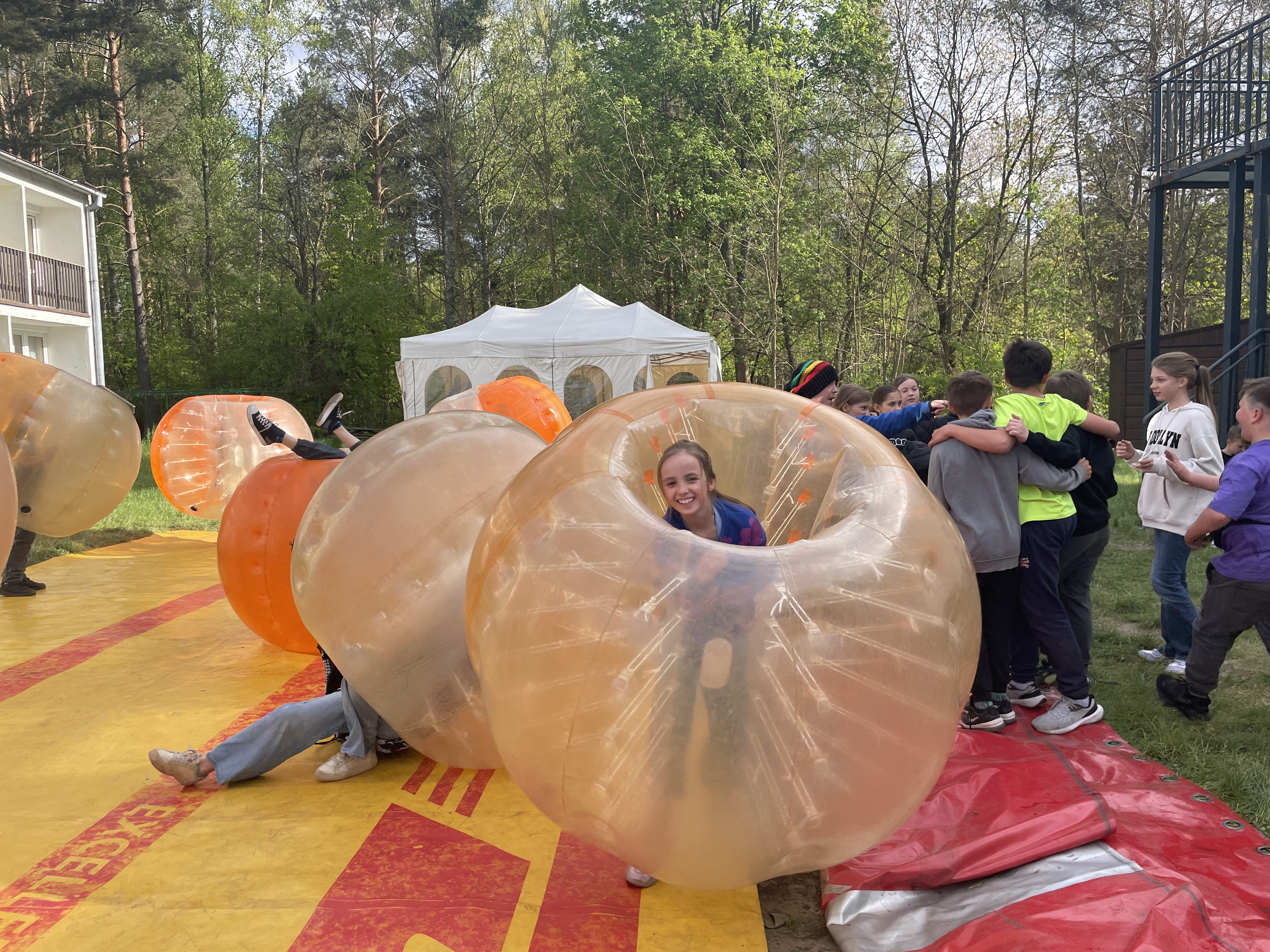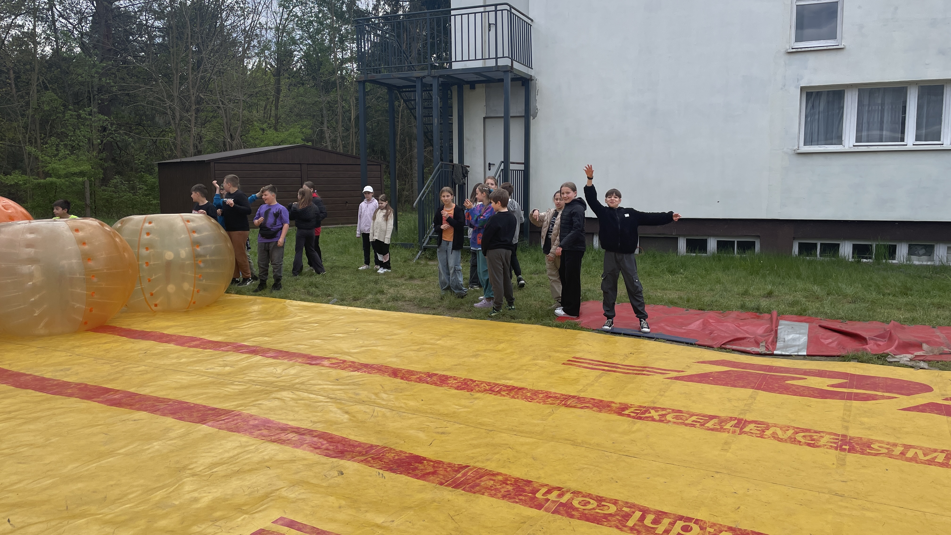 Każdy dzień wypełniony był intensywnymi zajęciami sportowymi i integracyjnymi. Dzieci miały okazję spróbować swoich sił w tenisie ziemnym, siatkówce, koszykówce oraz ping-pongu, co dostarczyło im wiele pozytywnych emocji. Dużym zainteresowaniem cieszyły się bumper ball'e, czyli zabawa w nadmuchiwanych kulach. Wieczorem udaliśmy się na podchody z zadaniami, w których kluczową rolę odegrało jajko, które należało w całości donieść do ośrodka - niestety nam się nie udało. Budowały one ducha zespołu i zapewniały sporą dawkę wieczornych i leśnych emocji.
