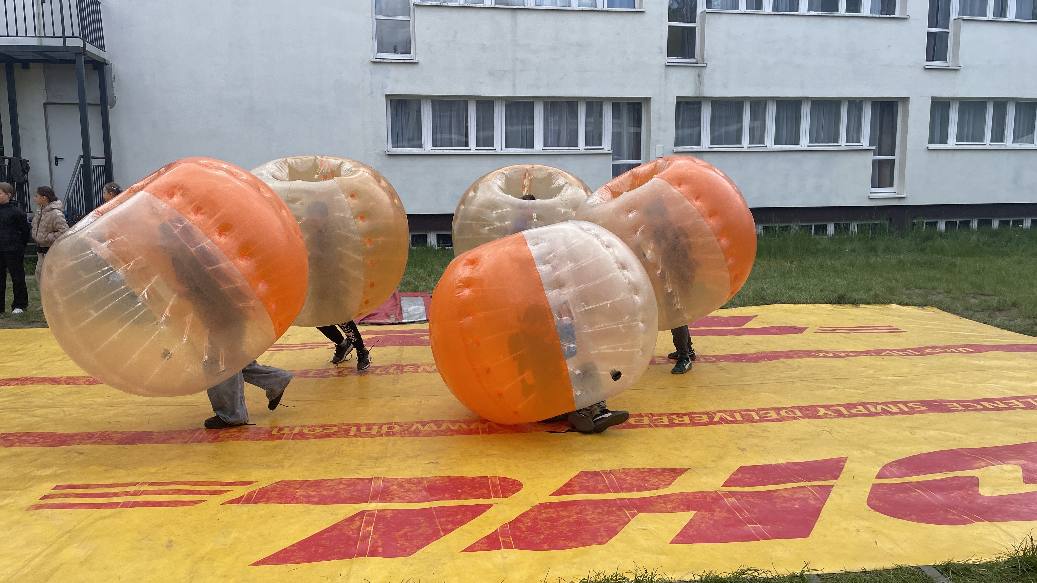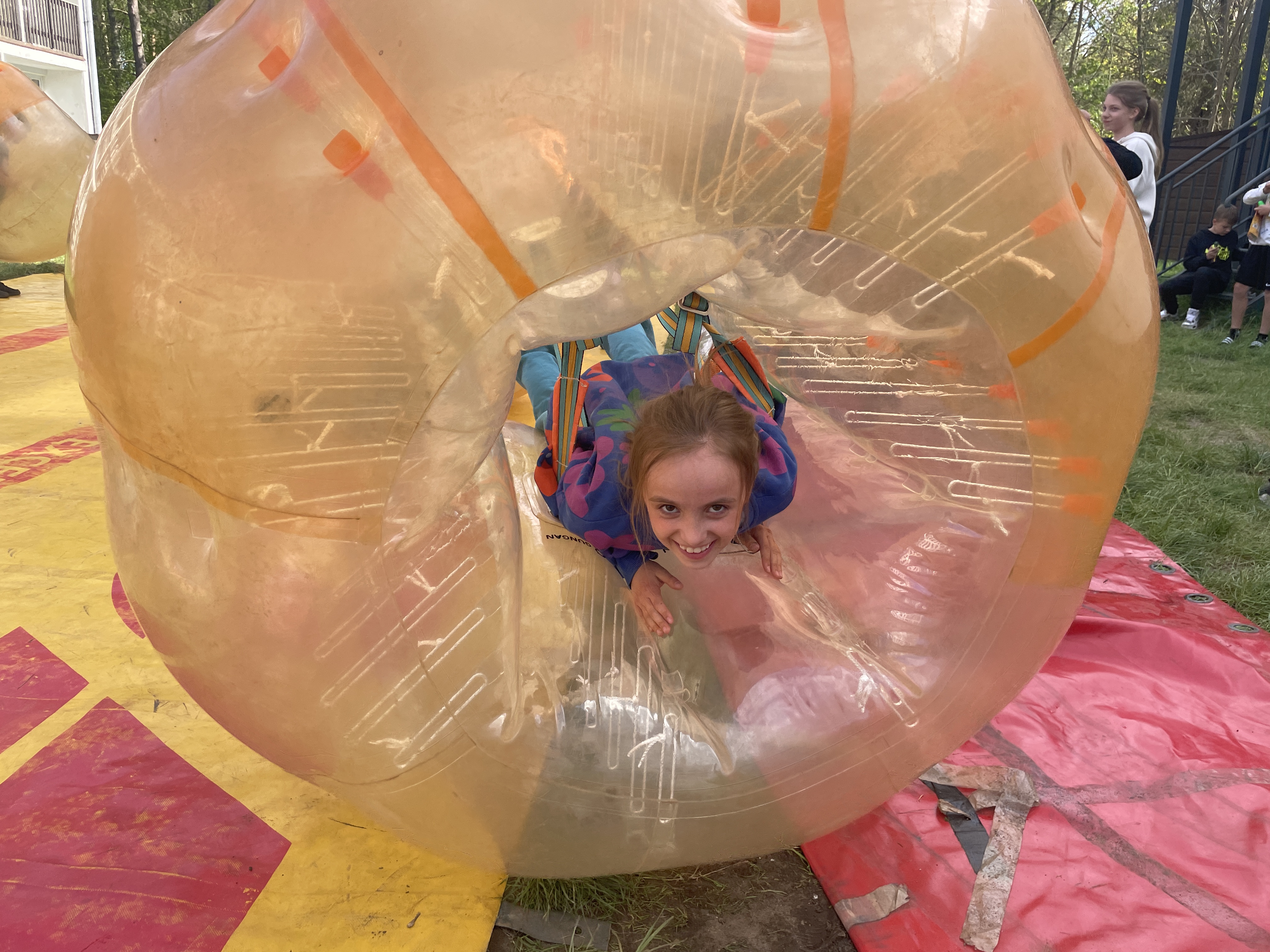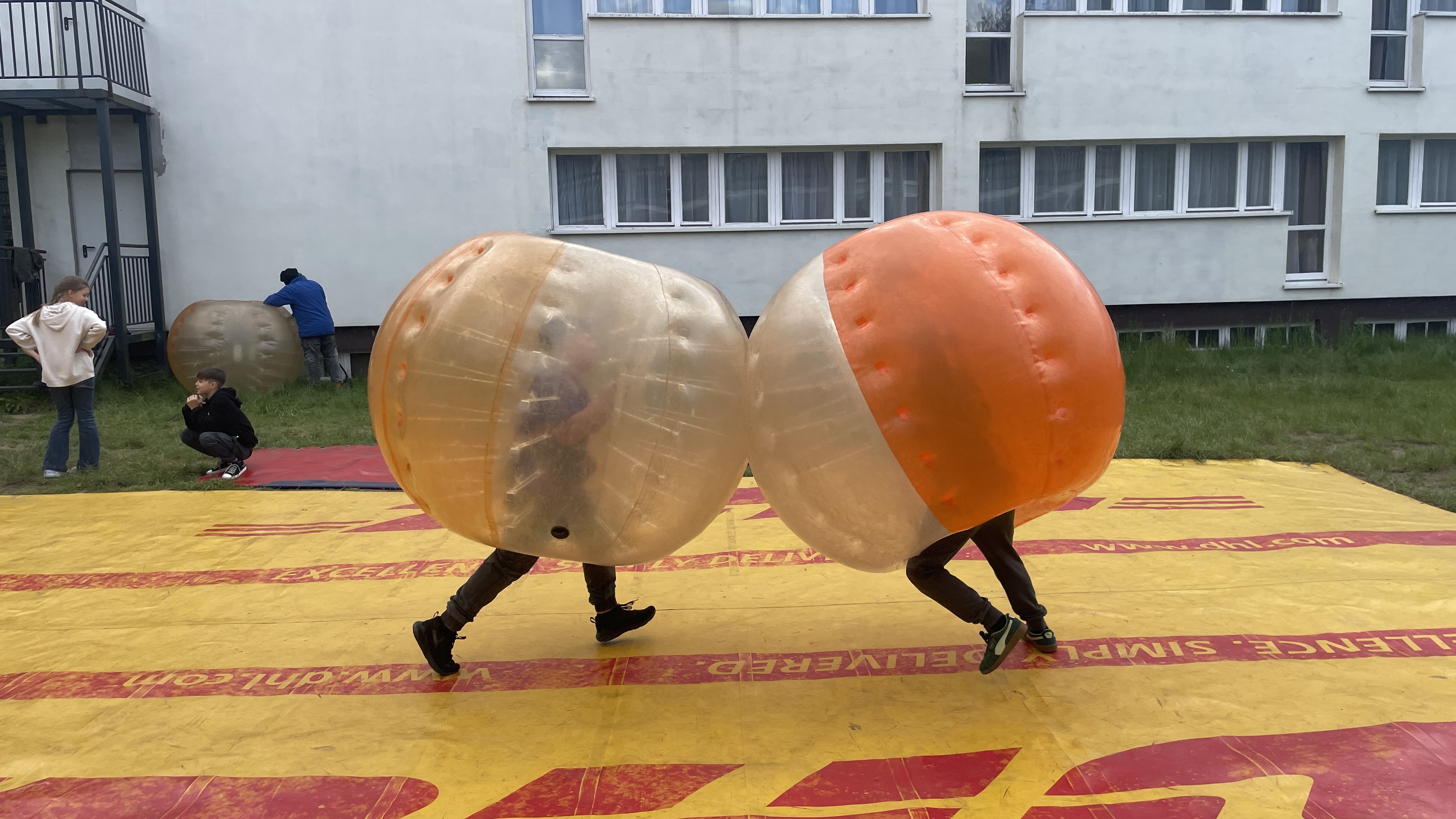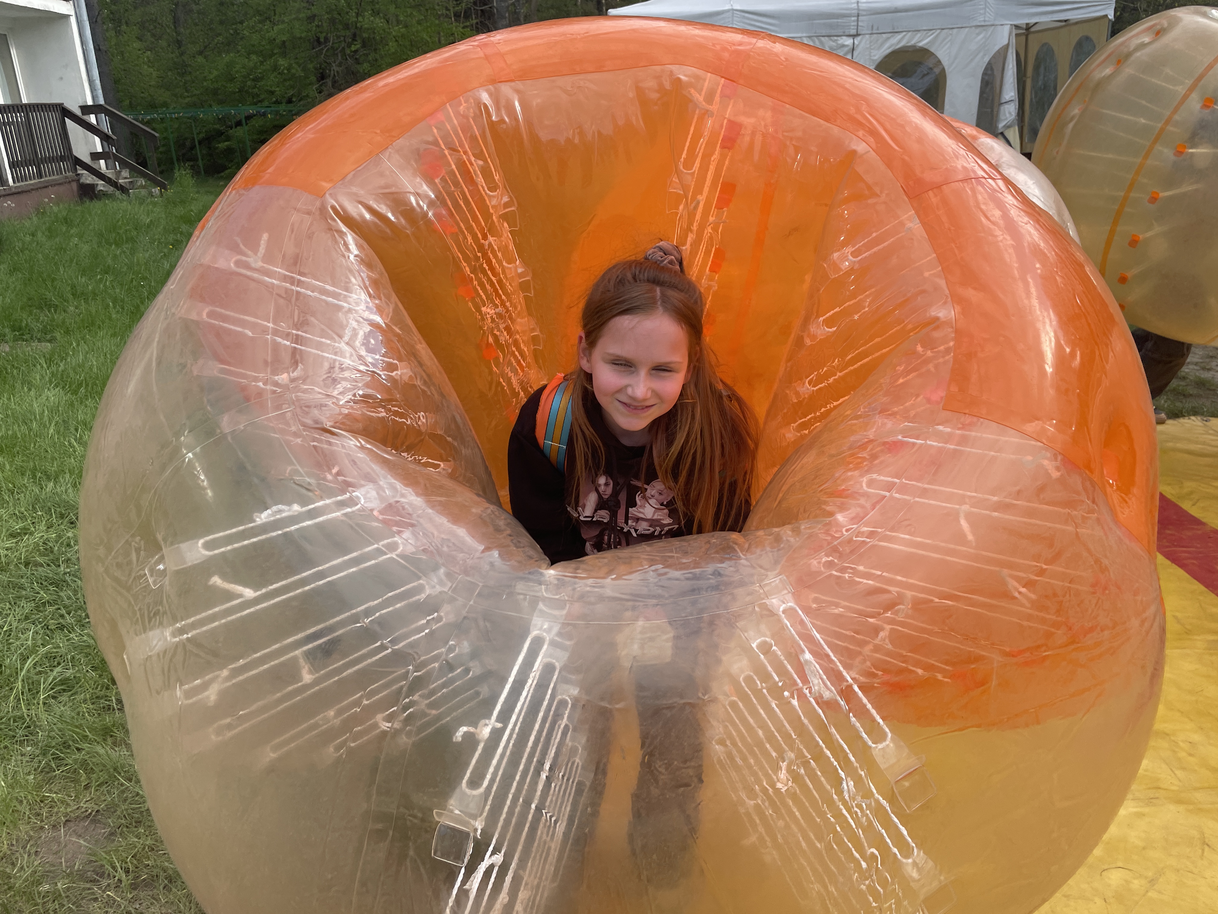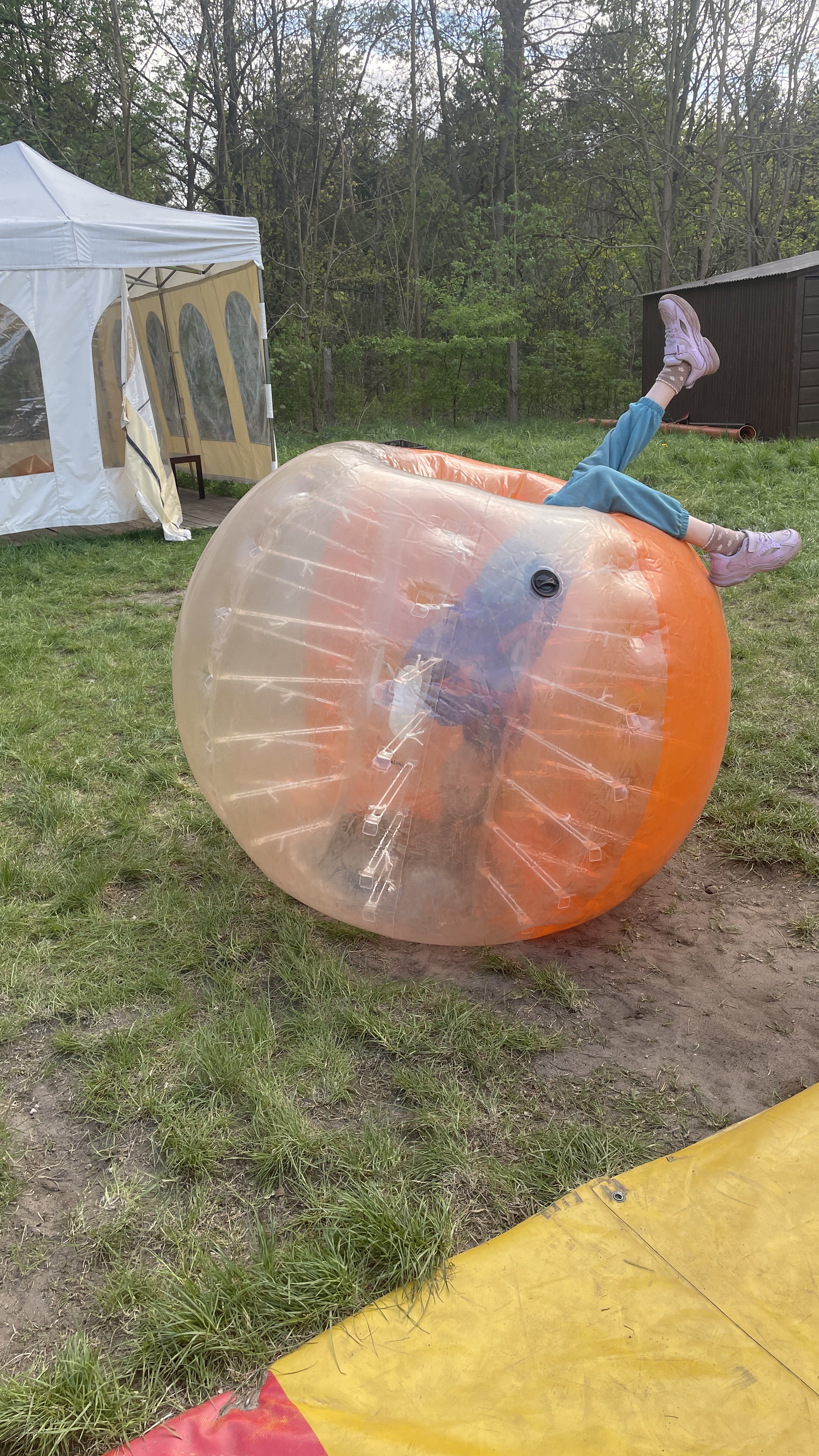 Każdy dzień wypełniony był intensywnymi zajęciami sportowymi i integracyjnymi. Dzieci miały okazję spróbować swoich sił w tenisie ziemnym, siatkówce, koszykówce oraz ping-pongu, co dostarczyło im wiele pozytywnych emocji. Dużym zainteresowaniem cieszyły się bumper ball'e, czyli zabawa w nadmuchiwanych kulach. Wieczorem udaliśmy się na podchody z zadaniami, w których kluczową rolę odegrało jajko, które należało w całości donieść do ośrodka - niestety nam się nie udało. Budowały one ducha zespołu i zapewniały sporą dawkę wieczornych i leśnych emocji.