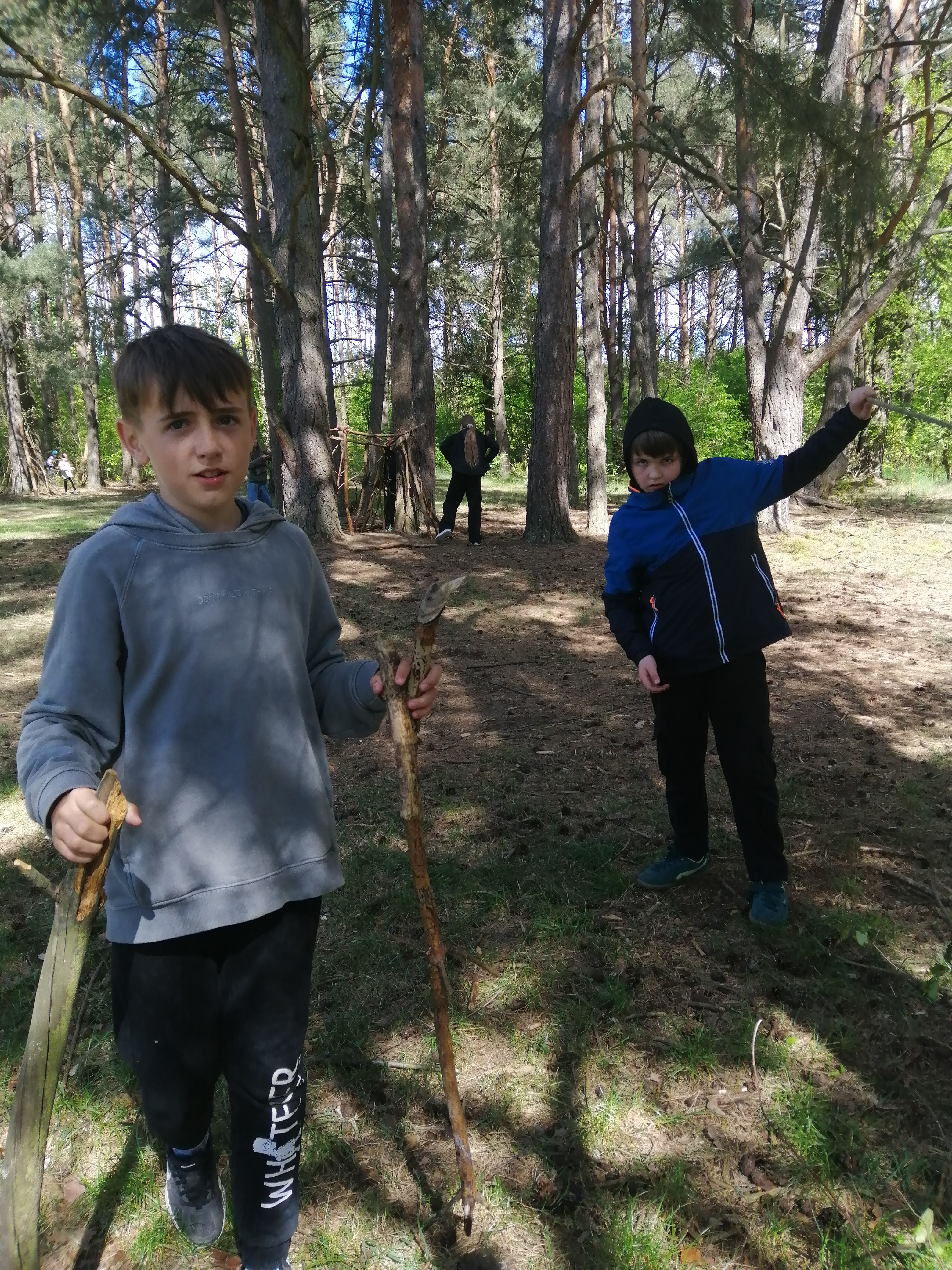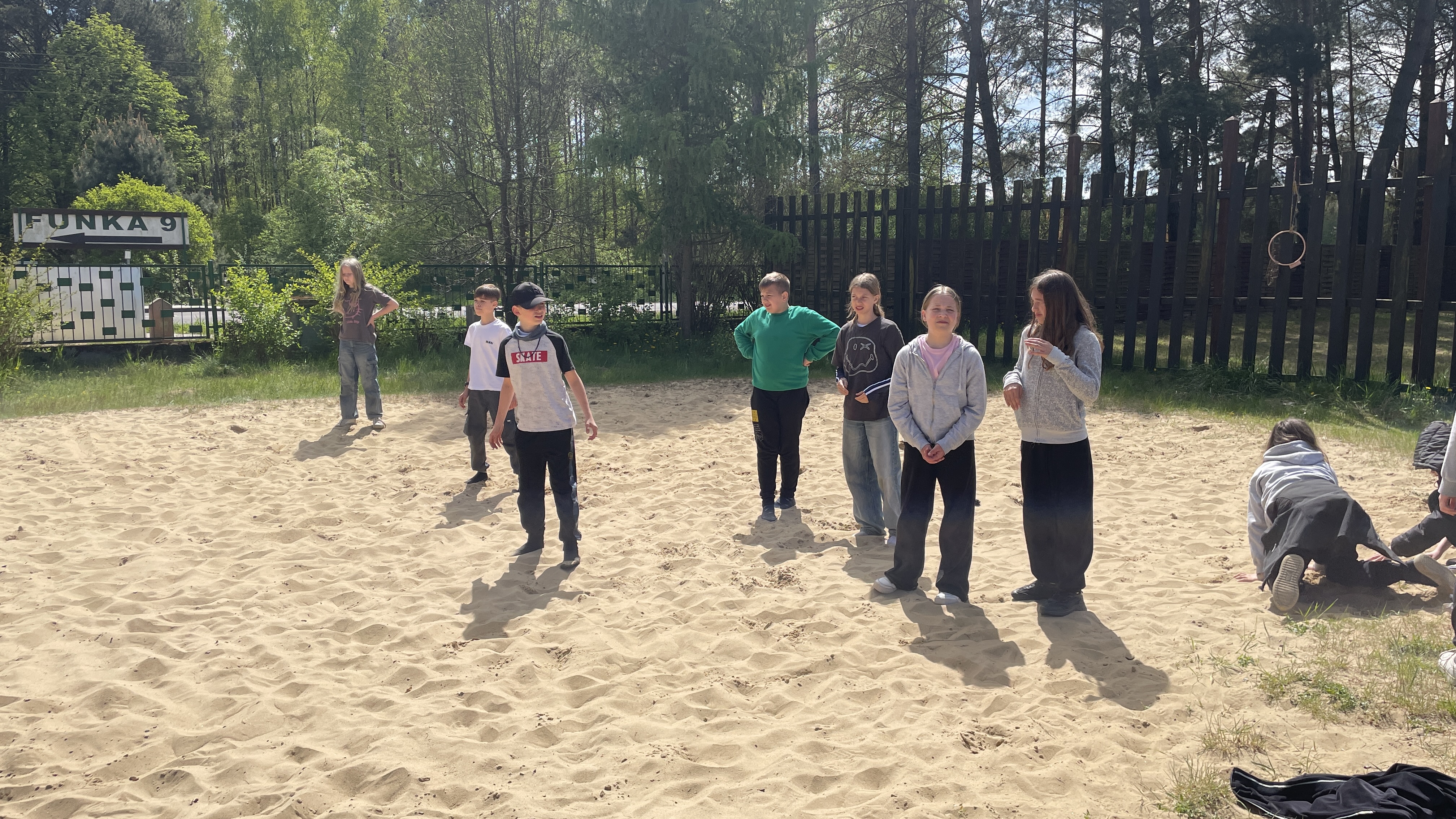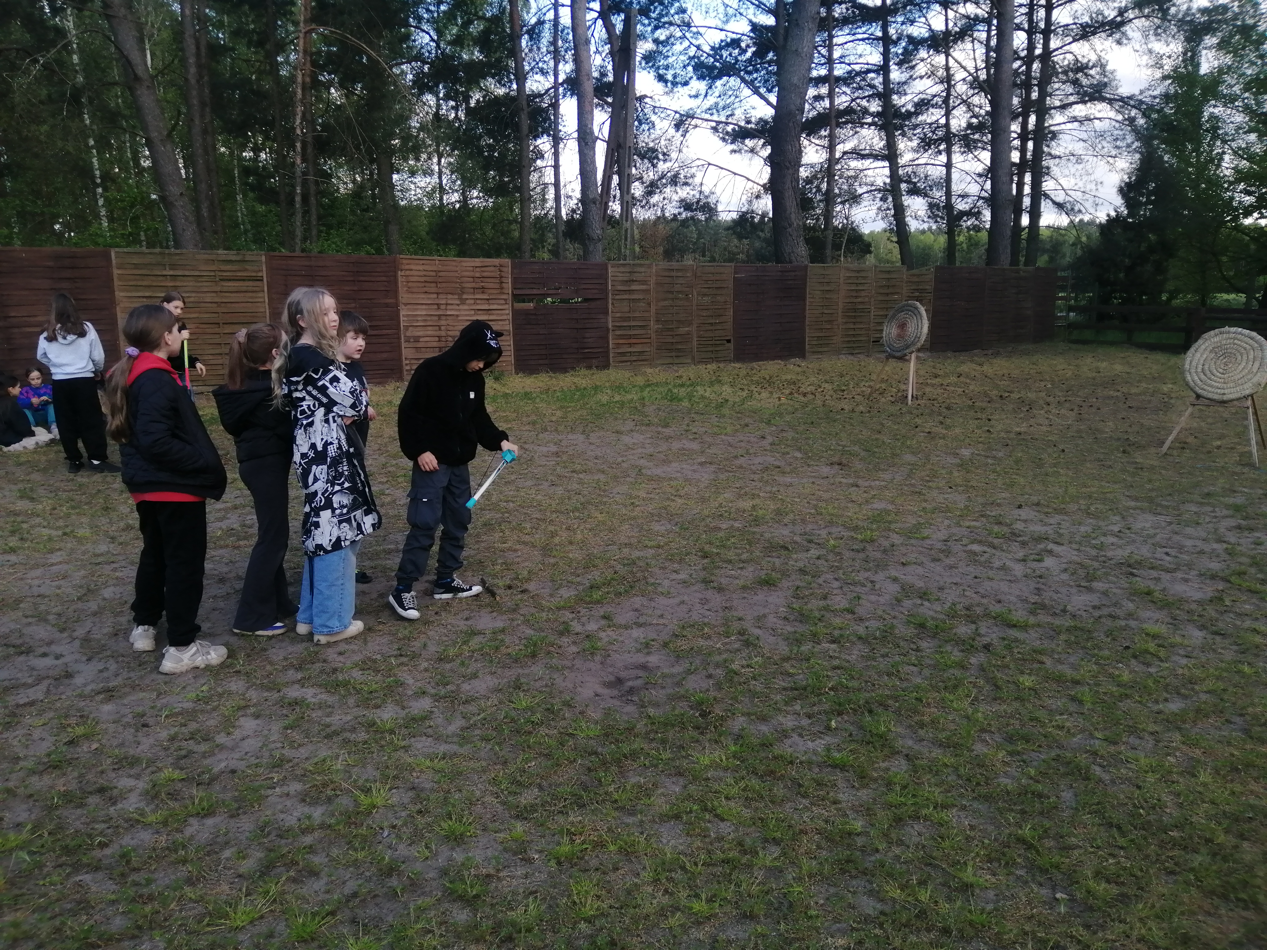 Nie zabrakło również atrakcji takich jak archery tag, czyli bezpieczna wersja łucznictwa z użyciem specjalnych łuków i miękkich strzał , geocaching – terenowa zabawa z mapą, czy budowanie szałasów w lesie, które pobudzało kreatywność i współpracę. Jednym z bardziej emocjonujących wydarzeń była sportowa rywalizacja o flagi, która rozpaliła ducha walki i zaangażowanie wszystkich uczestników.