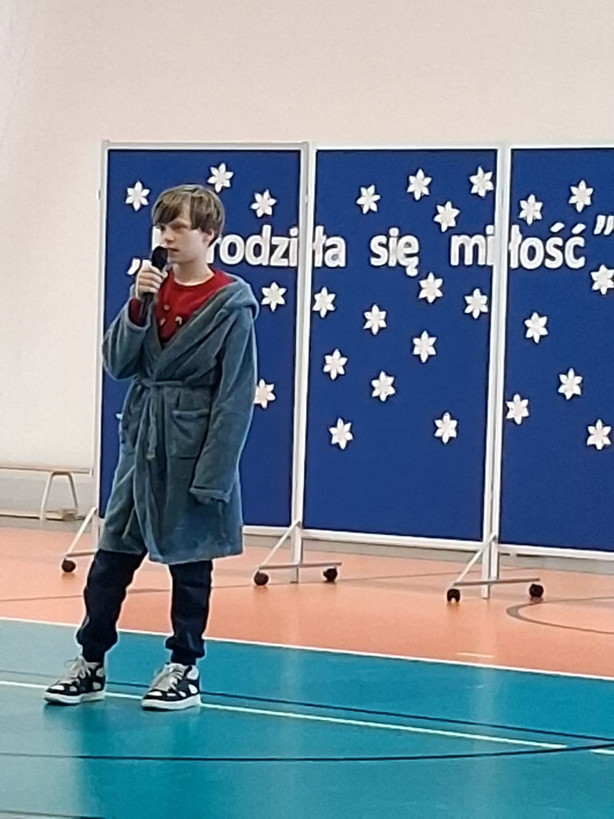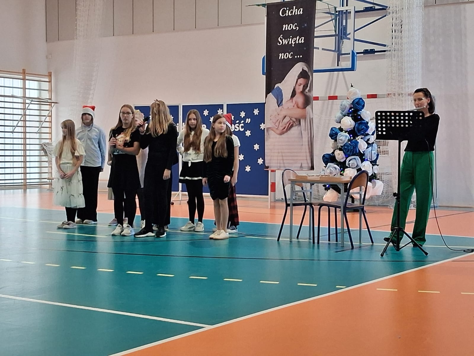 19 grudnia 2025 r. w naszej sali gimnastycznej odbył się wyjątkowy koncert kolęd dla klas 4–8. Uczniowie zaprezentowali swoje talenty wokalne i instrumentalne, a wspólne śpiewanie tradycyjnych polskich kolęd stworzyło atmosferę radości, refleksji i jedności.