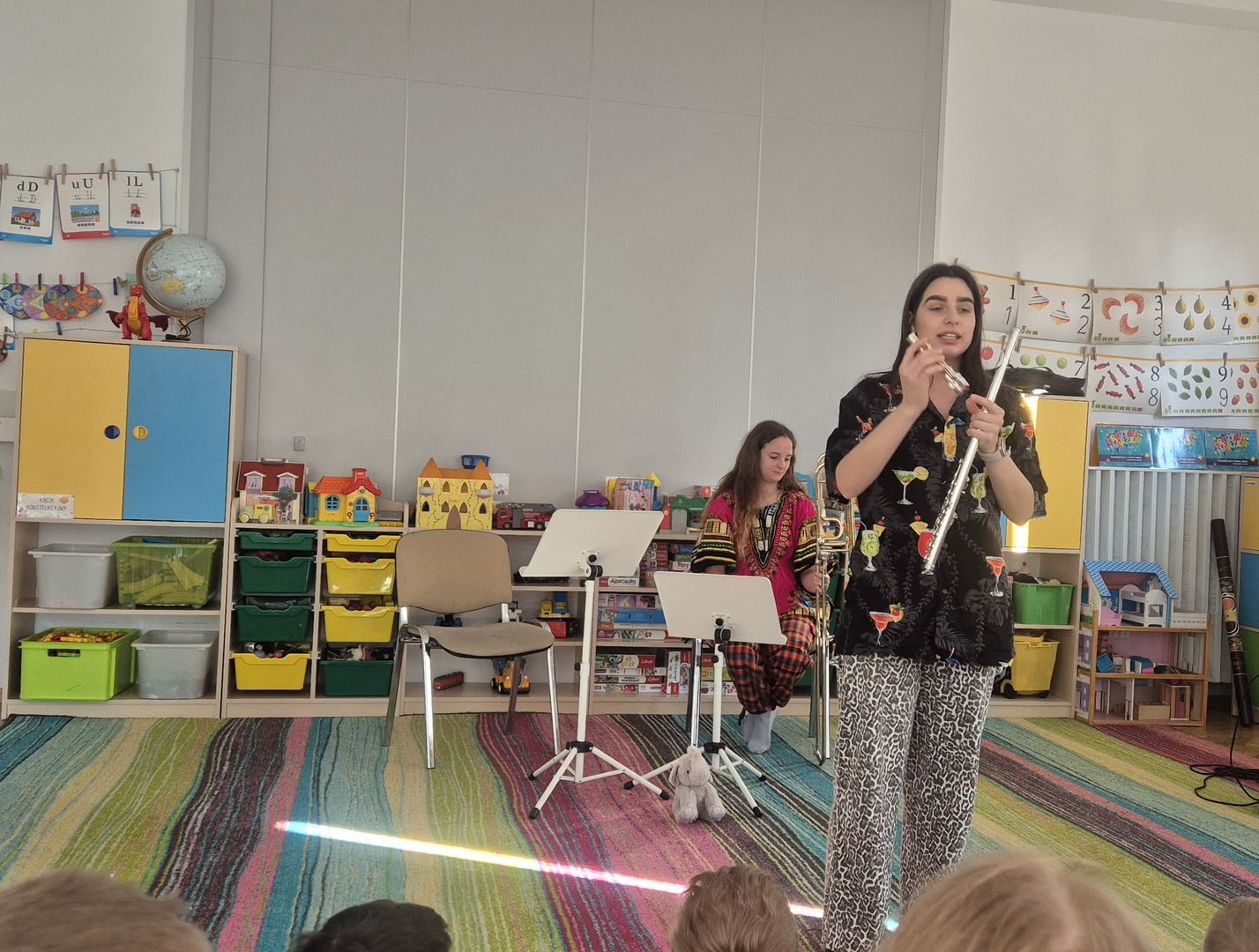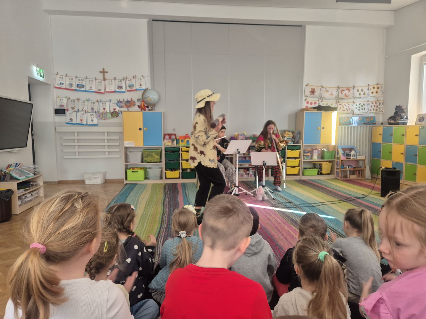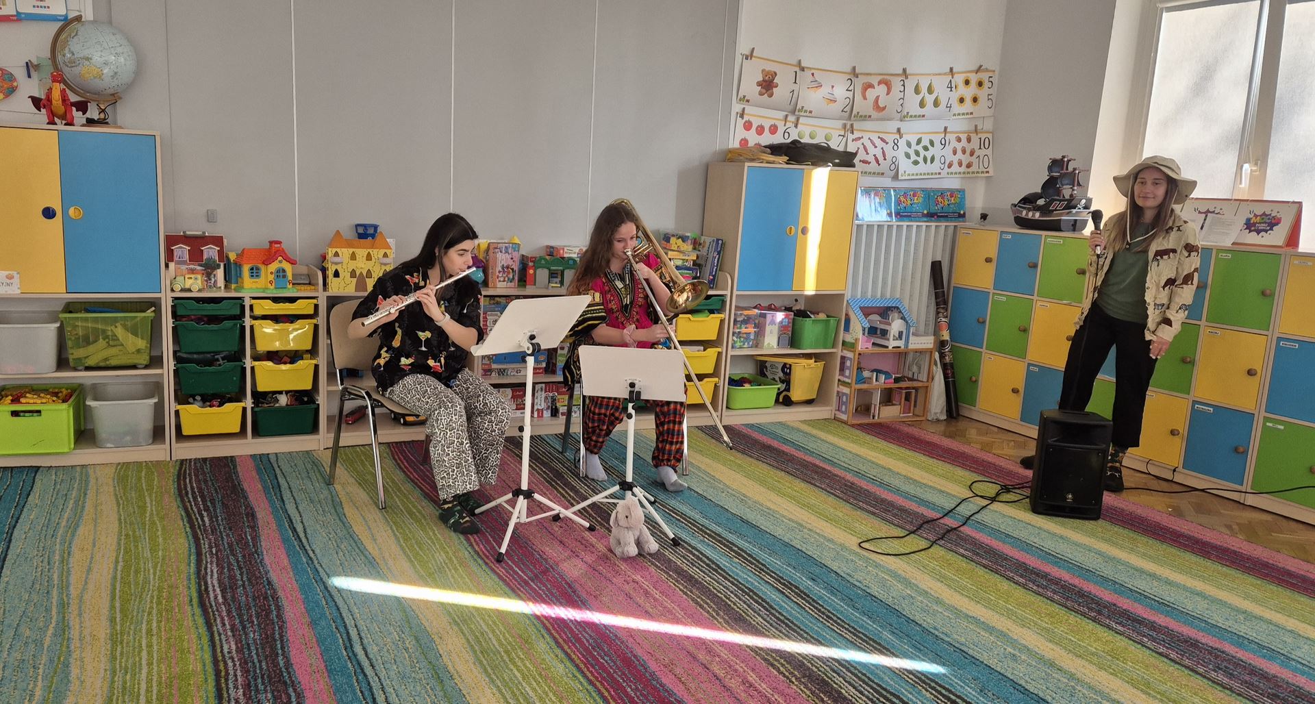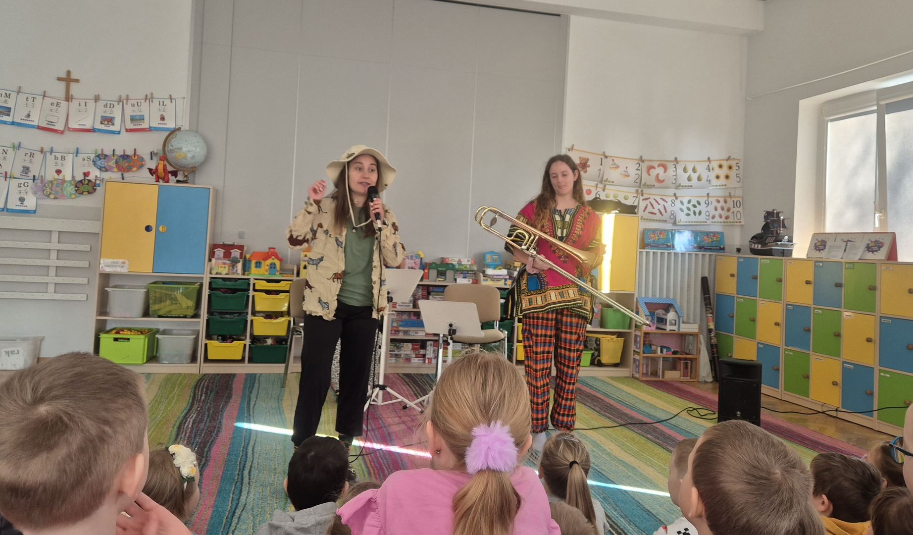 Koncert pt. „Wiosenna wyprawa zielonych słoni” był dla dzieci ciekawą muzyczną przygodą. Podczas spotkania dzieci miały okazję poznać instrumenty dęte – flet poprzeczny oraz puzon. Prowadząca opowiedziała wiele ciekawostek o tych instrumentach, między innymi z ilu części się składają oraz jakie są ich dokładne nazwy.