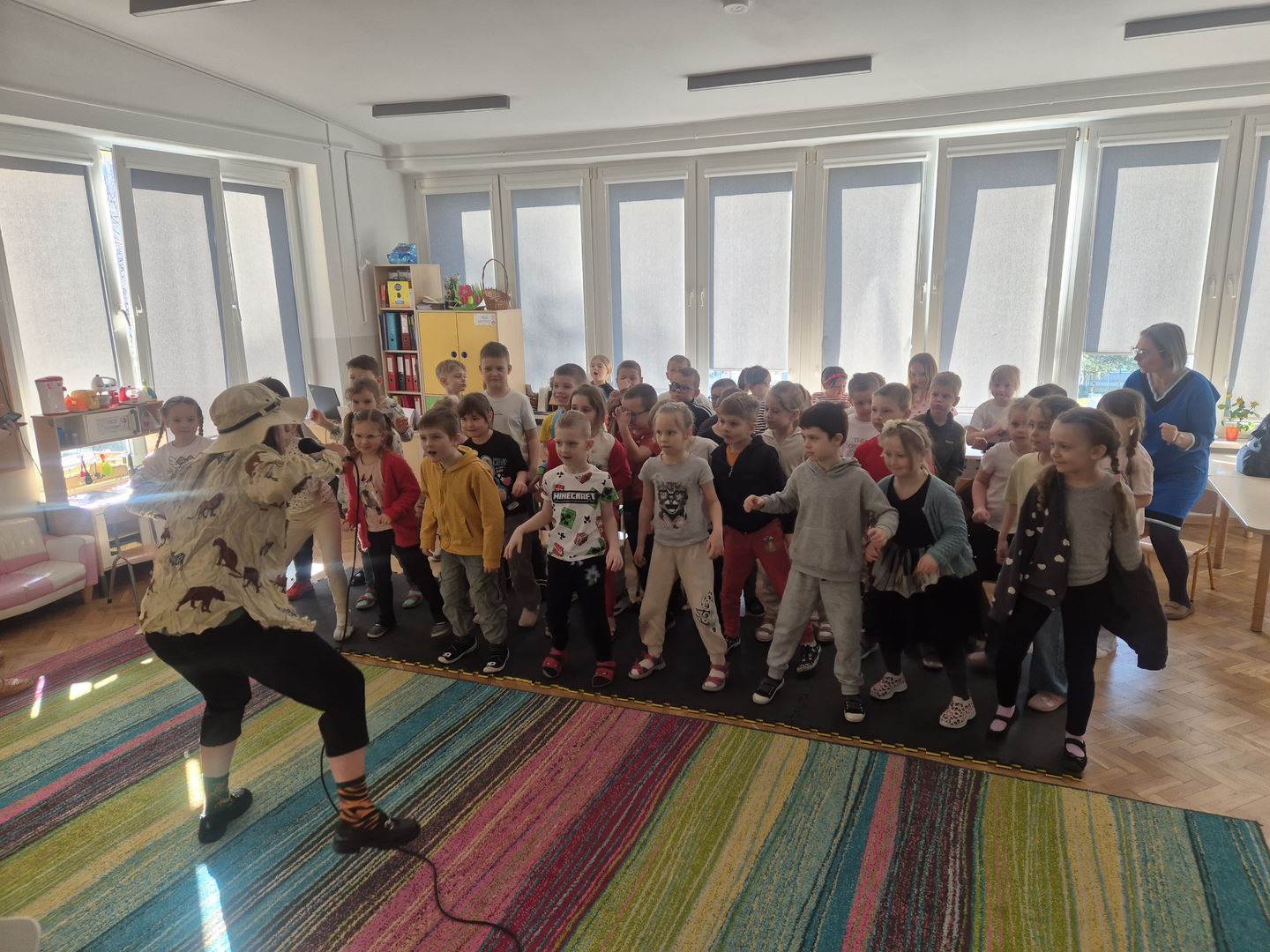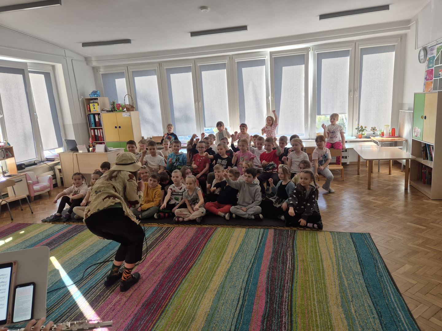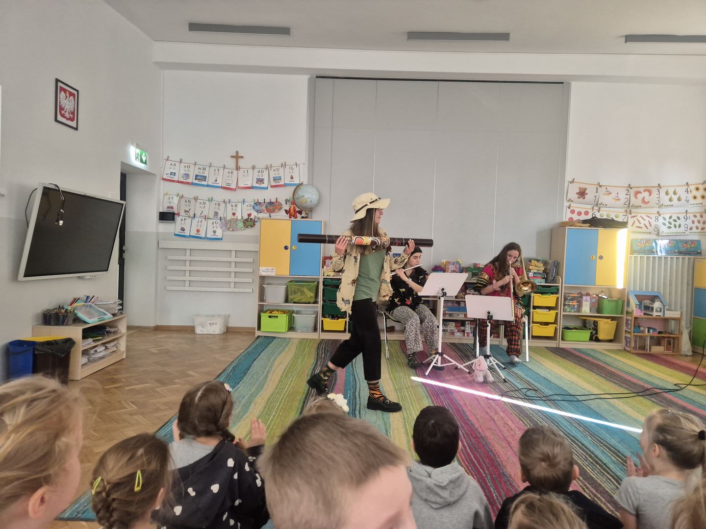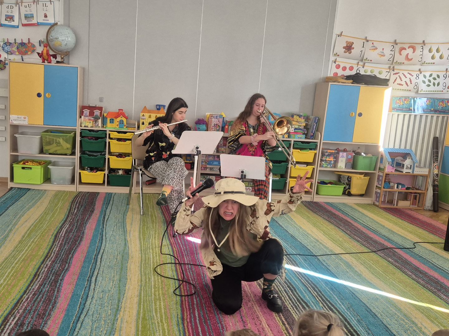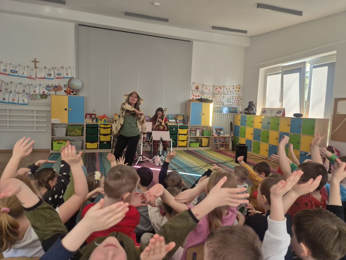 Koncert pt. „Wiosenna wyprawa zielonych słoni” był dla dzieci ciekawą muzyczną przygodą. Podczas spotkania dzieci miały okazję poznać instrumenty dęte – flet poprzeczny oraz puzon. Prowadząca opowiedziała wiele ciekawostek o tych instrumentach, między innymi z ilu części się składają oraz jakie są ich dokładne nazwy.