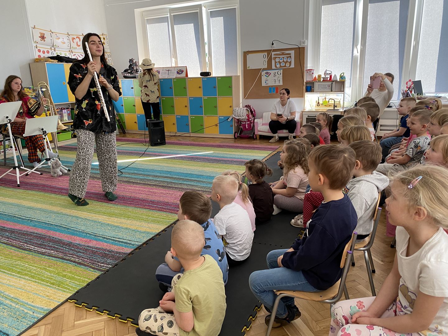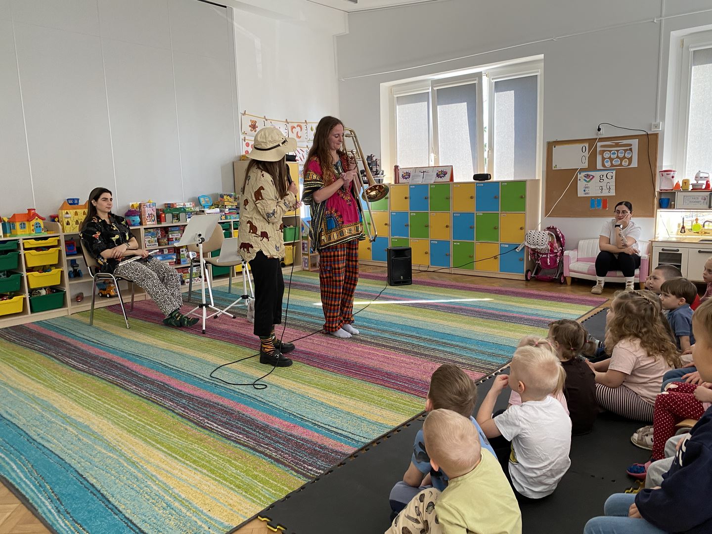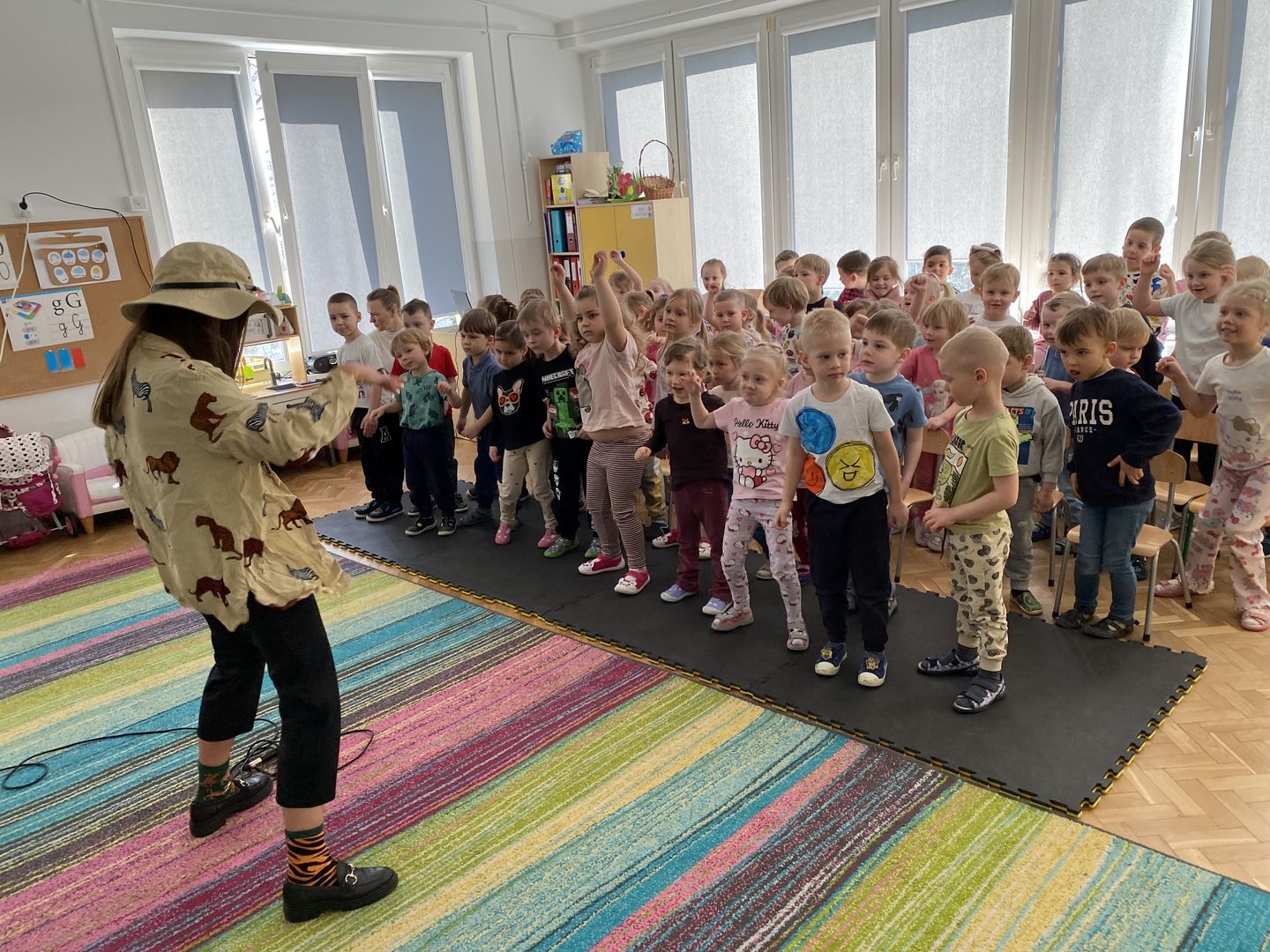 10 marca w naszym przedszkolu odbył się koncert muzyczny pt " Wiosenna wyprawa zielonych słoni". Podczas spotkania dzieci miały okazję poznać instrumenty dęte – flet poprzeczny oraz puzon. Podczas koncertu dzieci wysłuchały również wesołej historii o czterech zielonych słoniach. Nie zabrakło także aktywnego udziału dzieci. Odbyły się zabawy, które rozwijały poczucie rytmu i wrażliwość muzyczną. Spotkanie przebiegło w radosnej atmosferze i było dla dzieci okazją do rozwijania zainteresowań muzycznych oraz dobrej zabawy.