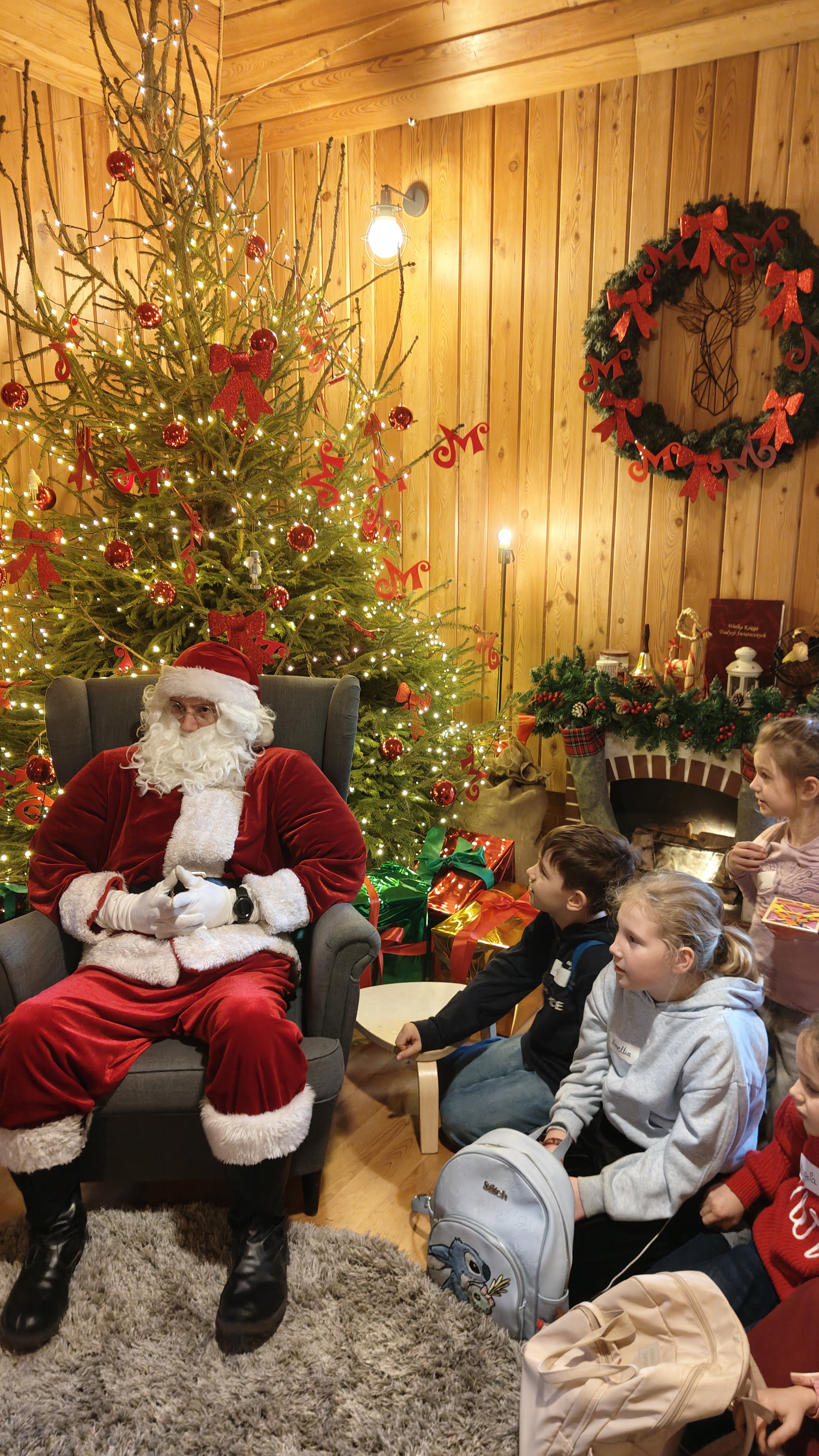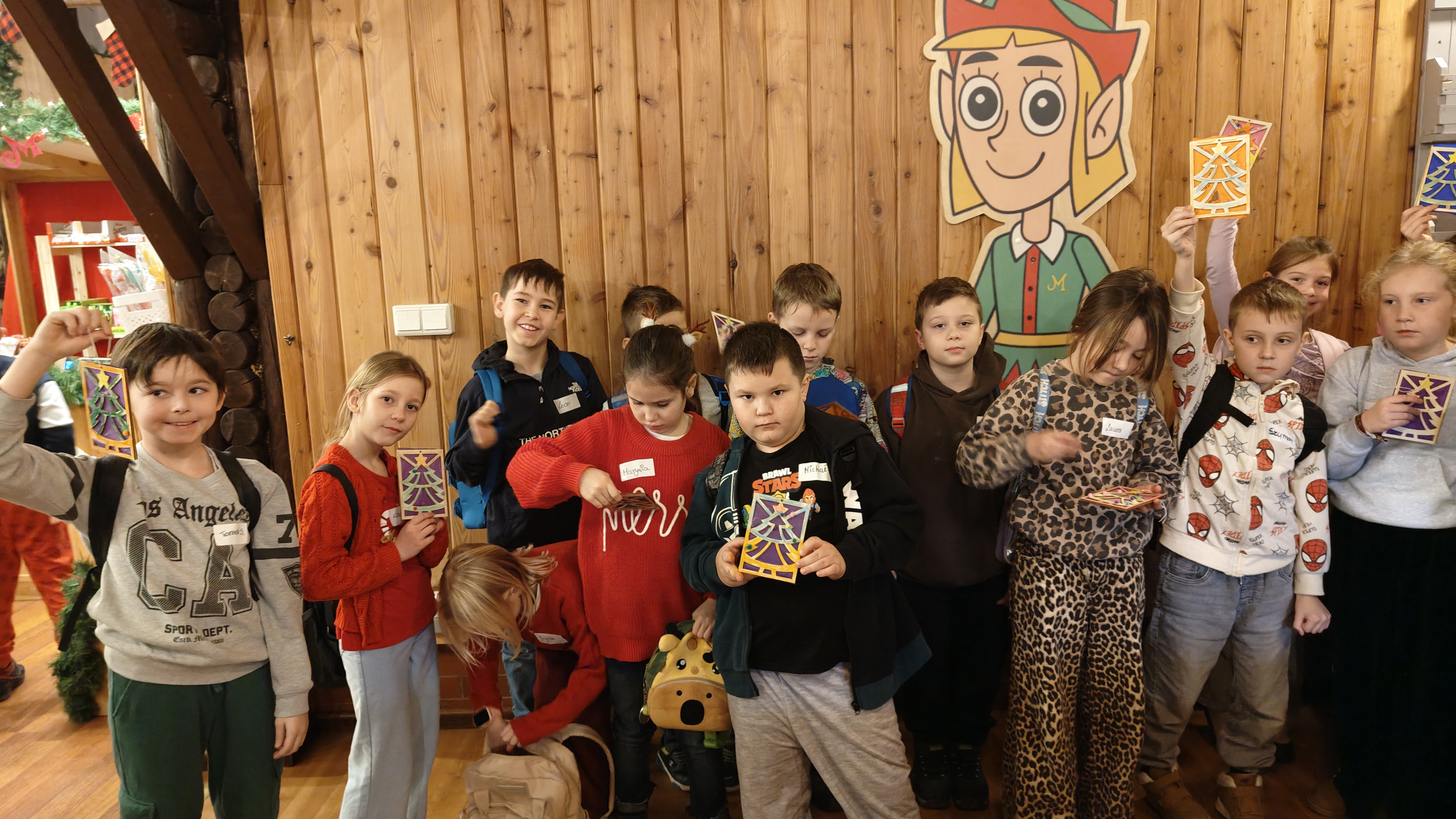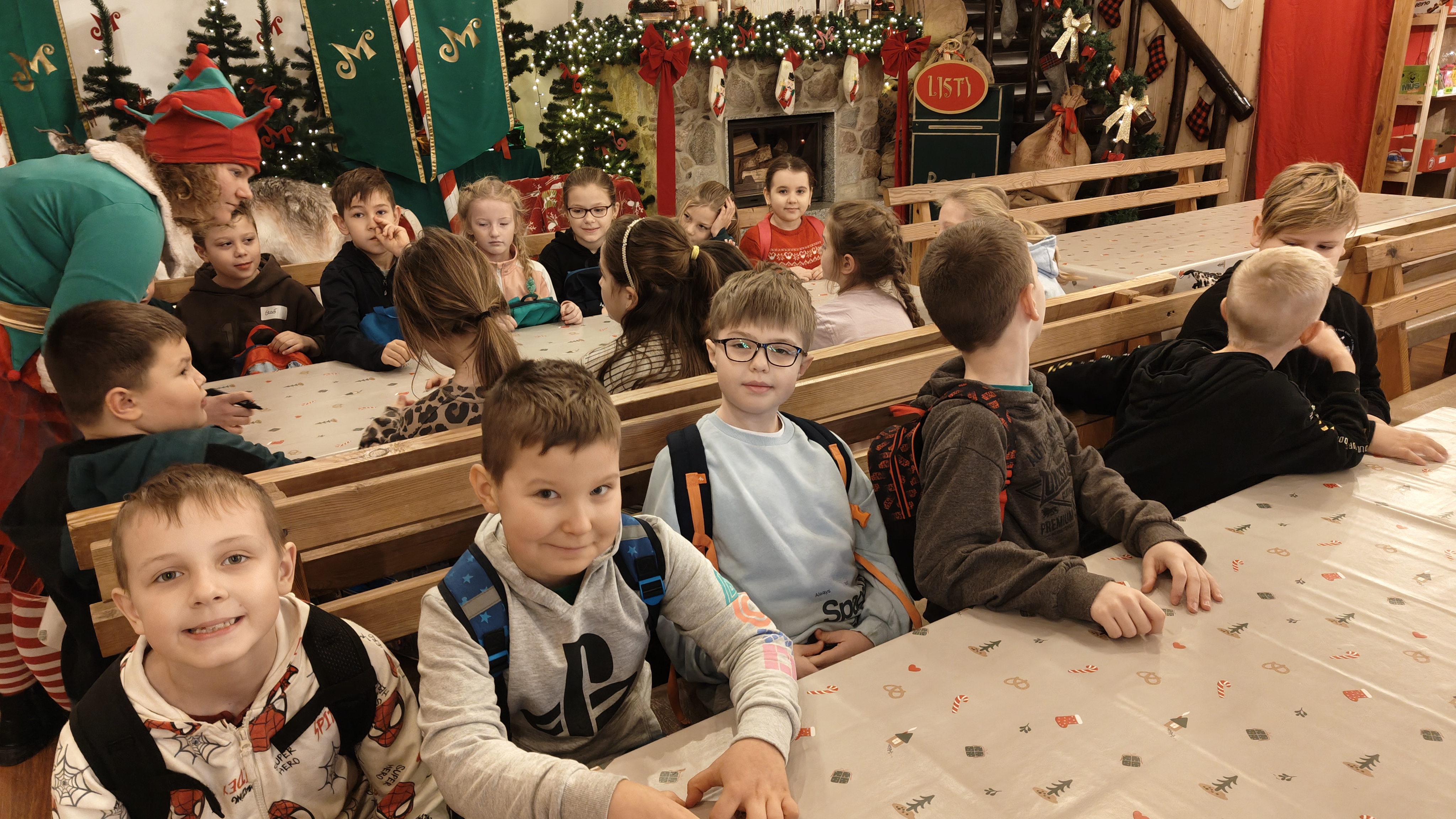 W poniedziałek 15.12. odwiedziliśmy "Krainę Elfów" w Jagatowie, gdzie czekały na nas różne atrakcje. Podejmowaliśmy wiele aktywności: były zabawy zręcznościowe, pisanie i wrzucanie do skrzynki listu do Św. Mikołaja; warsztaty plastyczne i wreszcie spotkanie z samym Ś. Mikołajem, któremu zaśpiewaliśmy piosenkę i recytowaliśmy wiersz. Na zakończenie pobytu były zabawy ruchowe na świeżym powietrzu -tylko zabrakło zimowej aury...