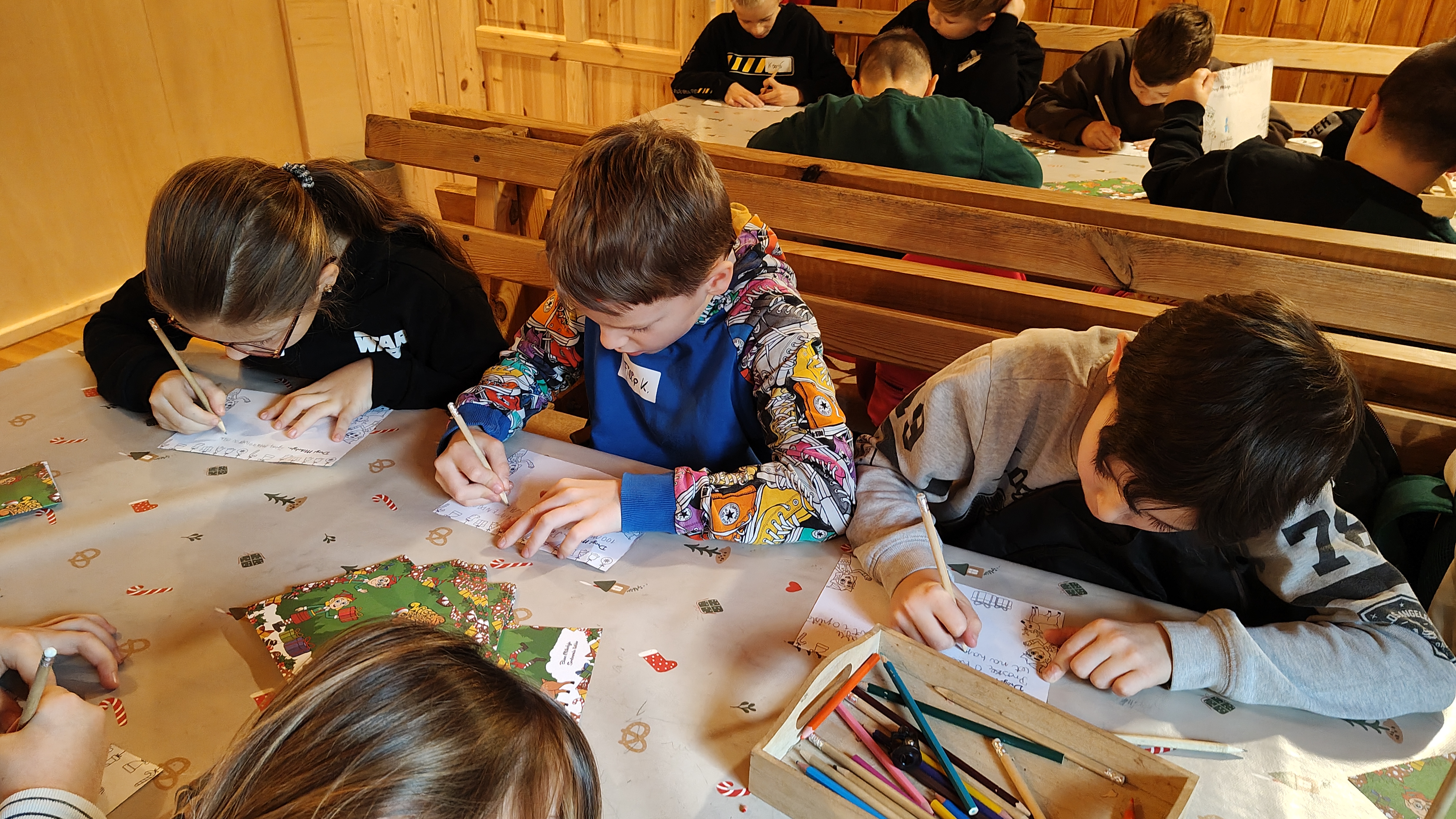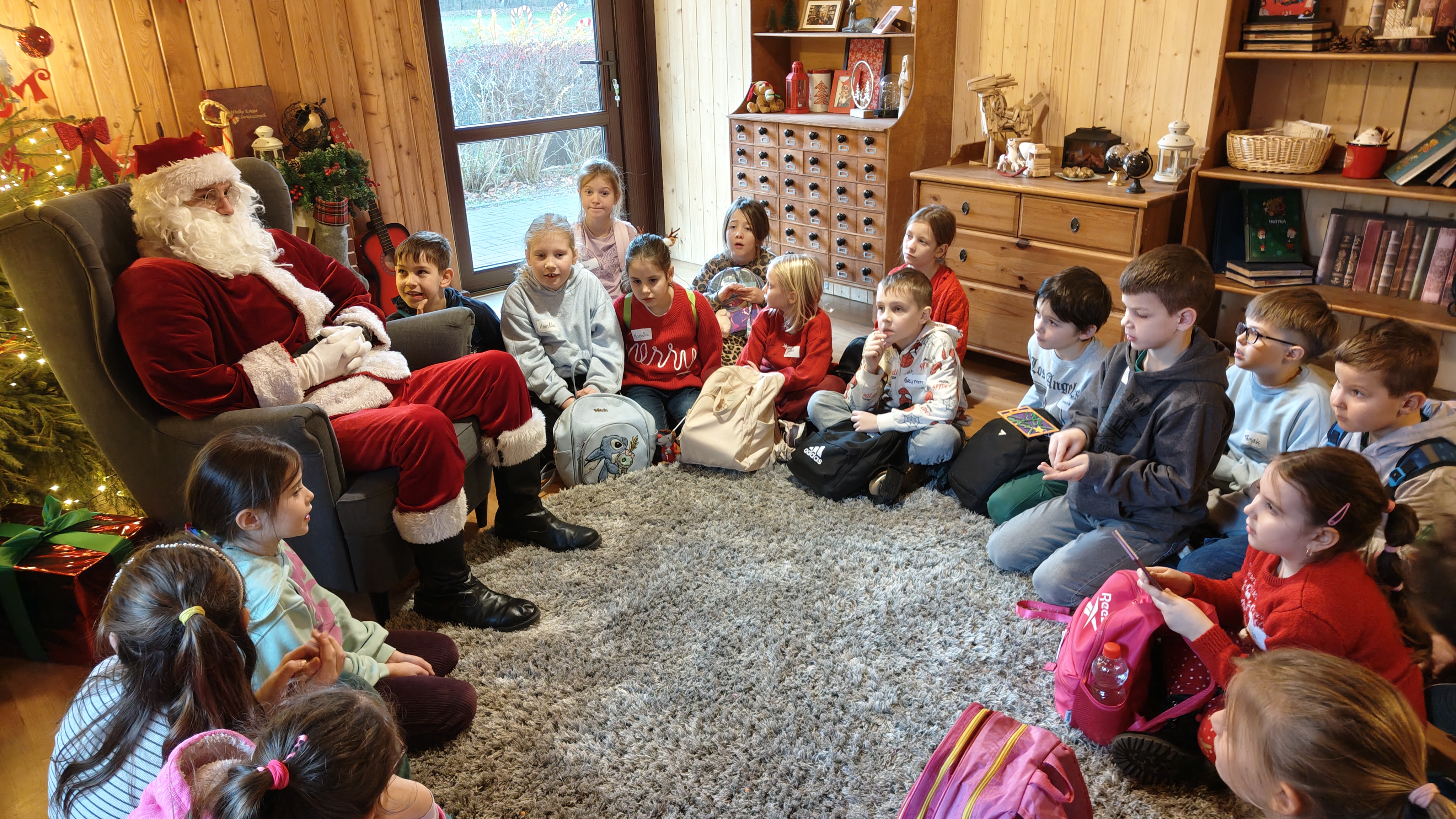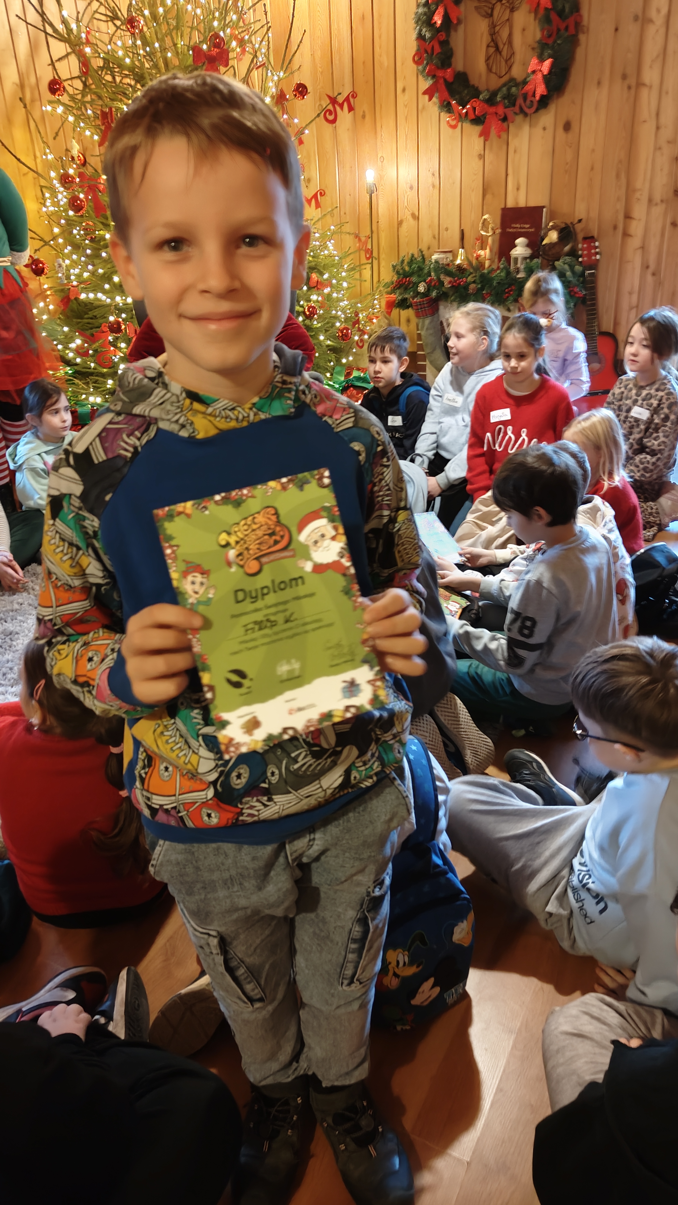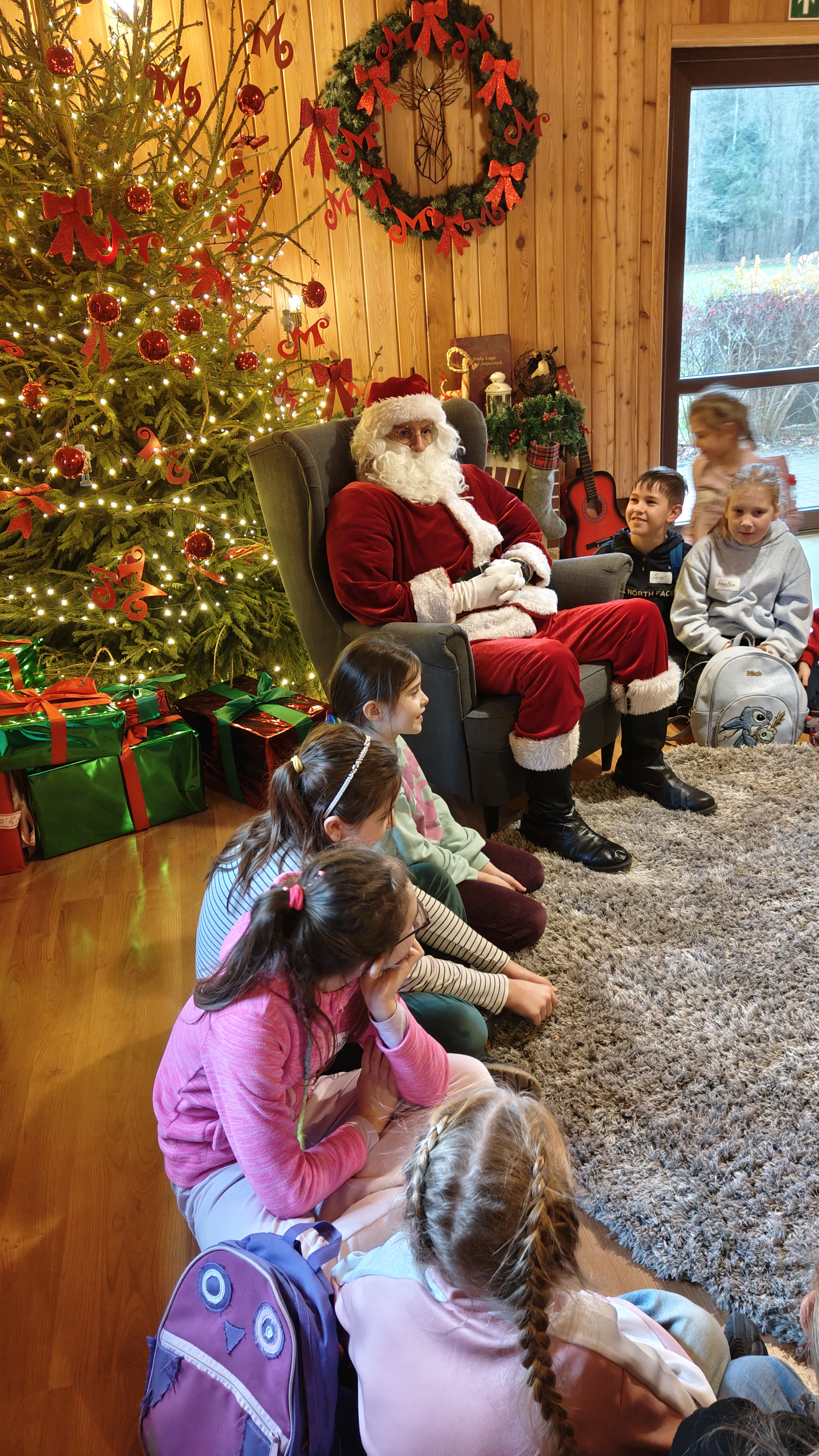 W poniedziałek 15.12. odwiedziliśmy "Krainę Elfów" w Jagatowie, gdzie czekały na nas różne atrakcje. Podejmowaliśmy wiele aktywności: były zabawy zręcznościowe, pisanie i wrzucanie do skrzynki listu do Św. Mikołaja; warsztaty plastyczne i wreszcie spotkanie z samym Ś. Mikołajem, któremu zaśpiewaliśmy piosenkę i recytowaliśmy wiersz. Na zakończenie pobytu były zabawy ruchowe na świeżym powietrzu -tylko zabrakło zimowej aury...