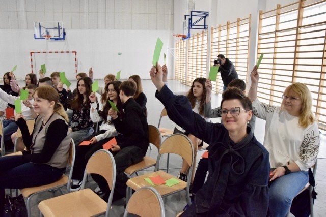 Podczas sejmiku był czas na wypowiedzi publiczności. Uczestnicy debaty, po wystąpieniu każdej ze szkół, głosowali za pomocą zielonych oraz czerwonych kartek i wyrażali swoje zdanie na temat omawianych zagadnień klimatycznych. Podczas debaty Pani Magdalena Radziwilska, nauczycielka geografii w SP2, przedstawiła naukowe dane dotyczące globalnego ocieplania klimatu z polskiej stacji badawczej na Spitsbergenie. Na zakończenie wszyscy zgromadzeni jednomyślnie wskazali, że globalne ocieplenie jest faktem. Młodzież zaprezentowała wnioski z debaty. Każda z pruszczańskich szkół otrzymała dyplom oraz nagrodę z rąk Pani Dyrektor Marzeny Koteckiej. Wydarzenie uświetniły występy zespołu muzycznego pod kierunkiem Pani Joanny Mielewskiej oraz grupy tanecznej pod opieką Pani Ewy Szewczyk i Pani Ani Kieliszczyk. Uczestnicy sejmiku kontynuowali dyskusje w kąciku zdrowej żywności przygotowanej przez uczniów naszej szkoły pod opieką Pani Marty Słobody i Pani Małgorzaty Pobuty.