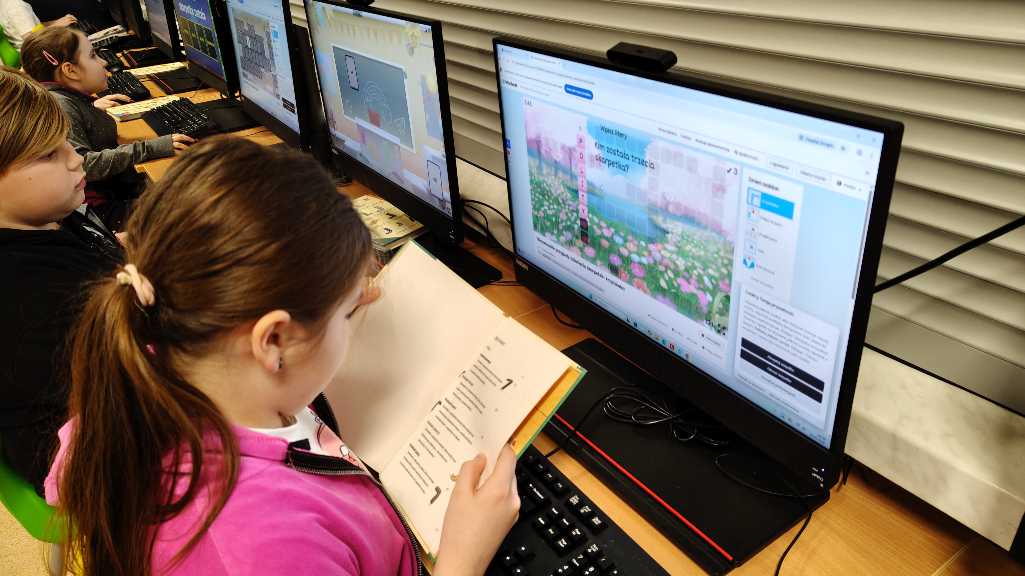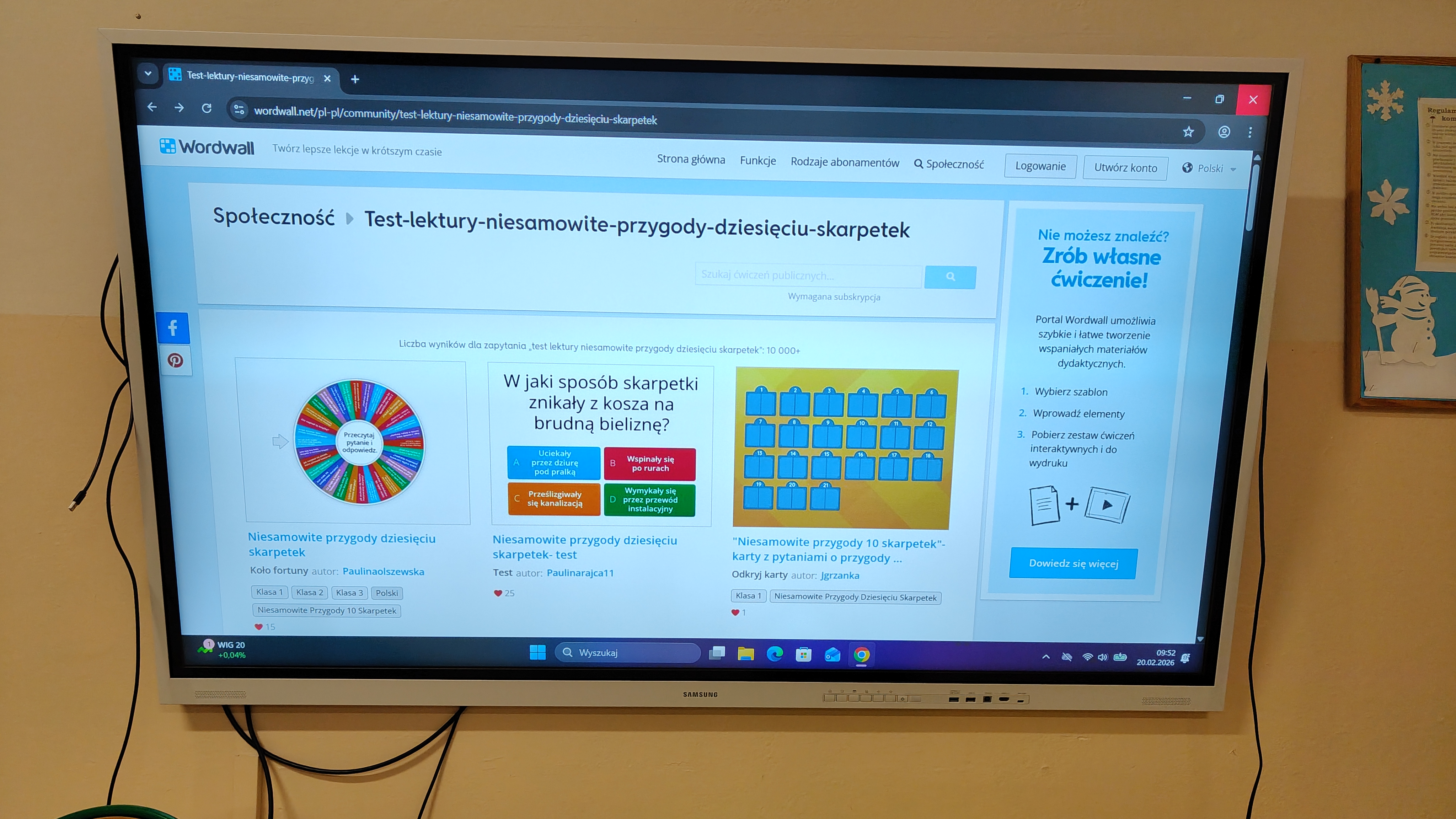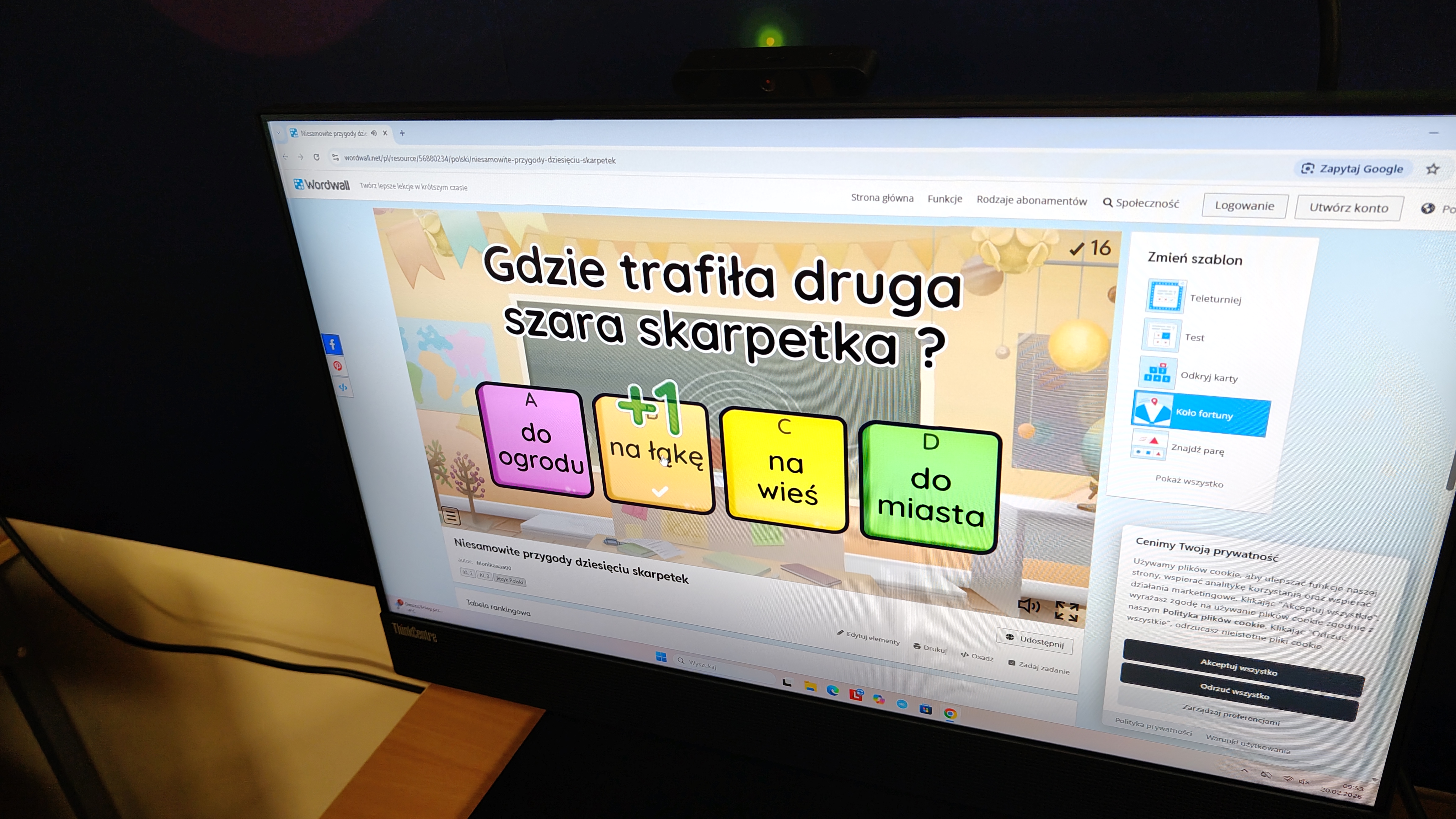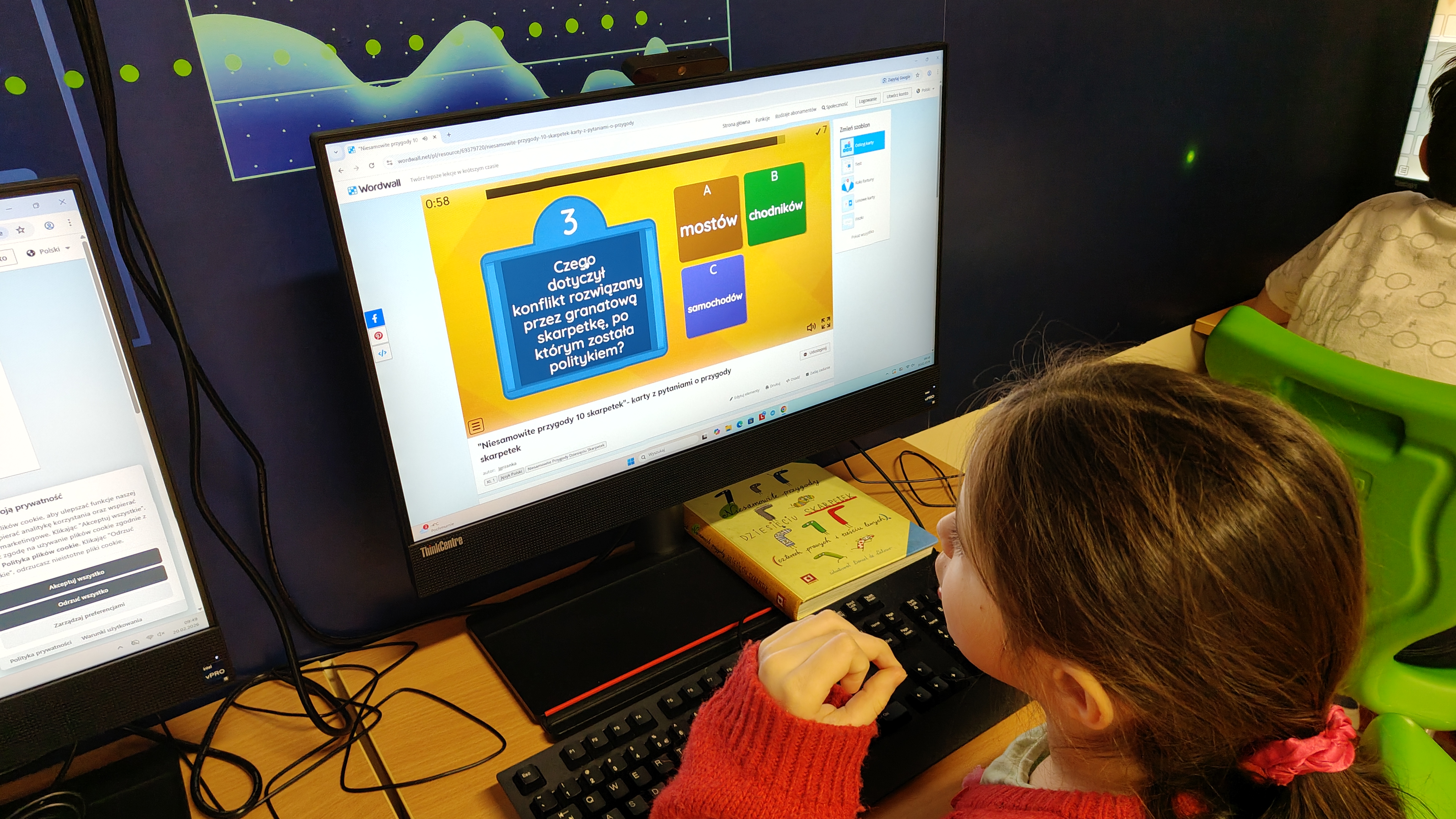"Niesamowite przygody dziesięciu skarpetek... Justyny Bednarek -to lektura, która zawędrowała z uczniami naszej klasy w miniony piątek do pracowni komputerowej. Tam, z wykorzystaniem różnorodnych testów online (teleturniej, test, odkryj karty, koło fortuny, znajdź parę itp.) sprawdzaliśmy poziom znajomości przeczytanej lektury. To był z pewnością bardzo atrakcyjny sposób sprawdzenia wiedzy uczniów, połączony z rozwijaniem kompetencji informatycznych.