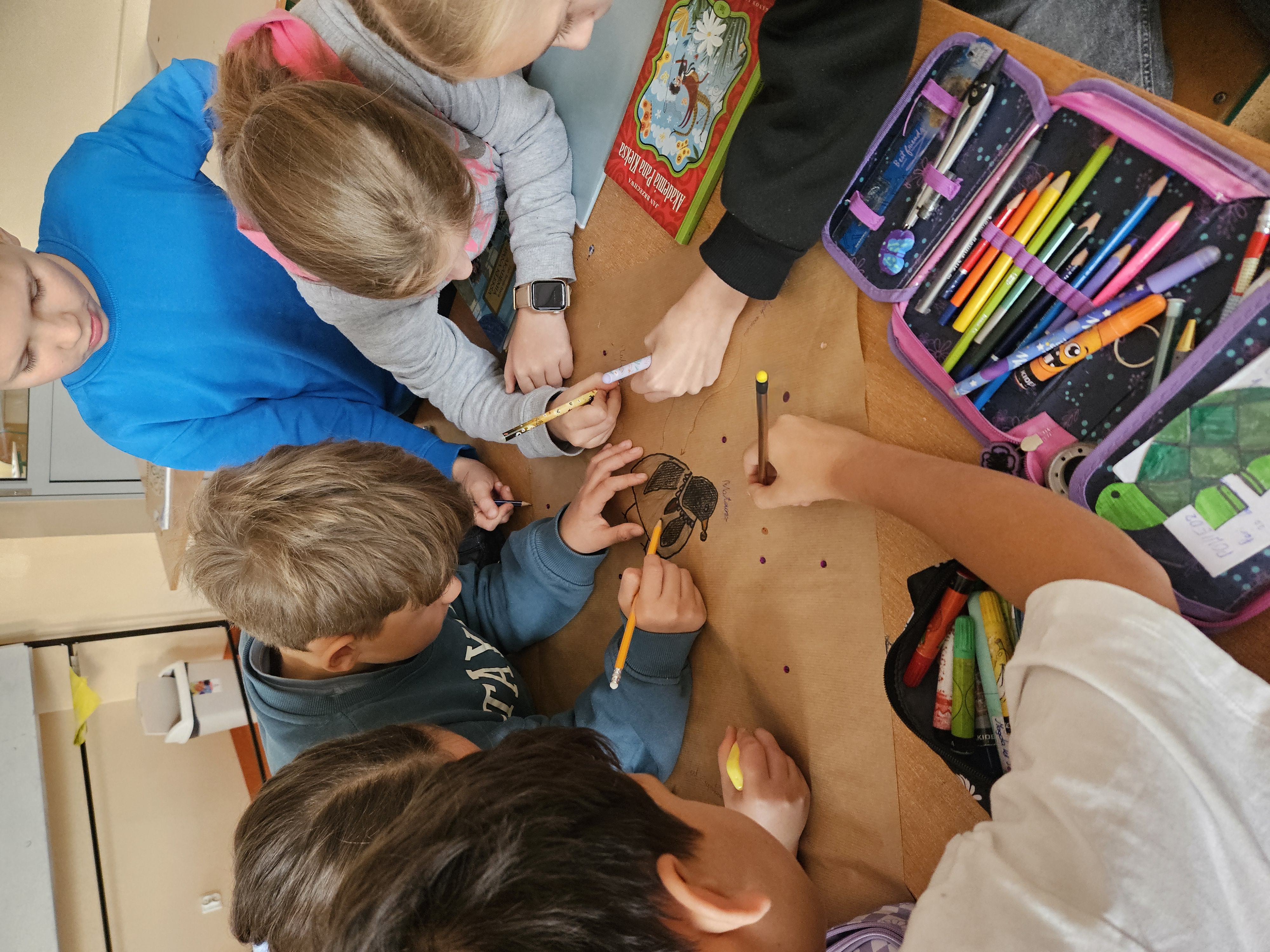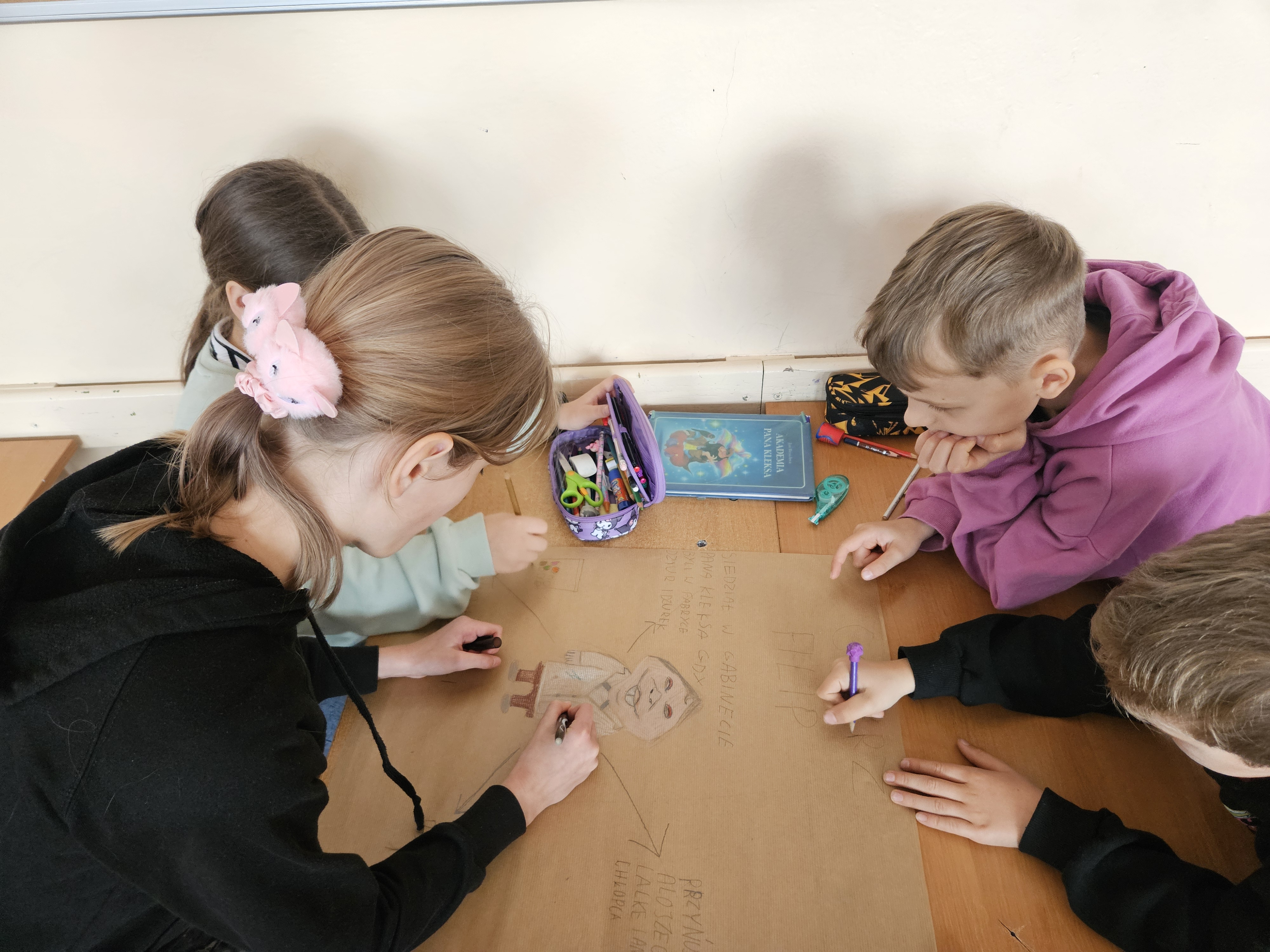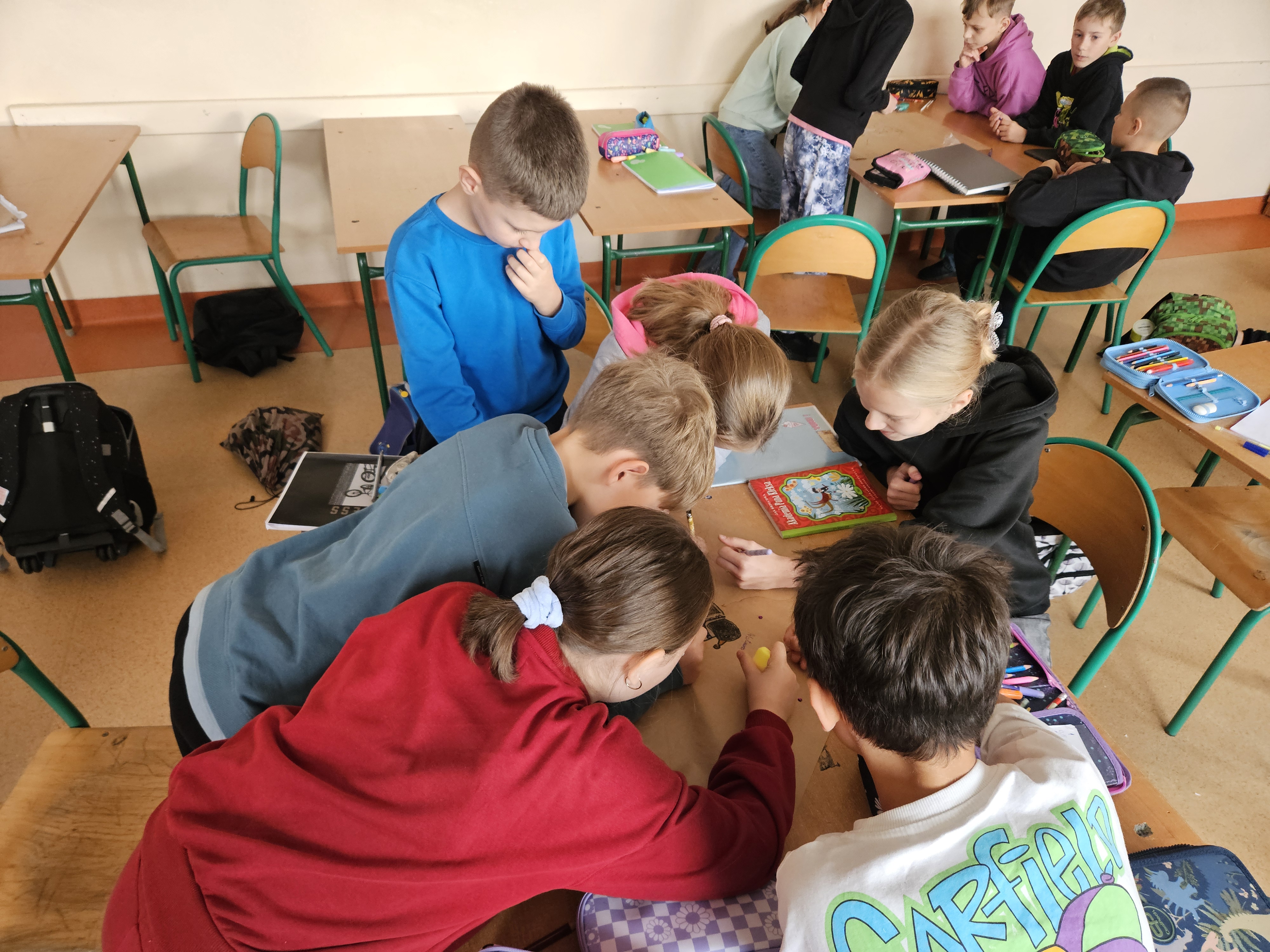 29 października, w ramach podsumowania pracy z lekturą „Pan Kleks”, uczniowie tworzyli plakaty inspirowane książką. Zajęcia były okazją nie tylko do utrwalenia wiadomości, ale także do integracji klasy i twórczej pracy.