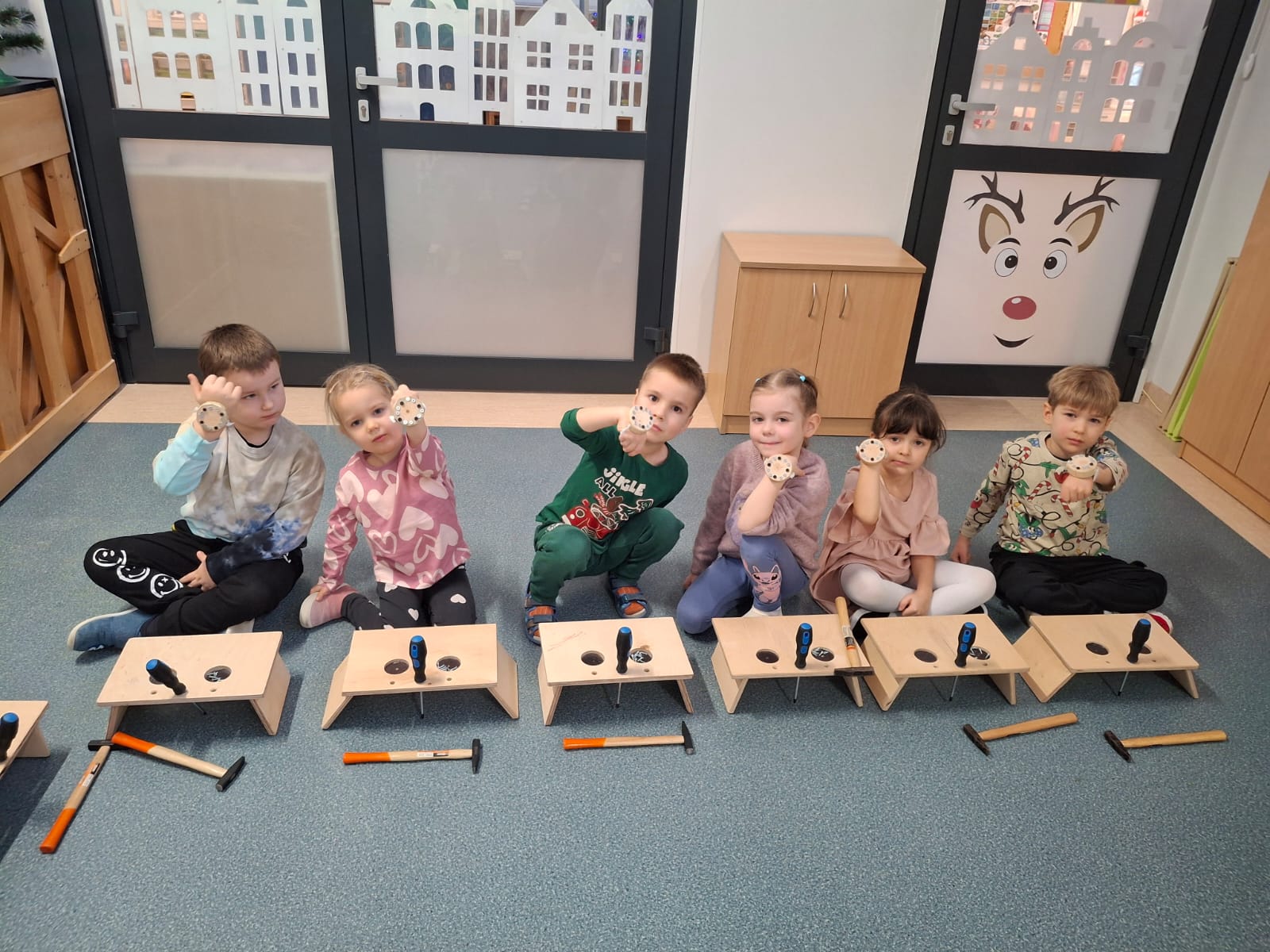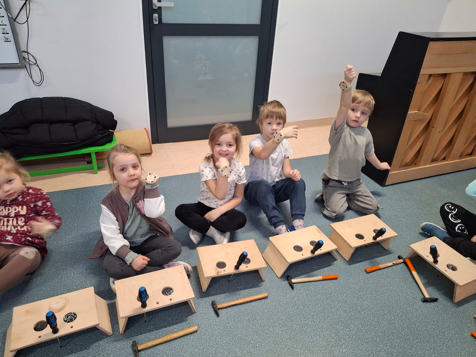 W naszym przedszkolu odbyły się wyjątkowe warsztaty majsterkowania prowadzone przez firmę „Sport i Zabawa". W zajęciach wzięły udział dzieci ze wszystkich grup przedszkolnych. Każda grupa miała okazję wcielić się w rolę małych majsterkowiczów i samodzielnie stworzyć własny zegarek.