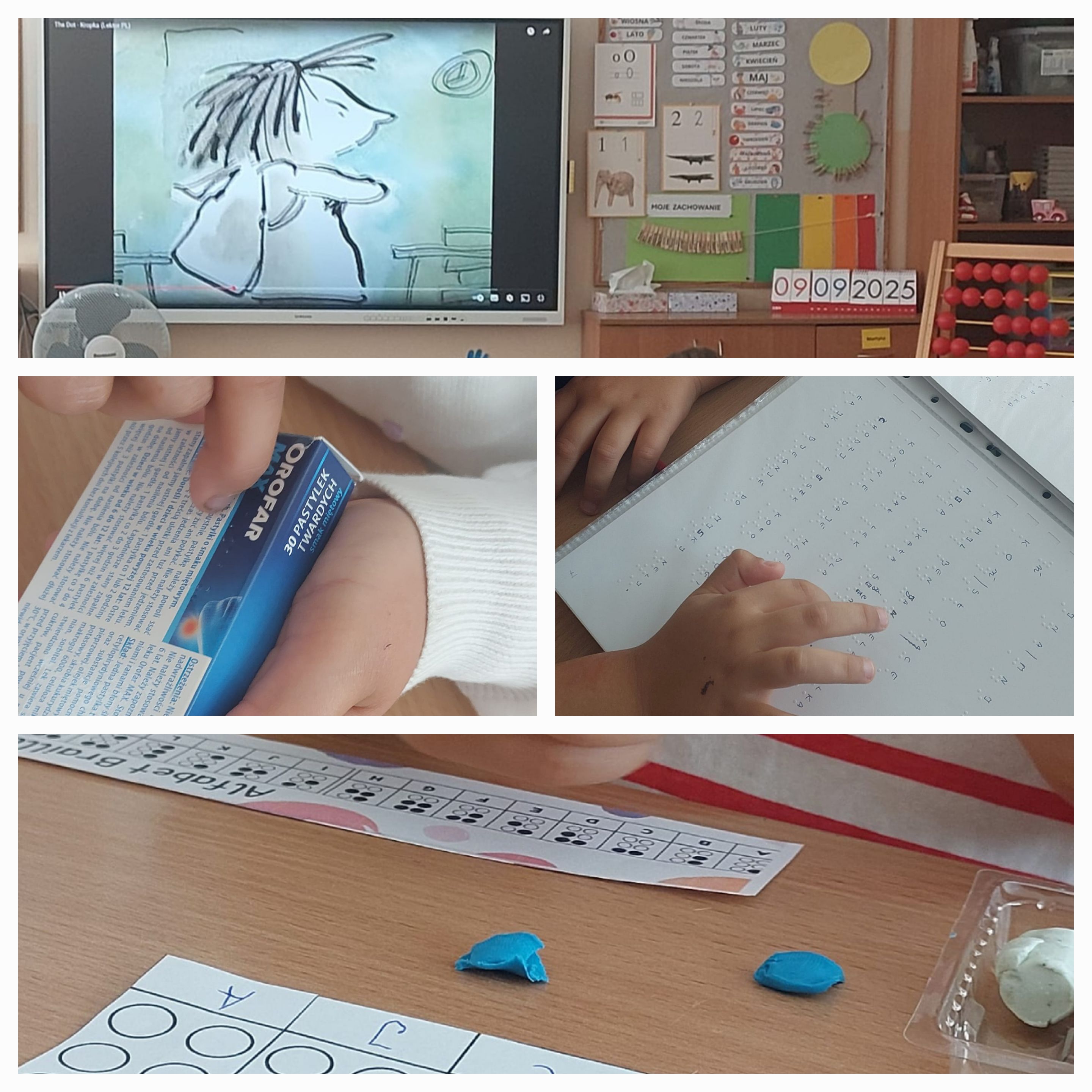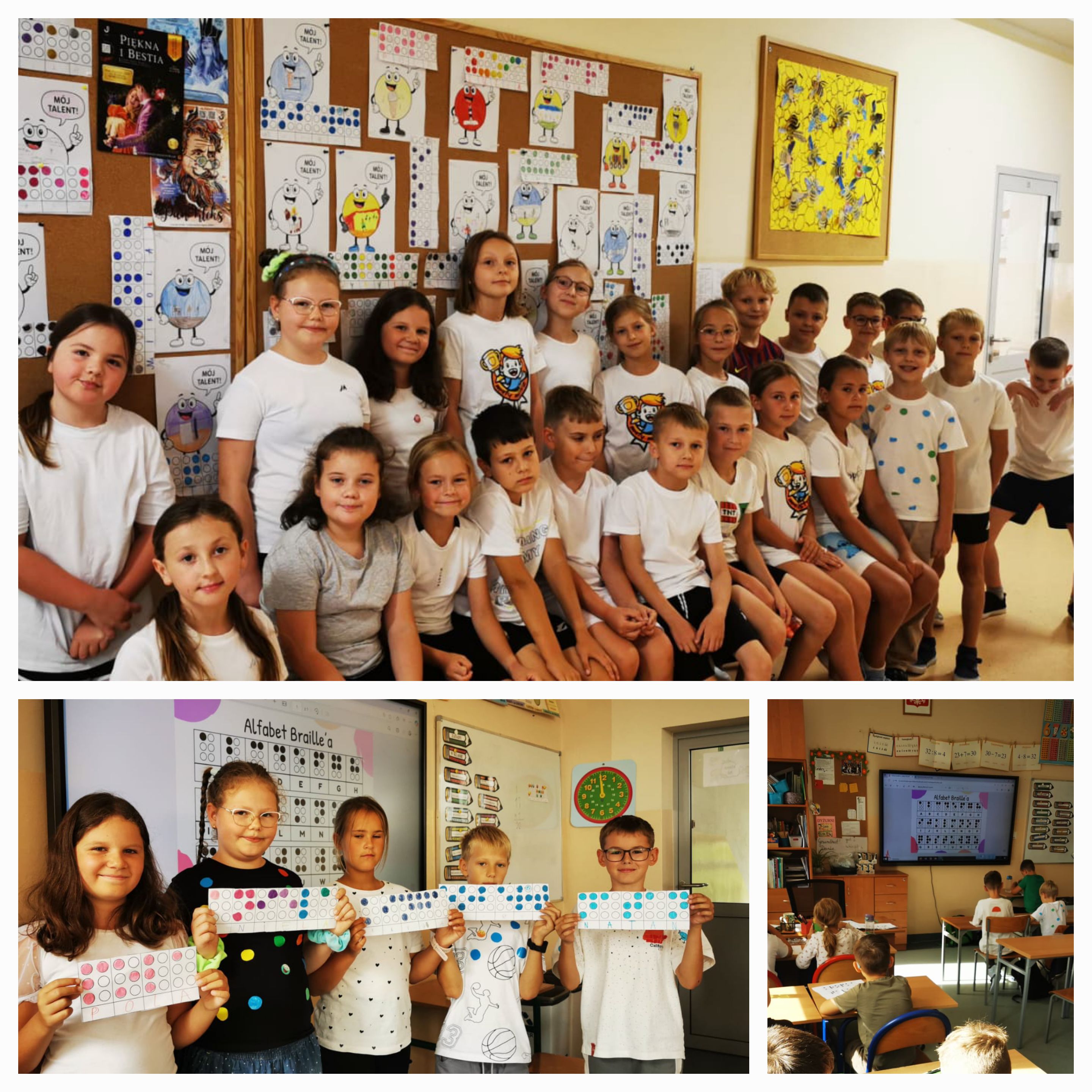 15 września 2025r. w naszej szkole obchodziliśmy Międzynarodowy Dzień Kropki. Jest to święto, które ma na celu rozbudzanie kreatywności, odwagi i wiary we własne siły. Tego dnia uczniowie klas 1-3 podjęli się udziału w wielu różnorodnych aktywnościach. Przypomnieli sobie historię Vashti, wzięli udział w „kropkowym kodowaniu”, zabawach z piłką oraz tworzyli prace plastyczne. Poznali też praktyczne zastosowanie kropek – alfabet Braille'a, narzędzie ułatwiające życie osobom niewidomym. Po tym dniu uczniowie utwierdzili się w przekonaniu, że każdy z nas ma jakiś talent, wystarczy tylko uwierzyć w siebie.