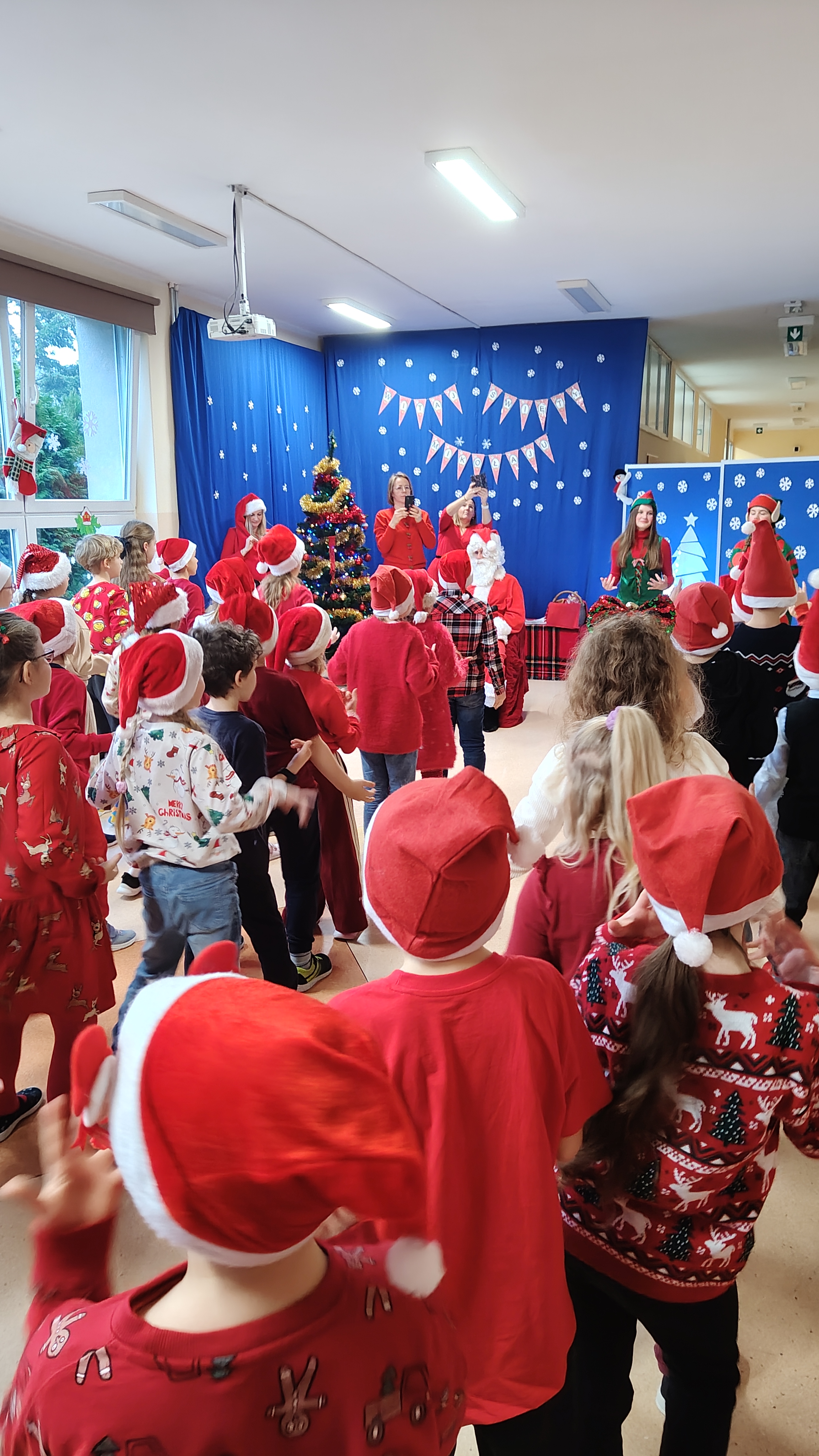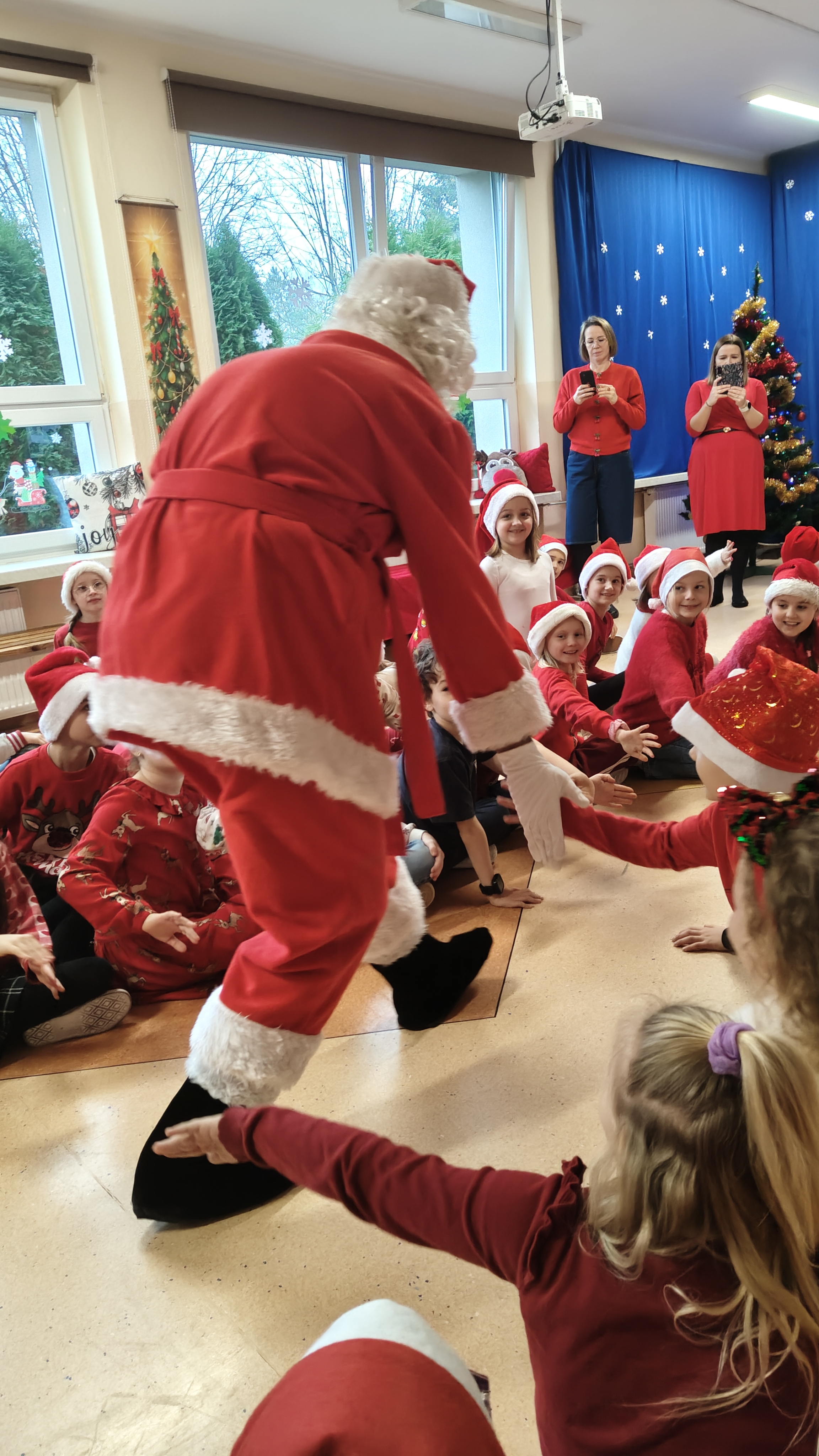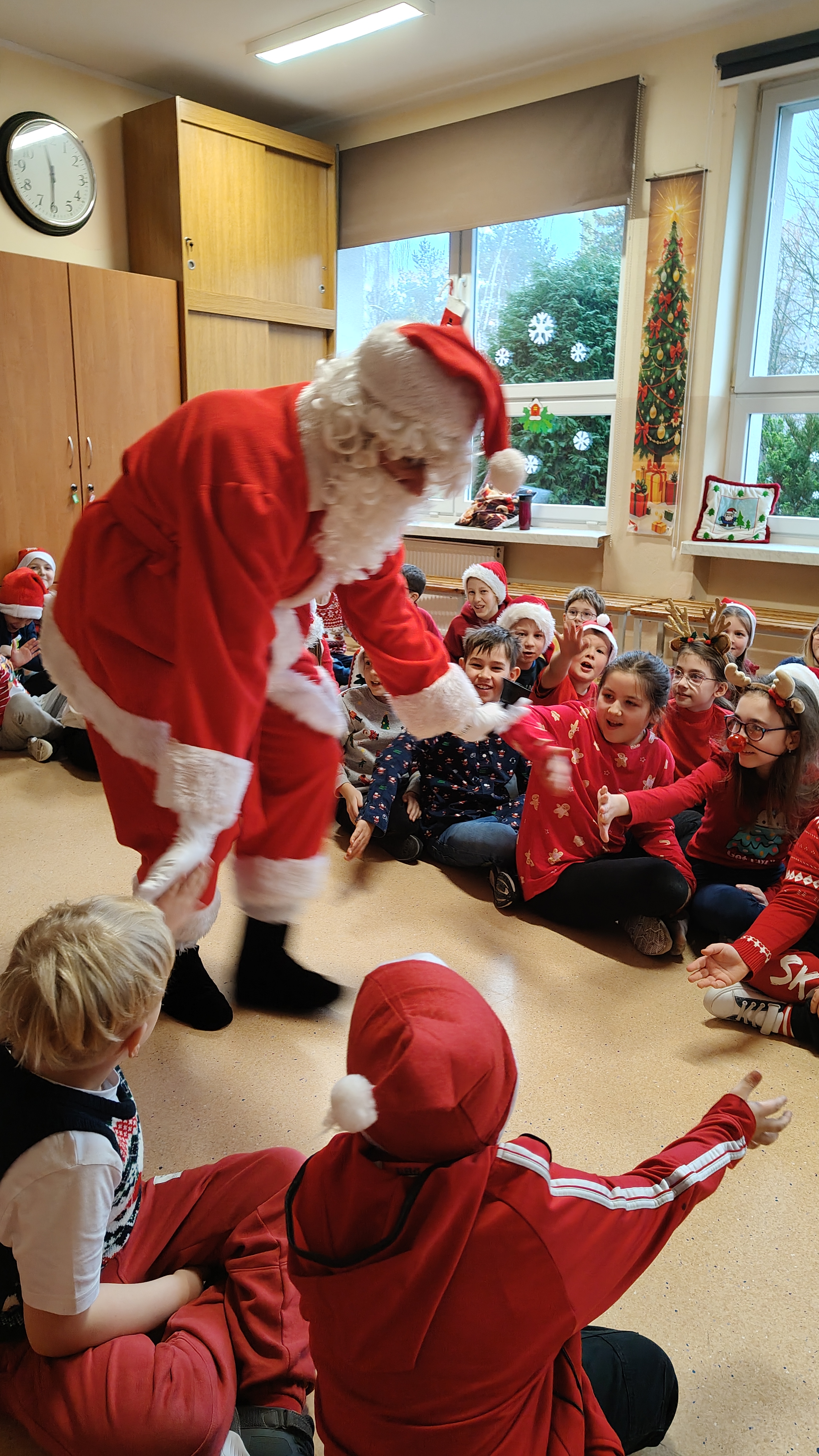 04.12.2025 r. odwiedził naszą szkołę Mikołaj, który w asyście Elfinek, rozdawał klasowe prezenty. Uczniowie zaprezentowali tematyczne wiersze, piosenki oraz taniec świąteczny dla tego Specjalnego Gościa. Po otrzymaniu upominków, dodatkową atrakcją była fotobudka. Do zobaczenia wkrótce, Mikołaju!