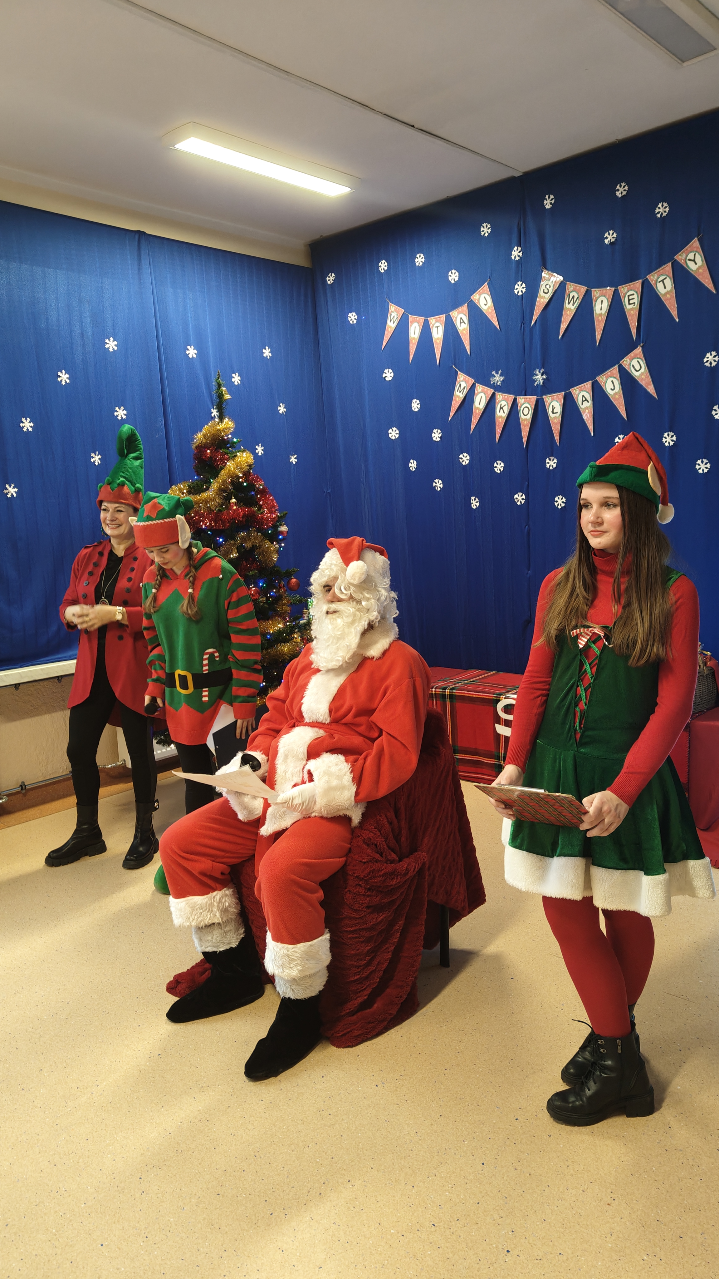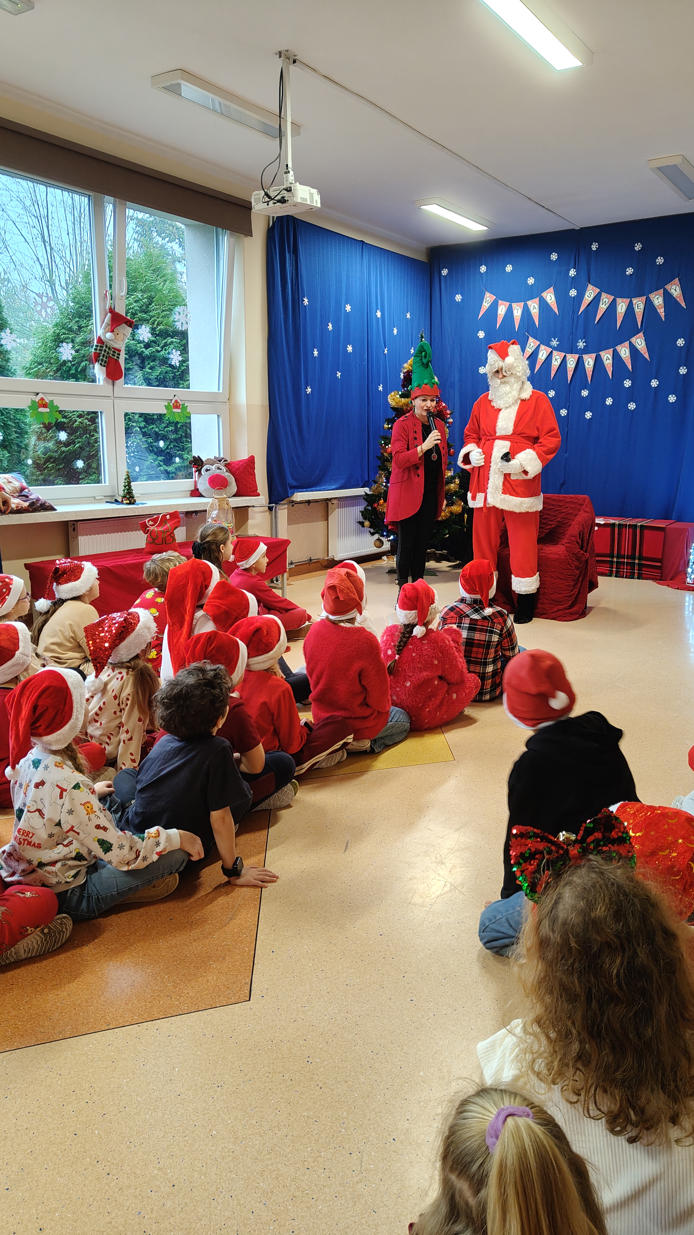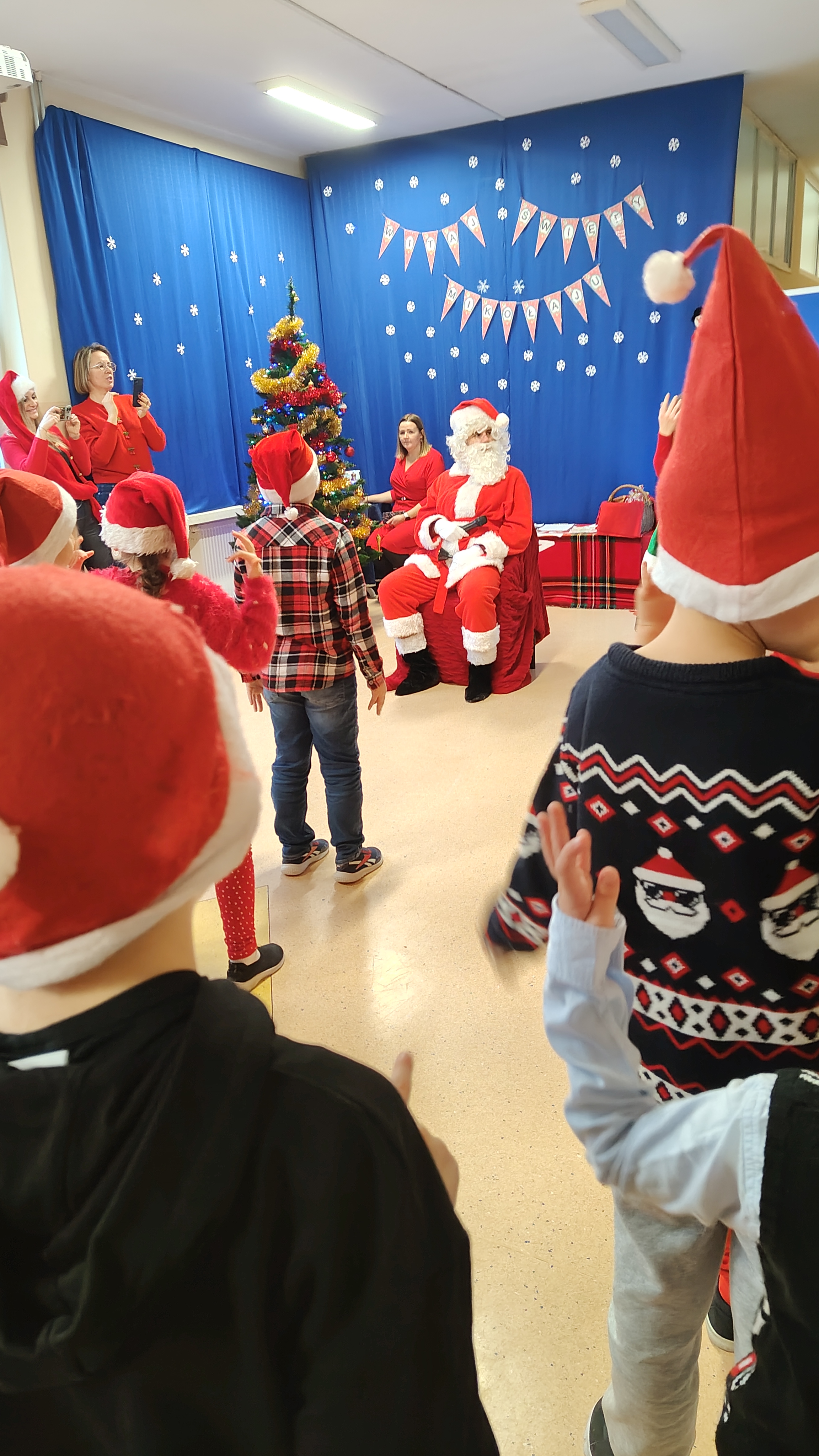 04.12.2025 r. odwiedził naszą szkołę Mikołaj, który w asyście Elfinek, rozdawał klasowe prezenty. Uczniowie zaprezentowali tematyczne wiersze, piosenki oraz taniec świąteczny dla tego Specjalnego Gościa. Po otrzymaniu upominków, dodatkową atrakcją była fotobudka. Do zobaczenia wkrótce, Mikołaju!
