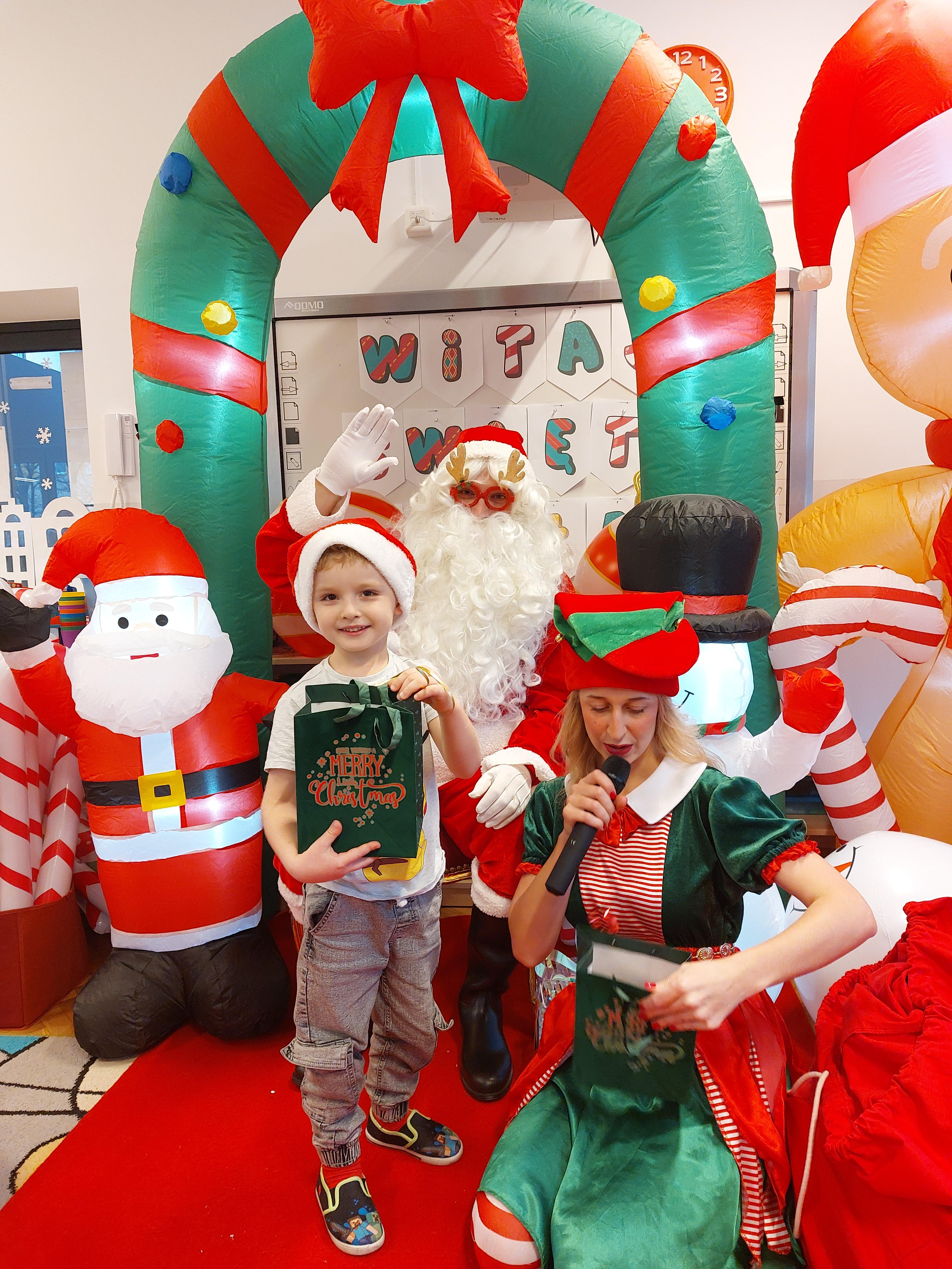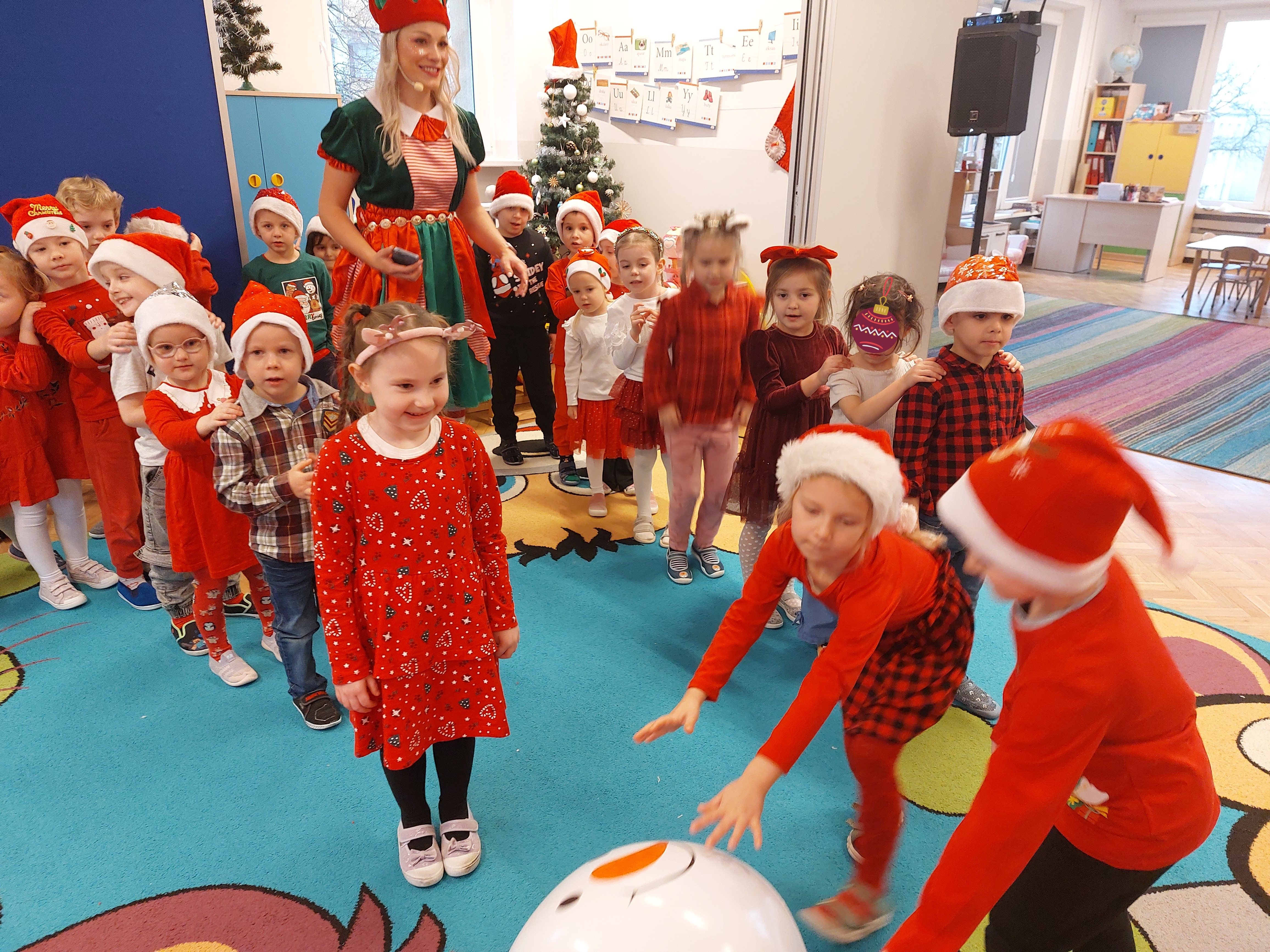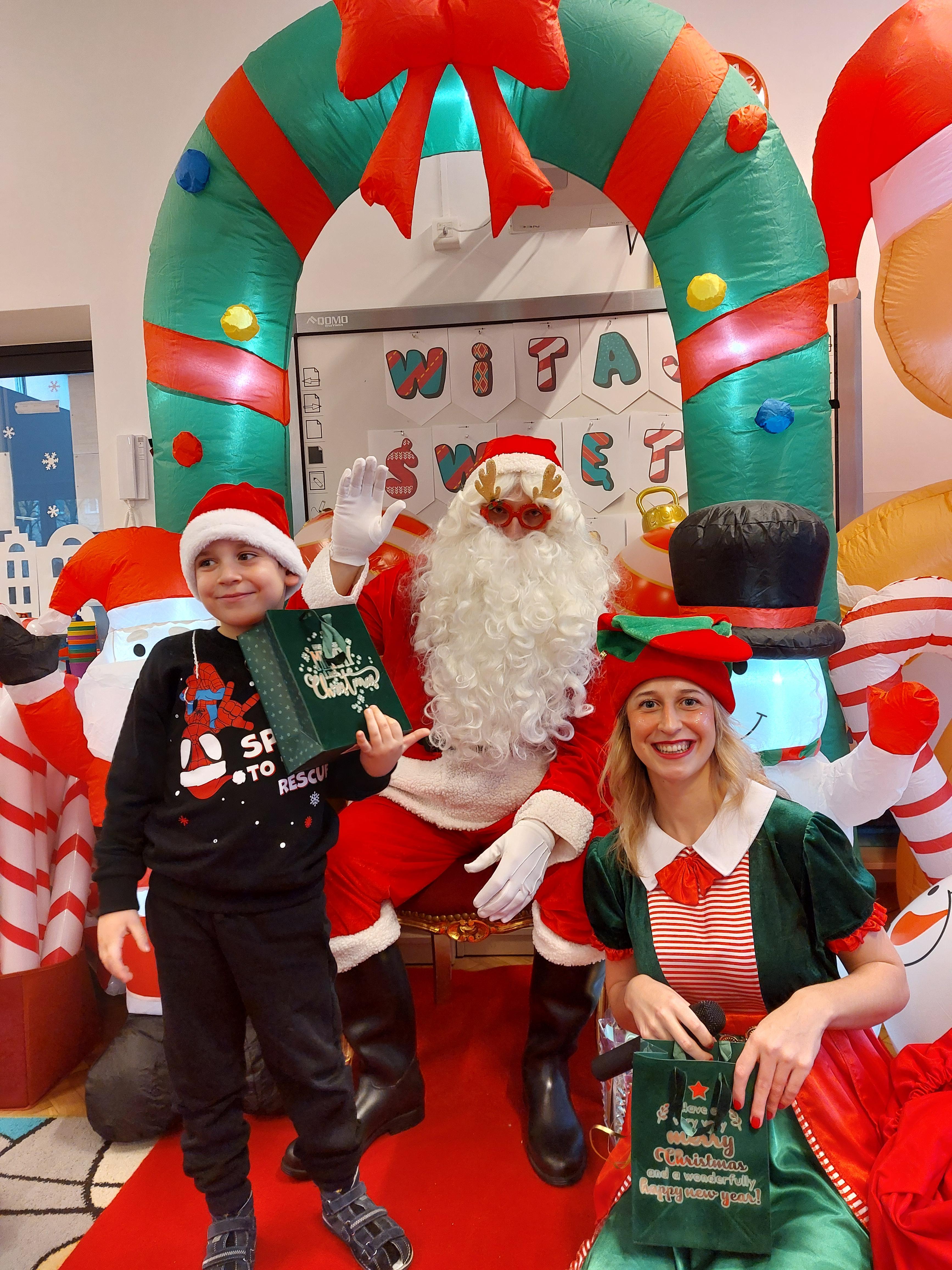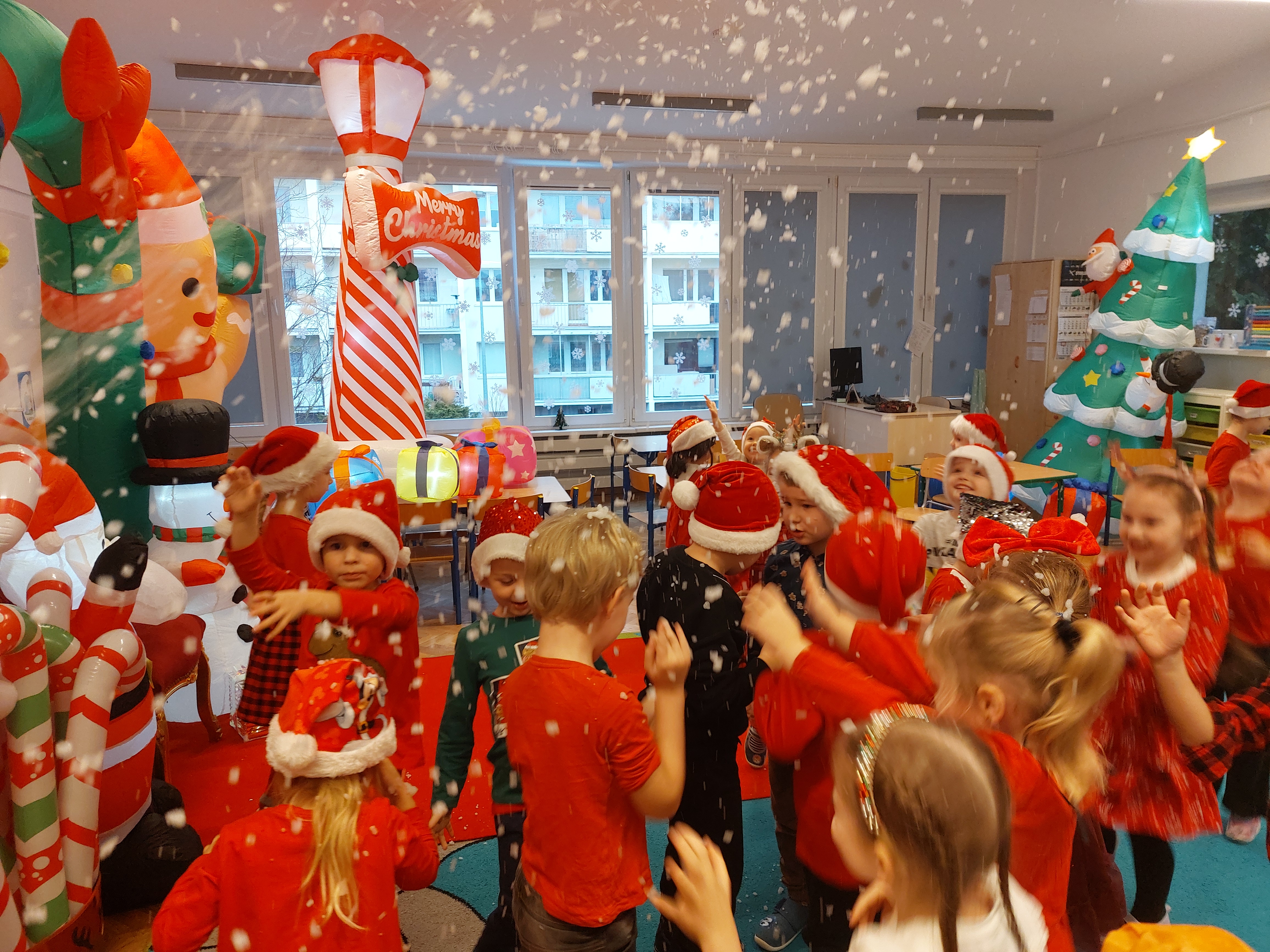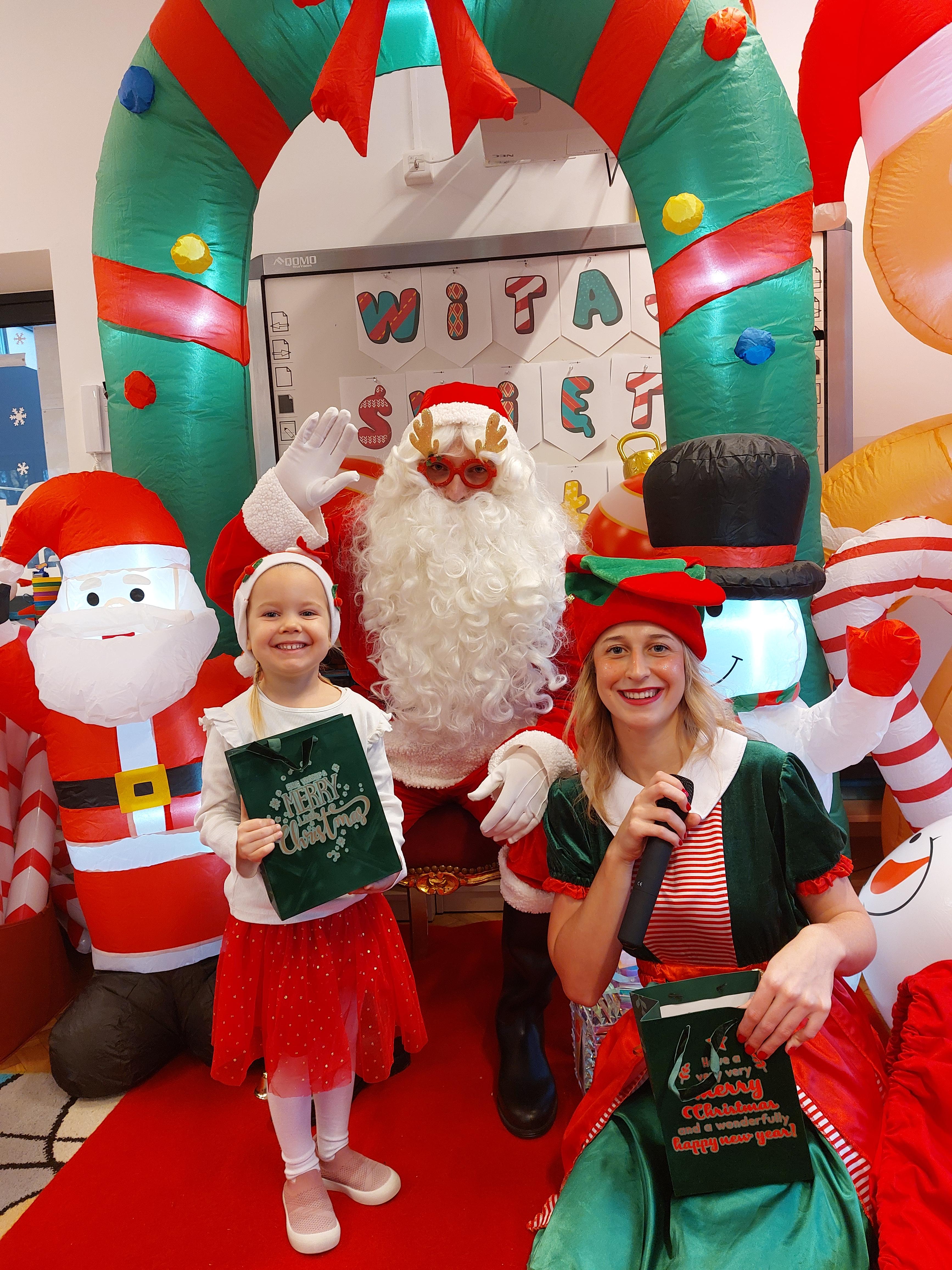 3 grudnia obchodziliśmy w naszym przedszkolu mikołajki. Tego dnia odwiedził nas wyjątkowy gość - Mikołaj, wraz ze swoimi sympatycznymi elfkami. To była prawdziwa impreza! Zaczęliśmy zabawami przy świątecznych piosenkach, później były zawody w toczeniu ogromnej bombki i reniferkowy pociąg. Choć prawdziwa zima do nas jeszcze nie zawitała, elfki sprawiły, że w sali spadł na nas prawdziwy śnieg! Po tych ekscytujących zabawach nastąpiła główna atrakcja dnia - do sali wszedł prawdziwy Mikołaj, dźwigając ogromny worek pełen prezentów! To nie był koniec zabaw - wspólnie z Mikołajem bawiliśmy się w ,,pytanie czy zadanie", zatańczyliśmy, a na koniec nadszedł czas, aby Mikołaj rozdał dzieciom wyczekiwane przez nie niespodzianki. Emocjom nie było końca!