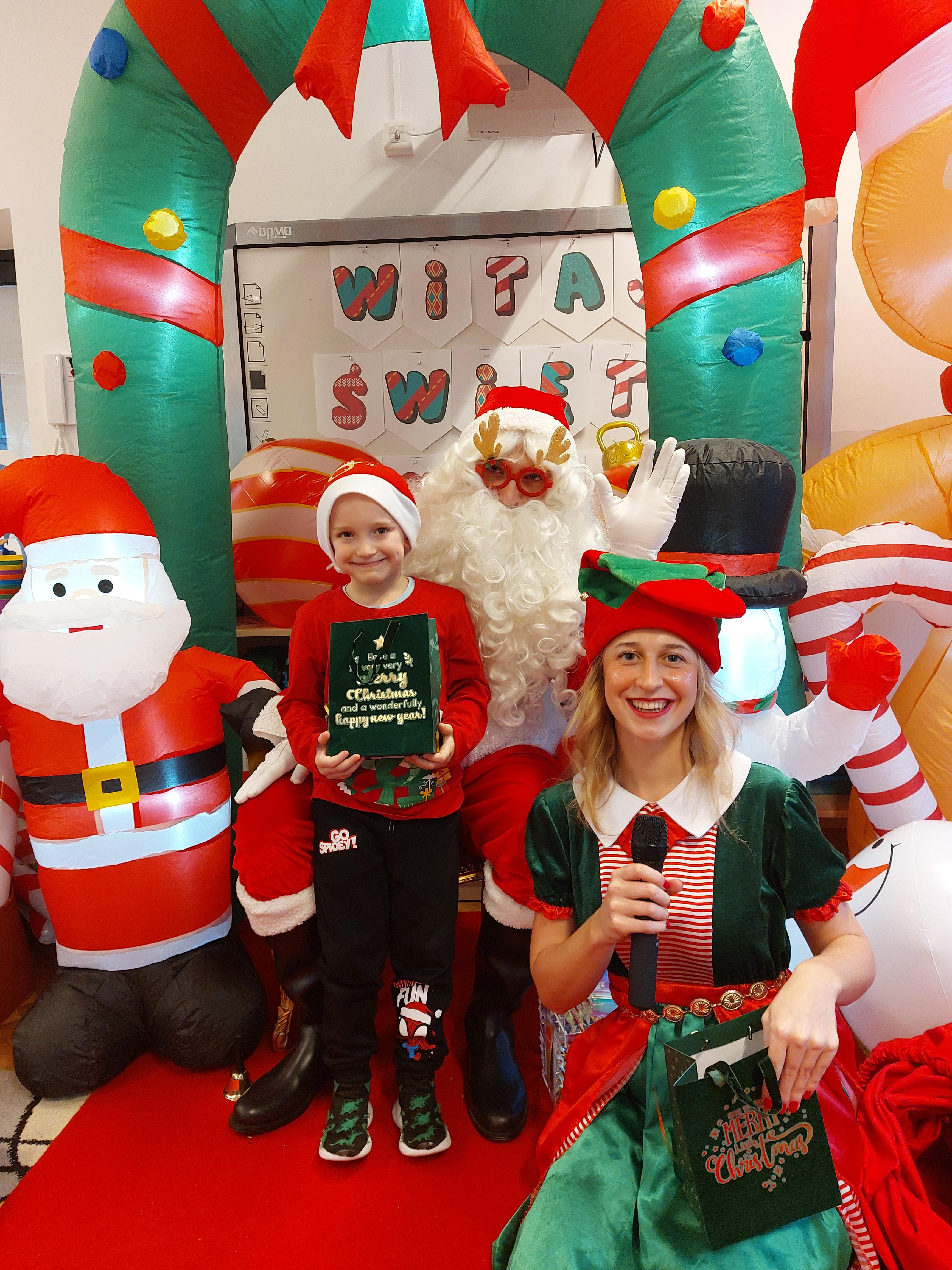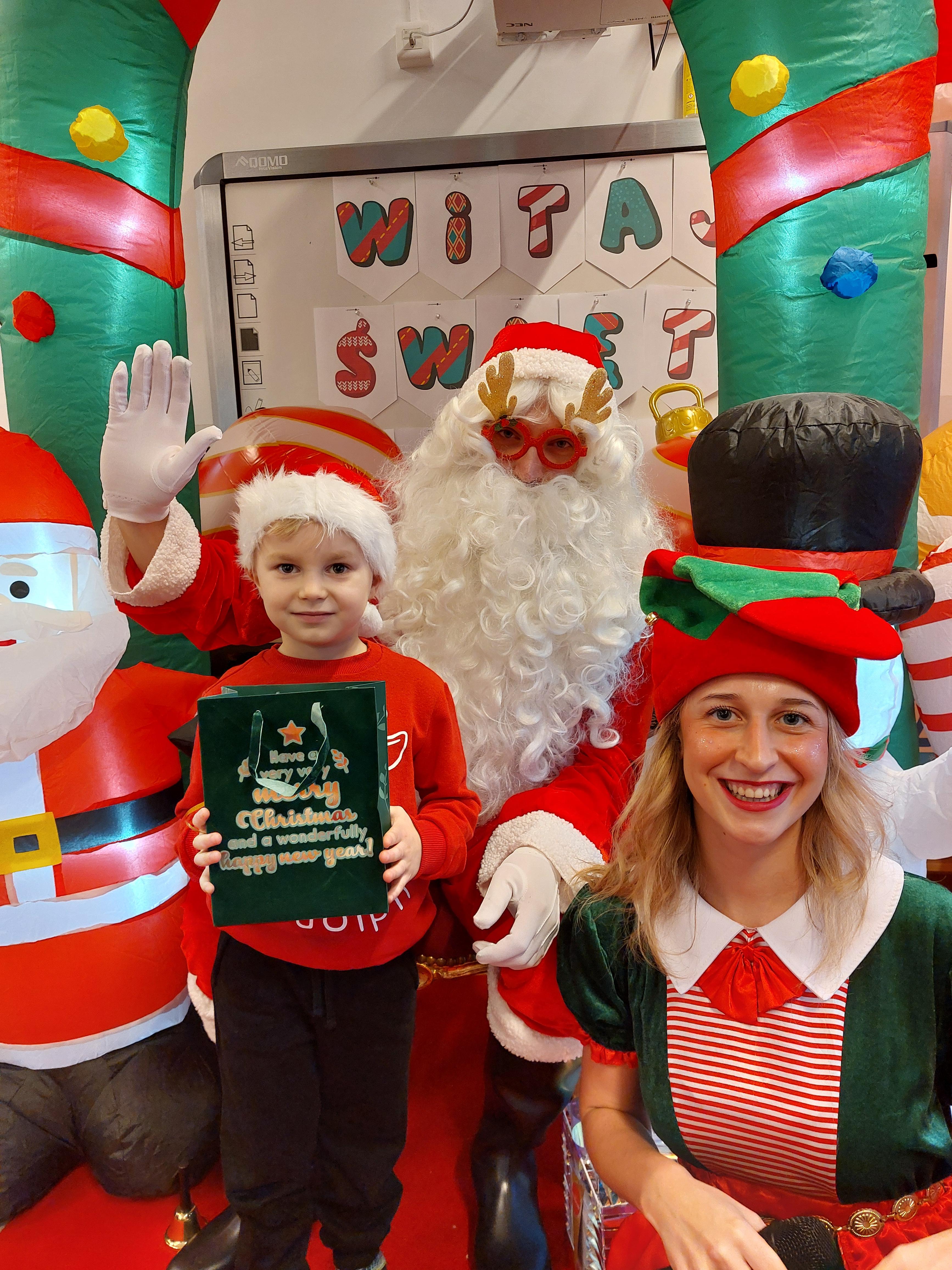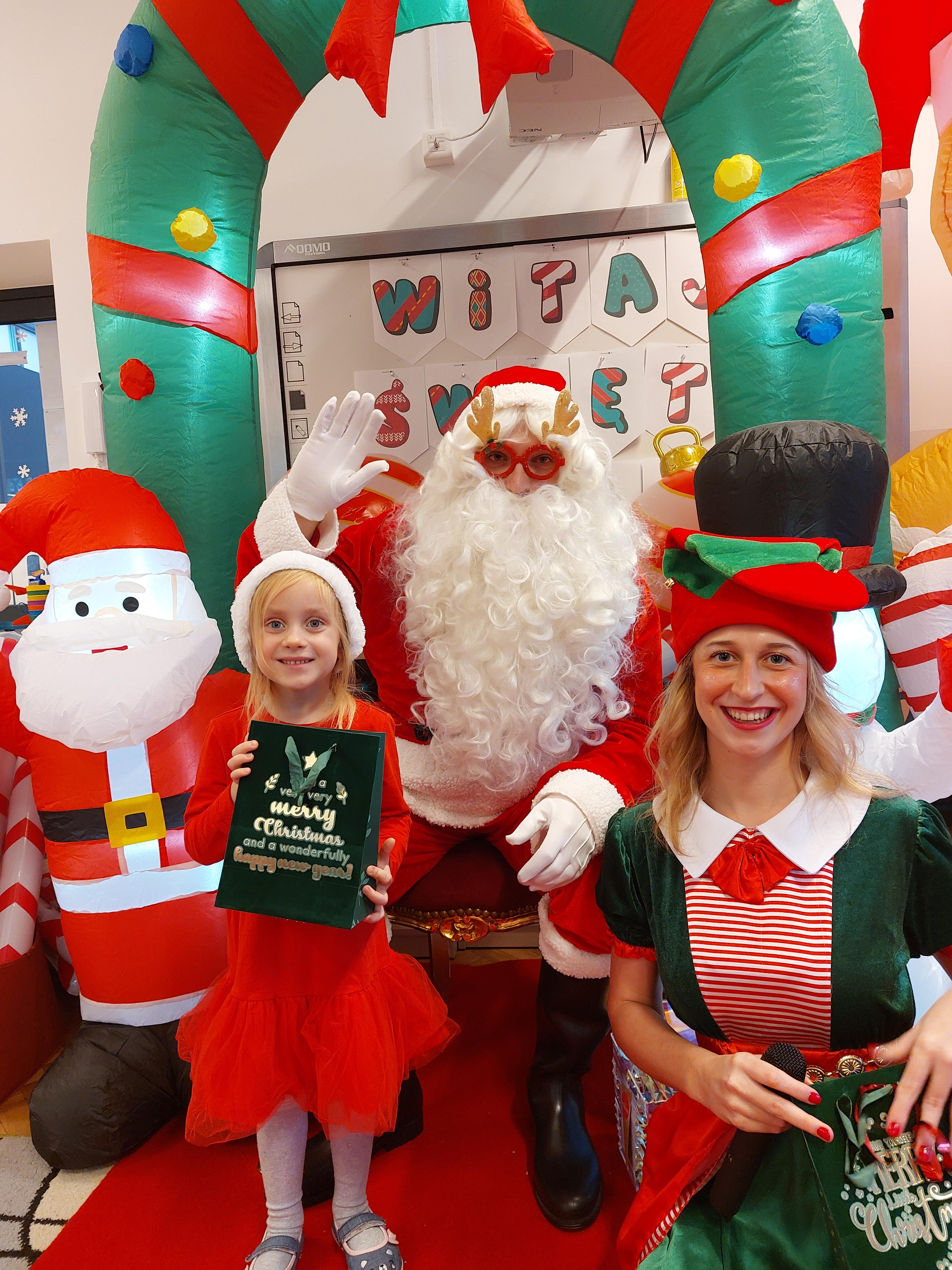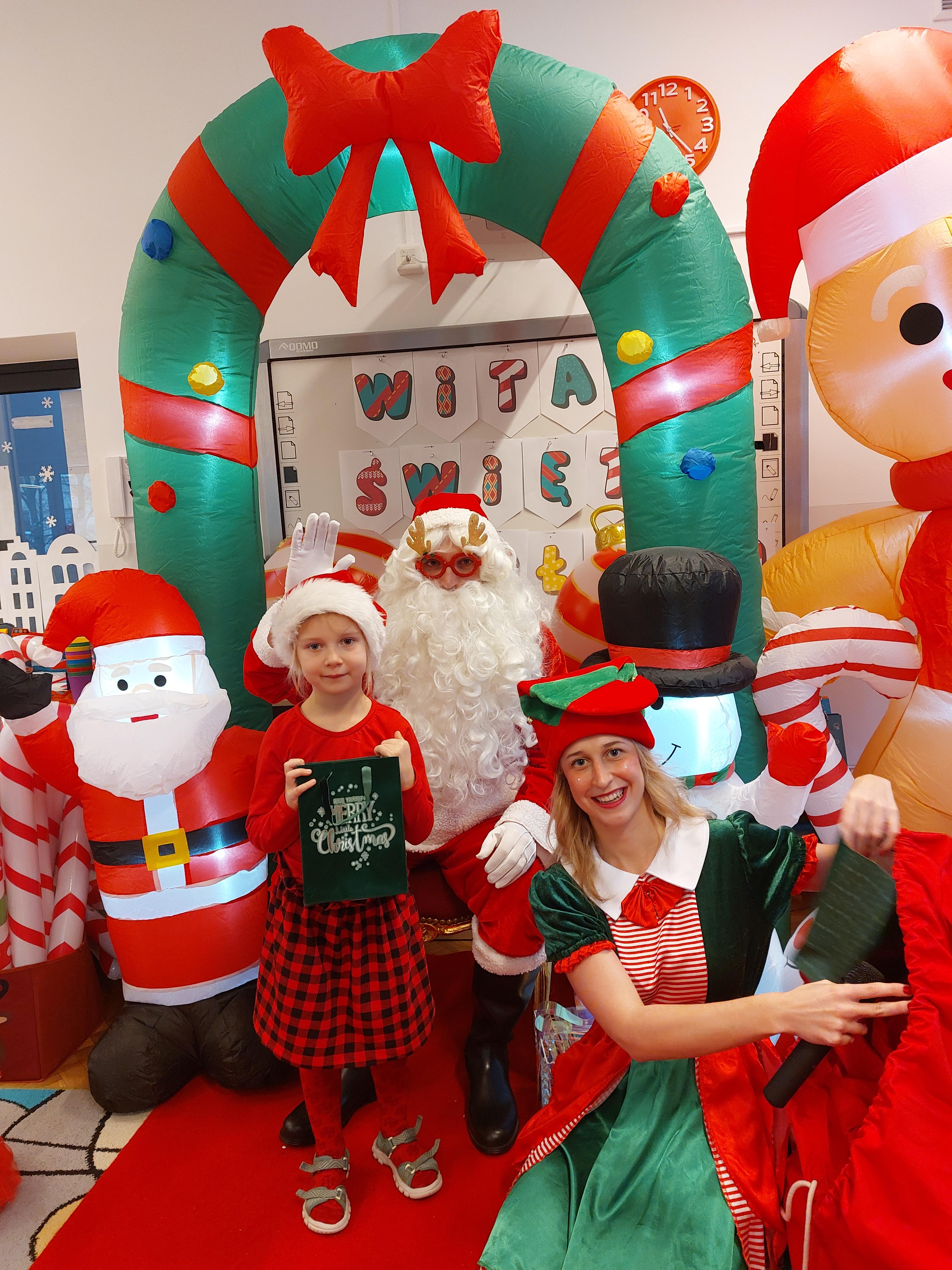 3 grudnia obchodziliśmy w naszym przedszkolu mikołajki. Tego dnia odwiedził nas wyjątkowy gość - Mikołaj, wraz ze swoimi sympatycznymi elfkami. To była prawdziwa impreza! Zaczęliśmy zabawami przy świątecznych piosenkach, później były zawody w toczeniu ogromnej bombki i reniferkowy pociąg. Choć prawdziwa zima do nas jeszcze nie zawitała, elfki sprawiły, że w sali spadł na nas prawdziwy śnieg! Po tych ekscytujących zabawach nastąpiła główna atrakcja dnia - do sali wszedł prawdziwy Mikołaj, dźwigając ogromny worek pełen prezentów! To nie był koniec zabaw - wspólnie z Mikołajem bawiliśmy się w ,,pytanie czy zadanie", zatańczyliśmy, a na koniec nadszedł czas, aby Mikołaj rozdał dzieciom wyczekiwane przez nie niespodzianki. Emocjom nie było końca!